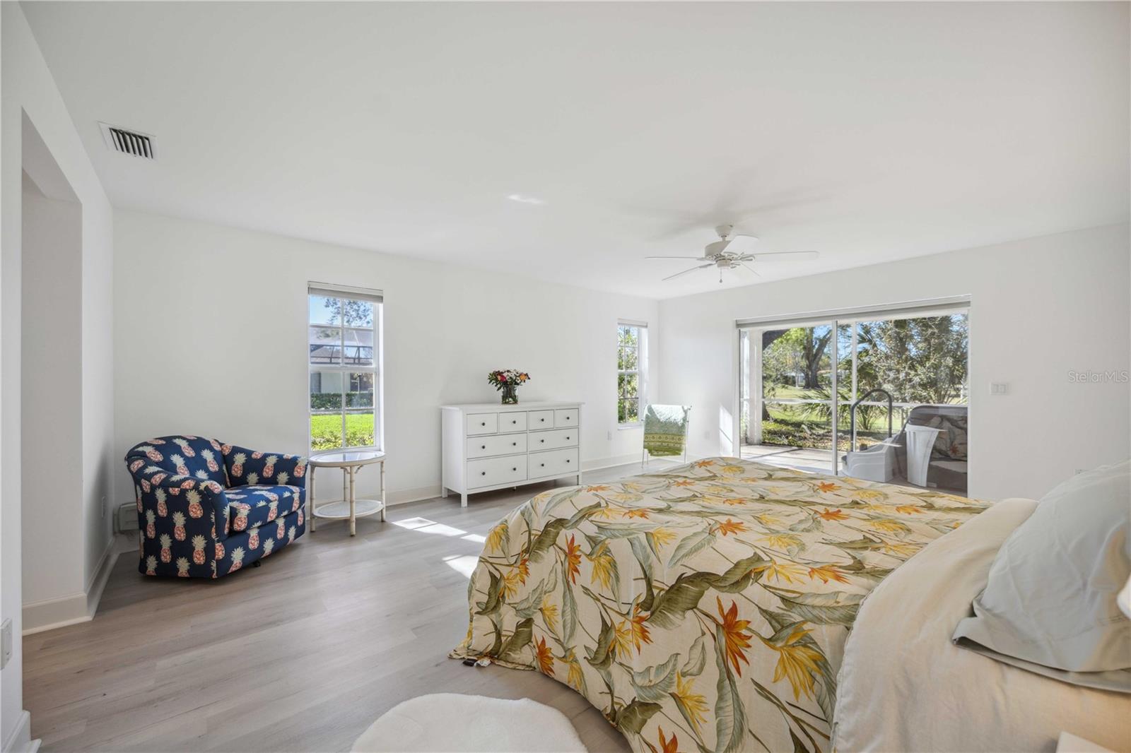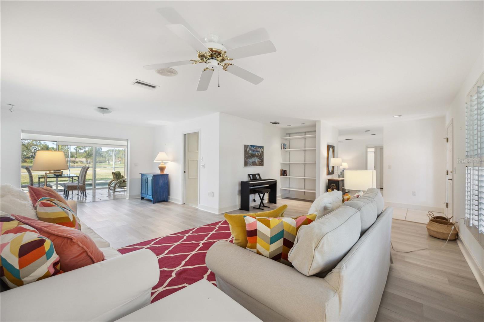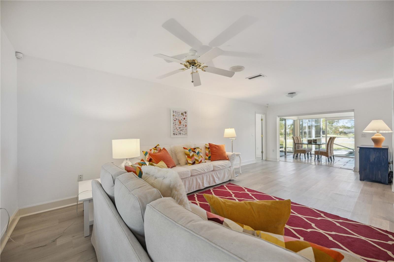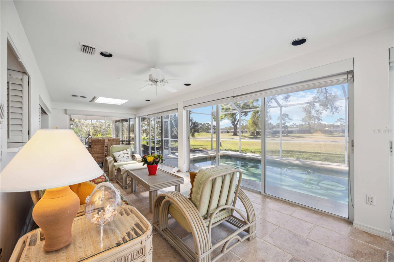 MASSIVE PRICE IMPROVEMENT! Priced UNDER market value... MOTIVATED SELLER. Live the Florida Lifestyle in The Meadows! Discover your private oasis with stunning golf course views overlooking the 2nd hole of The Highlands course in Sarasota's sought-after Meadows community. This light, bright, and beautifully updated home features a huge Florida room and a new pool cage with paver deck, perfect for relaxing afternoons or entertaining friends. Surrounded by giant oak trees and lush, mature landscaping, the setting is peaceful and serene. Inside, you'll love the new laminate flooring, giving the home a fresh and modern feel. The spacious layout includes multiple living areas and a garden spa tub in the master suite. The Meadows offers resort-style amenities, including a new state-of-the-art fitness center, pickleball courts, a Junior Olympic pool, and discounted greens fees on 36 holes of golf. Optional membership at The Meadows Country Club adds exclusive access to 17 Har-Tru tennis courts and a members-only golf course. Plus, with lots of social events, clubs, and activities, there's always something to enjoy. Just minutes to UTC shopping, Nathan Benderson Park, and downtown Sarasota. Furnishings are included but optional.
