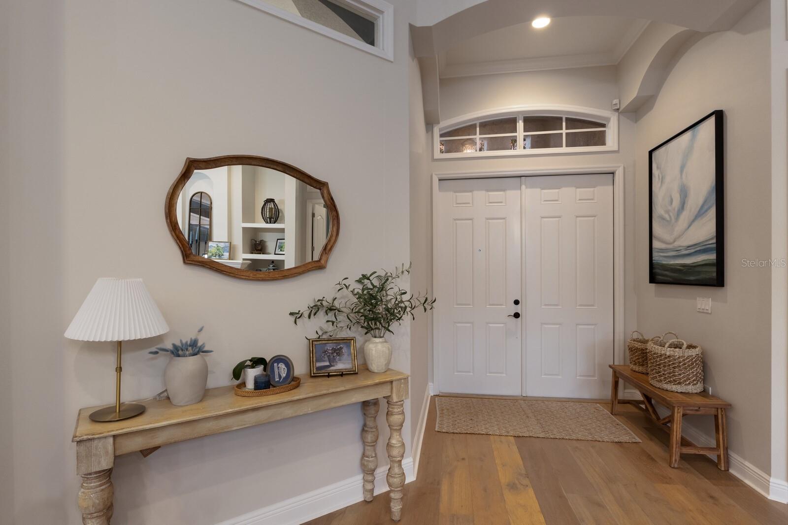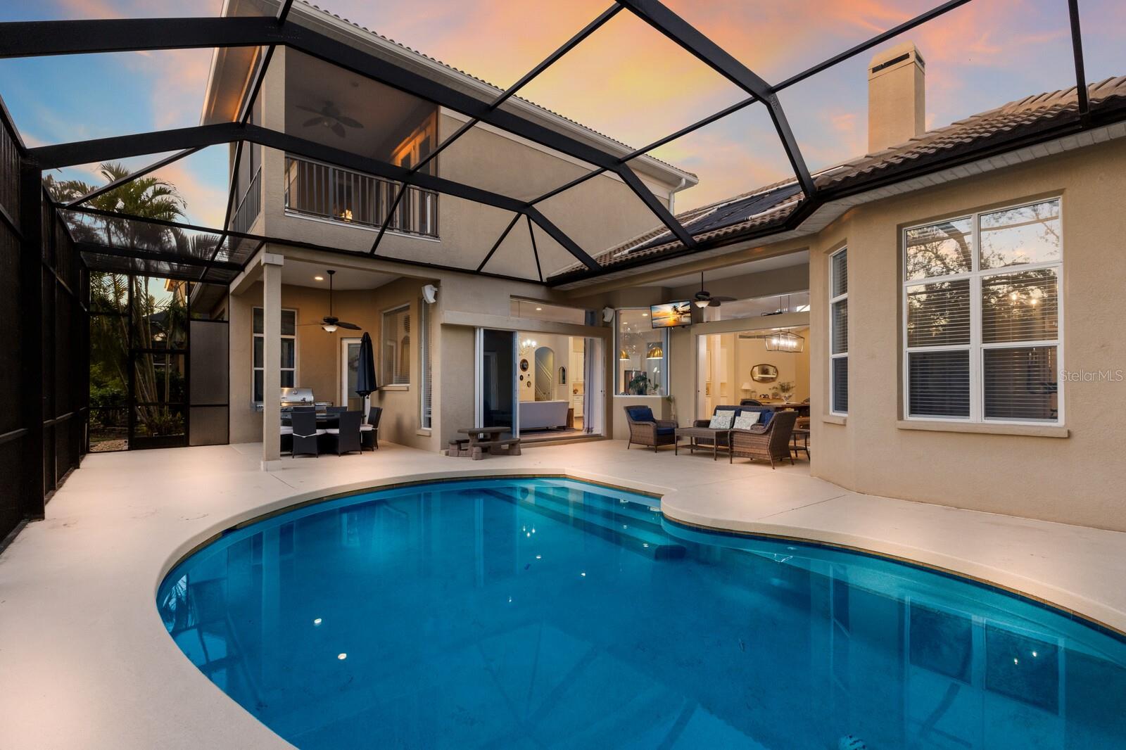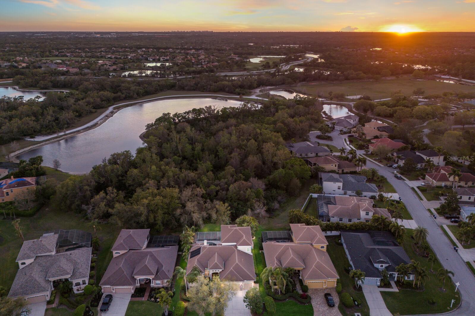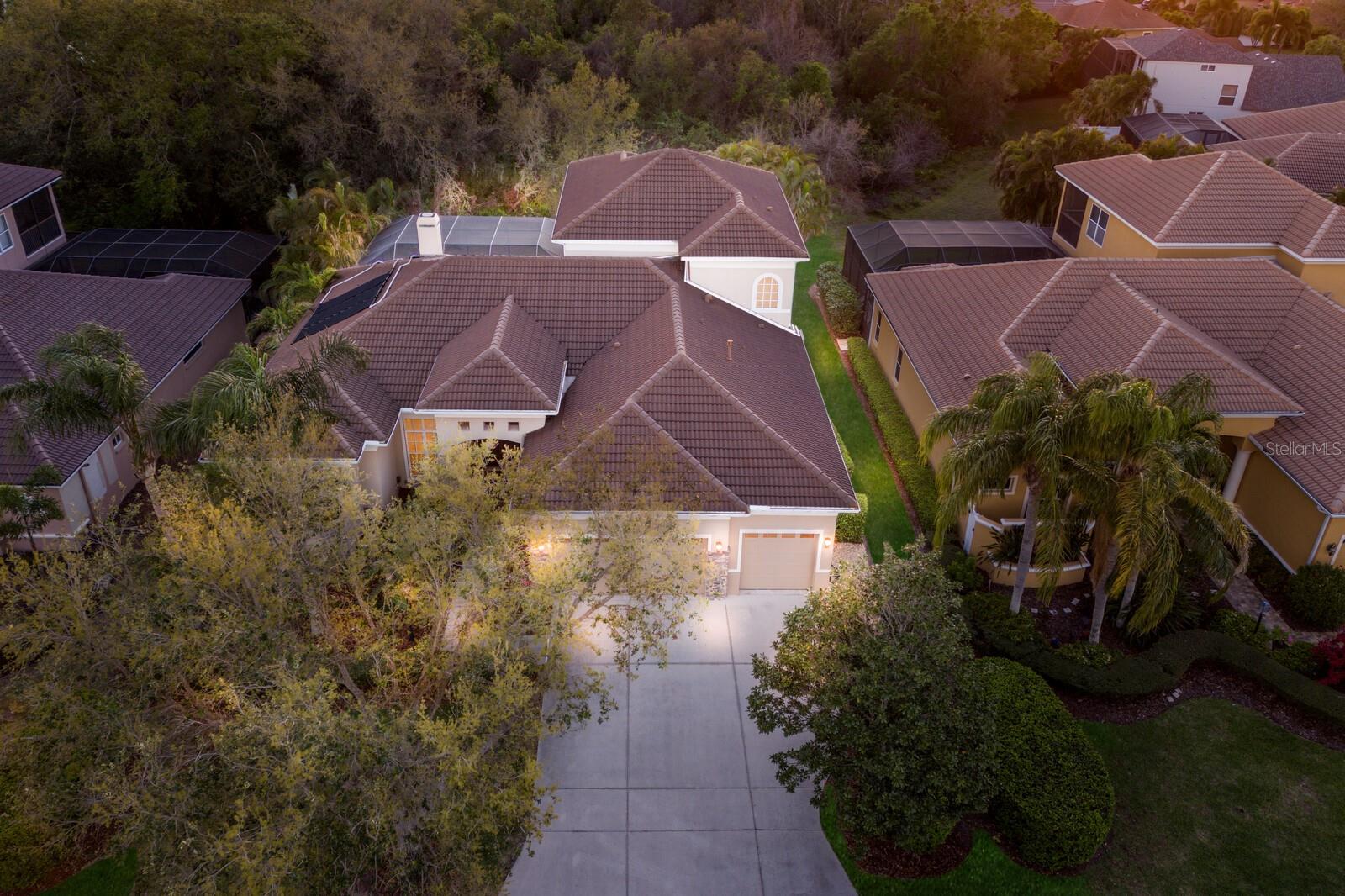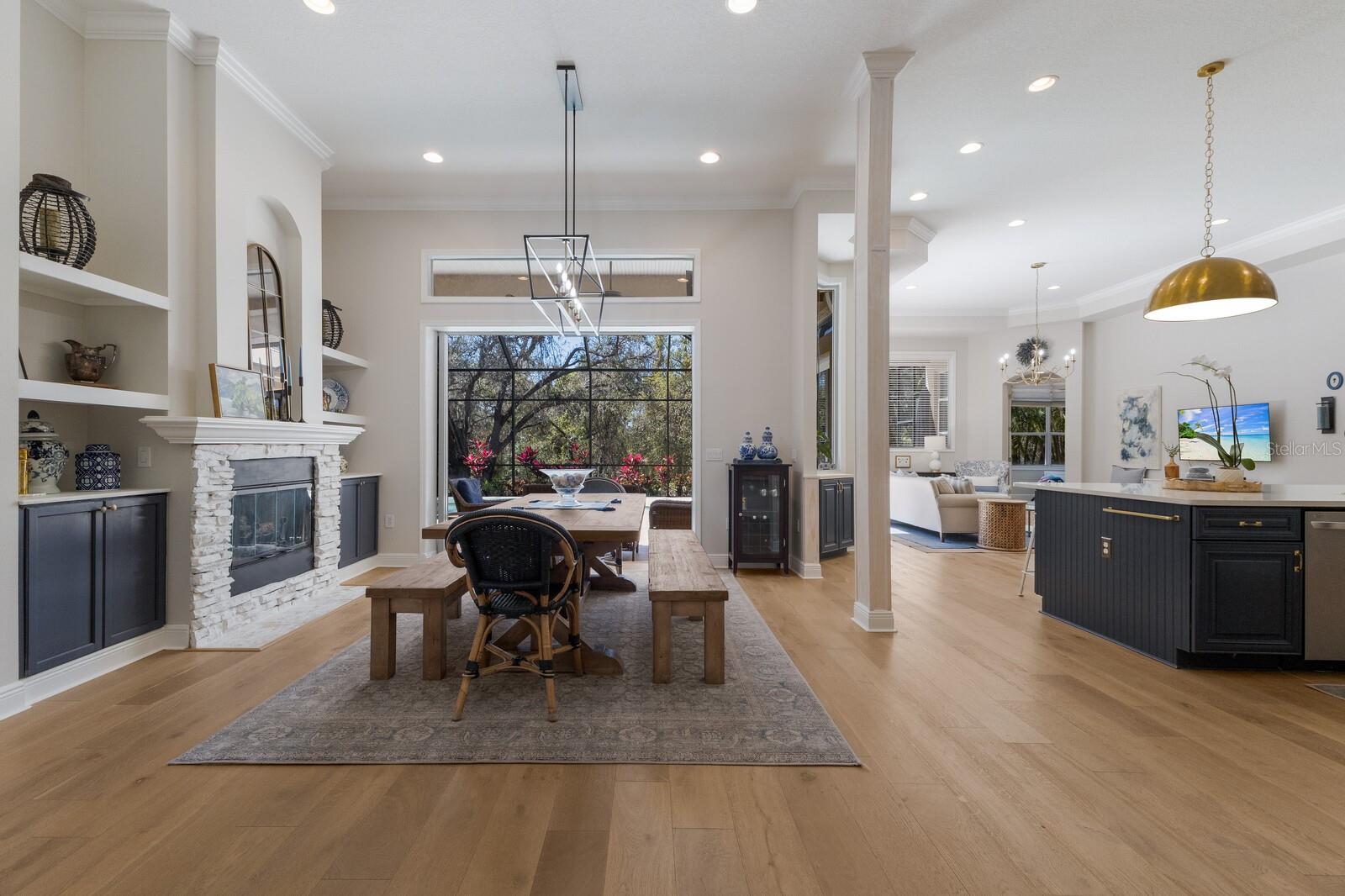 Nestled in the highly coveted Vistas section of Greenbrook, this meticulously designed residence offers an unparalleled blend of modern elegance and tranquil privacy. Built by Homes by Towne, this exceptional 5-bedroom, 4-bath home spans 3,795 square feet of beautifully renovated and refined living space. As you approach the property, you're greeted by striking curb appeal, including a tile roof, stacked stone accents, and lush, upgraded landscaping, which culminates in a grand double-entry door with a transom window. Inside, this home looks straight out of a design magazine, with fully remodeled main living spaces that have been thoughtfully opened up to provide an open, airy feel. Soaring ceilings, crown molding, white oak flooring and designer touches throughout create an atmosphere of timeless sophistication. The chef's kitchen is a standout feature, having been completely renovated and reconfigured to enhance both functionality and style. A large center island serves as the focal point, complemented by custom cabinetry finished in navy and white hues, gold hardware, stunning quartz countertops, and designer lighting. A true culinary haven, the kitchen seamlessly flows into the dining area, which boasts a gas fireplace framed by custom cabinetry and shelving. Oversized sliding glass doors with transom windows in both the living and dining rooms blur the lines between indoor and outdoor living, leading to the covered lanai and pool area -- perfect for enjoying the Florida lifestyle. The main level also houses the primary suite, a serene retreat designed for relaxation. With tray ceilings, crown molding, abundant natural light, and direct access to the lanai, this luxurious bedroom is a private sanctuary. The generous walk-in closet and spa-like en suite bathroom, featuring double vanities, a walk-in shower, soaking tub, and light cabinetry with stone countertops, complete the owner's retreat. Additionally, three well-appointed bedrooms and two full bathrooms on the main floor offer ample space for family and guests. Upstairs, you'll find a spacious bonus room, a 5th bedroom, and a 4th full bathroom, offering flexibility and comfort. A balcony overlooks the pool and preserve, providing an idyllic setting for morning coffee or evening relaxation. This upstairs area could serve as the perfect in-law suite, guest quarters or teen haven. The home's outdoor space is equally impressive, with a pool overlooking the majestic oak trees and preserve. A gas heater and solar panels, recently replaced in 2024, ensure year-round enjoyment. The lanai was freshly painted and sealed in 2025, further elevating the outdoor living experience. A true testament to modern luxury, this residence also includes a Pinterest-worthy laundry room and mudroom offering both style and practicality at every turn. Greenbrook is zoned for A-rated McNeal Elementary, Nolan Middle and Lakewood Ranch High School. Plus, it has a very low HOA fee of $115/year. Adventure Park is just around the corner which includes a playground, basketball court, baseball/soccer fields, sand volleyball court, in-link skate rink, dog park and more. Greenbrook's central Lakewood Ranch location means you are conveniently located to all that the area offers including countless community events, golfing, tennis, restaurants, shopping, and it's just a short drive to the world-famous beaches.