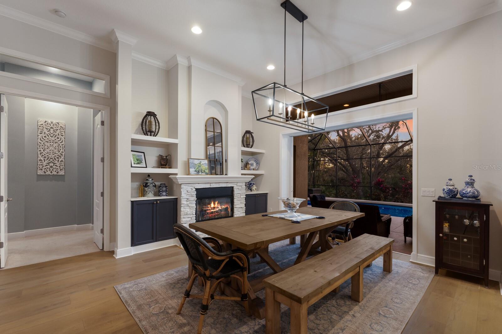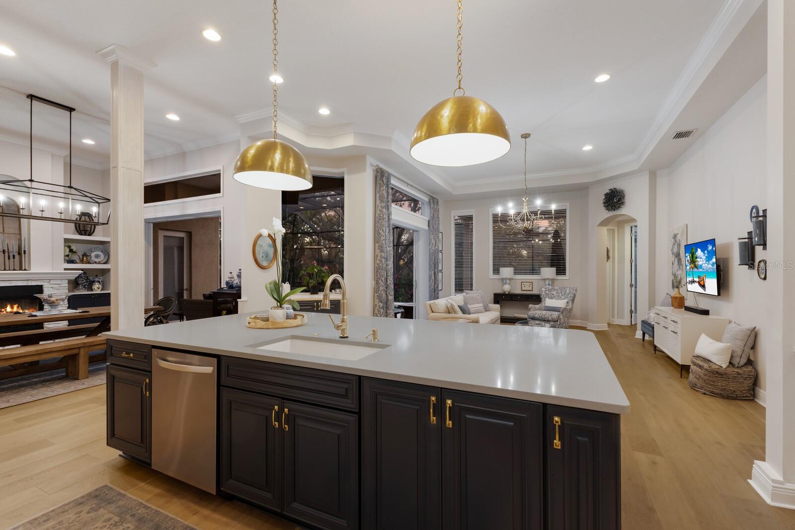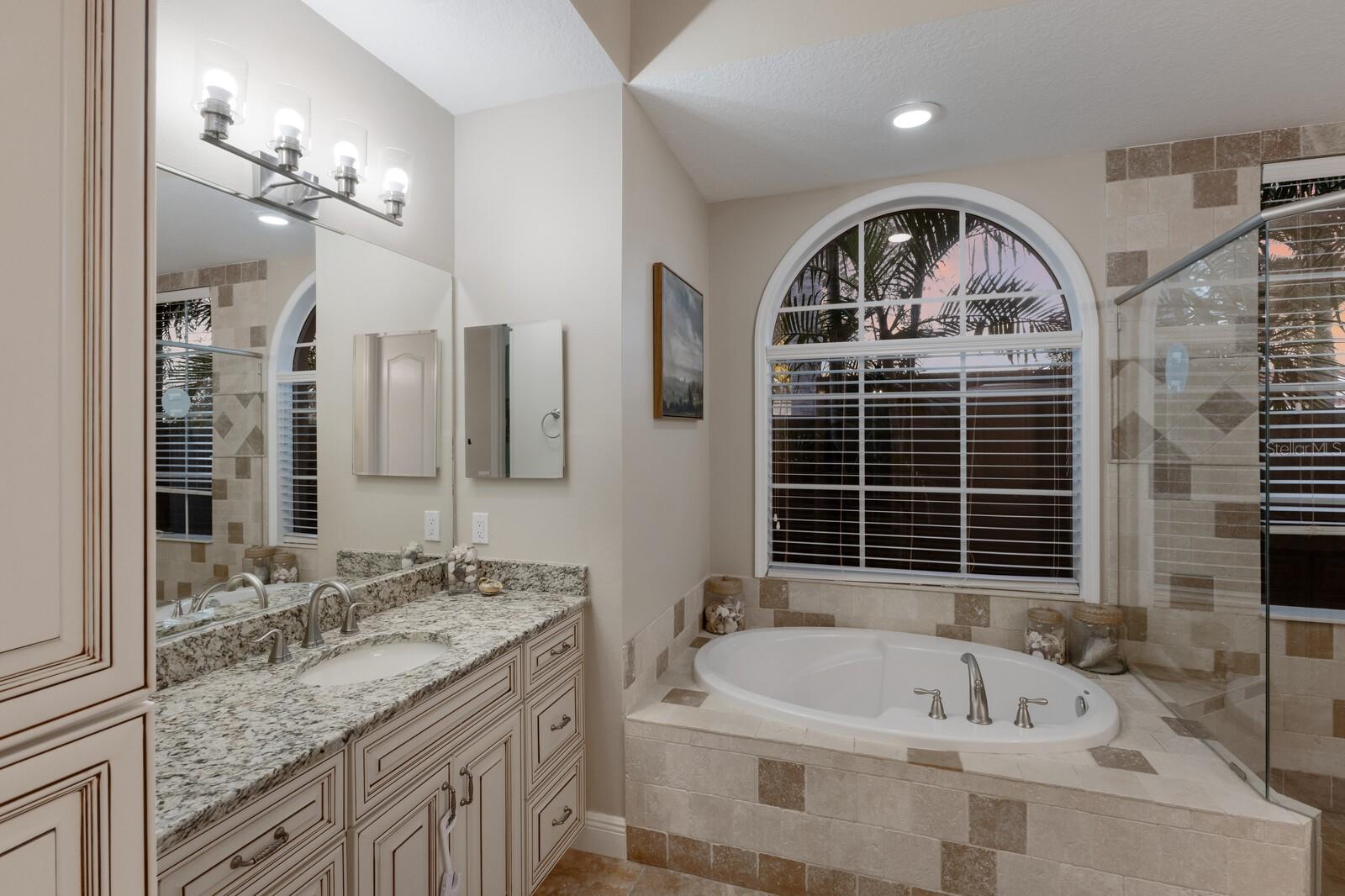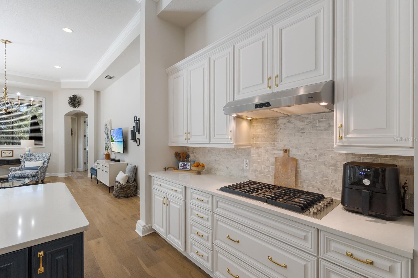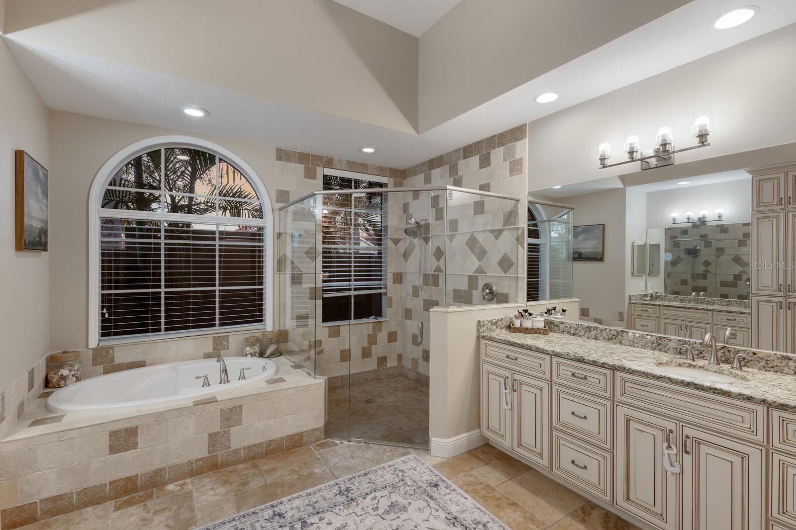 Nestled in the highly coveted Vistas section of Greenbrook, this meticulously designed residence offers an unparalleled blend of modern elegance and tranquil privacy. Built by Homes by Towne, this exceptional 5-bedroom, 4-bath home spans 3,795 square feet of beautifully renovated and refined living space. As you approach the property, you're greeted by striking curb appeal, including a tile roof, stacked stone accents, and lush, upgraded landscaping, which culminates in a grand double-entry door with a transom window. Inside, this home looks straight out of a design magazine, with fully remodeled main living spaces that have been thoughtfully opened up to provide an open, airy feel. Soaring ceilings, crown molding, white oak flooring and designer touches throughout create an atmosphere of timeless sophistication. The chef's kitchen is a standout feature, having been completely renovated and reconfigured to enhance both functionality and style. A large center island serves as the focal point, complemented by custom cabinetry finished in navy and white hues, gold hardware, stunning quartz countertops, and designer lighting. A true culinary haven, the kitchen seamlessly flows into the dining area, which boasts a gas fireplace framed by custom cabinetry and shelving. Oversized sliding glass doors with transom windows in both the living and dining rooms blur the lines between indoor and outdoor living, leading to the covered lanai and pool area -- perfect for enjoying the Florida lifestyle. The main level also houses the primary suite, a serene retreat designed for relaxation. With tray ceilings, crown molding, abundant natural light, and direct access to the lanai, this luxurious bedroom is a private sanctuary. The generous walk-in closet and spa-like en suite bathroom, featuring double vanities, a walk-in shower, soaking tub, and light cabinetry with stone countertops, complete the owner's retreat. Additionally, three well-appointed bedrooms and two full bathrooms on the main floor offer ample space for family and guests. Upstairs, you'll find a spacious bonus room, a 5th bedroom, and a 4th full bathroom, offering flexibility and comfort. A balcony overlooks the pool and preserve, providing an idyllic setting for morning coffee or evening relaxation. This upstairs area could serve as the perfect in-law suite, guest quarters or teen haven. The home's outdoor space is equally impressive, with a pool overlooking the majestic oak trees and preserve. A gas heater and solar panels, recently replaced in 2024, ensure year-round enjoyment. The lanai was freshly painted and sealed in 2025, further elevating the outdoor living experience. A true testament to modern luxury, this residence also includes a Pinterest-worthy laundry room and mudroom offering both style and practicality at every turn. Greenbrook is zoned for A-rated McNeal Elementary, Nolan Middle and Lakewood Ranch High School. Plus, it has a very low HOA fee of $115/year. Adventure Park is just around the corner which includes a playground, basketball court, baseball/soccer fields, sand volleyball court, in-link skate rink, dog park and more. Greenbrook's central Lakewood Ranch location means you are conveniently located to all that the area offers including countless community events, golfing, tennis, restaurants, shopping, and it's just a short drive to the world-famous beaches.