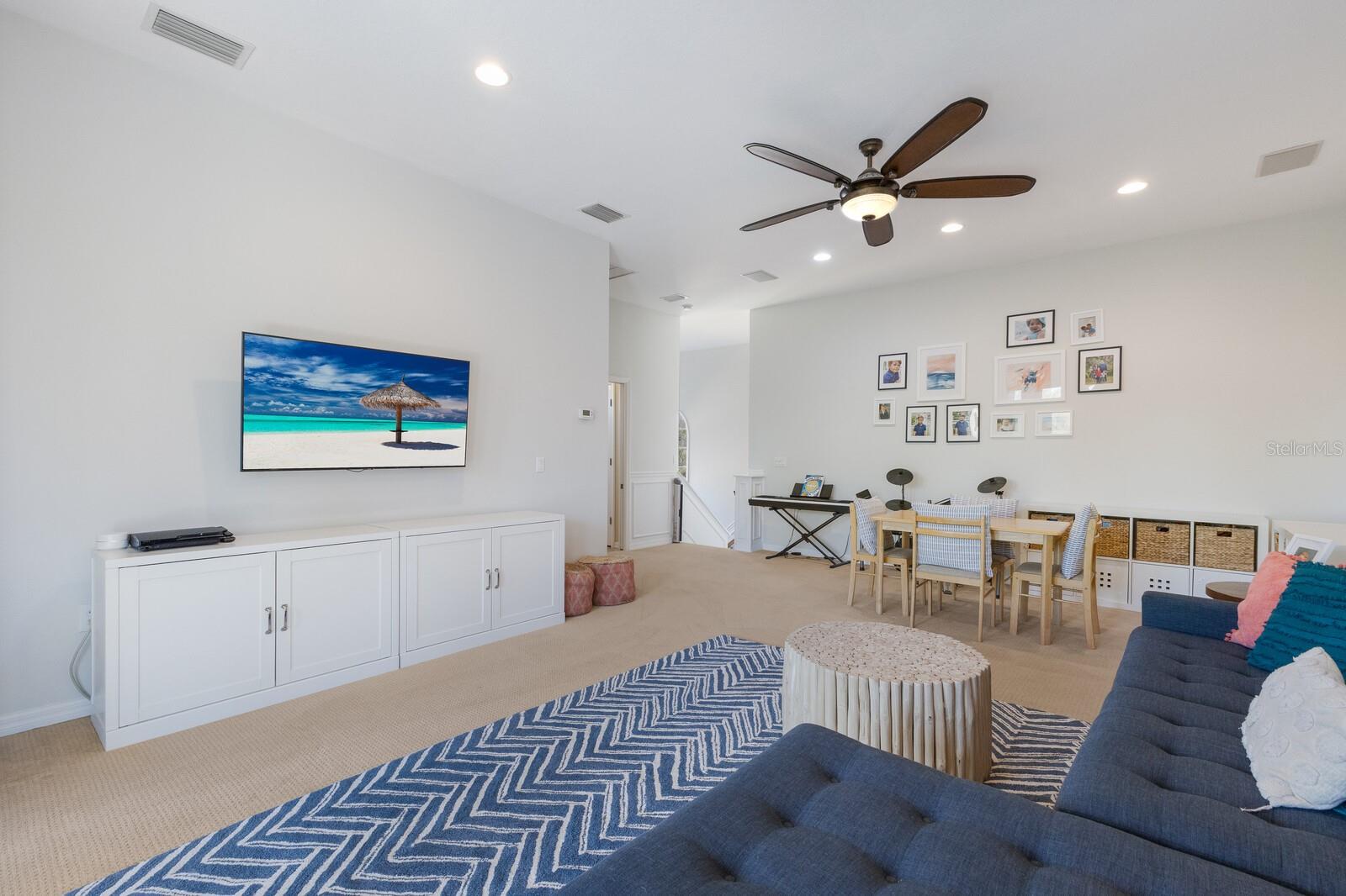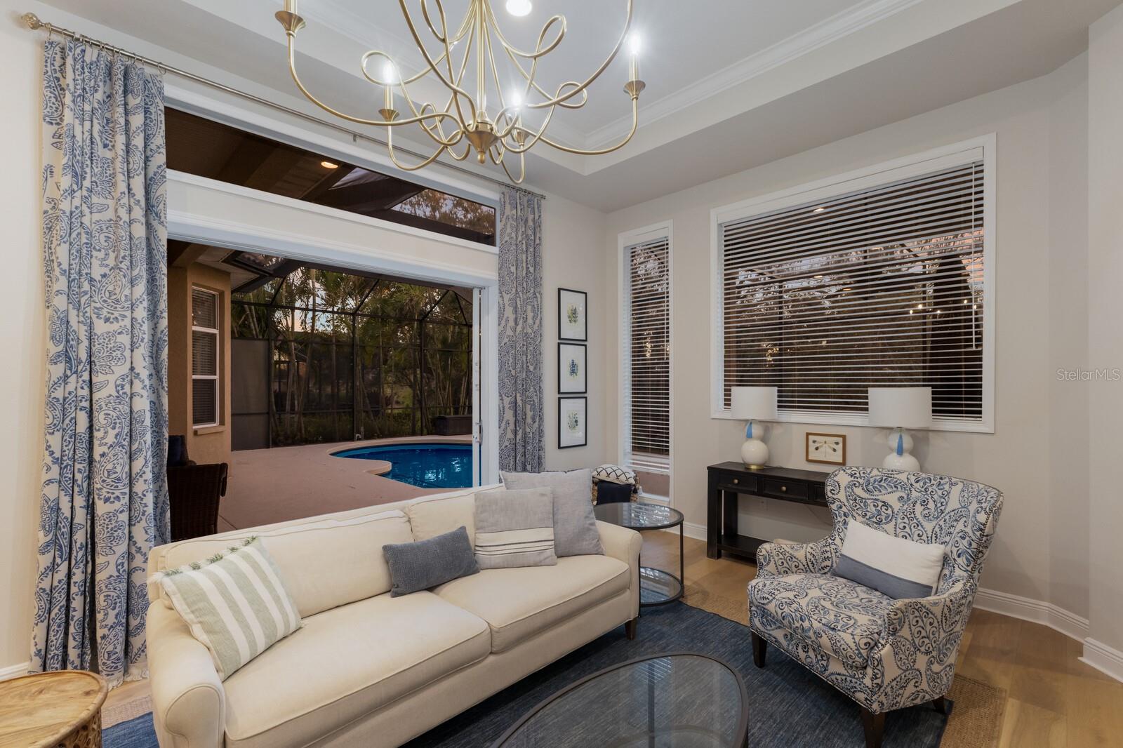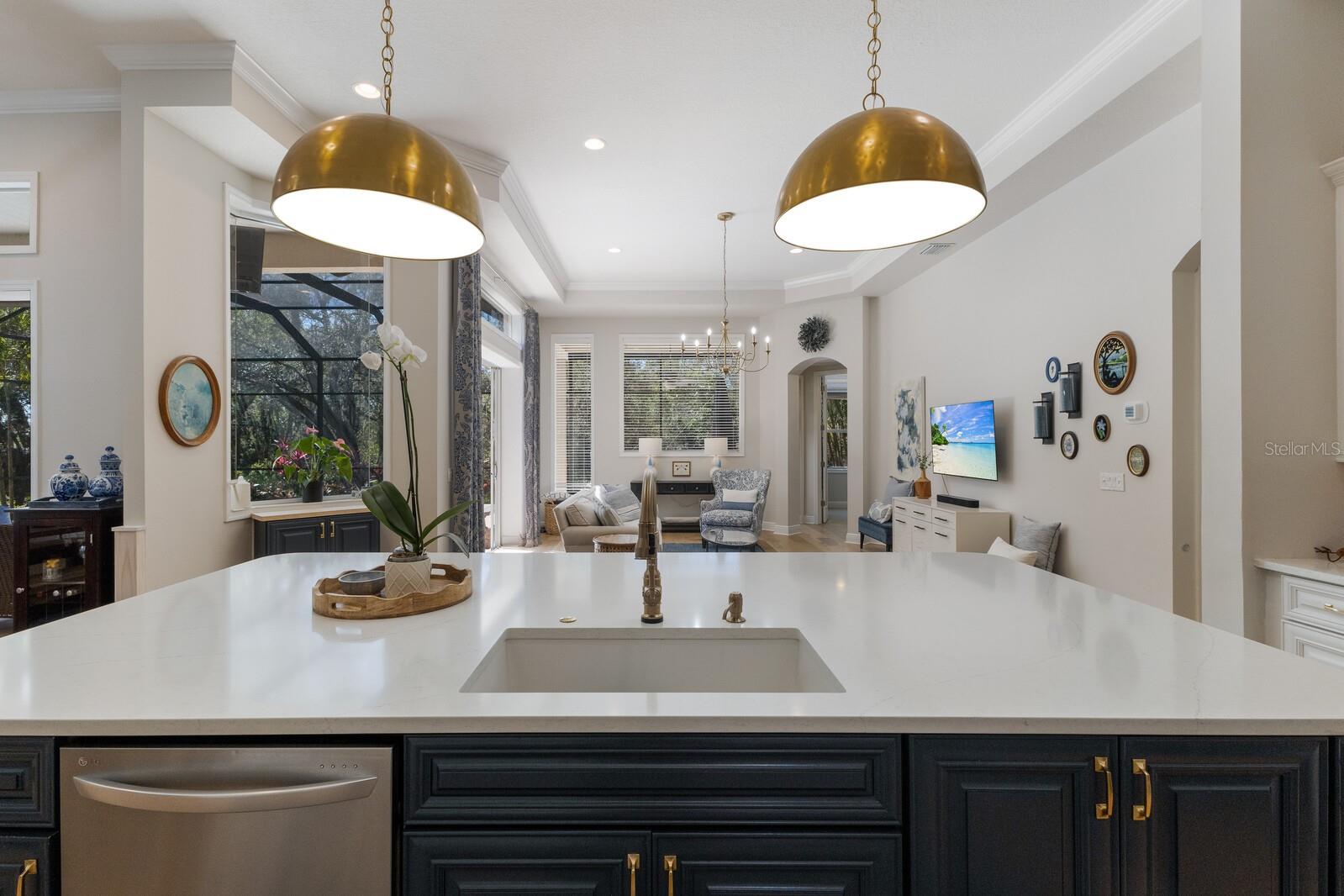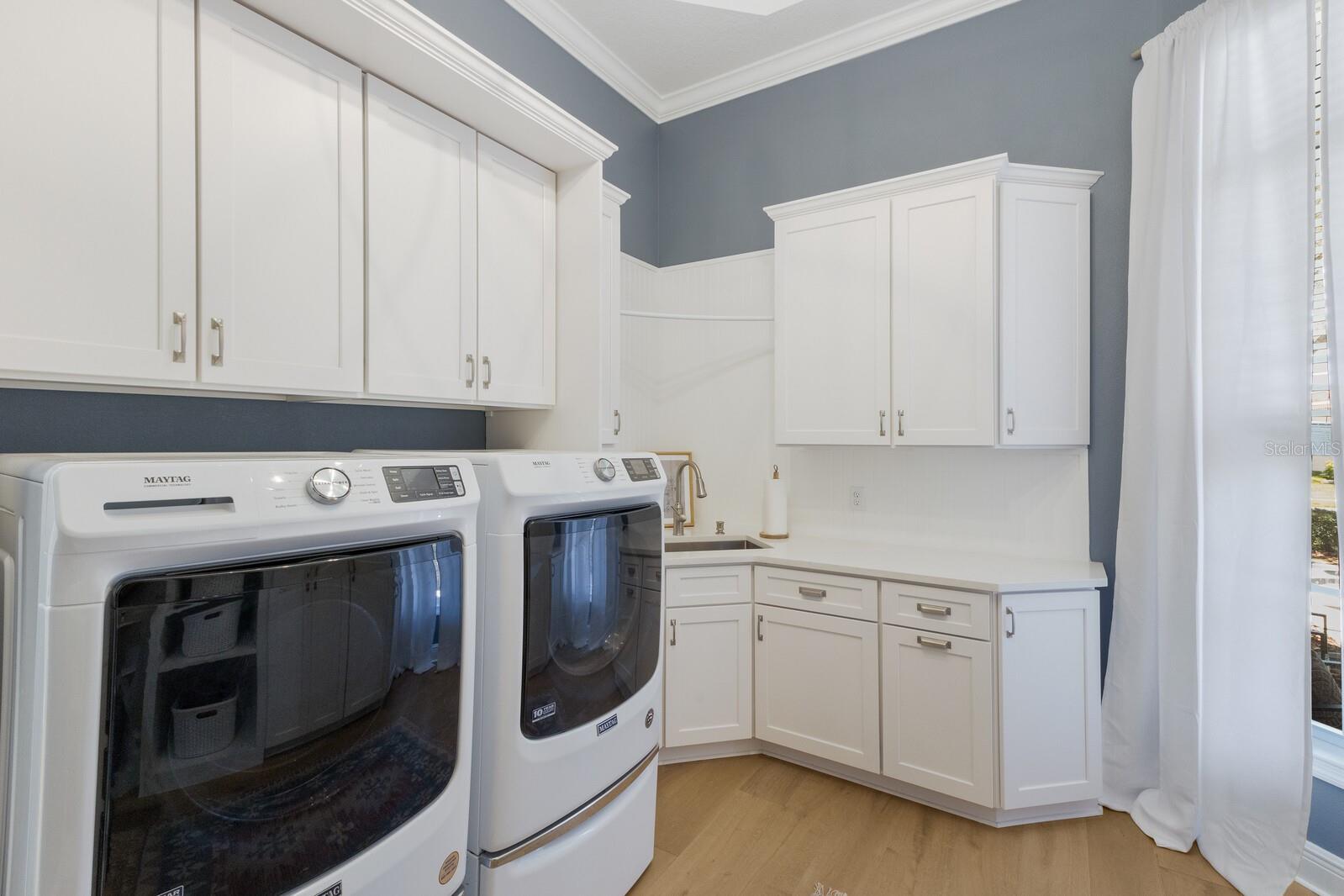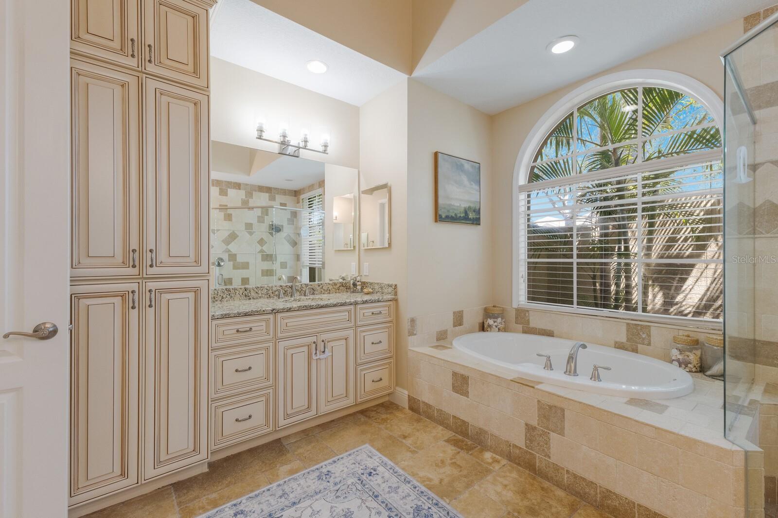 Nestled in the highly coveted Vistas section of Greenbrook, this meticulously designed residence offers an unparalleled blend of modern elegance and tranquil privacy. Built by Homes by Towne, this exceptional 5-bedroom, 4-bath home spans 3,795 square feet of beautifully renovated and refined living space. As you approach the property, you're greeted by striking curb appeal, including a tile roof, stacked stone accents, and lush, upgraded landscaping, which culminates in a grand double-entry door with a transom window. Inside, this home looks straight out of a design magazine, with fully remodeled main living spaces that have been thoughtfully opened up to provide an open, airy feel. Soaring ceilings, crown molding, white oak flooring and designer touches throughout create an atmosphere of timeless sophistication. The chef's kitchen is a standout feature, having been completely renovated and reconfigured to enhance both functionality and style. A large center island serves as the focal point, complemented by custom cabinetry finished in navy and white hues, gold hardware, stunning quartz countertops, and designer lighting. A true culinary haven, the kitchen seamlessly flows into the dining area, which boasts a gas fireplace framed by custom cabinetry and shelving. Oversized sliding glass doors with transom windows in both the living and dining rooms blur the lines between indoor and outdoor living, leading to the covered lanai and pool area -- perfect for enjoying the Florida lifestyle. The main level also houses the primary suite, a serene retreat designed for relaxation. With tray ceilings, crown molding, abundant natural light, and direct access to the lanai, this luxurious bedroom is a private sanctuary. The generous walk-in closet and spa-like en suite bathroom, featuring double vanities, a walk-in shower, soaking tub, and light cabinetry with stone countertops, complete the owner's retreat. Additionally, three well-appointed bedrooms and two full bathrooms on the main floor offer ample space for family and guests. Upstairs, you'll find a spacious bonus room, a 5th bedroom, and a 4th full bathroom, offering flexibility and comfort. A balcony overlooks the pool and preserve, providing an idyllic setting for morning coffee or evening relaxation. This upstairs area could serve as the perfect in-law suite, guest quarters or teen haven. The home's outdoor space is equally impressive, with a pool overlooking the majestic oak trees and preserve. A gas heater and solar panels, recently replaced in 2024, ensure year-round enjoyment. The lanai was freshly painted and sealed in 2025, further elevating the outdoor living experience. A true testament to modern luxury, this residence also includes a Pinterest-worthy laundry room and mudroom offering both style and practicality at every turn. Greenbrook is zoned for A-rated McNeal Elementary, Nolan Middle and Lakewood Ranch High School. Plus, it has a very low HOA fee of $115/year. Adventure Park is just around the corner which includes a playground, basketball court, baseball/soccer fields, sand volleyball court, in-link skate rink, dog park and more. Greenbrook's central Lakewood Ranch location means you are conveniently located to all that the area offers including countless community events, golfing, tennis, restaurants, shopping, and it's just a short drive to the world-famous beaches.