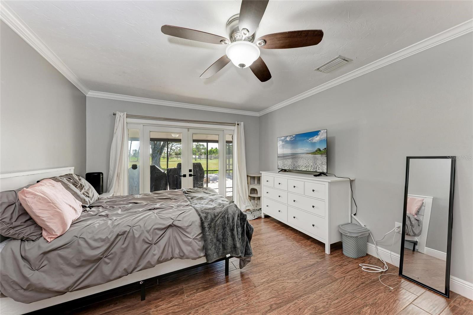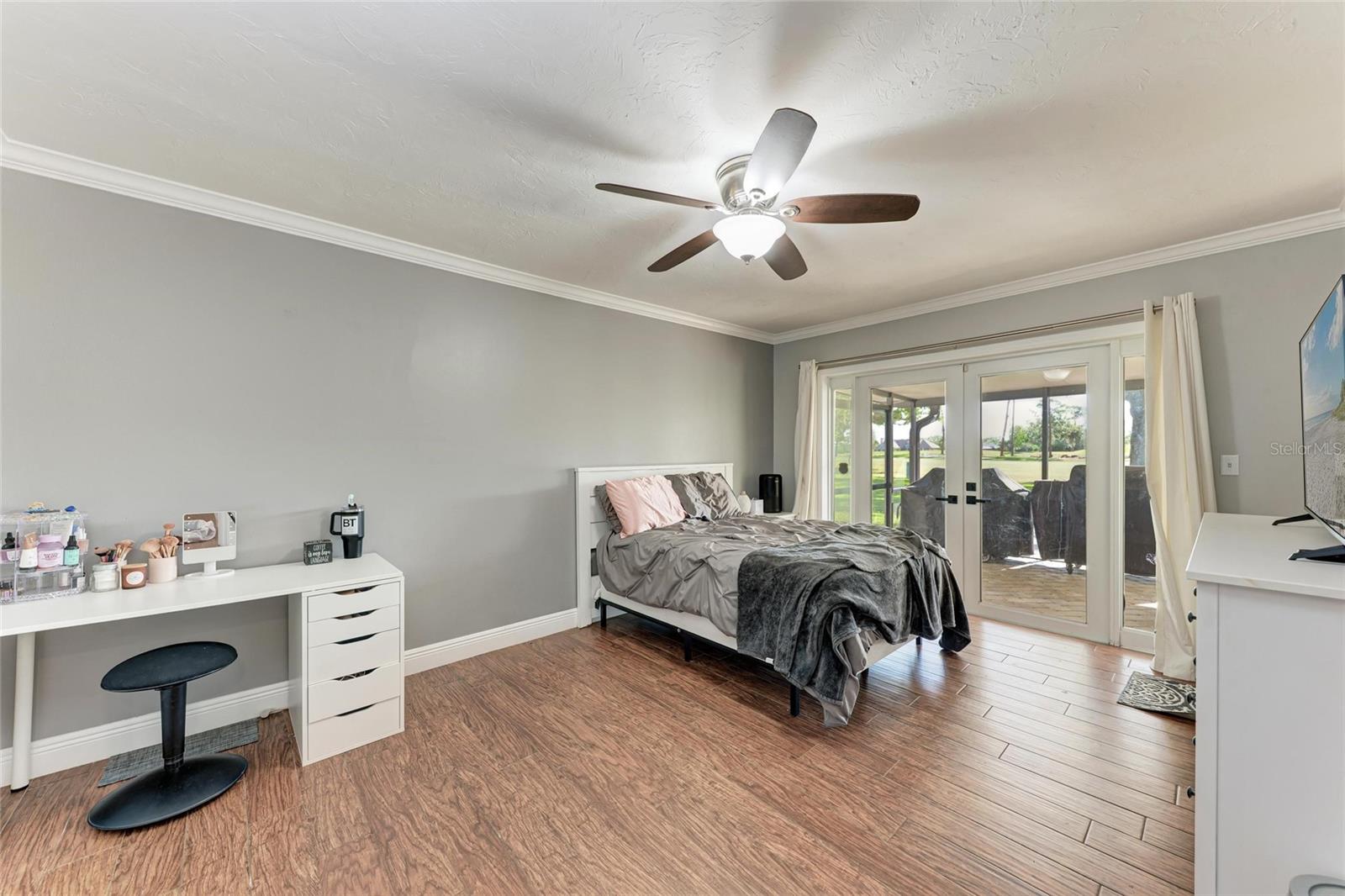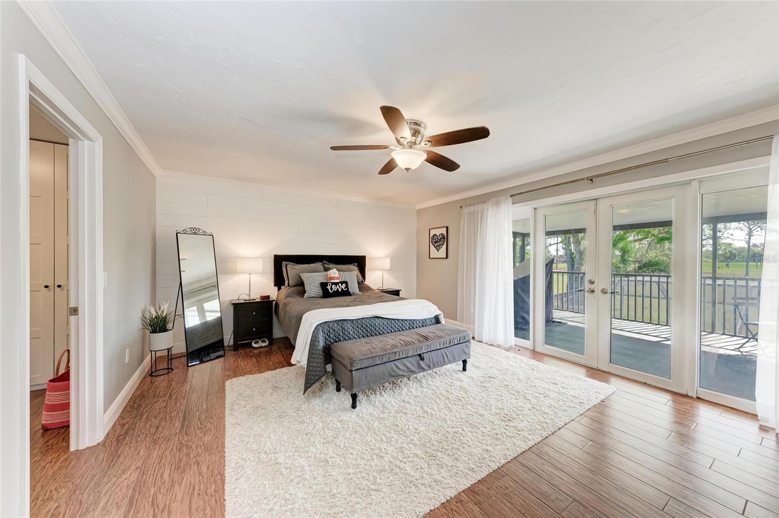 - Exterior: Balcony, French Doors, Rain Gutters