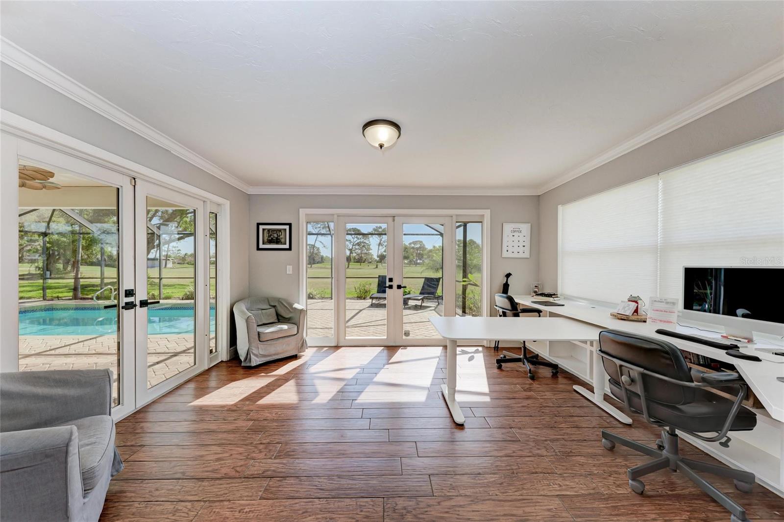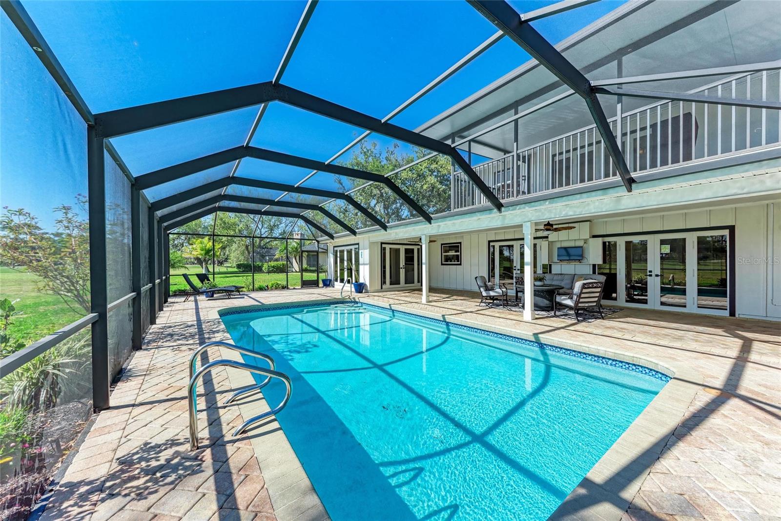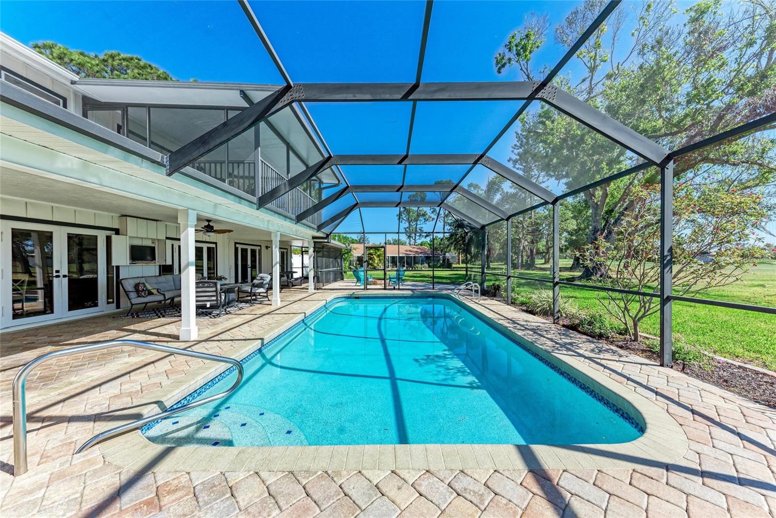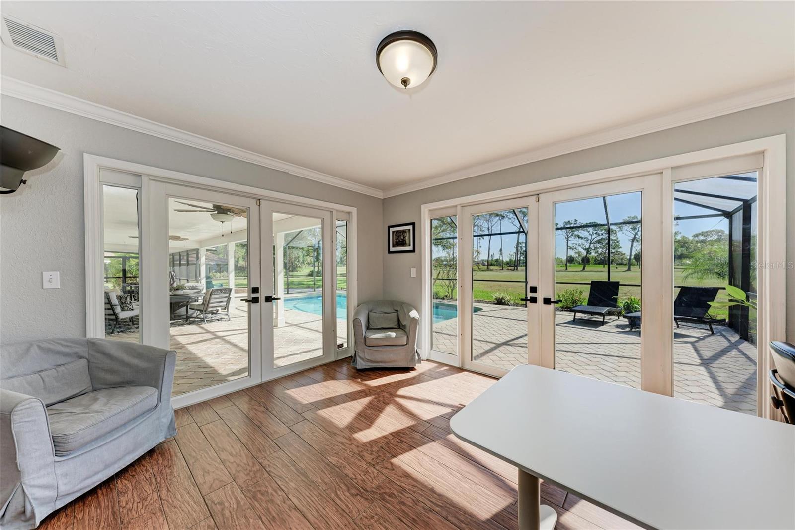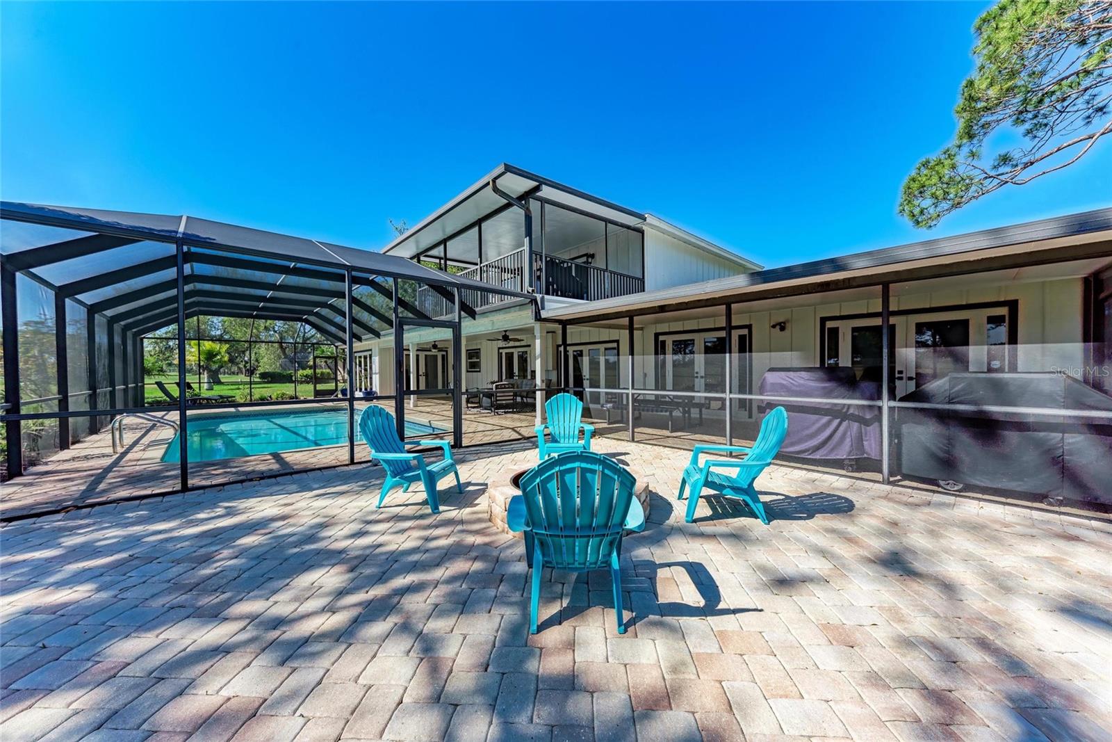 ***PRICE IMPROVEMENT ***Looking for an amazing Golf Course Retreat with Stunning Outdoor OasisWelcome to 4283 Southwell Way, a beautifully maintained 3-bedroom, 2.5-bathroom home nestled in the desirable Bent Tree Village community of Sarasota. This spacious 2,418 sq ft residence offers a perfect blend of comfort, elegance, and breathtaking golf course views. As you step inside, you'll be greeted by a formal living and dining area with stunning wood tile floors that create a warm and inviting atmosphere. The open kitchen features granite countertops, wood cabinets, and overlooks the family room, complete with built-ins and a cozy wood-burning fireplace--perfect for gatherings. Just off the family room, a bright and airy sunroom provides additional living space, perfect for a home office, reading nook, or simply enjoying the beautiful backyard views.Upstairs, the luxurious master suite boasts a huge walk-in closet and a private screened balcony with serene golf course views. Situated on a 0.4-acre cul-de-sac lot, this home offers privacy and tranquility, with picturesque views overlooking three holes of the Bent Tree Golf Course. The lush landscaping and mature trees enhance the beauty of this peaceful retreat.Step outside to your own private backyard oasis, featuring a large sparkling pool, spacious patio, and cozy firepit--perfect for entertaining, relaxing, and making the most of Florida's outdoor lifestyle. Whether you're hosting gatherings with family and friends, lounging poolside with a book, or enjoying al fresco dining under the stars, this space is designed for ultimate enjoyment. The firepit creates a warm and inviting ambiance for cool evenings, while the expansive yard provides additional space for gardening, pets, or simply unwinding in a peaceful, natural setting.Bent Tree Village is a highly sought-after community known for its scenic surroundings and access to the Bent Tree Country Club, featuring an 18-hole championship golf course. With a low HOA fee of approximately $28 a month, this neighborhood provides an incredible lifestyle at an unbeatable value. Conveniently located near top-rated schools, shopping, dining, and Sarasota's world-famous beaches, this home is truly a gem.Don't miss this rare opportunity to own a move-in-ready golf course home with an incredible backyard retreat. Schedule your private showing today!
