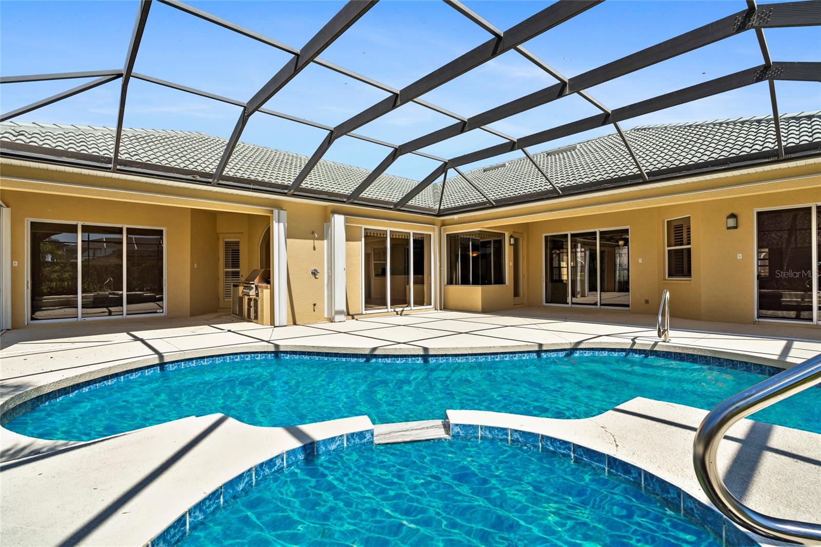 Welcome to 5270 White Ibis Drive, a stunning residence nestled within the highly sought-after gated community of Heron Creek Golf and Country Club in North Port, Florida. This beautifully designed home offers a perfect blend of luxury, comfort, and functionality, featuring 3 spacious bedrooms, 3 full bathrooms, and a versatile den ideal for a home office or study. With over 2,700 square feet of living space, the split and open floor plan is enhanced by elevated ceilings throughout, including elegant tray ceilings in the bedrooms, creating an airy and inviting ambiance.The heart of the home is the gourmet kitchen, which seamlessly overlooks the family room and boasts solid wood cabinetry, granite countertops, a center island, stainless steel appliances, and a built-in oven--perfect for both everyday living and entertaining. The primary suite is a private retreat with expansive custom walk-in closets for both him and her, and a luxurious en-suite bath. Every window throughout the home is adorned with classic plantation shutters, and custom sliding hurricane shutters enclose the entire patio for peace of mind, along with hurricane protection for all exterior windows.Step outside to your own personal oasis featuring a private pool and spa, a spacious covered lanai, and an additional open patio area perfect for sunbathing or relaxing with guests. The outdoor kitchen is fully equipped with a grill, refrigerator, sink, and more, making it ideal for hosting gatherings year-round. Additional highlights include a separate laundry room with a utility sink and an oversized two-car garage offering ample storage space.Residents of Heron Creek enjoy access to exceptional community amenities, including a 27-hole championship golf course designed by Arthur Hills, a state-of-the-art fitness center with saunas and locker rooms, a resort-style pool and spa with a sun deck, pristine tennis courts, and a 21,000-square-foot clubhouse offering a restaurant, caf, and event spaces for banquets and weddings. With three different membership packages available, there's an option to fit every lifestyle.Conveniently located near world-renowned beaches, top-rated restaurants, shopping destinations, and with quick access to I-75 for easy commuting, this home offers the perfect balance of luxury and location. Don't miss the opportunity to make this exceptional property your own.
