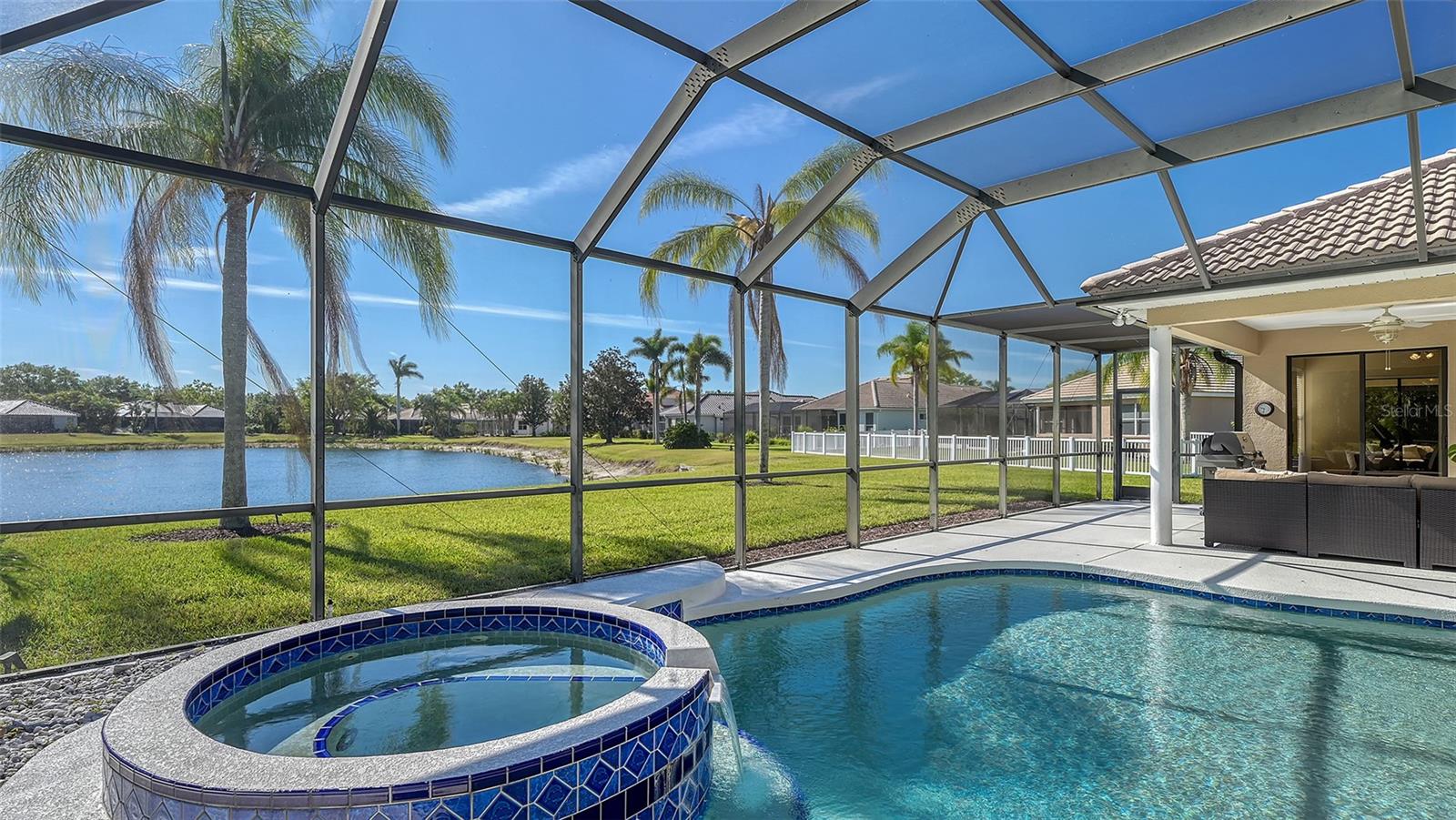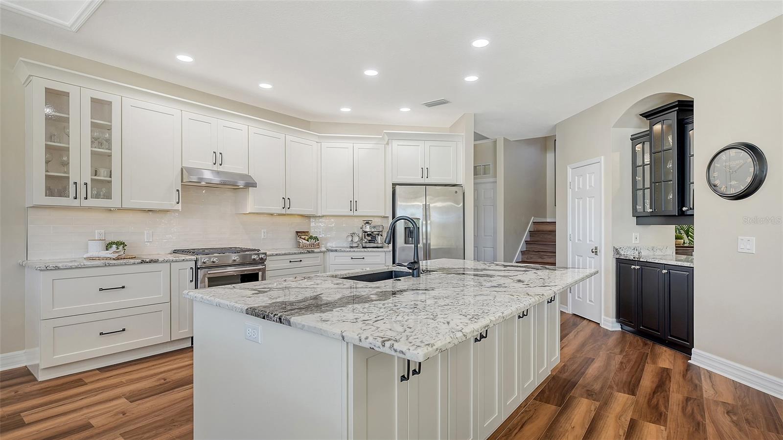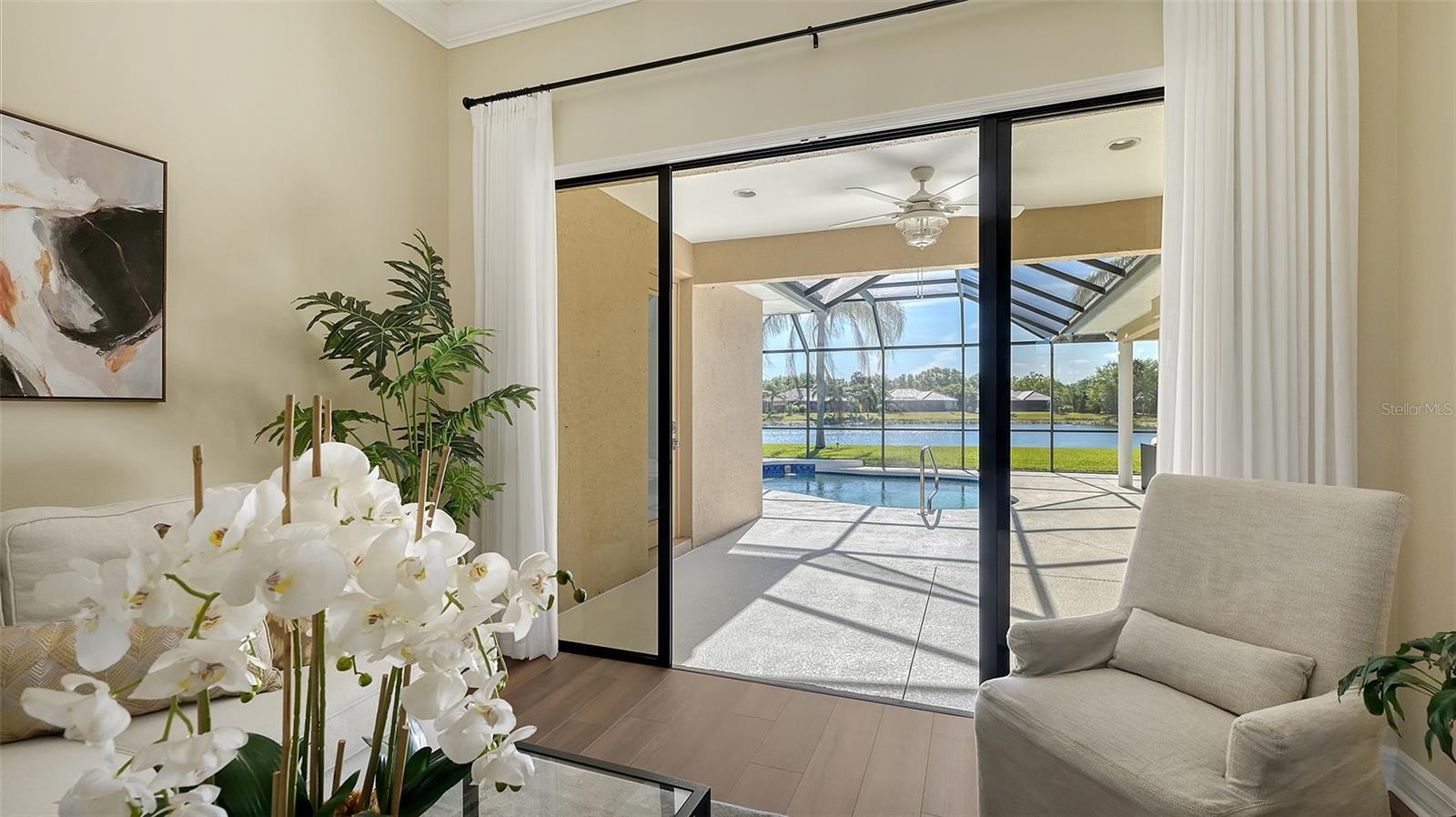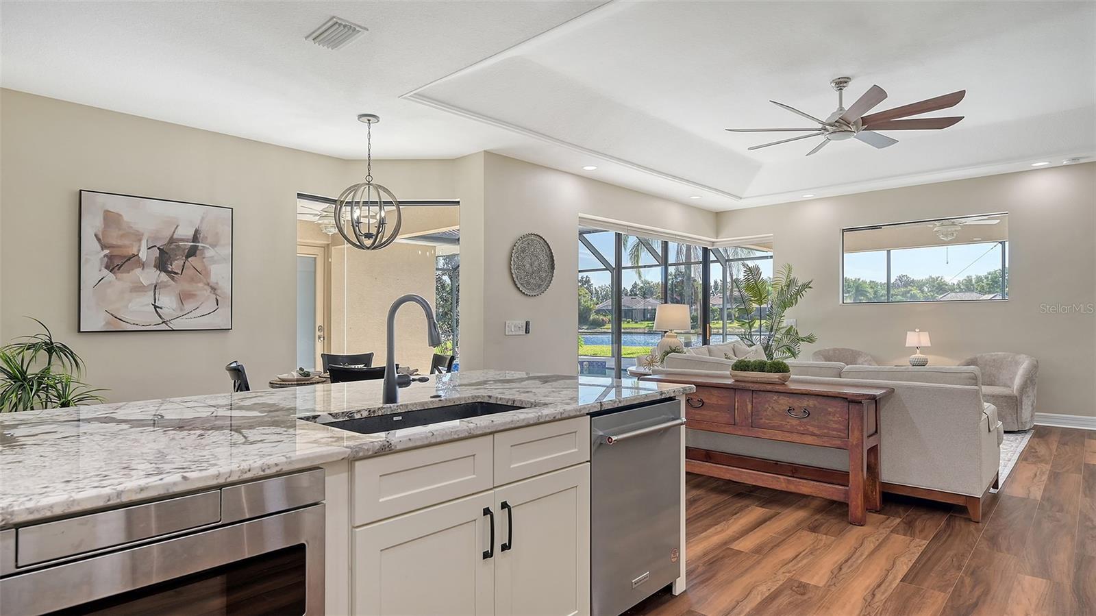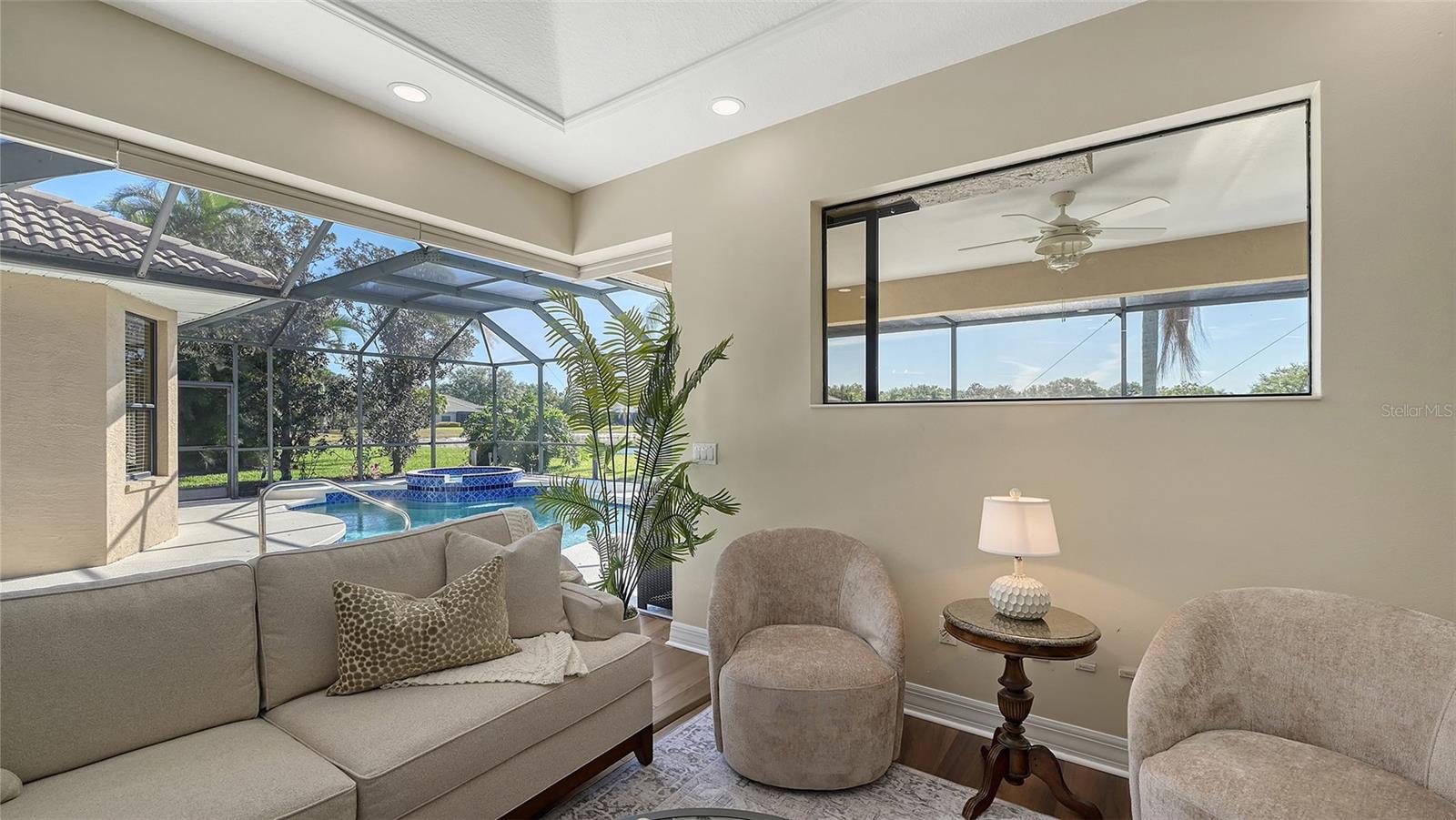 Welcome to this beautifully remodeled and move-in-ready Lee Wetherington home, perfectly nestled in the heart of Lakewood Ranch. Enjoy breathtaking and private views of the serene lake from this thoughtfully updated residence.Boasting five bedrooms, four full baths, and multiple living spaces, this home is designed for both comfort and versatility. The expansive floor plan includes a formal dining room, butler's bar, executive office, and a flexible upstairs fifth bedroom--ideal as a bonus room, guest retreat, or in-law suite with a full bath.The gourmet kitchen has been completely renovated, featuring high-grade granite countertops, a stylish tile backsplash, stainless steel appliances (including range hood, 6-burner gas range, refrigerator, dishwasher, and an in-cabinet microwave), and an oversized island with storage and seating. The stunning soft-close wood cabinetry and large walk-in pantry complete this chef's dream.The primary suite is a true sanctuary with two custom walk-in closets, a cozy sitting area, private lanai access, and a completed renovated, spa-inspired bathroom featuring separate vanities, a walk-in shower, and a soaking tub.Step outside to your peaceful oasis with an expansive lanai with a heated pool and spa, where you can relax and take in the stunning lake views--perfect for entertaining and embracing the Florida lifestyle.Additional upgrades include: new whole-house generator, new luxury vinyl flooring throughout (no carpet!), new light fixtures, ceiling fans, and LED lighting, exquisite crown molding & tray ceilings, fresh interior paint, and a well-appointed laundry room with utility sink and cabinetry.Located in Riverwalk Ridge, a hidden gem of Lakewood Ranch, this home is within an A-rated school district and just minutes from Lakewood Ranch Main Street, Waterside Place, UTC Mall, downtown Sarasota, three airports, and world-famous beaches including Siesta Key, Lido Key, Longboat Key, and Anna Maria Island.This exceptional home won't last long--schedule your private showing today!