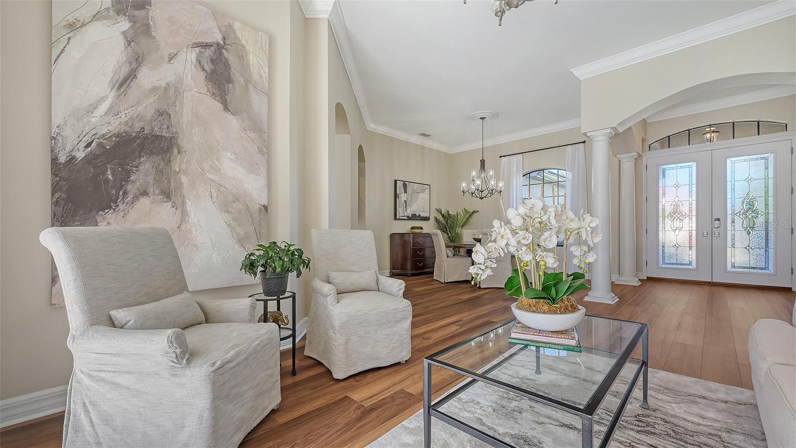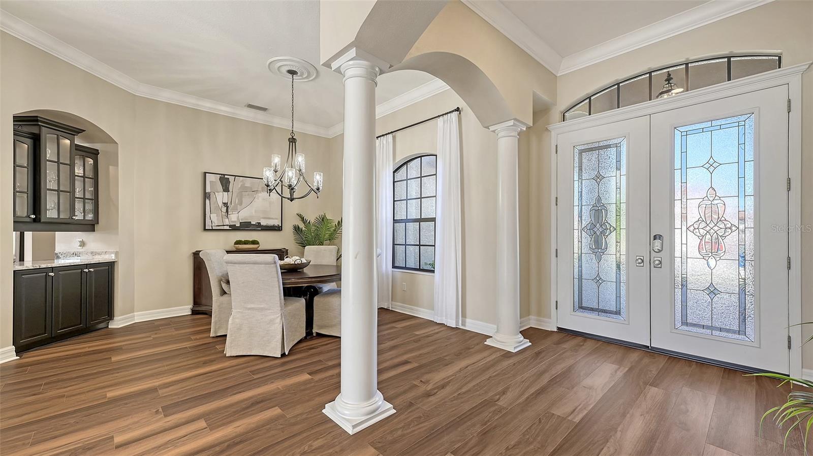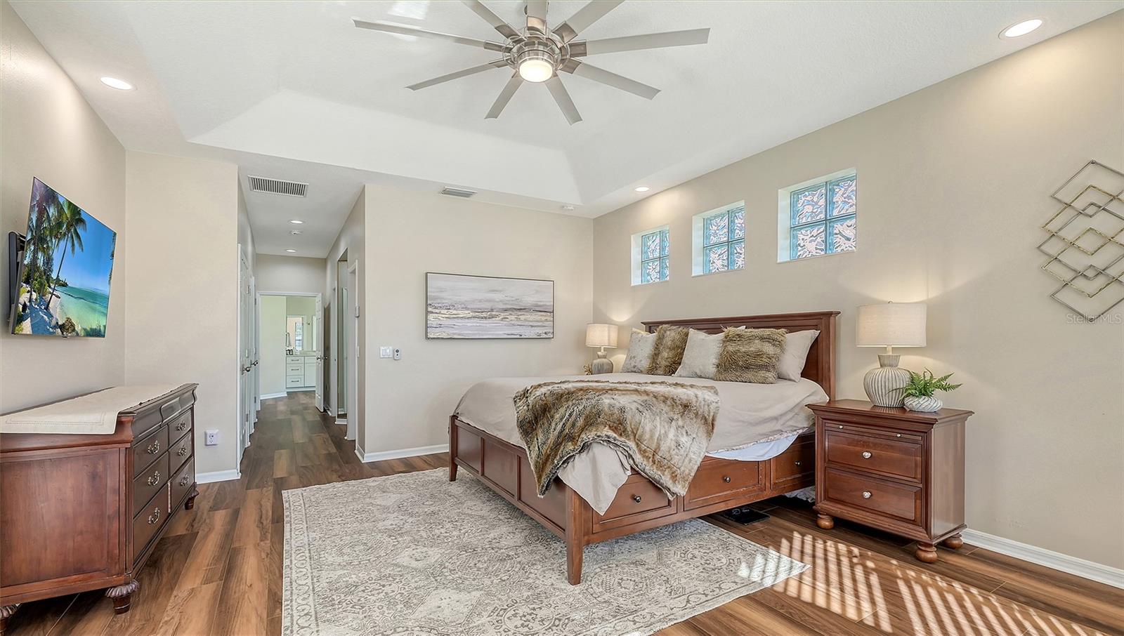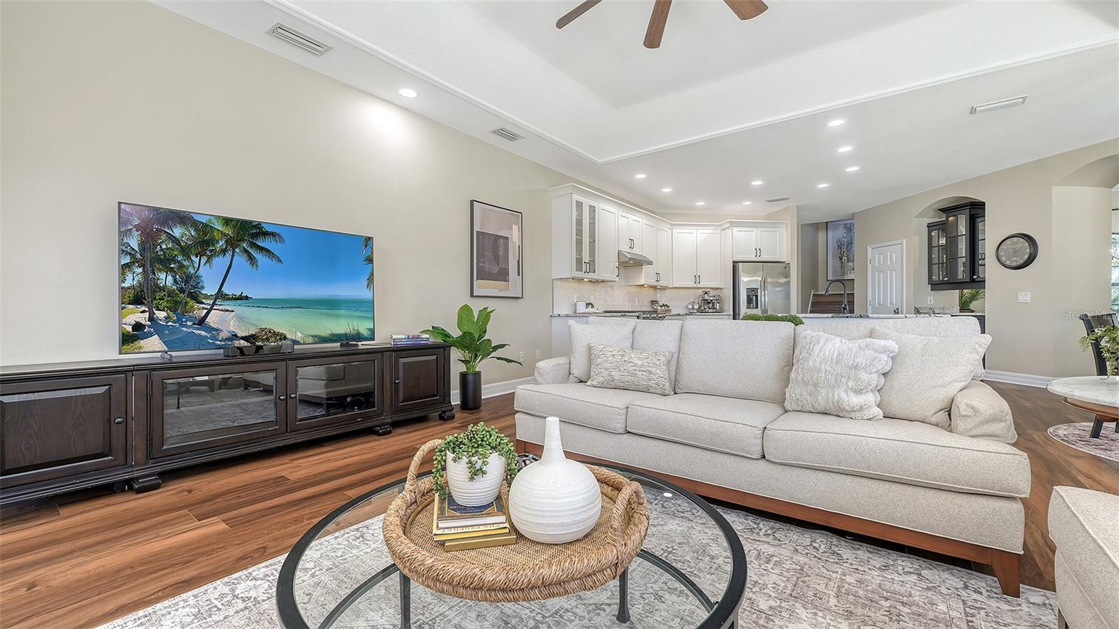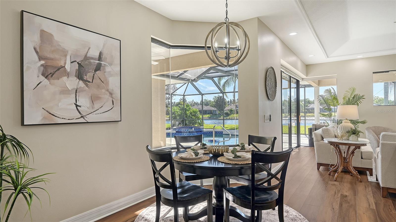 Welcome to this beautifully remodeled and move-in-ready Lee Wetherington home, perfectly nestled in the heart of Lakewood Ranch. Enjoy breathtaking and private views of the serene lake from this thoughtfully updated residence.Boasting five bedrooms, four full baths, and multiple living spaces, this home is designed for both comfort and versatility. The expansive floor plan includes a formal dining room, butler's bar, executive office, and a flexible upstairs fifth bedroom--ideal as a bonus room, guest retreat, or in-law suite with a full bath.The gourmet kitchen has been completely renovated, featuring high-grade granite countertops, a stylish tile backsplash, stainless steel appliances (including range hood, 6-burner gas range, refrigerator, dishwasher, and an in-cabinet microwave), and an oversized island with storage and seating. The stunning soft-close wood cabinetry and large walk-in pantry complete this chef's dream.The primary suite is a true sanctuary with two custom walk-in closets, a cozy sitting area, private lanai access, and a completed renovated, spa-inspired bathroom featuring separate vanities, a walk-in shower, and a soaking tub.Step outside to your peaceful oasis with an expansive lanai with a heated pool and spa, where you can relax and take in the stunning lake views--perfect for entertaining and embracing the Florida lifestyle.Additional upgrades include: new whole-house generator, new luxury vinyl flooring throughout (no carpet!), new light fixtures, ceiling fans, and LED lighting, exquisite crown molding & tray ceilings, fresh interior paint, and a well-appointed laundry room with utility sink and cabinetry.Located in Riverwalk Ridge, a hidden gem of Lakewood Ranch, this home is within an A-rated school district and just minutes from Lakewood Ranch Main Street, Waterside Place, UTC Mall, downtown Sarasota, three airports, and world-famous beaches including Siesta Key, Lido Key, Longboat Key, and Anna Maria Island.This exceptional home won't last long--schedule your private showing today!