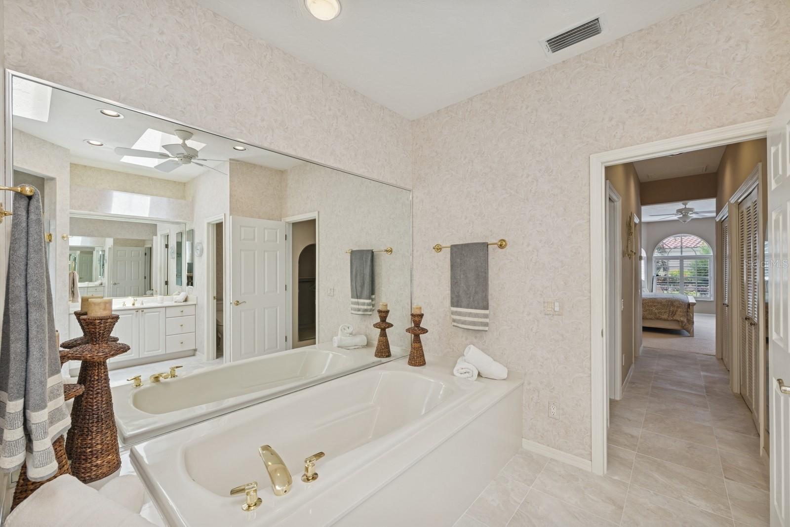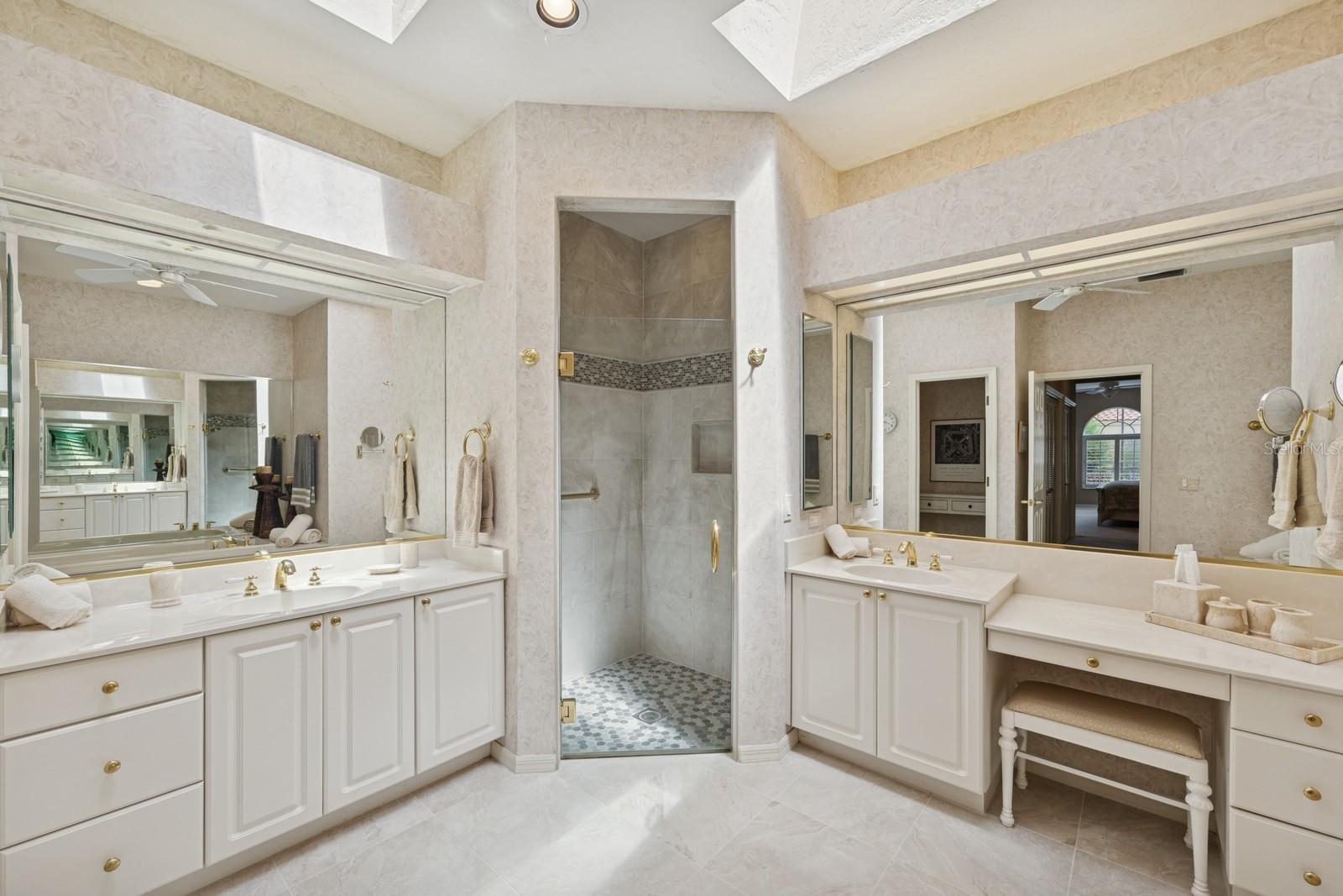 Welcome to Villa Fiore! This residence nestled in the upscale golf club community of TPC Prestancia offers a vibrant lifestyle in a peaceful and intimate environment. Discover the perfect blend of classic charm and modern comfort in this custom built one-story single home presenting over 2700 square feet of living space. Designed with elegant architectural details and soaring ceilings, this home offers a warm and inviting ambiance with a layout that flows effortlessly for both everyday living and entertaining. The kitchen with granite countertops and stainless appliances (new dishwasher and microwave) opens towards the family room. With the spacious living room featuring a wet bar and the dining room, you can easily entertain family and guests. The spacious owner's suite opens toward the lanai and offers ample walk-in closets and plantation shutters. Each of the two guest bedrooms is ensuite, with renovated bathrooms and new flooring and provides ultimate comfort and privacy. The description would not be complete without talking about the expansive lanai showcasing the sparkling heated pool, creating a perfect outdoor retreat in this backyard surrounded by walls on two sides. With a pool bathroom, lawn behind the lanai, and shade at your convenience with the automated awning, you will be pleasantly surprised by this outdoor living space! Laundry and a two-car garage complete this property. The home is extremely well maintained with a tile roof of 2013, an air conditioning unit of 2018 and a newer pool heater. The property was entirely repiped in 2005. With this Mediterranean-inspired home you get the chance to live in a "free maintenance" small community. Bring your imagination to personalize this home to your taste. Offered turnkey, this home is centrally located near Siesta Beach, downtown Sarasota, fine dining and Arts scenes, Sarasota Airport, Sarasota Memorial Hospital. Legacy Trail, Fitness, tennis club and pickleball facilities are minutes away. Bike, jog, walk in this Audubon sanctuary or enjoy two 18-hole golf courses at TPC Golf Club (several memberships are available and optional) and make new friends in this vibrant community. Make your appointment for a private showing! 3D Tour and floorplan available.