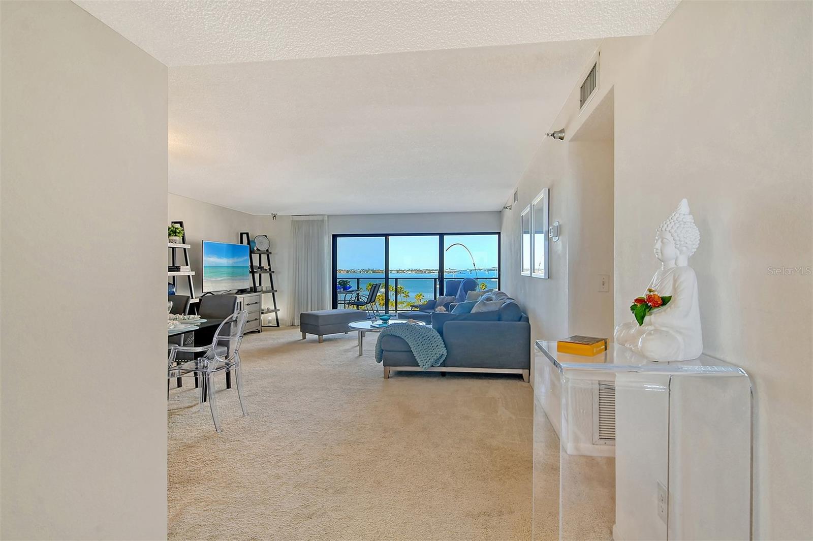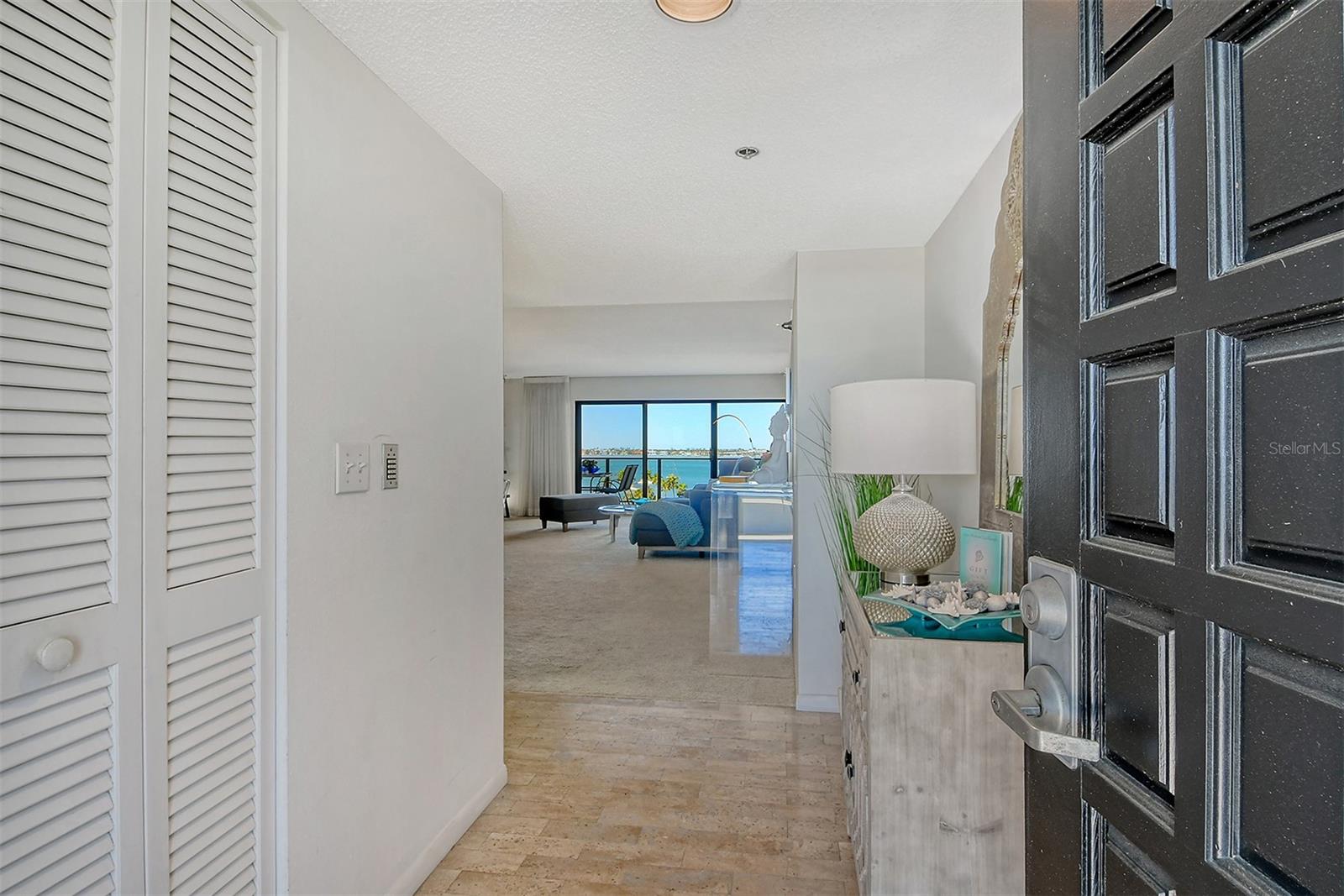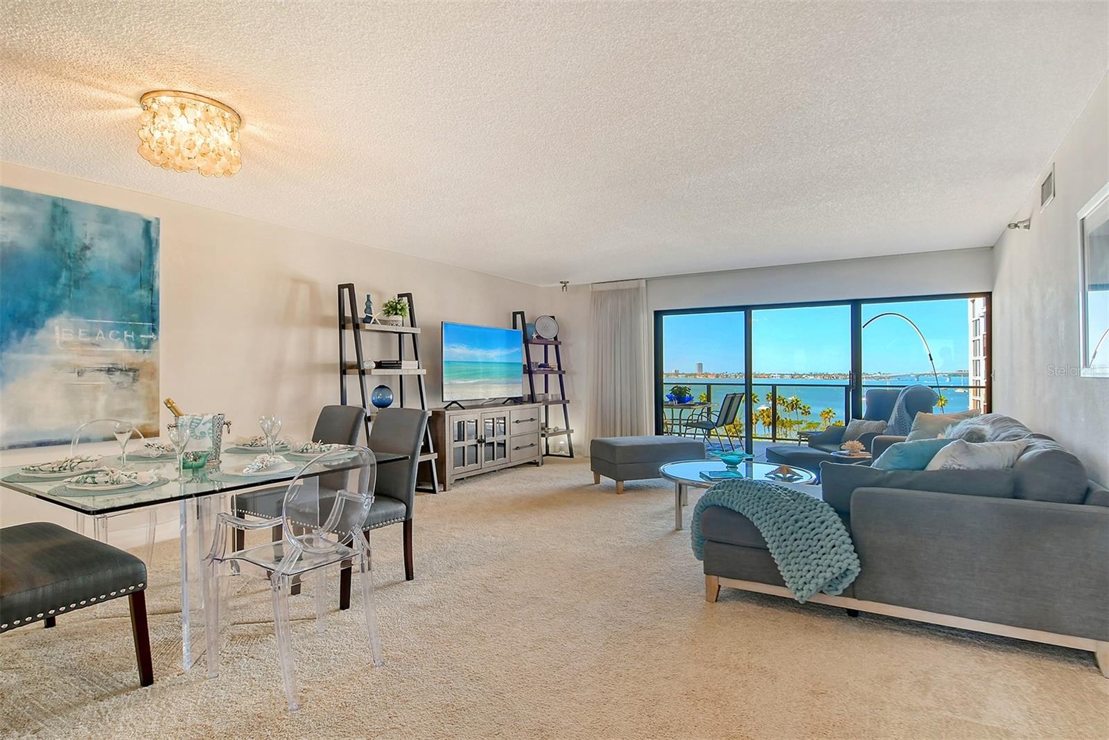 Sensational Sarasota Bay and Sparkling Sunset Views enhance this rarely available Penthouse peacefully tucked away in the heart of downtown Sarasota. Welcome to Palm Place, a gated boutique size urban oasis, offering a lifestyle of convenience and indulgence. From the moment you enter this beautifully maintained 2 bedroom, 2 bath residence your eyes are immediately drawn to the dazzling water, bridge and city views. A wide foyer opens to a brightly lit wraparound kitchen with a breakfast nook featuring eastern city views and a separate dining area adjacent to the great room. The kitchen offers granite countertops, updated appliances, sleek modern cabinetry, and full size washer & dryer, with ample storage and counters that maximize utility and entertaining space. The central living space spans the center of the home, with a wall of glass sliders opening to the oversized terrace, where you are sure to enjoy the fresh balmy breezes, picturesque day-and nighttime views, along with all the daily boating activity near Marina Jacks and beyond to the barrier islands. Two large bedrooms adjoin the great room, with separation from one another to ensure ideal privacy. The owners' suite is a spacious retreat with private access to the terrace, dual closets, a bay window with a cozy bench, relaxing water views, and an en-suite bathroom featuring Jerusalem marble & convenient built-ins. The eastern-facing guest room is enhanced by sunrise city views, ample closet space, and immediate access to the guest bathroom with marble shower. Two underbuilding tandem parking spaces and a large storage unit are assigned to this perfect city retreat and there is plenty of guest parking. Come and discover the allure of Palm Place, a newly updated, gated and secured building with a sparkling private pool, perfectly located on idyllic tree-lined Palm Avenue, where easy access to cultural gems meets the allure of St. Armand's, Lido & Longboat Key, and a variety of nearby beaches. This beautiful penthouse isn't just a home; it's an invitation to savor a lifestyle that seamlessly blends sophistication with coastal charm. Don't miss the opportunity to own show-stopping views at this enviable address of this rare opportunity to own downtown Sarasota!