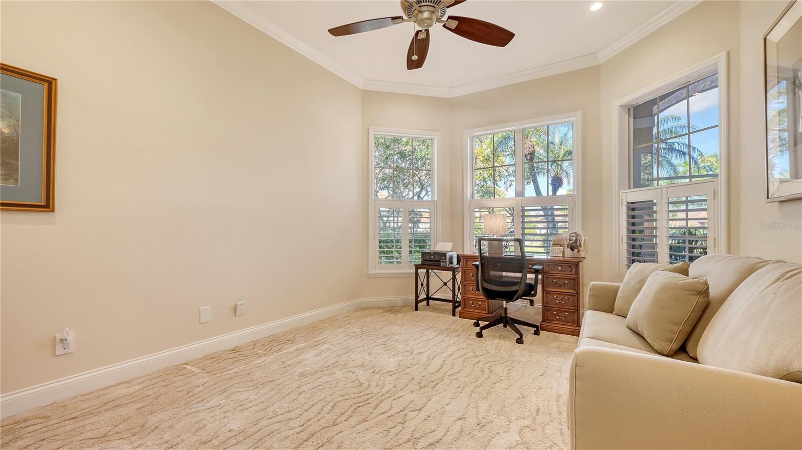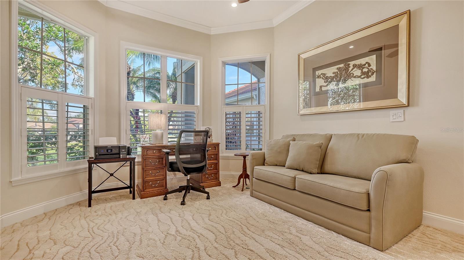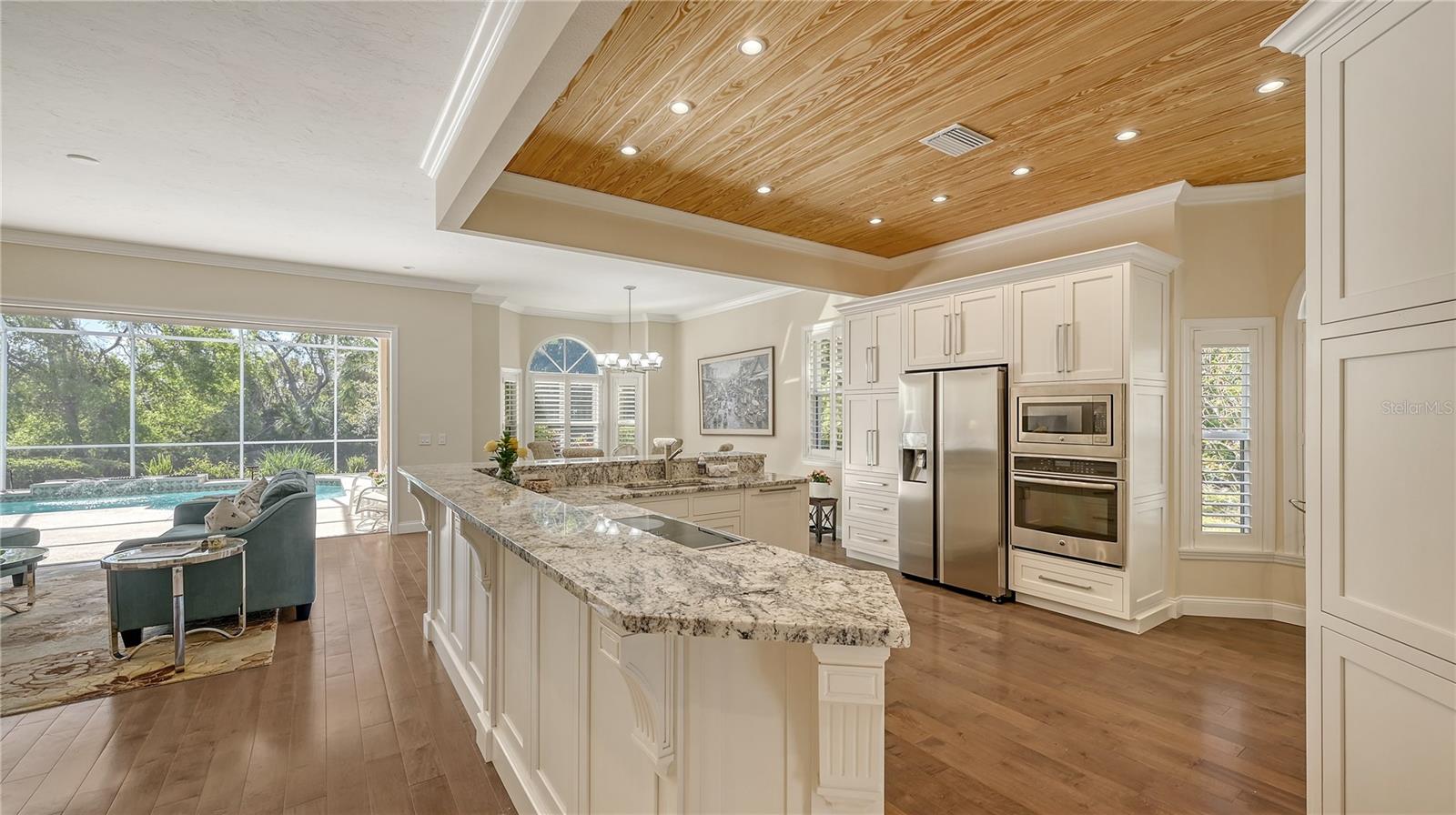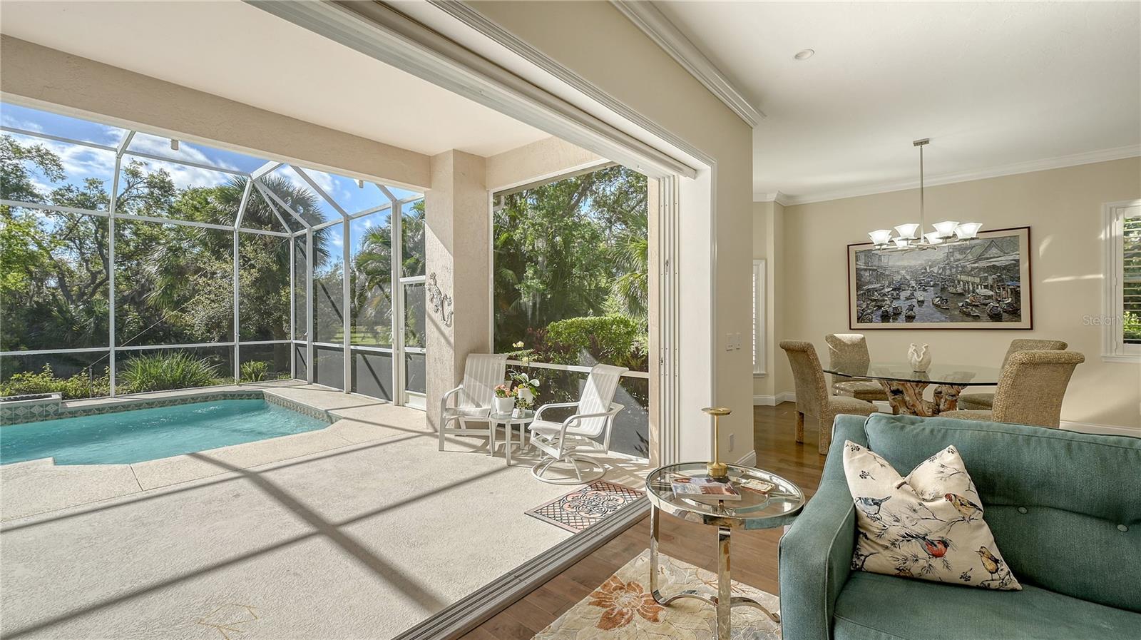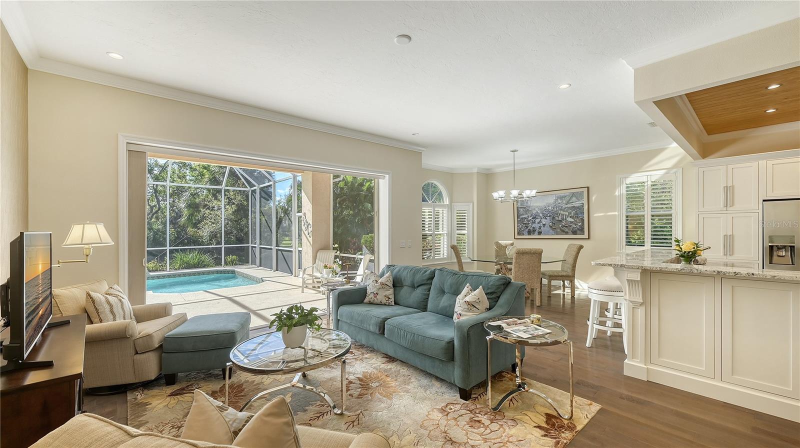 COMPLETELY UPDATED & TURN-KEY FURNISHED POOL HOME...located in the highly sought after community of Laurel Oak Estates! Enjoy modern comforts in this fully renovated 2-bedroom, 2-bathroom home plus den and an air-conditioned bonus room. Designed for both elegance and functionality, this move-in ready gem features a spacious gourmet kitchen with custom cabinetry, high-end stainless-steel appliances, granite countertops, and a breakfast bar. The open floor plan flows seamlessly into the bright living and dining areas, framed by large sliding doors that lead to the private outdoor retreat. The updated bathrooms showcase designer finishes, with a spa-like primary bath offering a walk-in shower, dual vanities, and ample storage. Step outside to your private screened lanai and pool, an ideal space for relaxation or entertaining. The home's wood and tile flooring, tray ceilings, plantation shutters, and thoughtfully designed built-ins add warmth and sophistication throughout. Laurel Oak Estates & Country Club residents enjoy two championship golf courses, a state-of-the-art tennis center, a junior Olympic-sized swimming pool, and a clubhouse offering dining, events, and an active social calendar. With 24/7 gated security and meticulously maintained grounds. UPDATES: Tile Roof 2013, Washer 2023, Water Heater 2021, Pool Equipment, New Flooring, All New Kitchen and Appliances, All New Bathrooms, Fresh Paint, Crown Molding and so much more! Don't miss the chance to own this meticulously updated home in one of Sarasota's most sought-after country club communities--schedule your private showing today!
