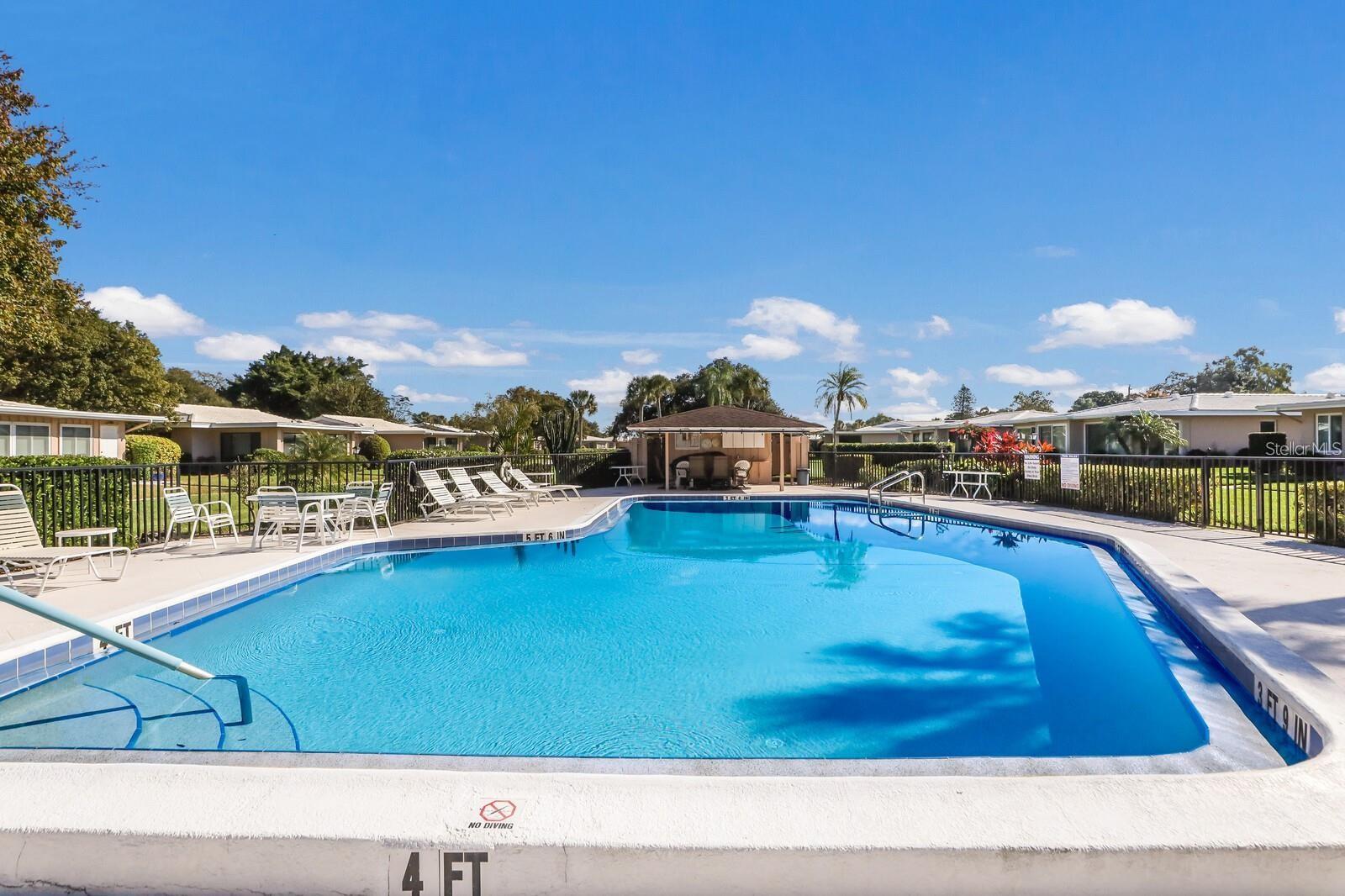 Discover a meticulously maintained move-in ready 2 bed/2 bath villa in the tranquil 55+ community of Village Green in Sarasota. Tucked away on a private dead-end street, this home provides the comfort and exclusivity of a single-family residence with an expansive layout that includes separate living, dining, and Florida rooms--ideal for both relaxation and entertaining. AC replaced in 2020, new water heater 2025, flat roof over garage replaced Sept. 2025 with transferable warranty and exterior painted Dec. 2025. The well-appointed kitchen is a chef's delight, featuring generous counter space, abundant cabinetry, deep set pantry, a built-in desk and room for a cozy bistro set. There's also a large indoor utility room complete with a laundry sink and coupled with a walk-in closet outfitted with extensive shelving and additional cabinets, ensuring that every storage need is met. For added convenience, the separate entrance from the garage to the kitchen makes it easy to transfer groceries from the car. Wood plantation shutters adorn the windows in both bedrooms and large windows throughout the home provide plenty of natural light. The screened patio overlooking a lush greenbelt is a perfect haven for your morning coffee or a great spot to unwind at the end of the day to enjoy the warmth of sunset. Maintain an active lifestyle with the quarter-mile loop right outside your back door, designed for getting your steps in along the picturesque Village Green. Just two doors down, the community pool and ramada create a welcoming setting for neighbors to gather and socialize. Experience a maintenance-free Florida lifestyle at an attractive price, with shopping centers, dining, hospitals, and beautiful beaches all within easy reach. Don't miss your chance to join this vibrant, active community in the heart of Sarasota--schedule your private tour today and experience the charm of Village Green living!