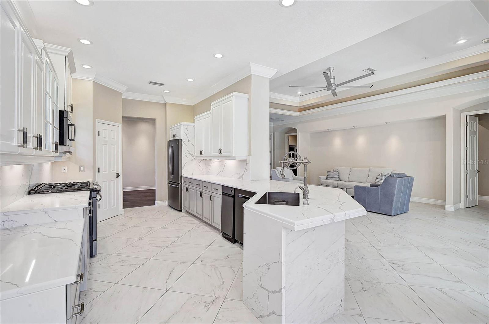 **IMPRESSIVE, MOVE-IN READY, POOL HOME in the Secure and Coveted OAKS PRESERVE, MAINTENANCE-FREE COMMUNITY** This residence boasts an open floor plan that is ideal for entertaining, along with a screened and spacious outdoor pool area that provides privacy and overlooks a nature preserve. Recent updates include a new kitchen, bathrooms, flooring, fans, a four-year-old roof, a newly pavered driveway, and hurricane-rated patio and bedroom doors. All living areas have wood floors or Italian porcelain tile. The kitchen features a gas stove, Waterworks faucet, quartz countertops, modern stainless appliances, and solid wood cabinetry. The breakfast nook adjacent to the kitchen has aquarium glass windows offering a view of the pool and foliage. The family room glass doors stack behind the wall, providing views of the pool and preserve, and they are hurricane-rated. The owner's suite includes two walk-in closets, a linen closet and space for a sitting area or office. Hurricane-rated glass doors overlook the pool. There is a separate study/office/bedroom with built-in wood cabinetry and space and wiring for a media room. The guest suite has an ensuite bath updated with Quartz counters and a vessel sink. Enjoy the utmost in outdoor living with a stunning, PebbleTec POOL with Travertine deck while there is ample space for a spa or additional seating within the spacious screened lanai. Connections for an outdoor kitchen are also available. A beautiful new pavered driveway adds that special curb appeal. In addition to the metal, roll down hurricane shutters, there is an electric hurricane protective screen spanning the lanai area to protect outdoor furniture. The extra deep two car garage affords additional storage options. A collection of unique bougainvillea and crepe myrtle rounds out the gardens. This lot is located outside the FEMA flood zone Bishops Court in The Oaks Preserve is a 24-hour guard-gated community with walking and biking paths. Additionally, there is a year-round heated community pool nearby. THE OAKS is a distinguished, 24hr Guarded, Country Club Community which boasts many accolades including: Platinum Club of America, Emerald Club of the World, Elite Distinguished Club of the World and One of America's Healthiest Clubs - where amenities include Three Restaurants, Ballroom, Two 18-hole championship GOLF courses, award-winning RACQUETS program with 12 Har-Tru Hydro-Grid TENNIS courts, 4 PICKLEBALL Courts, wonderful CROQUET facility, state-of-the-art FITNESS center and junior Olympic, heated community SWIMMING POOL, Bocce, Basketball Court, Playground and more! The Oaks is just minutes from nationally ranked Pine View School, the Legacy Bike Trail, area Beaches and all that Gulf Coast living has to offer. Membership is required and there is NO WAITLIST for GOLF or SOCIAL Membership. **PLEASE ENJOY VIEWING the 3D VIRTUAL TOUR**