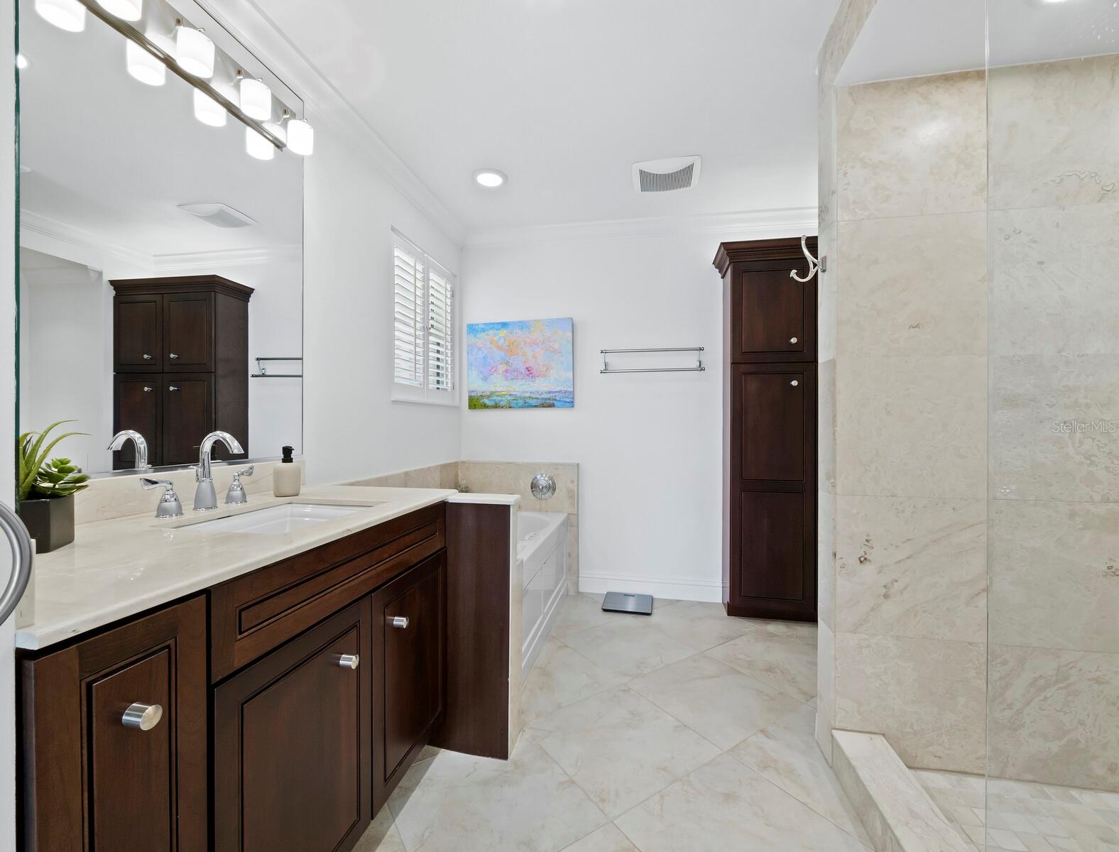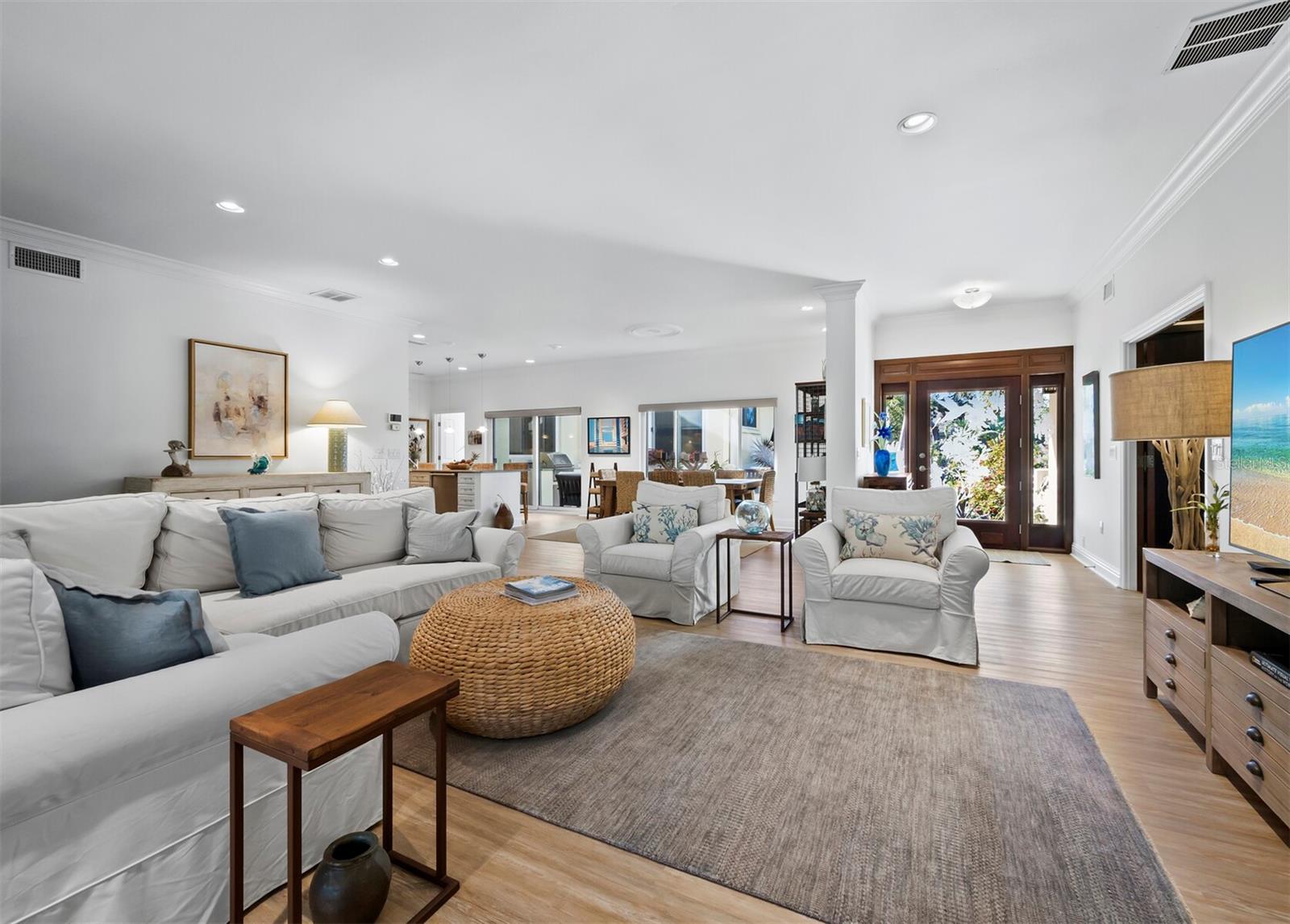 Located in the Bayou, a tropical, sought after residential neighborhood within Bay Isles. The HOA dues include access to the private Bay Isles Beach club. Stunning, custom designed split level home with separate guest quarters. Located in the tropical neighborhood, within Bay Isles, The Bayou. Spacious great room design, 2 primary bedroom suites plus 3 bedrooms & family/tv room in guest quarters. Delightful kitchen with custom cabinetry and high end Thermador appliances. Natural gas 6 burner cooktop, Breakfast room off kitchen & large laundry room with abundant cabinetry & built-in laundry hamper. Hunter Douglas blinds and plantation shutters throughout. 2 HVAC systems (one new Trane variable speed), 2 water heaters,(1 tankless), New Pool Pump and a natural gas whole house generator installed Feb 2022. Mosquito control system works with all natural non toxic dandelions (additional info available). Built-ins in most closets. Primary bedroom walk-in closet is large with additional built-ins. Elegant den with built-in cabinetry & bookshelves, engineered hardwood floors, gas fireplace, wet bar & additional small fridge. True lap pool is 50" long and 8" deep at the deep end. Heated & temperature regulated in the summer to cool the water in the pool. Lovely outdoor entertainment area. Delightful courtyard off kitchen with gas grill, perfect for entertaining. 3-car garage is oversized with ample storage. 1,000 bottle wine cellar in the lower level. A delight to show, excellent value.