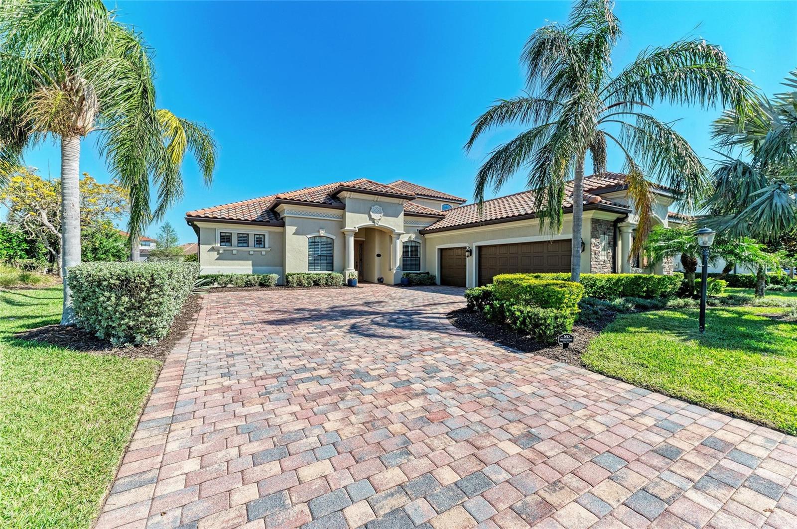 *** PRICE IMPROVEMENT ***. Discover a stunning home in Bridgewater, a fantastic gated community in Lakewood Ranch. This premium corner lot property offers beautiful water views, lush tropical landscaping, and maintenance-free living. The exterior boasts stunning architectural details with decorative stonework, a tile roof, and brick pavers. The fenced yard includes a screened-in lanai, and there's a three-car garage to store all your toys.Step inside to 3,178 sq. ft. of elegant living space, featuring an open floor plan with tile throughout the main living areas and carpet in the upstairs area. High ceilings, upscale finishes, and fresh paint create a modern, comfortable atmosphere. The spacious great room flows seamlessly into the gourmet kitchen, complete with granite countertops, premium appliances, and an oversized island perfect for entertaining. The primary suite comes with a spa-like ensuite bath, and a generous walk-in closet.The private lanai is perfect for relaxation or entertaining, with a heated spa and pool that shows off the stunning pond views. The pool can also be converted to a saltwater system for added convenience. Upstairs, a large bonus room with a kitchenette and full bathroom provides endless possibilities--ideal for a guest suite, media room, or private office.Bridgewater residents enjoy access to a park, playground, and gazebo area overlooking a serene lake. Just outside the neighborhood, you'll find three large lakes, a public playground, and scenic walking trails. Lakewood Ranch is known for its A+ rated schools and is just a short drive from Sarasota, Anna Maria Island, and I-75, offering easy access to Tampa, fine dining, world-class shopping, and the Gulf's famous beaches.Located minutes from top-rated schools, including Lakewood Ranch Preparatory Academy ( a public Tuition- free Charter school) , shopping, dining, and world-class amenities, this home offers the perfect combination of luxury, convenience, and community living. Don't miss the opportunity to own this exquisite home and start living in paradise!