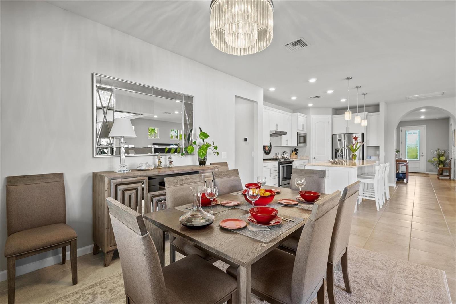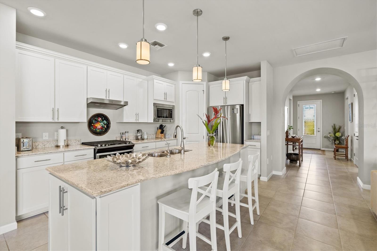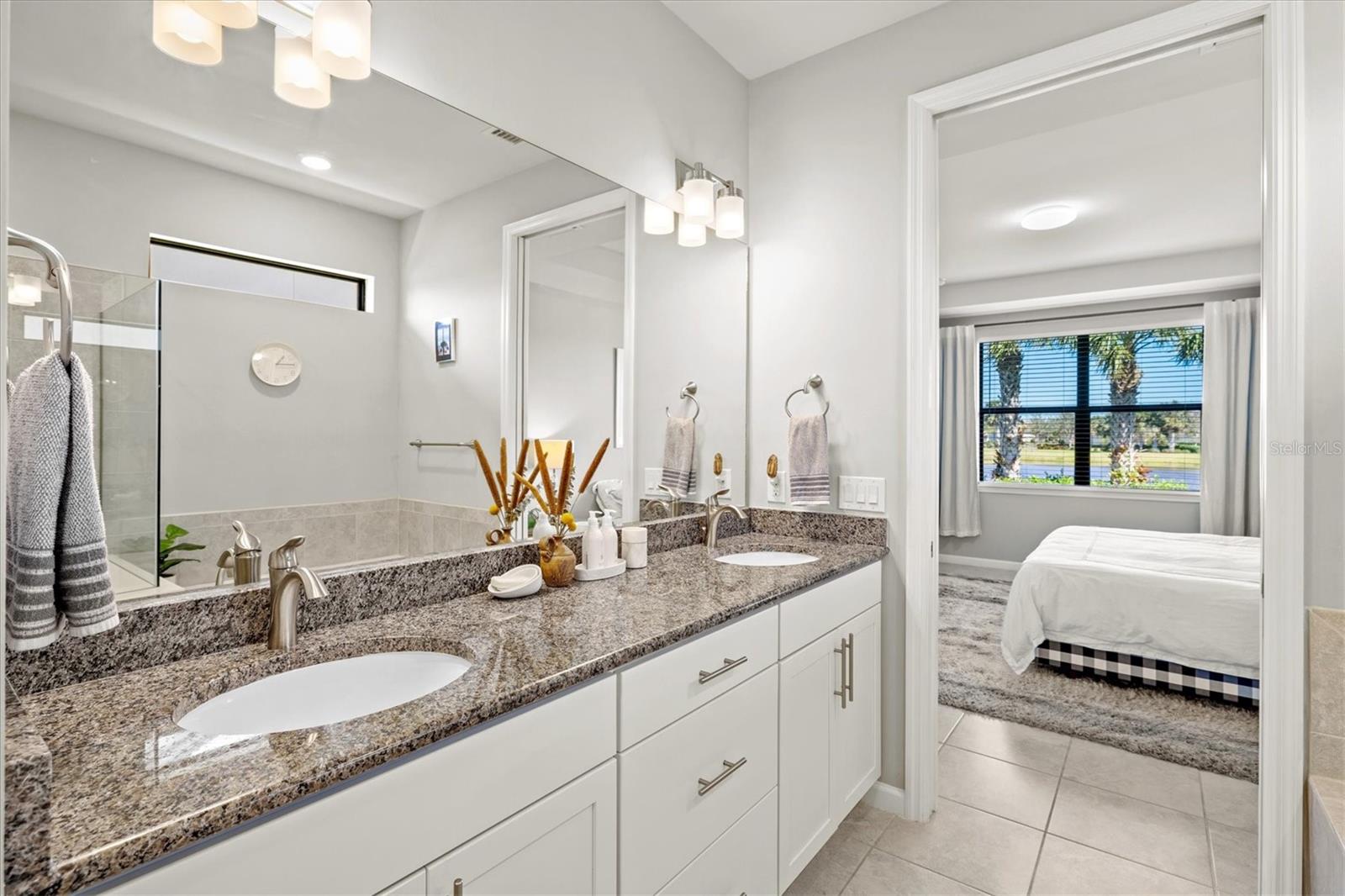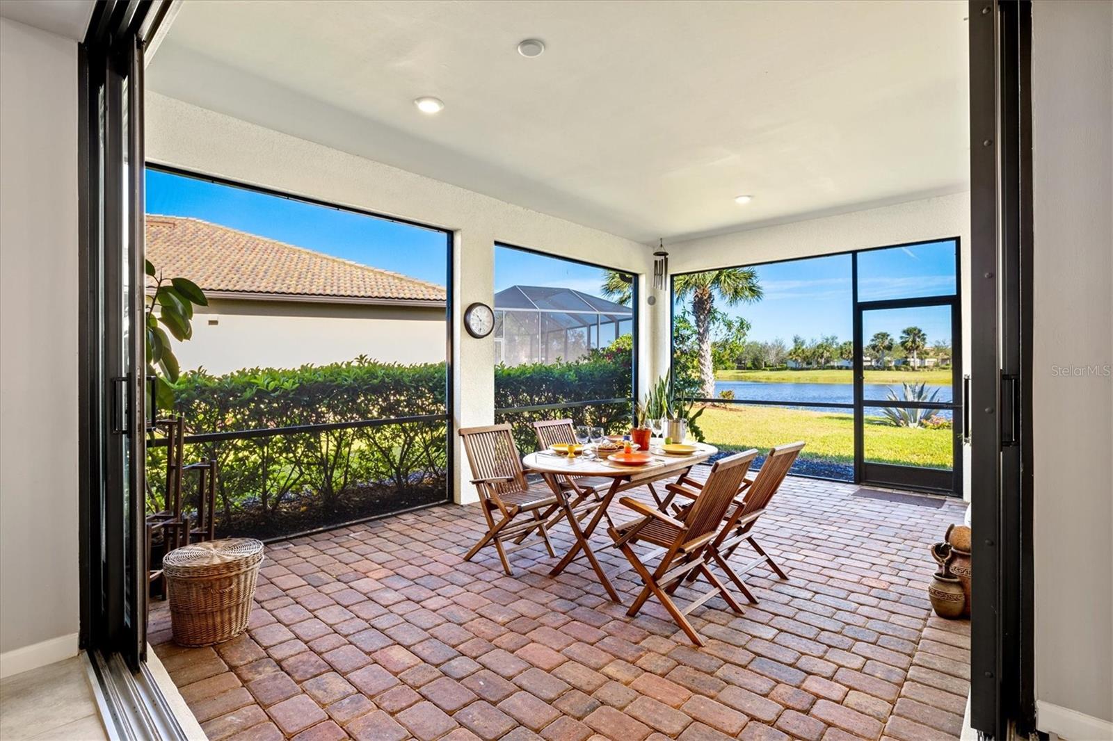 As soon as you pass through the PRIVATE GATES of this desirable community of Hammock Preserve on Palmer Ranch, you will experience a thoughtfully designed Summerwood model by DiVosta Homes just waiting for you to call home. This beautifully UPGRADED RESIDENCE makes an excellent choice for those seeking a QUALITY-BUILT HOME in a PRIME location with LAWN CARE INCLUDED plus it is NOT IN A FLOOD ZONE! Situated on an OVERSIZED LOT with lush landscaping and BRICK PAVERS, this home provides EXTRA STORAGE and PRIVACY while offering breathtaking POND VIEWS filled with natural beauty and wildlife. As you step through the beautiful Lite Deco glass front door, an abundance of NATURAL LIGHT floods the OPEN FLOOR PLAN, welcoming you with warmth and sophistication. The home has been upgraded to include a TRUE FOURTH BEDROOM, ensuring ample space for family and guests. TILE FLOORING throughout guarantees effortless maintenance and lasting durability, while the 2018-installed 690 Pro Series Vitex Central Vacuum simplifies cleaning. Additionally, a 2022 Culligan Medallist Series water treatment system and 2022 Culligan AC30 Good Water Machine further enhance the home's modern conveniences. The great room provides an ideal space for entertaining, complete with an elegant FORMAL DINING ROOM. Release your inner chef as kitchen showcases white WOOD cabinetry with 36-inch upper wall cabinets, QUARTZ countertops, and sleek stainless-steel Whirlpool appliances. A large island with additional storage and a spacious walk-in pantry complete this culinary haven. One of the home's most striking upgrades is the ZERO-CORNER sliding glass doors, seamlessly connecting the indoor and outdoor living spaces. Step onto the EXTENDED pavered, covered, and screened-in lanai to soak in the tranquil WATER VIEWS making it a perfect setting for alfresco dining or serene relaxation. Wake up each morning to panoramic backyard pond views from the luxurious Owner's Suite. This expansive retreat features an impressive ensuite with a walk-in shower, granite countertops, a soaking tub for ultimate relaxation, DUAL WOOD vanities, and a large walk-in closet. Each guest bedroom offers generous space, and the upgraded guest bath includes granite countertops and a FULLY TILED, RECESSED walk-in shower. A spacious laundry area adds even more storage and functionality to this impeccable home. Built with DiVosta's renowned quality construction, the home features steel-reinforced concrete block, professionally engineered roof trusses with hurricane tie-downs, energy-efficient R-30 ceiling insulation, and double-pane insulated low-E windows for superior energy savings and storm protection. Hammock Preserve on Palmer Ranch is a vibrant, amenity-rich, gated community offering a wealth of activities and conveniences with NO CDD FEE. The clubhouse includes a catering kitchen, community room, fitness center, and a lending library/meeting room. Resort-style amenities feature a heated lap pool and spa, barefoot bar, fire pit, and two outdoor poolside grills. For sports enthusiasts, enjoy two bocce courts, two pickleball courts, and two tennis courts, while pet lovers will appreciate the dedicated dog park. There's even a tranquil fishing pier for moments of quiet reflection. Conveniently located within 7 miles is the beautiful Nokomis Beach and 15 miles of Siesta Key Beach, Downtown Sarasota, and UTC Mall. Experience Florida living at its finest in one of Sarasota's most sought-after communities.