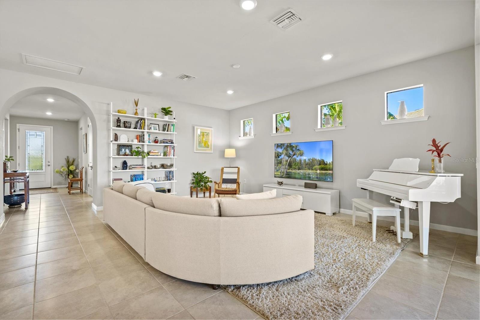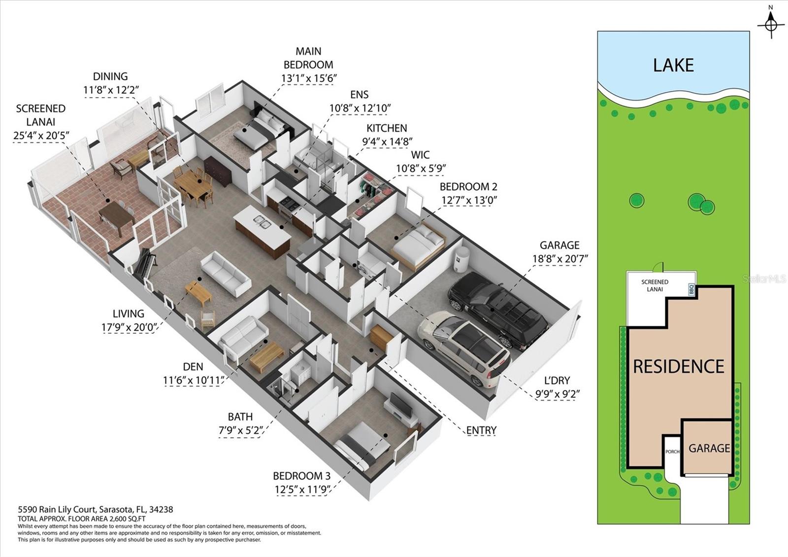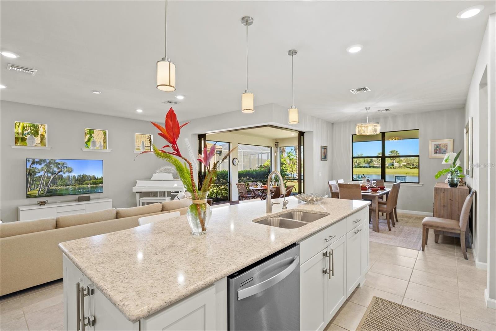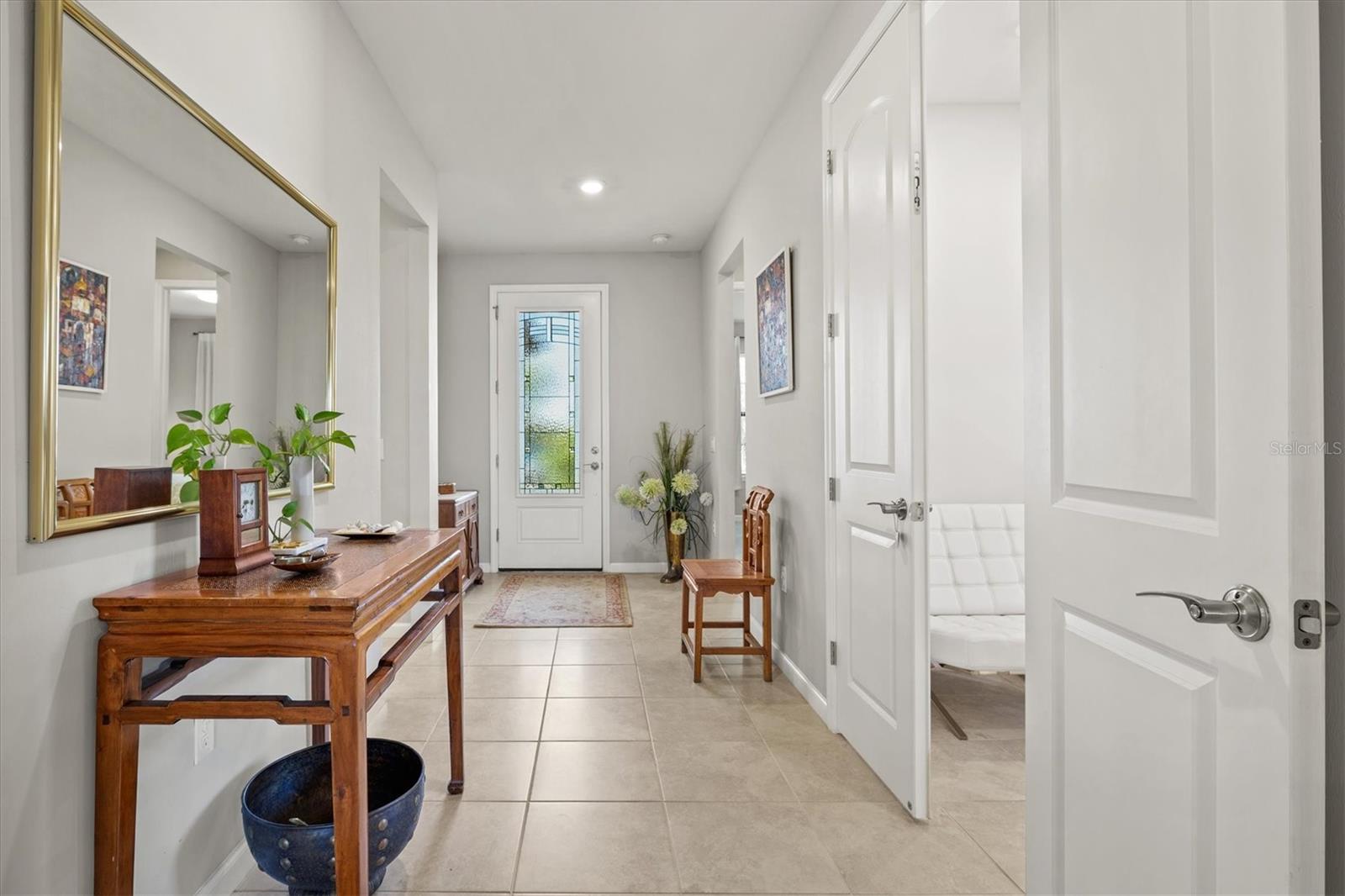 As soon as you pass through the PRIVATE GATES of this desirable community of Hammock Preserve on Palmer Ranch, you will experience a thoughtfully designed Summerwood model by DiVosta Homes just waiting for you to call home. This beautifully UPGRADED RESIDENCE makes an excellent choice for those seeking a QUALITY-BUILT HOME in a PRIME location with LAWN CARE INCLUDED plus it is NOT IN A FLOOD ZONE! Situated on an OVERSIZED LOT with lush landscaping and BRICK PAVERS, this home provides EXTRA STORAGE and PRIVACY while offering breathtaking POND VIEWS filled with natural beauty and wildlife. As you step through the beautiful Lite Deco glass front door, an abundance of NATURAL LIGHT floods the OPEN FLOOR PLAN, welcoming you with warmth and sophistication. The home has been upgraded to include a TRUE FOURTH BEDROOM, ensuring ample space for family and guests. TILE FLOORING throughout guarantees effortless maintenance and lasting durability, while the 2018-installed 690 Pro Series Vitex Central Vacuum simplifies cleaning. Additionally, a 2022 Culligan Medallist Series water treatment system and 2022 Culligan AC30 Good Water Machine further enhance the home's modern conveniences. The great room provides an ideal space for entertaining, complete with an elegant FORMAL DINING ROOM. Release your inner chef as kitchen showcases white WOOD cabinetry with 36-inch upper wall cabinets, QUARTZ countertops, and sleek stainless-steel Whirlpool appliances. A large island with additional storage and a spacious walk-in pantry complete this culinary haven. One of the home's most striking upgrades is the ZERO-CORNER sliding glass doors, seamlessly connecting the indoor and outdoor living spaces. Step onto the EXTENDED pavered, covered, and screened-in lanai to soak in the tranquil WATER VIEWS making it a perfect setting for alfresco dining or serene relaxation. Wake up each morning to panoramic backyard pond views from the luxurious Owner's Suite. This expansive retreat features an impressive ensuite with a walk-in shower, granite countertops, a soaking tub for ultimate relaxation, DUAL WOOD vanities, and a large walk-in closet. Each guest bedroom offers generous space, and the upgraded guest bath includes granite countertops and a FULLY TILED, RECESSED walk-in shower. A spacious laundry area adds even more storage and functionality to this impeccable home. Built with DiVosta's renowned quality construction, the home features steel-reinforced concrete block, professionally engineered roof trusses with hurricane tie-downs, energy-efficient R-30 ceiling insulation, and double-pane insulated low-E windows for superior energy savings and storm protection. Hammock Preserve on Palmer Ranch is a vibrant, amenity-rich, gated community offering a wealth of activities and conveniences with NO CDD FEE. The clubhouse includes a catering kitchen, community room, fitness center, and a lending library/meeting room. Resort-style amenities feature a heated lap pool and spa, barefoot bar, fire pit, and two outdoor poolside grills. For sports enthusiasts, enjoy two bocce courts, two pickleball courts, and two tennis courts, while pet lovers will appreciate the dedicated dog park. There's even a tranquil fishing pier for moments of quiet reflection. Conveniently located within 7 miles is the beautiful Nokomis Beach and 15 miles of Siesta Key Beach, Downtown Sarasota, and UTC Mall. Experience Florida living at its finest in one of Sarasota's most sought-after communities.