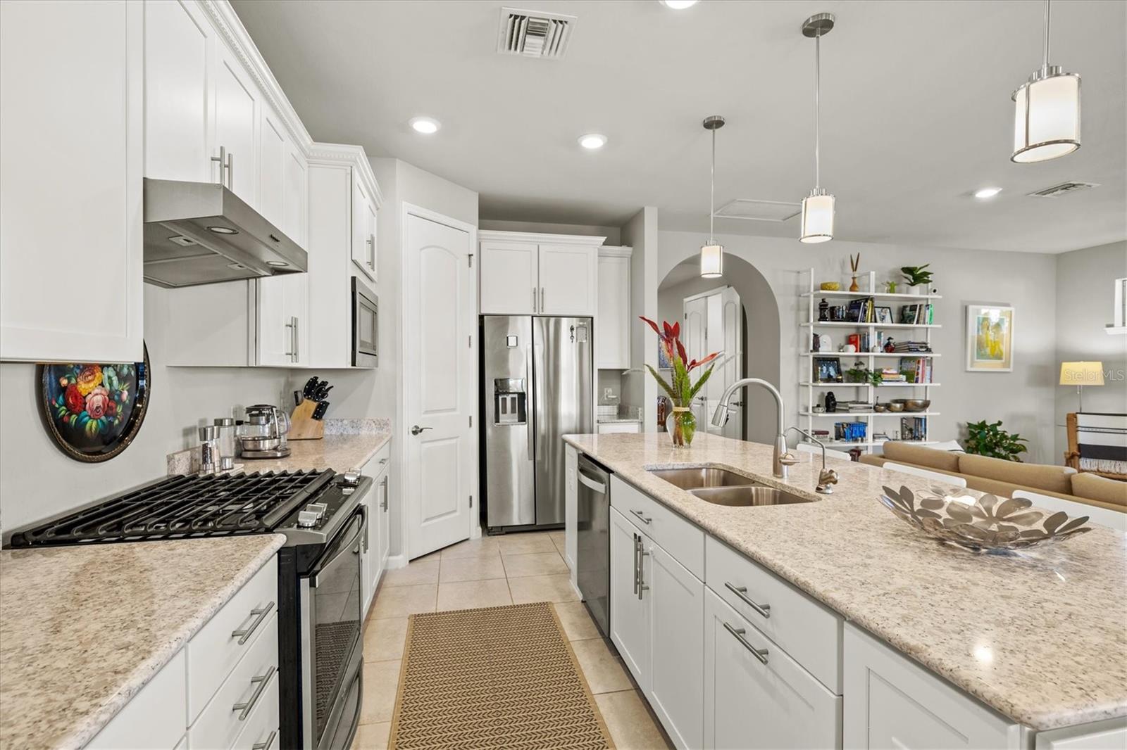 - Appliances: Dishwasher, Disposal, Dryer, Exhaust Fan, Gas Water Heater, Kitchen Reverse Osmosis System, Microwave, Range, Range Hood, Refrigerator, Washer, Water Filtration System, Water Softener