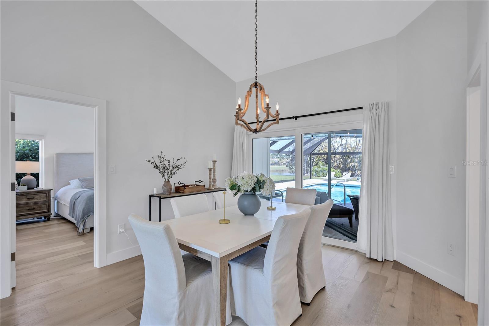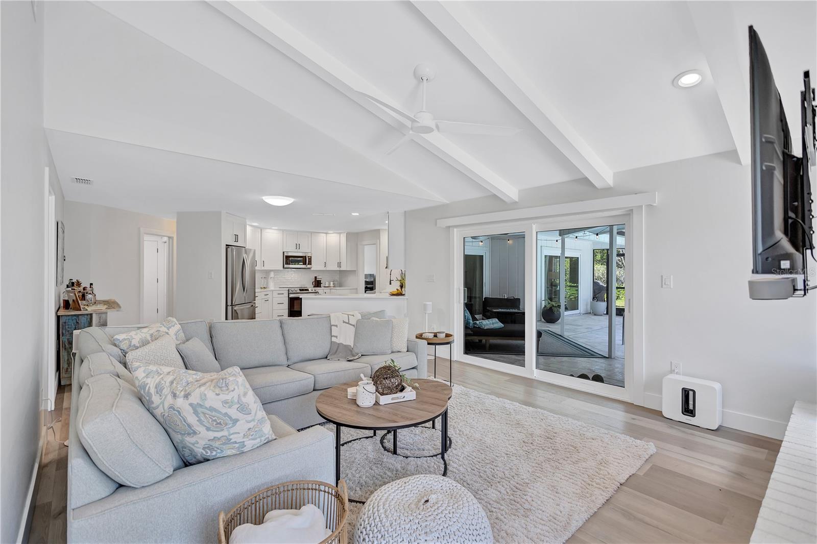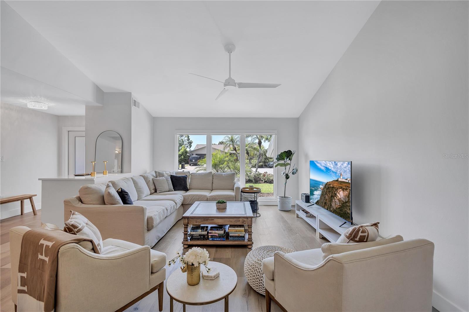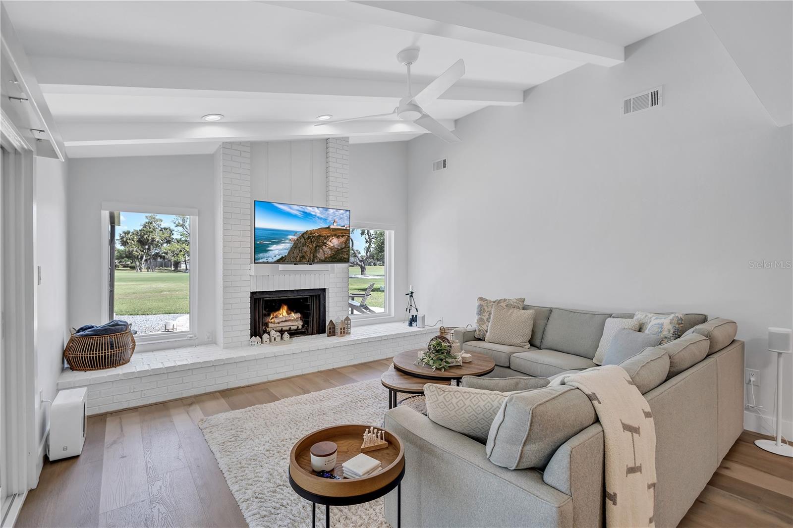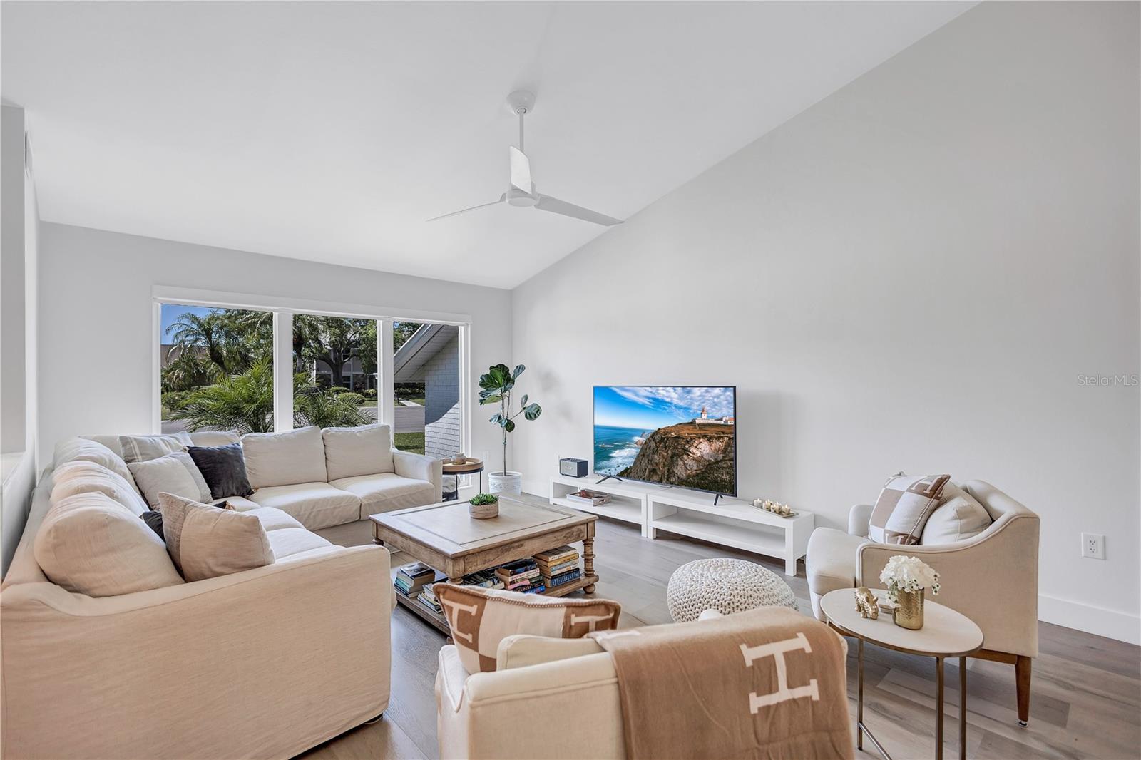 FULLY FURNISHED and MOVE-IN READY. Welcome home to the best of Sarasota. This updated home is located in Country Club of Sarasota in the heart of Palmer Ranch. Sitting on a spacious lot, this property allows golf course and lake views while strategically placed to offer a quiet and serene setting. Drenched in natural light, this 3-bedroom split plan home has been beautifully updated to enhance the vaulted ceilings, walls of sliding glass doors, and an open and inviting floorplan. Luxury vinyl wide plank flooring flows throughout allowing a smooth transition between rooms. Impact windows and sliders open to the expanded outdoor areas. The enlarged pool deck, panoramic pool cage and pavered outdoor sitting area with firepit are easily accessed to seamlessly merge inside with outside areas. The living/dining room is open and inviting. The kitchen is the hub of the home and connects the living/dining and family rooms. The updated and FULLY STOCKED kitchen opens to the family room with wood burning fireplace and views of the golf course. Quartz countertops, Kraftmaid cabinets and new appliances make the kitchen perfect for entertaining. The Primary Bedroom is had sliders opening to the pool, vaulted ceiling, and a large walking closet with built in shelving. The en-suite bathroom has his/her sink areas, a beautiful walk-shower, heated towel rack, and a private 12'x6' outdoor lounging patio. There are two additional bedrooms with a fully updated bath. One bedroom had sliders opening to the outdoor seating area, while the 3rd bedroom has a private patio area perfect for sunning. The pool area contains the 3rd full bath with shower. The upgrades are numerous including: interior and exterior painting, new pool heater, tumbled marble pool deck, impact garage door, electrical panel, new light fixtures. Join Prestancia and take your golf cart down the street and across the bridge to the golf courses. Country Club of Sarasota is close to Legacy Trail, Siesta Key beaches, Shopping/Entertainment, and all Sarasota has to offer. Don't miss this amazing property!