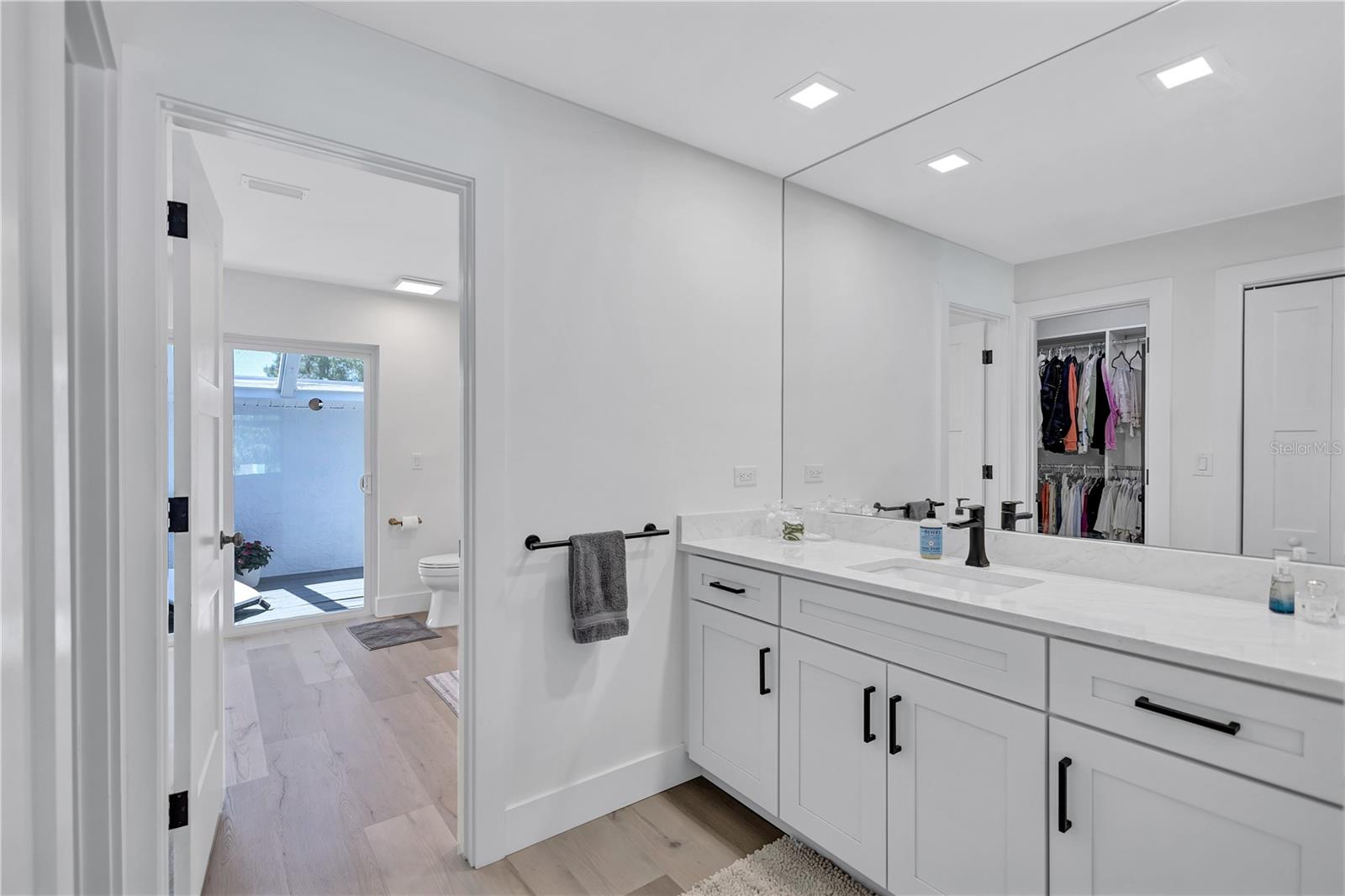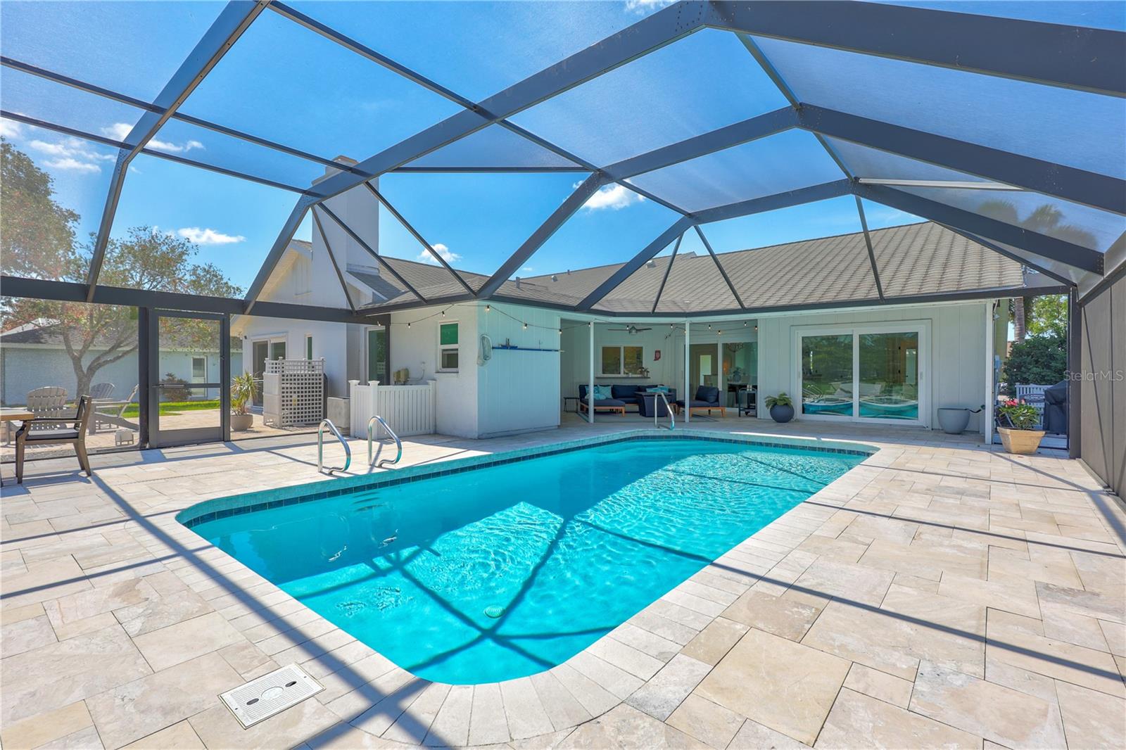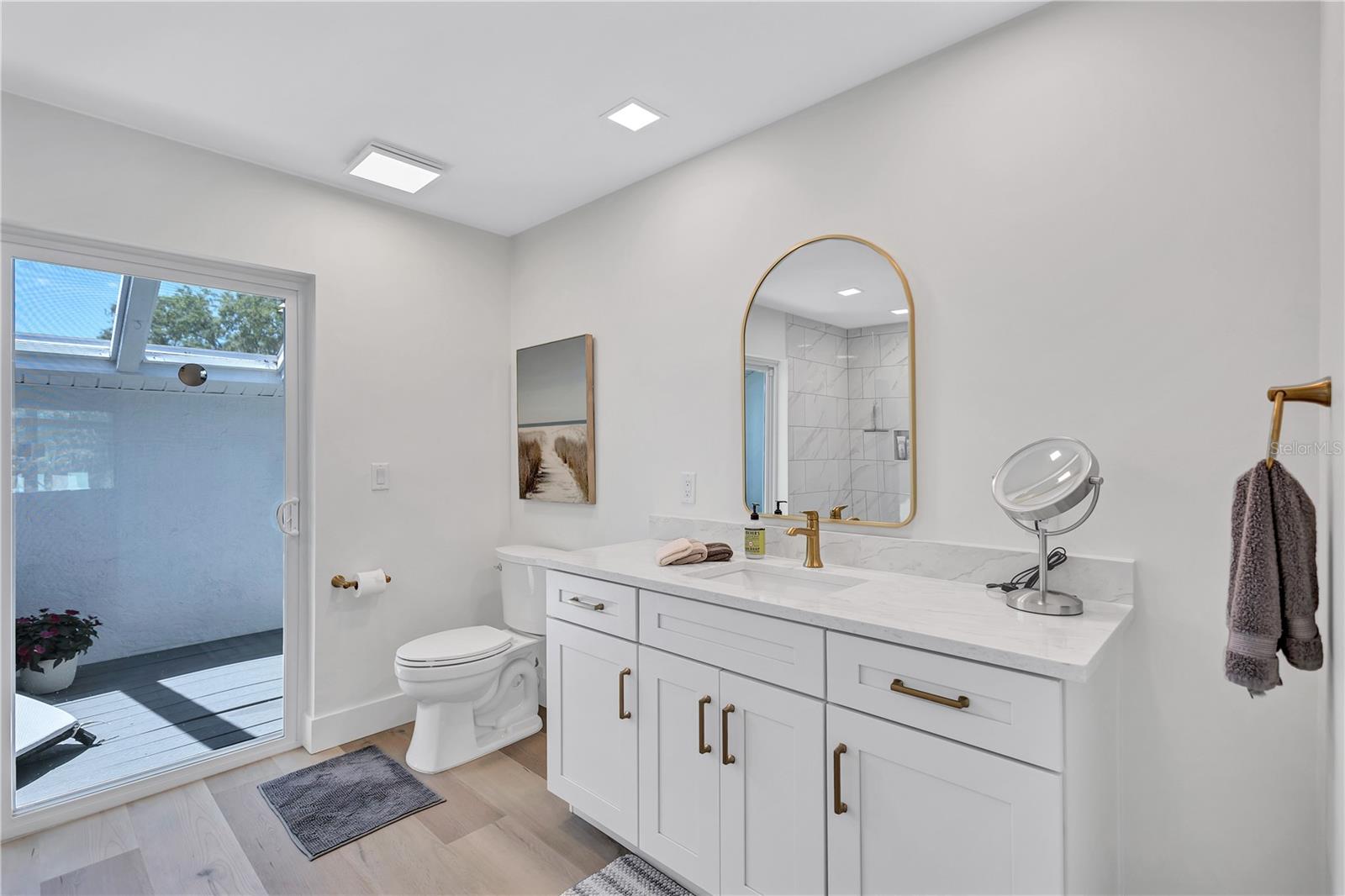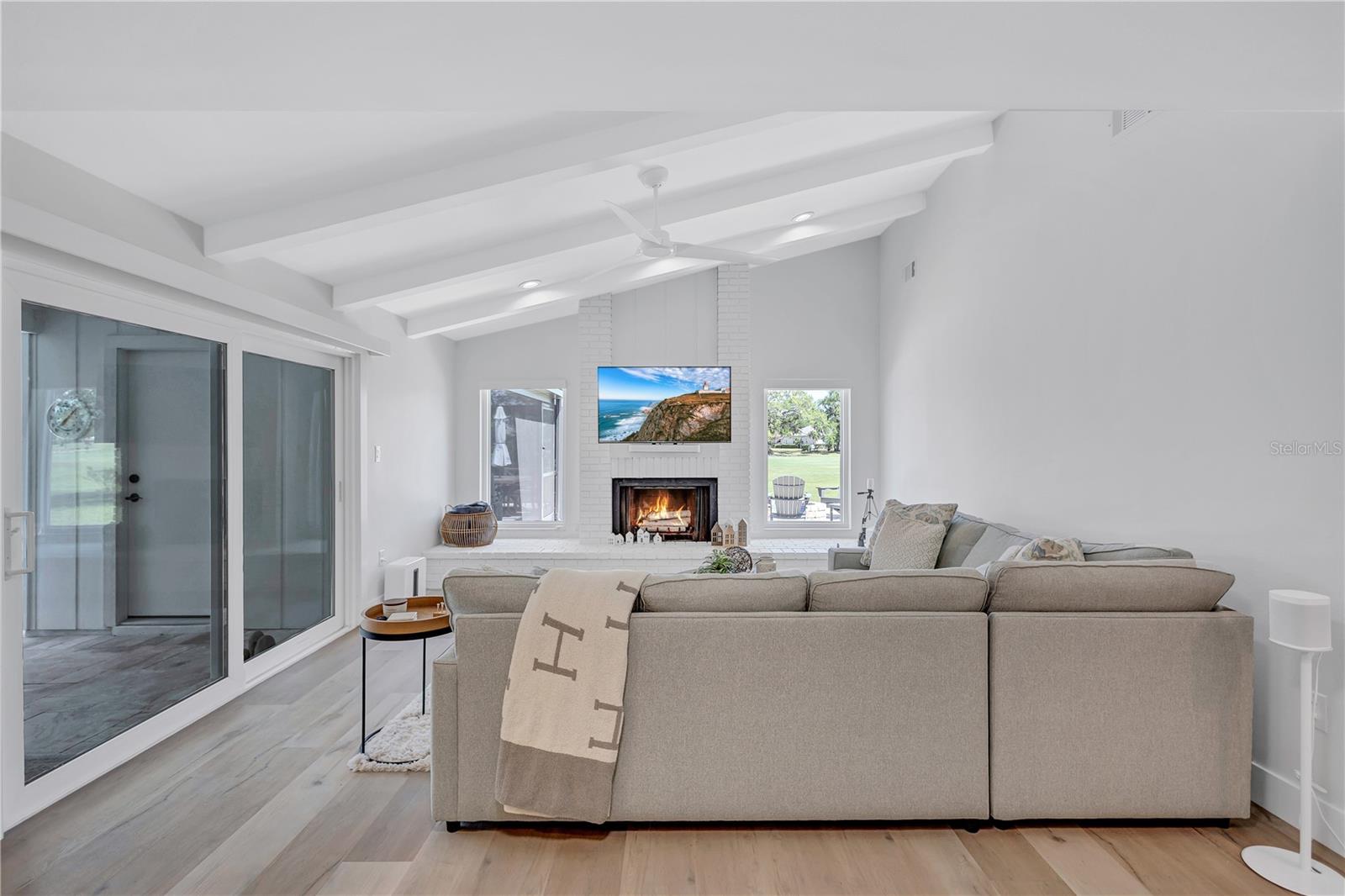 FULLY FURNISHED and MOVE-IN READY. Welcome home to the best of Sarasota. This updated home is located in Country Club of Sarasota in the heart of Palmer Ranch. Sitting on a spacious lot, this property allows golf course and lake views while strategically placed to offer a quiet and serene setting. Drenched in natural light, this 3-bedroom split plan home has been beautifully updated to enhance the vaulted ceilings, walls of sliding glass doors, and an open and inviting floorplan. Luxury vinyl wide plank flooring flows throughout allowing a smooth transition between rooms. Impact windows and sliders open to the expanded outdoor areas. The enlarged pool deck, panoramic pool cage and pavered outdoor sitting area with firepit are easily accessed to seamlessly merge inside with outside areas. The living/dining room is open and inviting. The kitchen is the hub of the home and connects the living/dining and family rooms. The updated and FULLY STOCKED kitchen opens to the family room with wood burning fireplace and views of the golf course. Quartz countertops, Kraftmaid cabinets and new appliances make the kitchen perfect for entertaining. The Primary Bedroom is had sliders opening to the pool, vaulted ceiling, and a large walking closet with built in shelving. The en-suite bathroom has his/her sink areas, a beautiful walk-shower, heated towel rack, and a private 12'x6' outdoor lounging patio. There are two additional bedrooms with a fully updated bath. One bedroom had sliders opening to the outdoor seating area, while the 3rd bedroom has a private patio area perfect for sunning. The pool area contains the 3rd full bath with shower. The upgrades are numerous including: interior and exterior painting, new pool heater, tumbled marble pool deck, impact garage door, electrical panel, new light fixtures. Join Prestancia and take your golf cart down the street and across the bridge to the golf courses. Country Club of Sarasota is close to Legacy Trail, Siesta Key beaches, Shopping/Entertainment, and all Sarasota has to offer. Don't miss this amazing property!