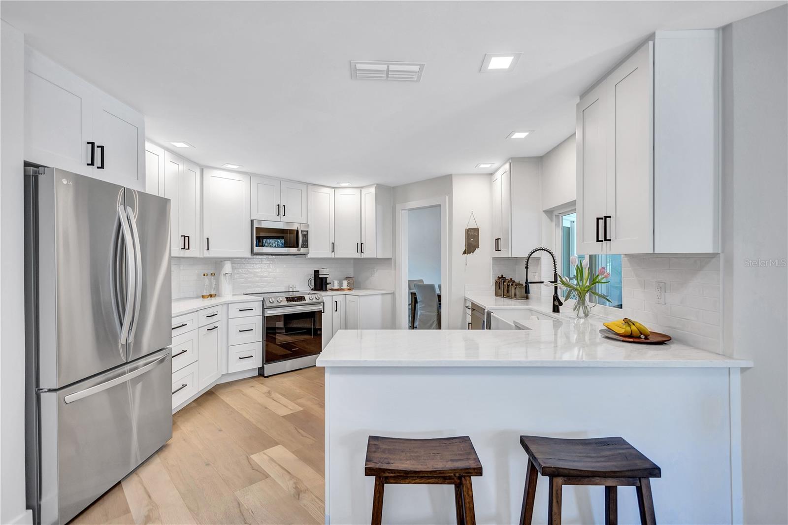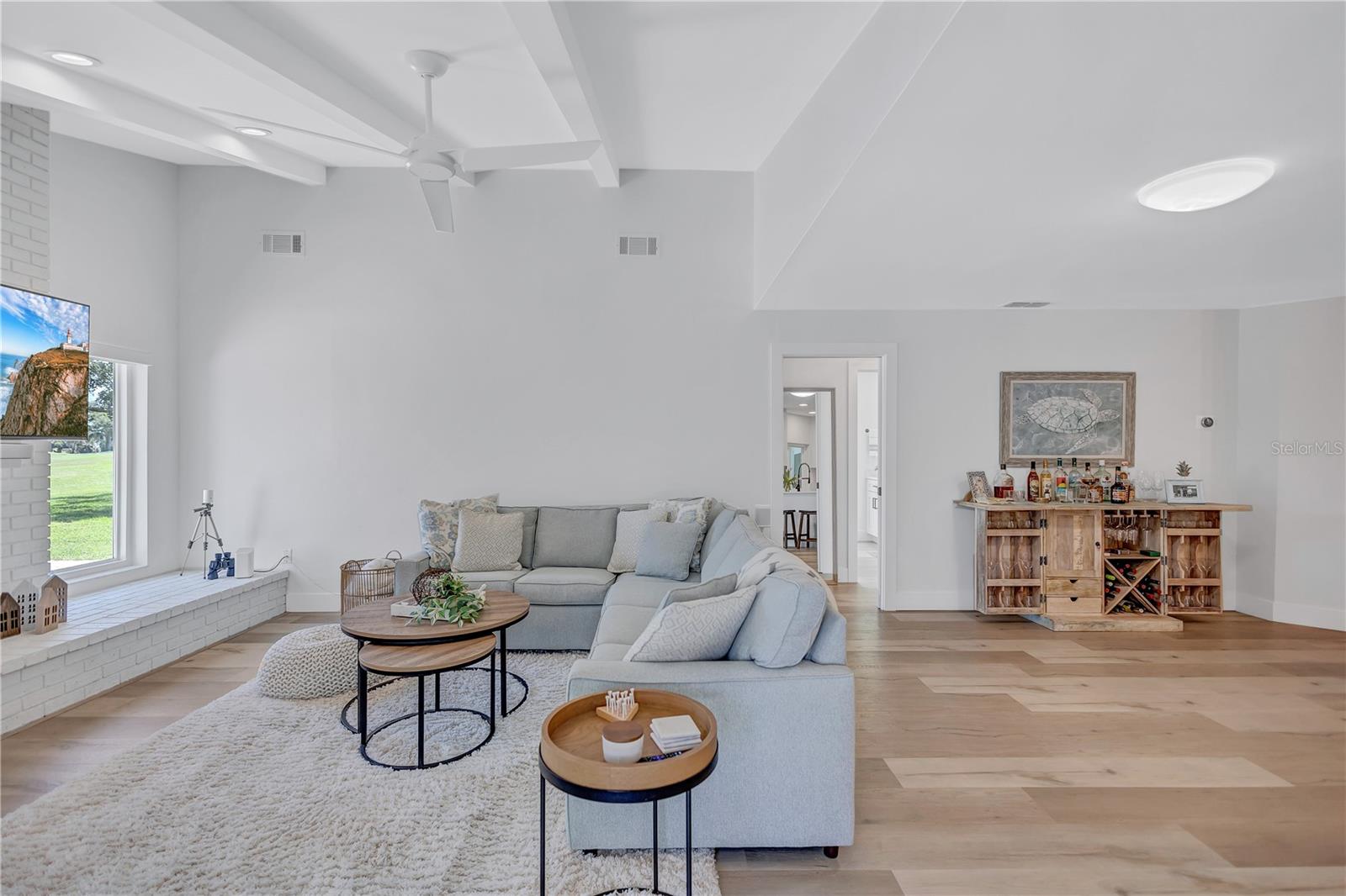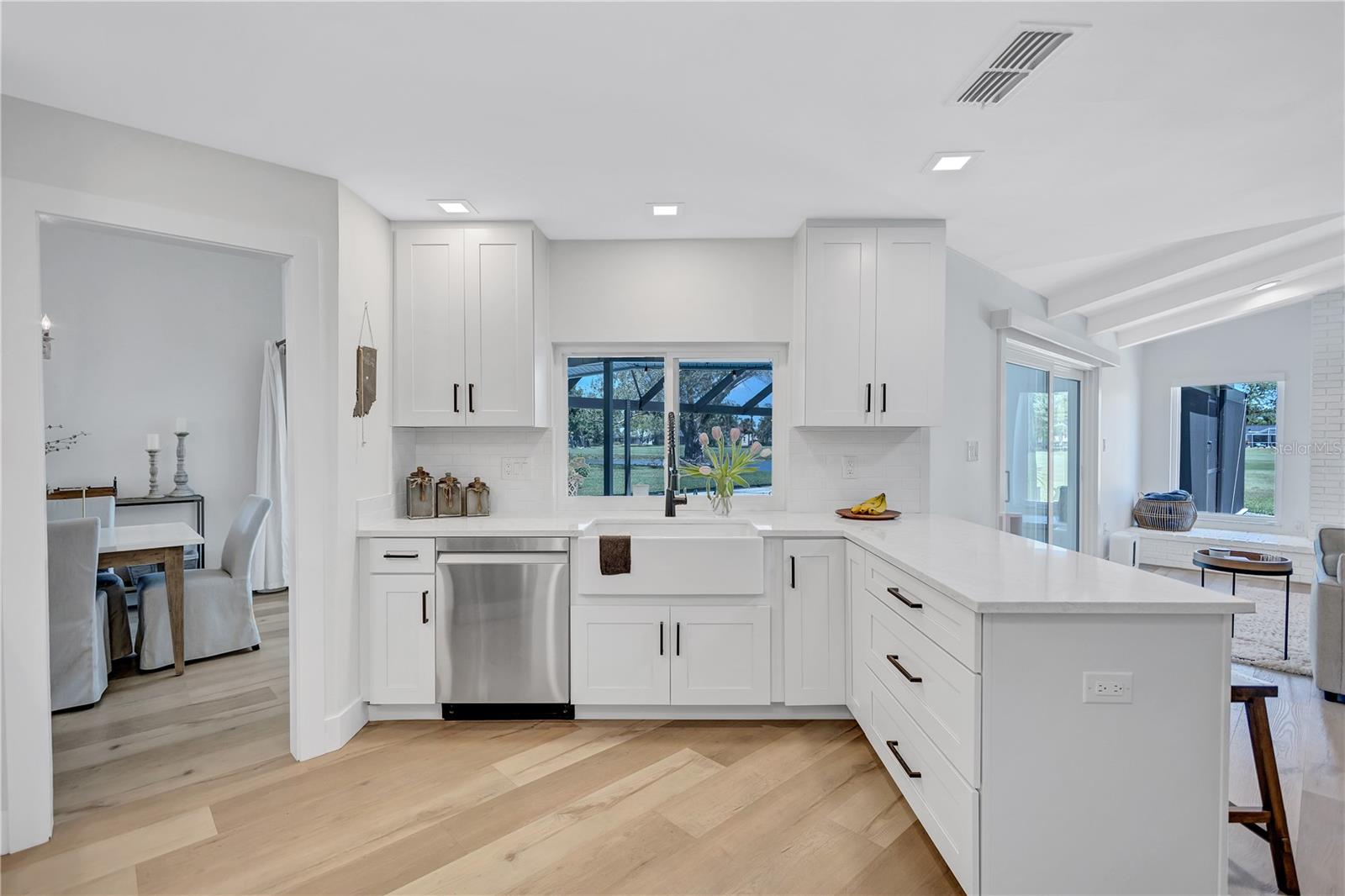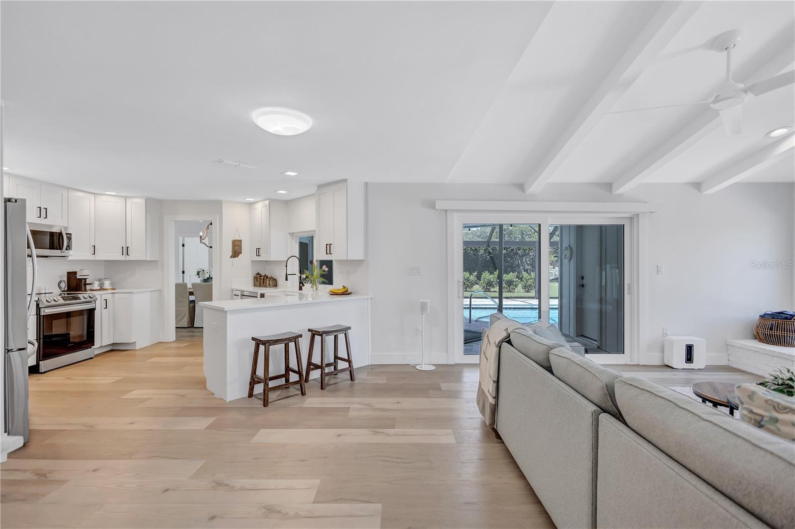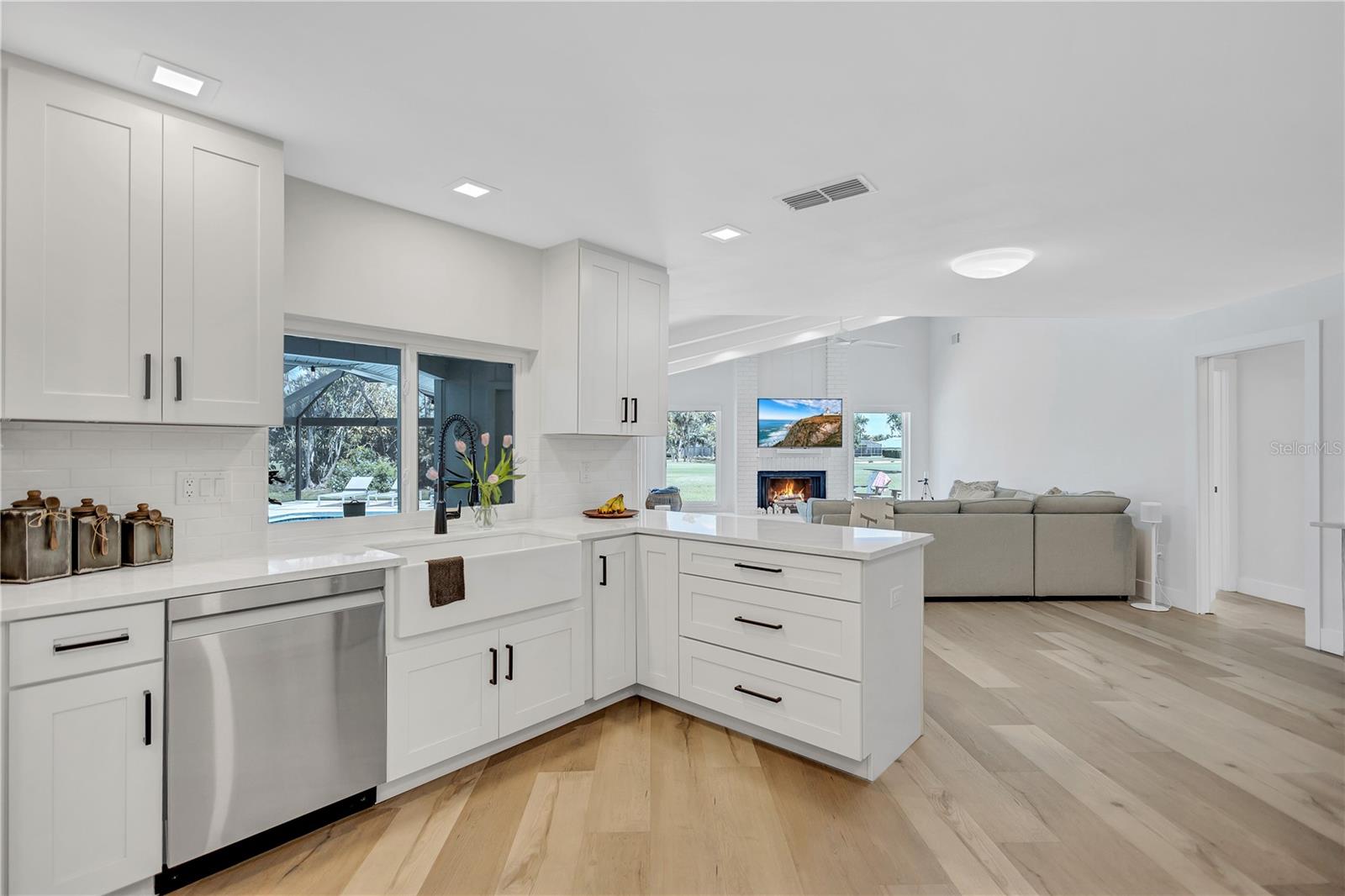 FULLY FURNISHED and MOVE-IN READY. Welcome home to the best of Sarasota. This updated home is located in Country Club of Sarasota in the heart of Palmer Ranch. Sitting on a spacious lot, this property allows golf course and lake views while strategically placed to offer a quiet and serene setting. Drenched in natural light, this 3-bedroom split plan home has been beautifully updated to enhance the vaulted ceilings, walls of sliding glass doors, and an open and inviting floorplan. Luxury vinyl wide plank flooring flows throughout allowing a smooth transition between rooms. Impact windows and sliders open to the expanded outdoor areas. The enlarged pool deck, panoramic pool cage and pavered outdoor sitting area with firepit are easily accessed to seamlessly merge inside with outside areas. The living/dining room is open and inviting. The kitchen is the hub of the home and connects the living/dining and family rooms. The updated and FULLY STOCKED kitchen opens to the family room with wood burning fireplace and views of the golf course. Quartz countertops, Kraftmaid cabinets and new appliances make the kitchen perfect for entertaining. The Primary Bedroom is had sliders opening to the pool, vaulted ceiling, and a large walking closet with built in shelving. The en-suite bathroom has his/her sink areas, a beautiful walk-shower, heated towel rack, and a private 12'x6' outdoor lounging patio. There are two additional bedrooms with a fully updated bath. One bedroom had sliders opening to the outdoor seating area, while the 3rd bedroom has a private patio area perfect for sunning. The pool area contains the 3rd full bath with shower. The upgrades are numerous including: interior and exterior painting, new pool heater, tumbled marble pool deck, impact garage door, electrical panel, new light fixtures. Join Prestancia and take your golf cart down the street and across the bridge to the golf courses. Country Club of Sarasota is close to Legacy Trail, Siesta Key beaches, Shopping/Entertainment, and all Sarasota has to offer. Don't miss this amazing property!