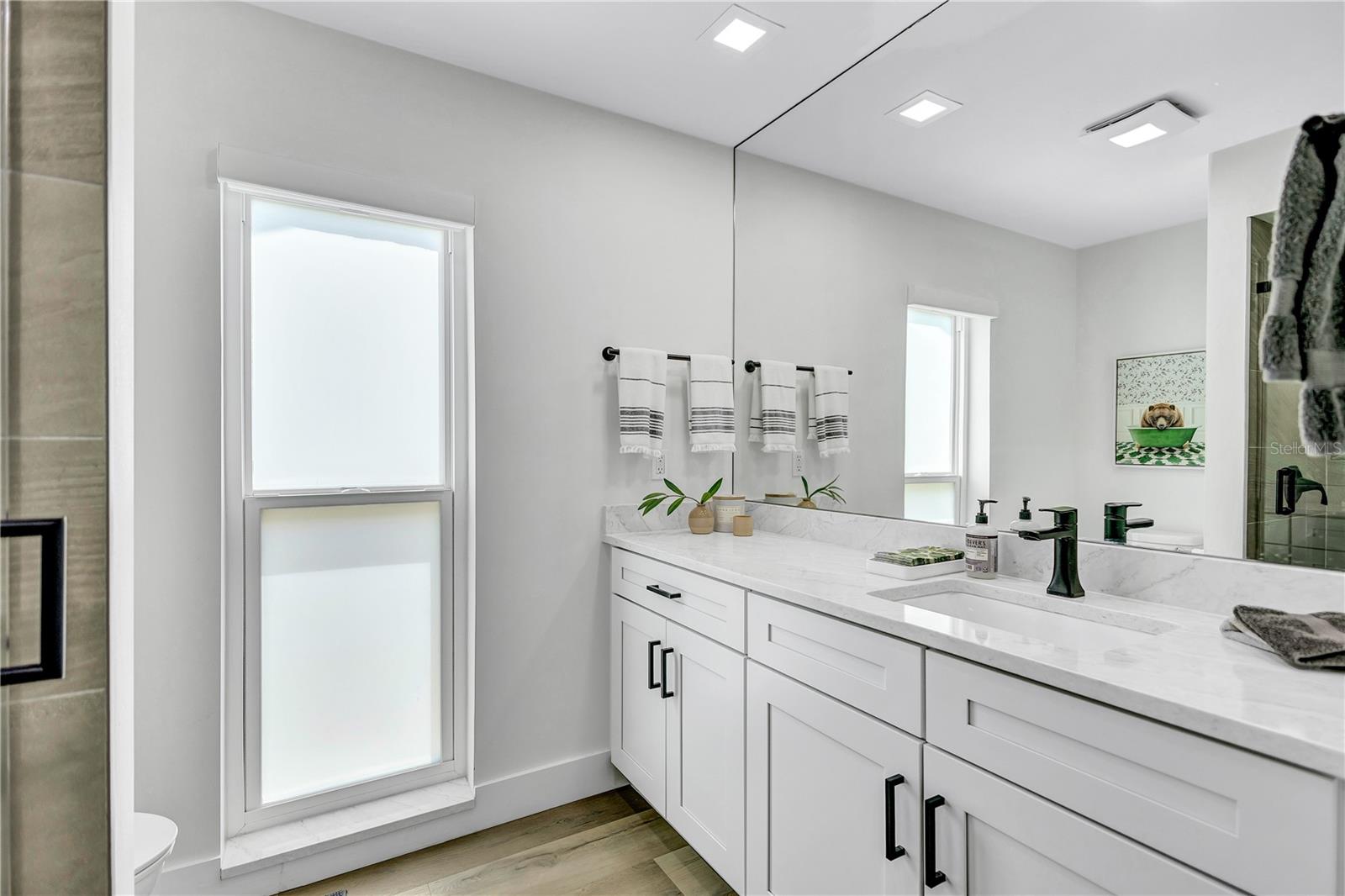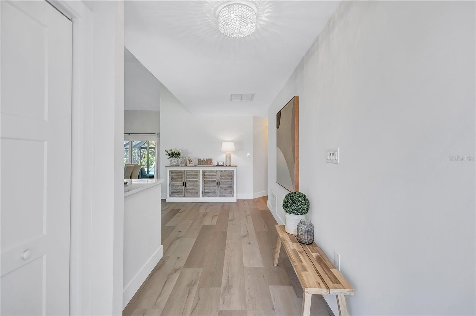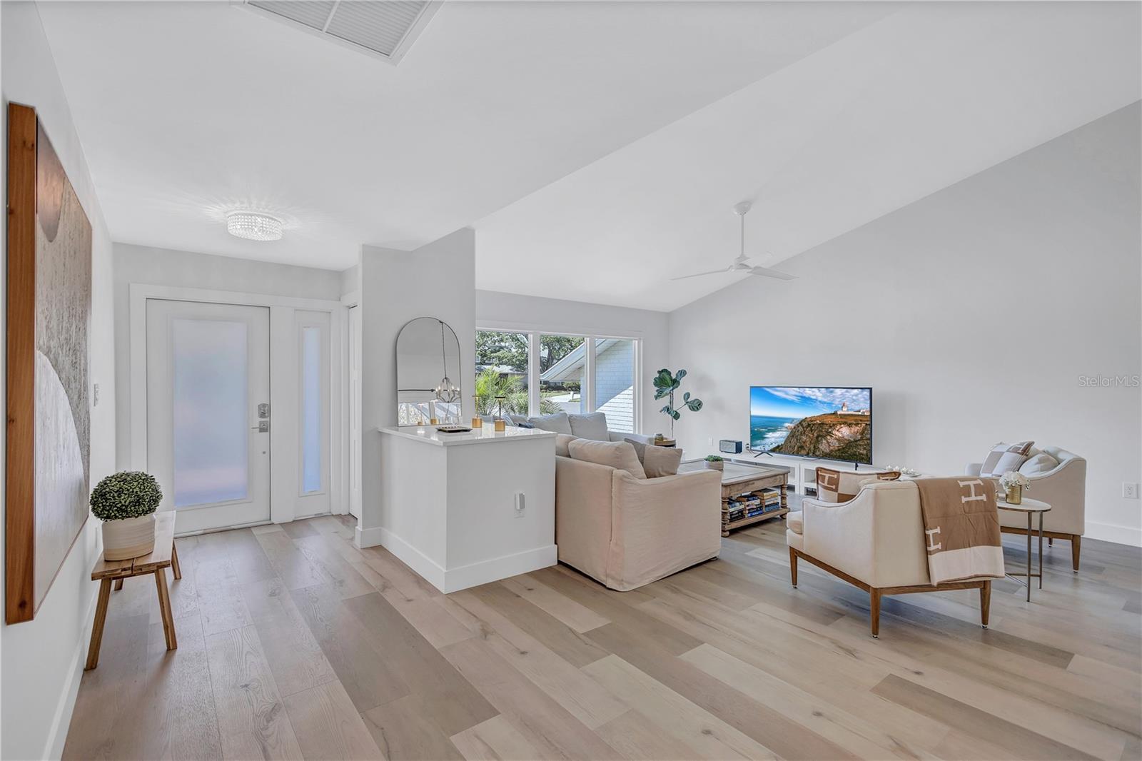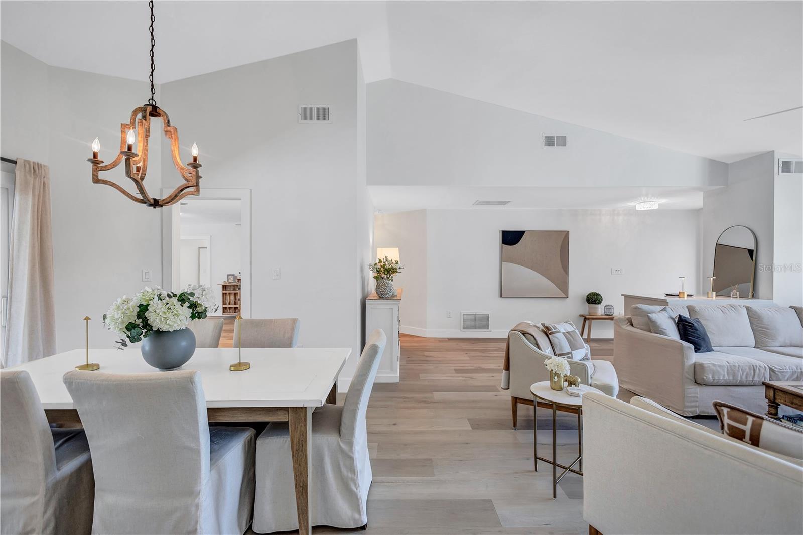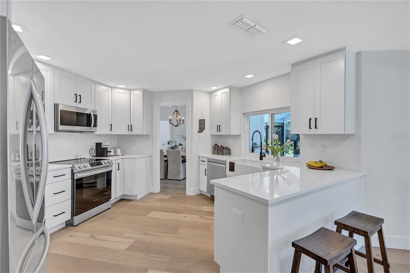 FULLY FURNISHED and MOVE-IN READY. Welcome home to the best of Sarasota. This updated home is located in Country Club of Sarasota in the heart of Palmer Ranch. Sitting on a spacious lot, this property allows golf course and lake views while strategically placed to offer a quiet and serene setting. Drenched in natural light, this 3-bedroom split plan home has been beautifully updated to enhance the vaulted ceilings, walls of sliding glass doors, and an open and inviting floorplan. Luxury vinyl wide plank flooring flows throughout allowing a smooth transition between rooms. Impact windows and sliders open to the expanded outdoor areas. The enlarged pool deck, panoramic pool cage and pavered outdoor sitting area with firepit are easily accessed to seamlessly merge inside with outside areas. The living/dining room is open and inviting. The kitchen is the hub of the home and connects the living/dining and family rooms. The updated and FULLY STOCKED kitchen opens to the family room with wood burning fireplace and views of the golf course. Quartz countertops, Kraftmaid cabinets and new appliances make the kitchen perfect for entertaining. The Primary Bedroom is had sliders opening to the pool, vaulted ceiling, and a large walking closet with built in shelving. The en-suite bathroom has his/her sink areas, a beautiful walk-shower, heated towel rack, and a private 12'x6' outdoor lounging patio. There are two additional bedrooms with a fully updated bath. One bedroom had sliders opening to the outdoor seating area, while the 3rd bedroom has a private patio area perfect for sunning. The pool area contains the 3rd full bath with shower. The upgrades are numerous including: interior and exterior painting, new pool heater, tumbled marble pool deck, impact garage door, electrical panel, new light fixtures. Join Prestancia and take your golf cart down the street and across the bridge to the golf courses. Country Club of Sarasota is close to Legacy Trail, Siesta Key beaches, Shopping/Entertainment, and all Sarasota has to offer. Don't miss this amazing property!