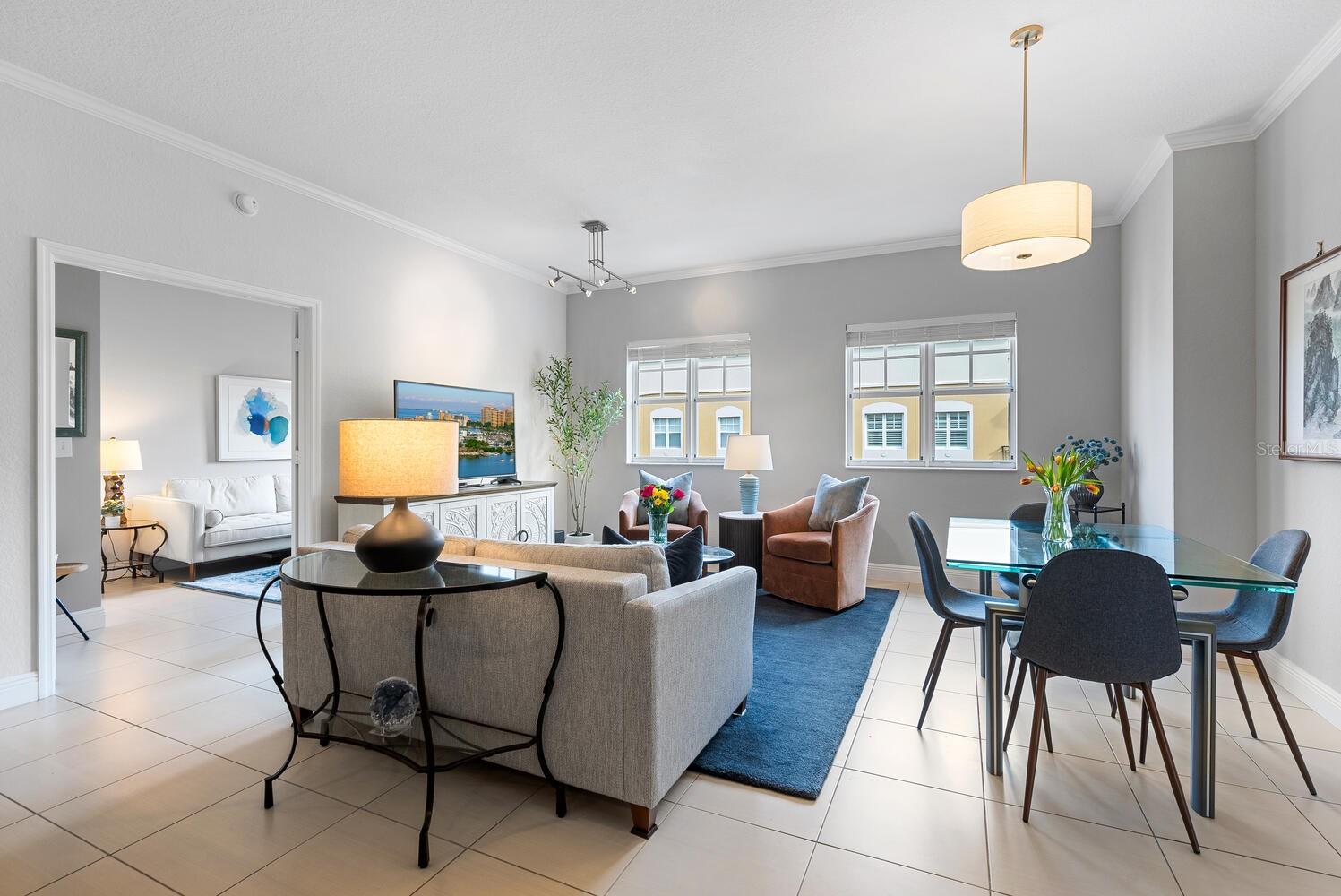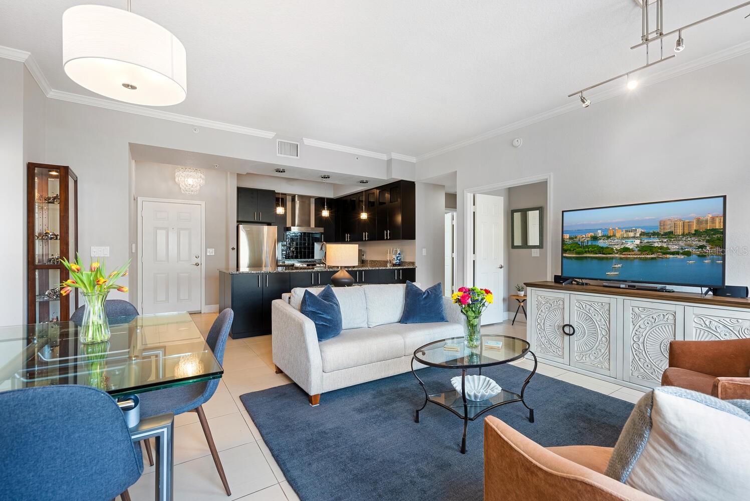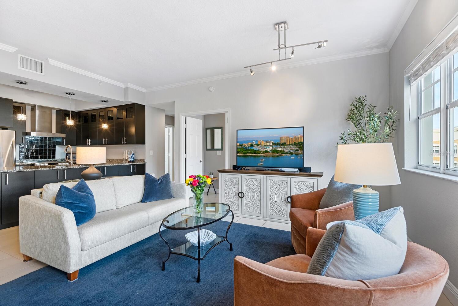 Welcome to Broadway Promenade! This stunningly renovated 2 bedroom 2 bath unit blends the luxury of downtown living with an unbeatable price. Step inside & you'll enjoy the peaceful courtyard & discover a spacious open plan, thoughtfully remodeled with modern flooring throughout. The kitchen stands out as one of the most uniquely designed & expansive in all of Broadway Promenade, boasting an extra-long granite countertop with a breakfast bar, under-bar storage, contemporary cabinetry, and high-end appliances. Both bathrooms beautifully updated, with the master bath undergoing complete renovation (2024). This exquisite transformation includes an oversized shower & generous storage closet. Enjoy a new, oversized Samsung washer/dryer a (2023). Water heater (2017), A/C (2018). Enjoy two dedicated parking spaces in the secure under-building garage & a wealth of amenities, including a 24-hour concierge, library, billiards room, fitness center, saunas, heated pool & spa, outdoor dining areas, Guest Suites, & pets are welcome here. Conveniently located within walking distance to Publix, downtown coffee shops, restaurants, & shopping, or take a short stroll to the nearby city park, "The Bay," for exciting outdoor events. Experience the best in downtown living without the downtown price tag!