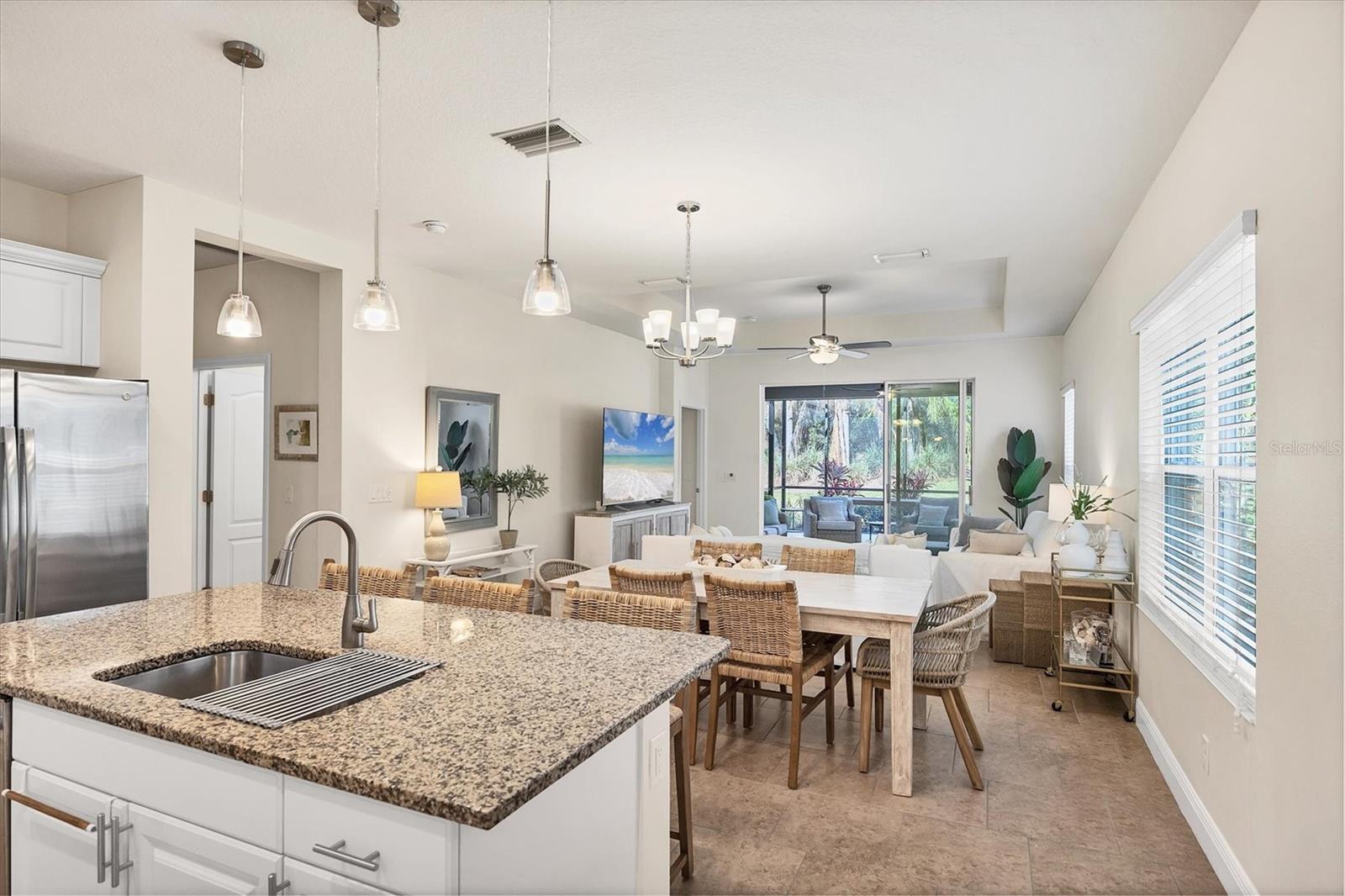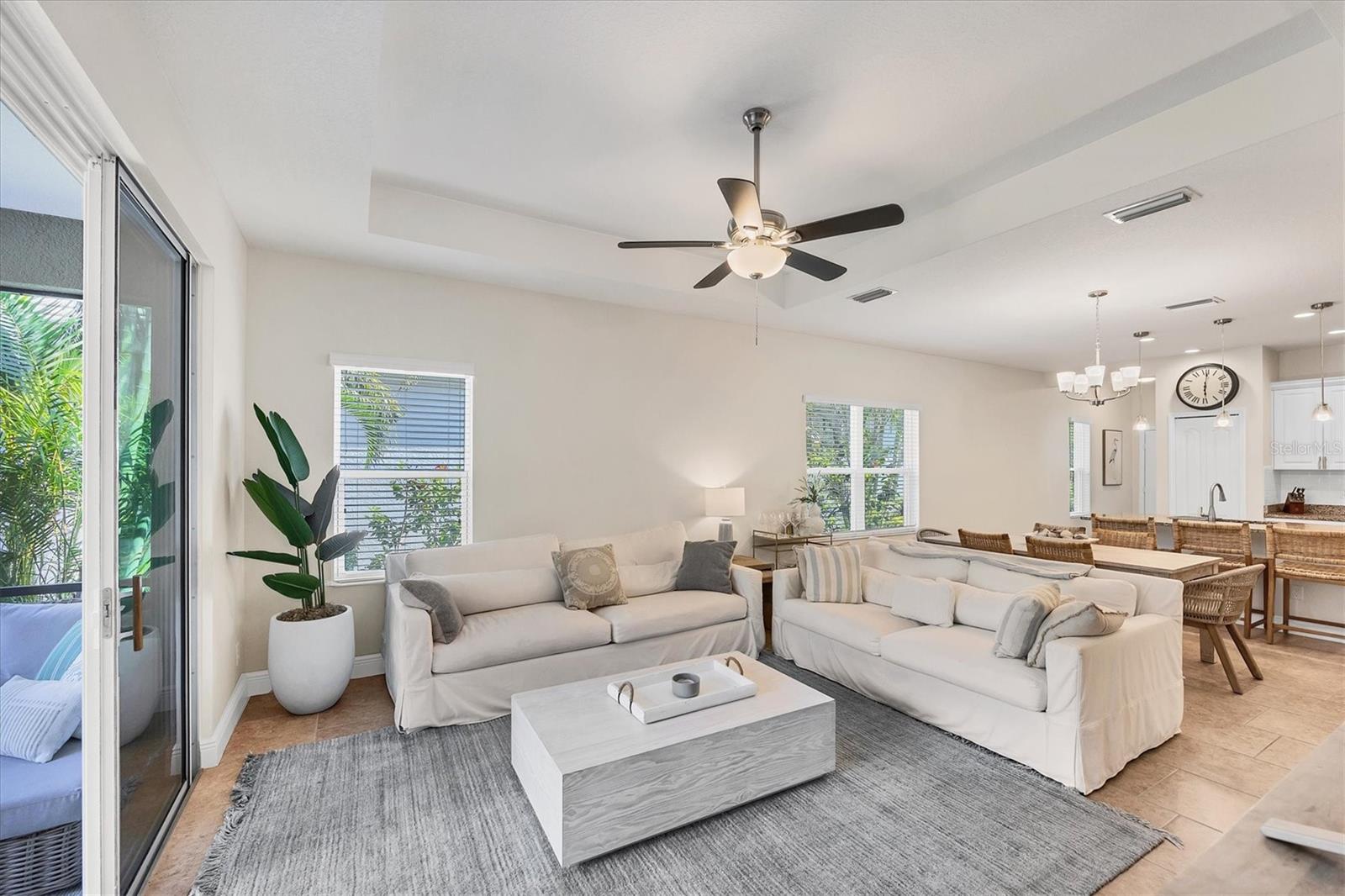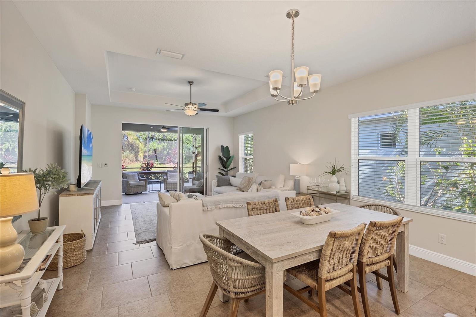 Feast your eyes on Indigo's BEST BUY with this meticulouslycared for ''Valiant'' floorplan with its expansive 3 bedroom, 2 bathroom and 2-car garage!Rest assured your new home is built strong and safe with its cinder block construction, concrete tile roof, HURRICANE protection for all energy efficient windows and is located in the highly desirable X floodzone.Throughout the home you will finda superconvenient whole home centralvacuum,5 1/4" deco baseboards, LED recessed lighting, 16-seer rated TRANE HVAC and a whole home water filtrationsystem!You can also expect an EXTENDED covered and screened lanai, LARGE 2-car garage with epoxy flooring, HURRICANE IMPACT garage door and convenient wash tub!Your new home also has ''smart home'' capabilities which allows you to remotely adjust your thermostat, open and close your garage as well as lock and unlock the front door! The kitchen features a large Island with breakfast bar, stainless steel appliances and high level stone countertops and upgraded porcelain backsplash. The great room with its expansive tray ceiling showcases a spacious environment with more than enough room to entertain guests.Step outside to the freshly painted super private EXTENDED covered and screened lanai, where you can enjoy the fresh air and beautiful views without any distractions from neighbors. You will also appreciatethe built-in motorized sunscreen!Indigo is an active, gated community that features a full time on-site manager as well as a full time activities director that manages an extensive calendar of activities. You can also expect sidewalks on both sides of the street, resort style heated community pool/spa at the main clubhouse where you will find 5 cabanas with an abundance of seating, 4 pickleball courts, 2 bocce ball courts, 24-hour exercise gym, meeting room/banquet room and playground. Indigo is also a community that takes care of all ground maintenance to include mowing, fertilizing, irrigation, shrubs, twice a year mulching etc.