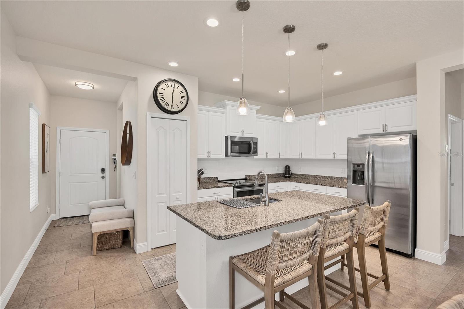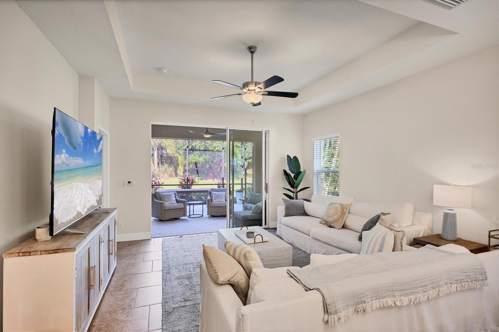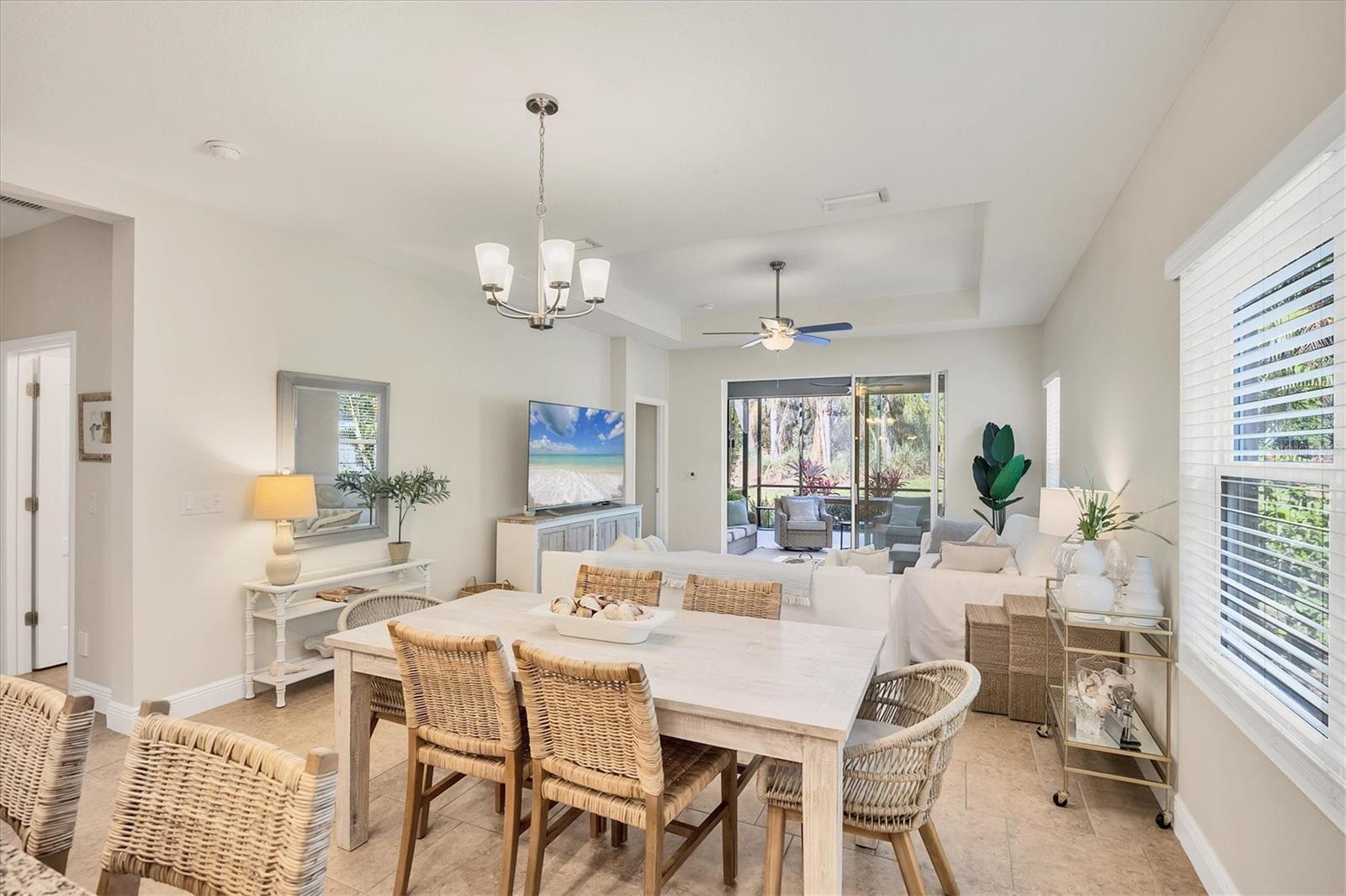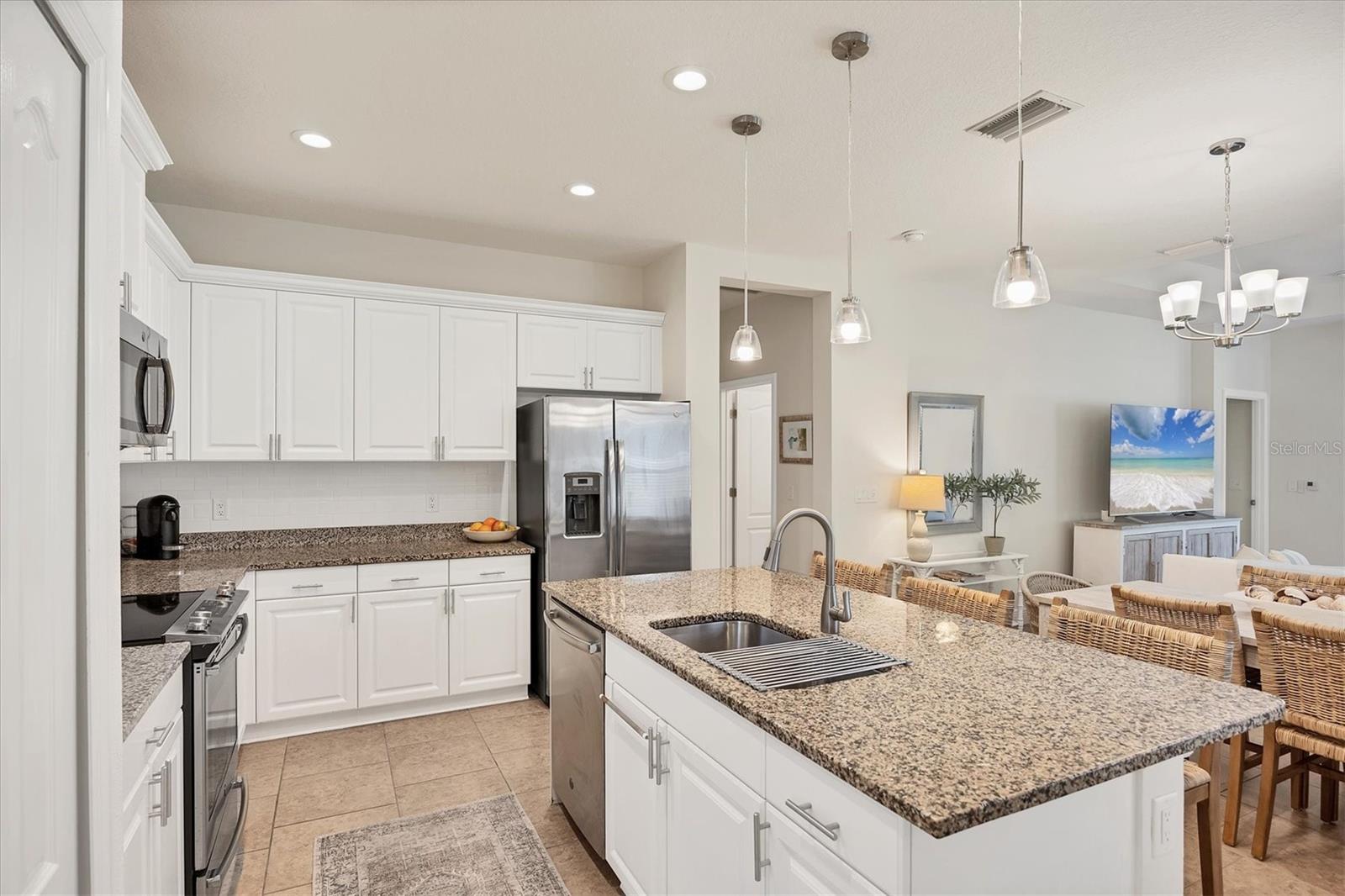 Feast your eyes on Indigo's BEST BUY with this meticulouslycared for ''Valiant'' floorplan with its expansive 3 bedroom, 2 bathroom and 2-car garage!Rest assured your new home is built strong and safe with its cinder block construction, concrete tile roof, HURRICANE protection for all energy efficient windows and is located in the highly desirable X floodzone.Throughout the home you will finda superconvenient whole home centralvacuum,5 1/4" deco baseboards, LED recessed lighting, 16-seer rated TRANE HVAC and a whole home water filtrationsystem!You can also expect an EXTENDED covered and screened lanai, LARGE 2-car garage with epoxy flooring, HURRICANE IMPACT garage door and convenient wash tub!Your new home also has ''smart home'' capabilities which allows you to remotely adjust your thermostat, open and close your garage as well as lock and unlock the front door! The kitchen features a large Island with breakfast bar, stainless steel appliances and high level stone countertops and upgraded porcelain backsplash. The great room with its expansive tray ceiling showcases a spacious environment with more than enough room to entertain guests.Step outside to the freshly painted super private EXTENDED covered and screened lanai, where you can enjoy the fresh air and beautiful views without any distractions from neighbors. You will also appreciatethe built-in motorized sunscreen!Indigo is an active, gated community that features a full time on-site manager as well as a full time activities director that manages an extensive calendar of activities. You can also expect sidewalks on both sides of the street, resort style heated community pool/spa at the main clubhouse where you will find 5 cabanas with an abundance of seating, 4 pickleball courts, 2 bocce ball courts, 24-hour exercise gym, meeting room/banquet room and playground. Indigo is also a community that takes care of all ground maintenance to include mowing, fertilizing, irrigation, shrubs, twice a year mulching etc.