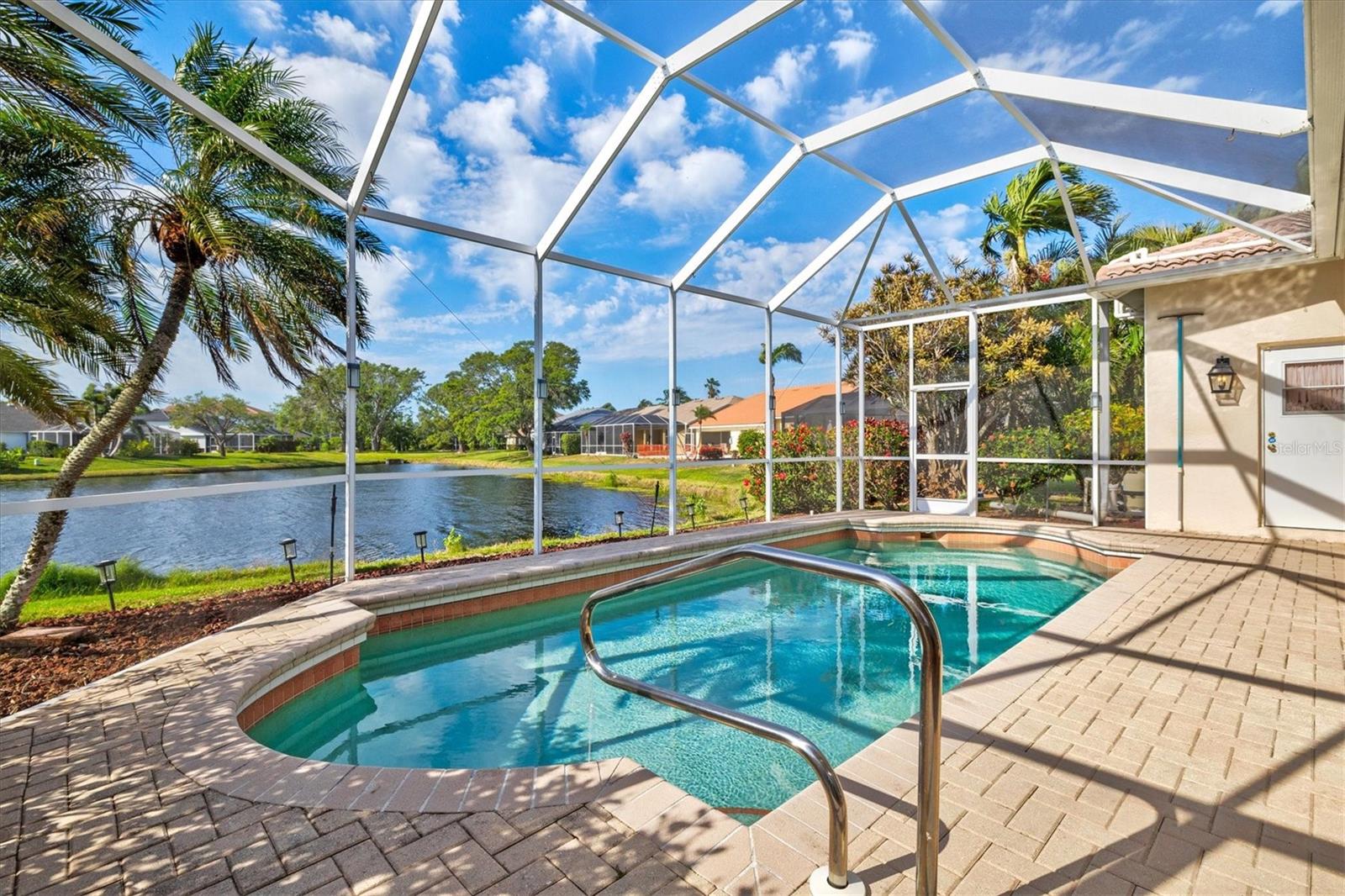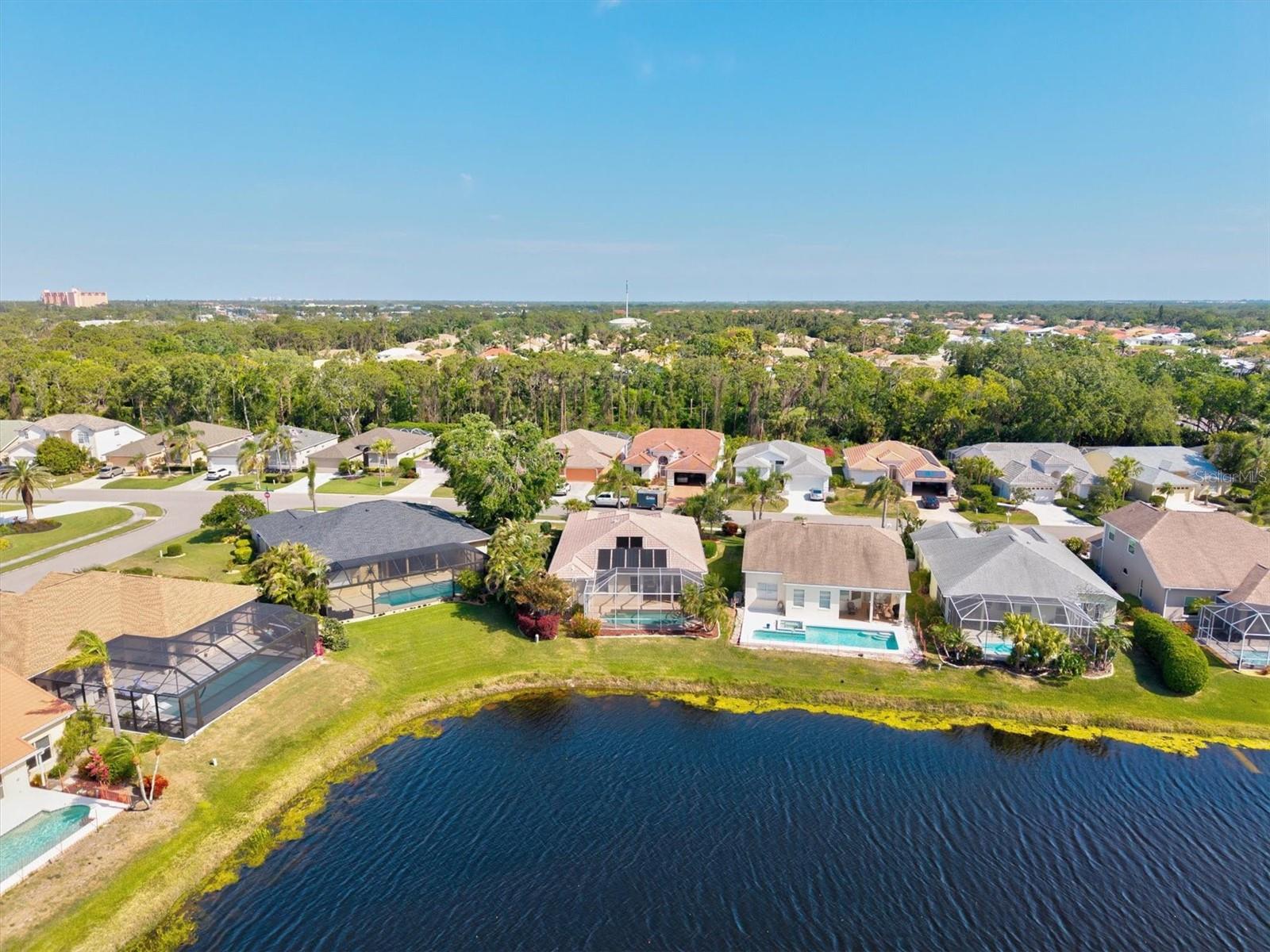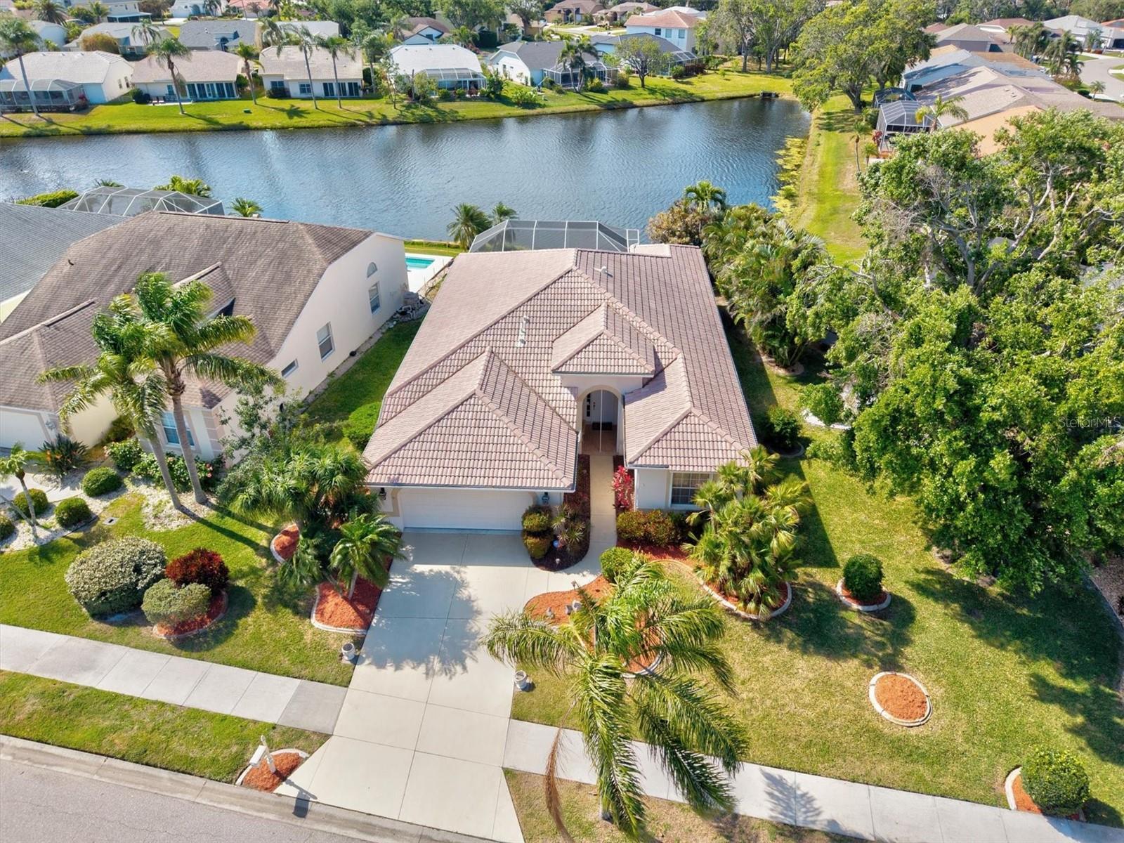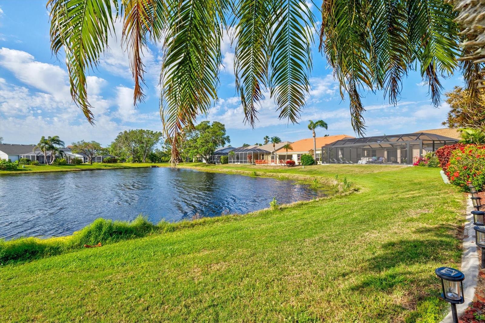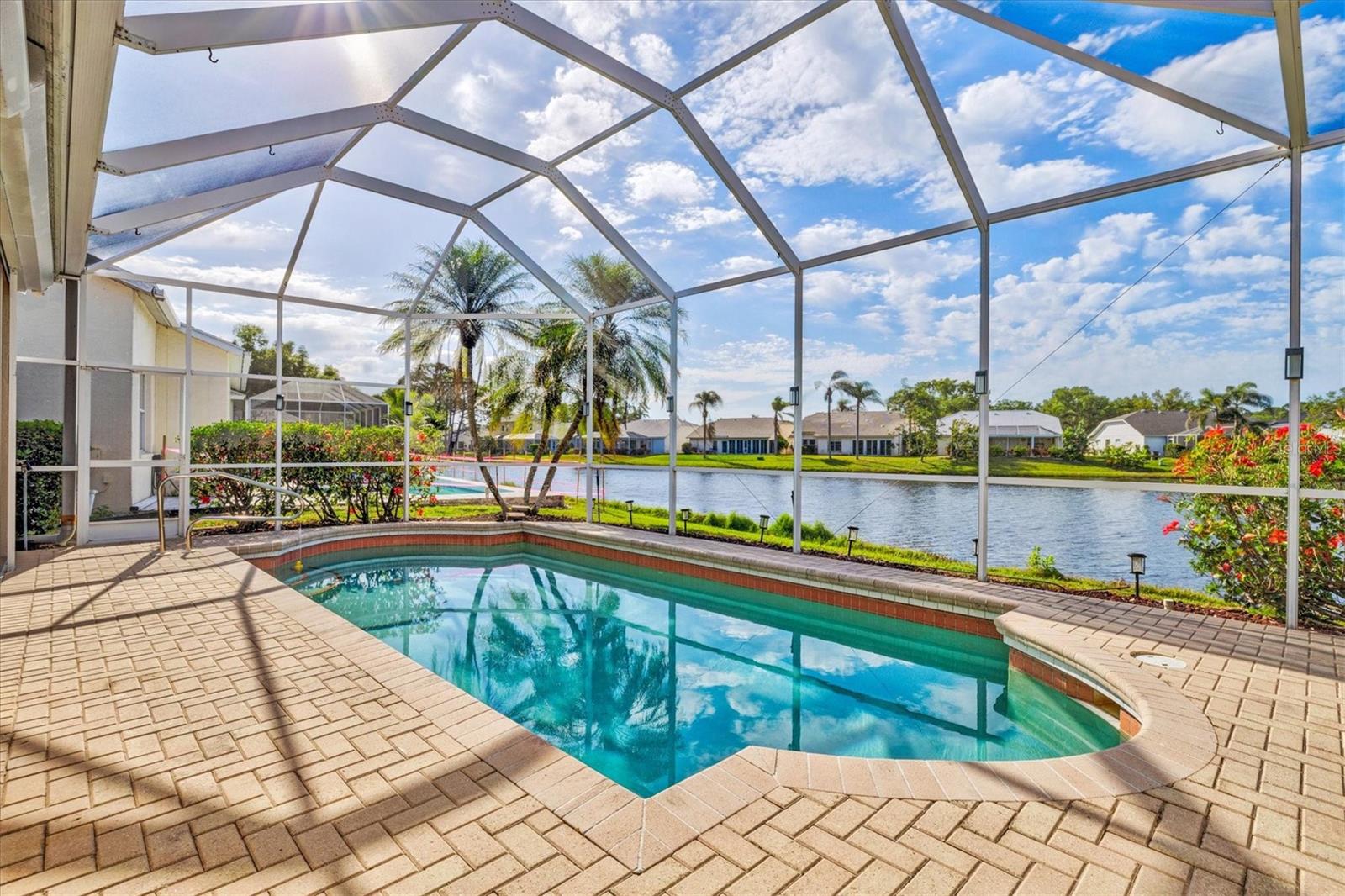 Nestled in the highly sought-after GATED COMMUNITY of Stoneybrook Estates in the heart of Palmer Ranch, this stunning FURNISHED WATERFRONT HOME includes a PRIVATE POOL and NO FLOOD ZONE. Boasting over 2,100 square feet of BEAUTIFULLY DESIGNED living space, this residence is situated on a PREMIUM LOT, providing tranquil water views right from your own backyard. Step inside and be greeted by the GRAND SPLIT FLOOR PLAN, featuring a soaring FOYER that sets the tone for the elegance within. The open-concept kitchen is ready for you to unleash your inner chef, adorned with ample GRANITE COUNTERTOPS, spacious WOOD CABINETRY, and a seamless flow into the cozy nook and FORMAL DINING area. Entertaining is effortless with the expansive formal living room, which includes an ADDITIONAL FLEX SPACE ideal for a den, library, or even a fourth bedroom. The Owner's Suite is a private retreat, bathed in NATURAL LIGHT streaming through the glass sliders that lead directly to the pool and lanai. The Ensuite is your own haven, featuring a dual-sink vanity, a relaxing garden tub, a generous walk-in shower, and a spacious walk-in closet. Each additional bedroom is thoughtfully designed with comfort in mind, while both bathrooms have been tastefully updated to reflect modern elegance. Outdoors, the home continues to impress with a large screened-in lanai that provides a peaceful setting to enjoy your private pool and the tranquil water views beyond. The entire home and lanai are equipped with both electric and manual roll-up hurricane shutters for added peace of mind. Best of all, this property is located in a no-flood zone. Residents of Stoneybrook Estates enjoy the benefits of a low HOA with no mandatory golf club membership. The Estates boasts a private 50' x 30' heated swimming pool, perfect for year-round relaxation. While golf membership is not included with the home, the Stoneybrook Golf and Country Club restaurant is open to the public, and the golf course operates as a semi-private facility for those who wish to play. This prime location places you just minutes from world-class beaches, including the renowned Siesta Key Beach, ranked among the top ten beaches in the world. Convenient access to the Legacy Trail, Oscar Scherer Park, and a variety of shopping and dining destinations; such as Costco, Target, Publix, and well-known restaurants ensures that everything you need is right at your fingertips. Families will appreciate the proximity to highly rated schools, with school bus stops conveniently located at the McIntosh entrance. This move-in-ready home is an extraordinary opportunity to experience luxury living in one of Sarasota's premier communities.