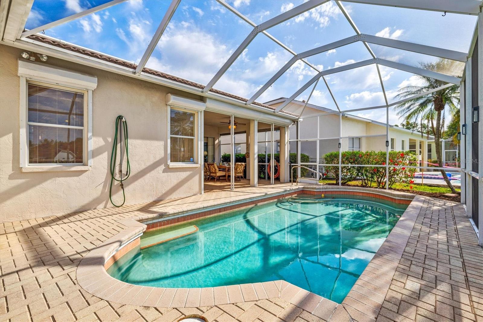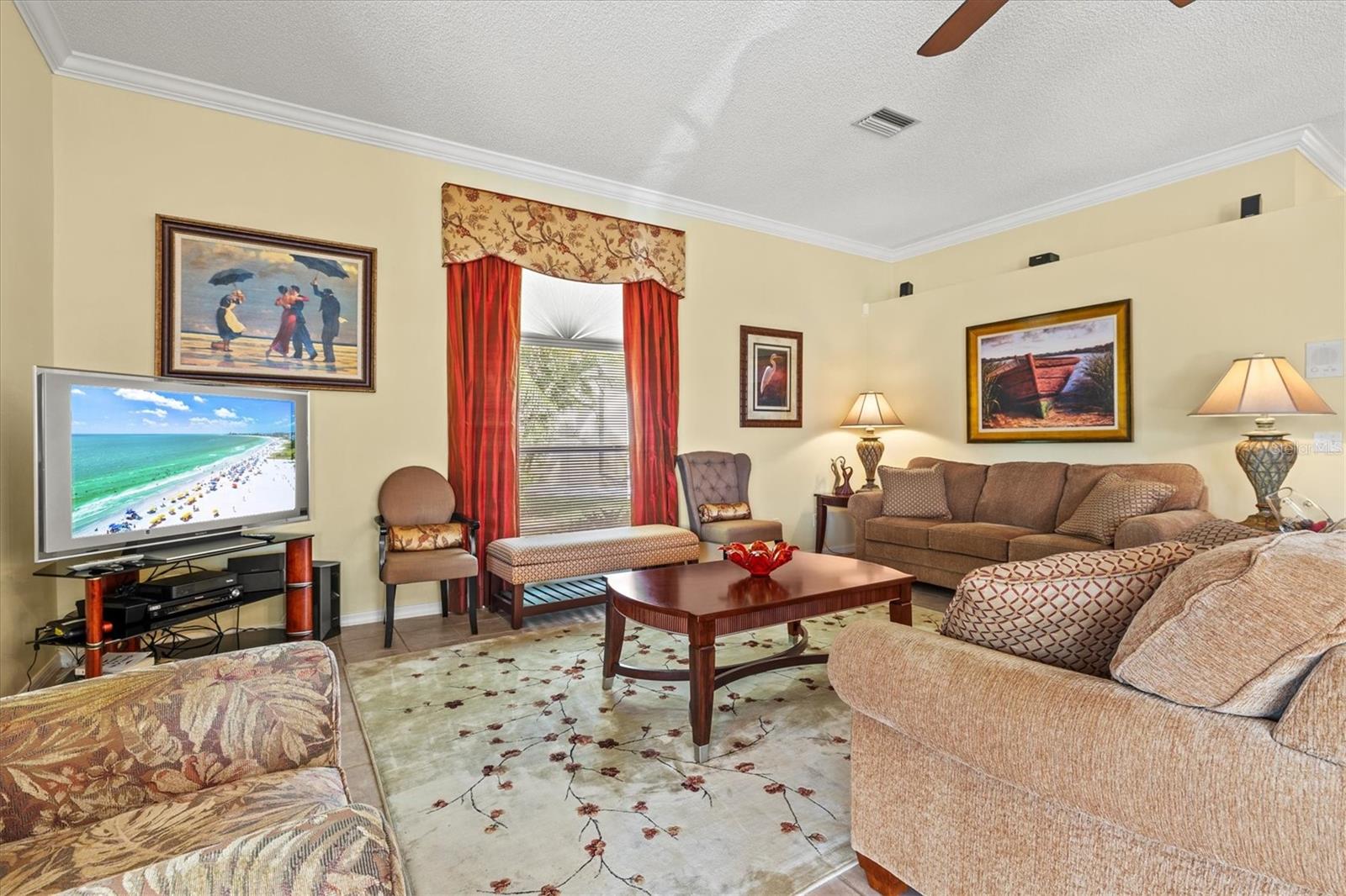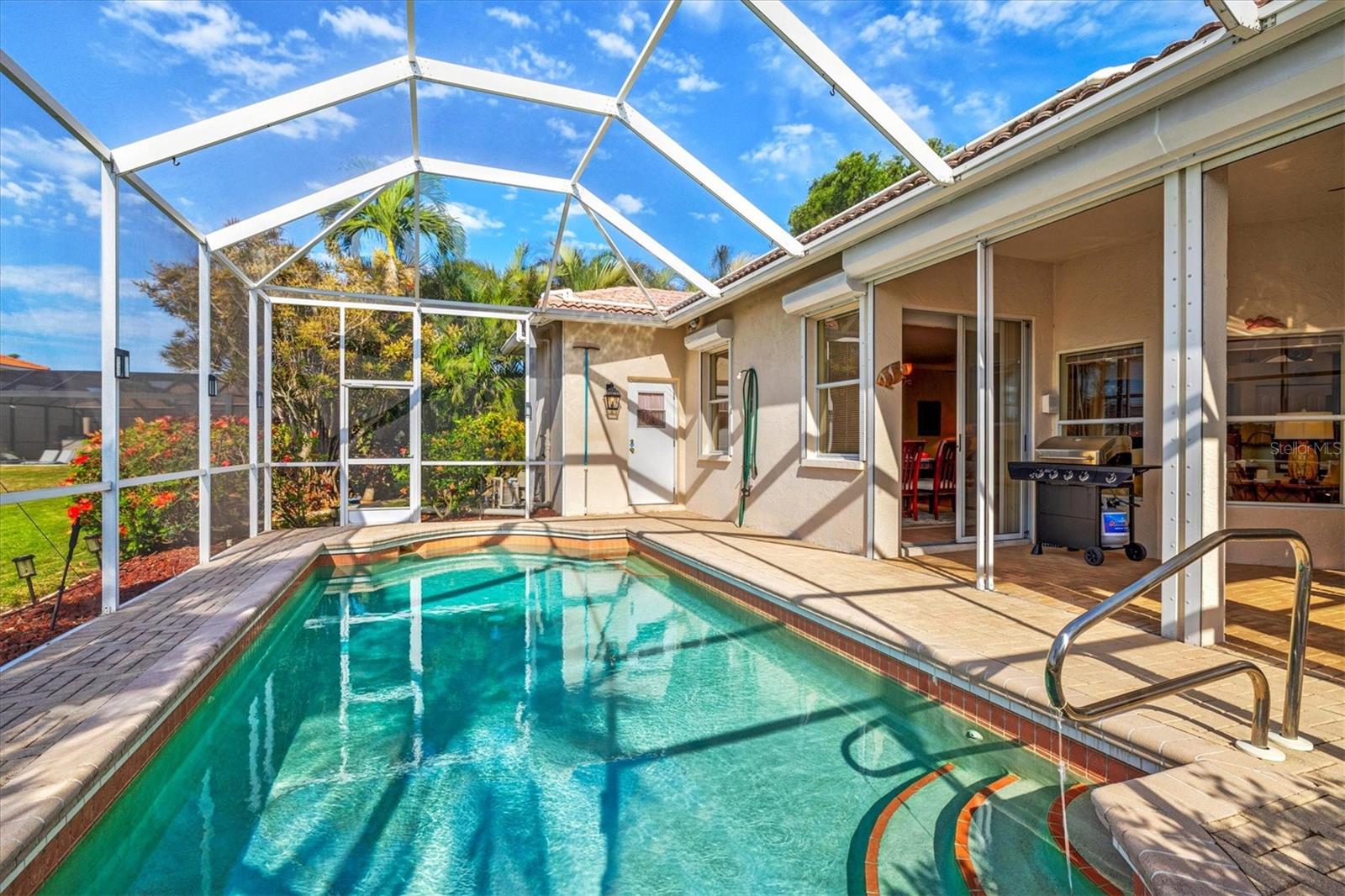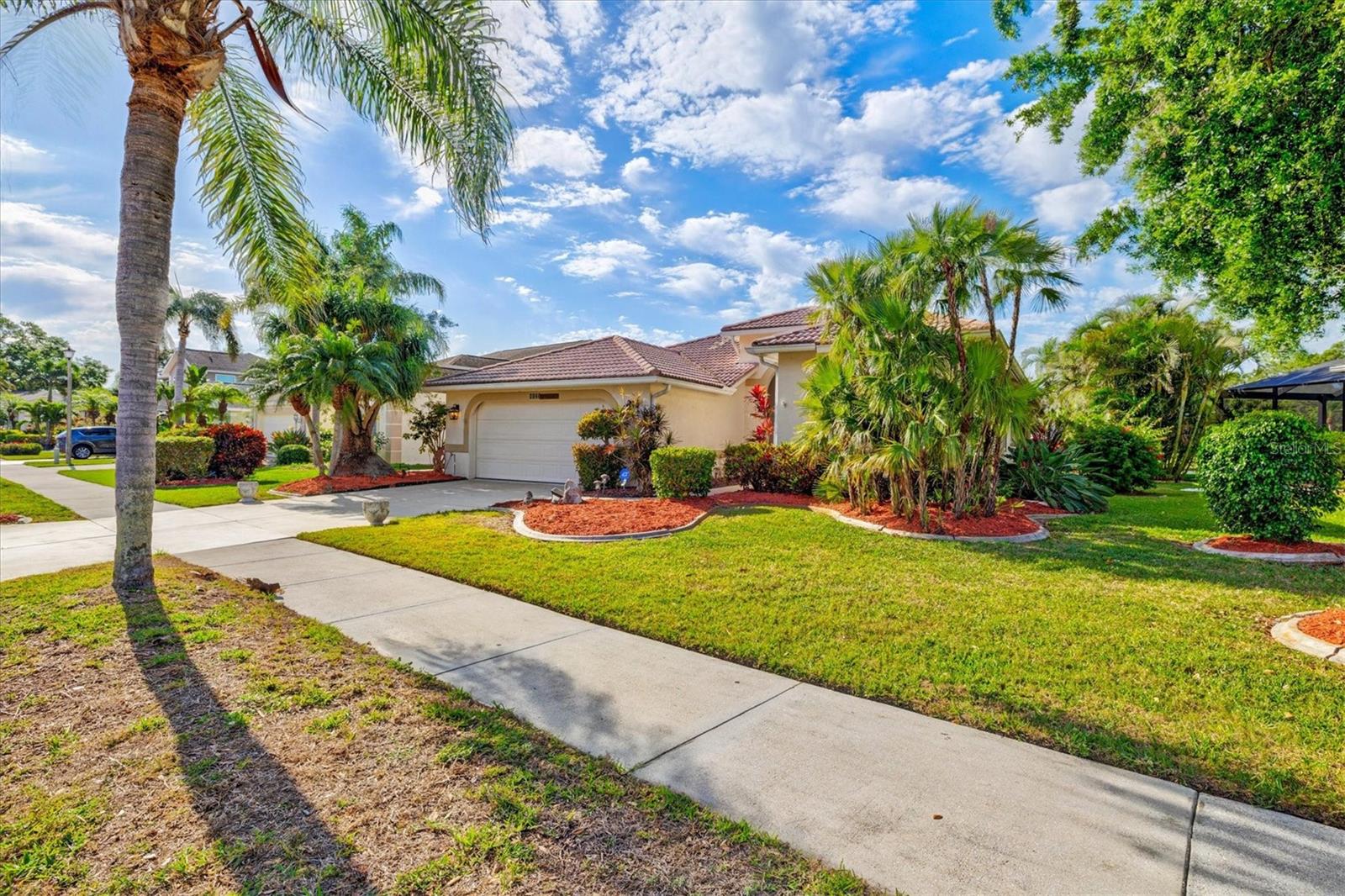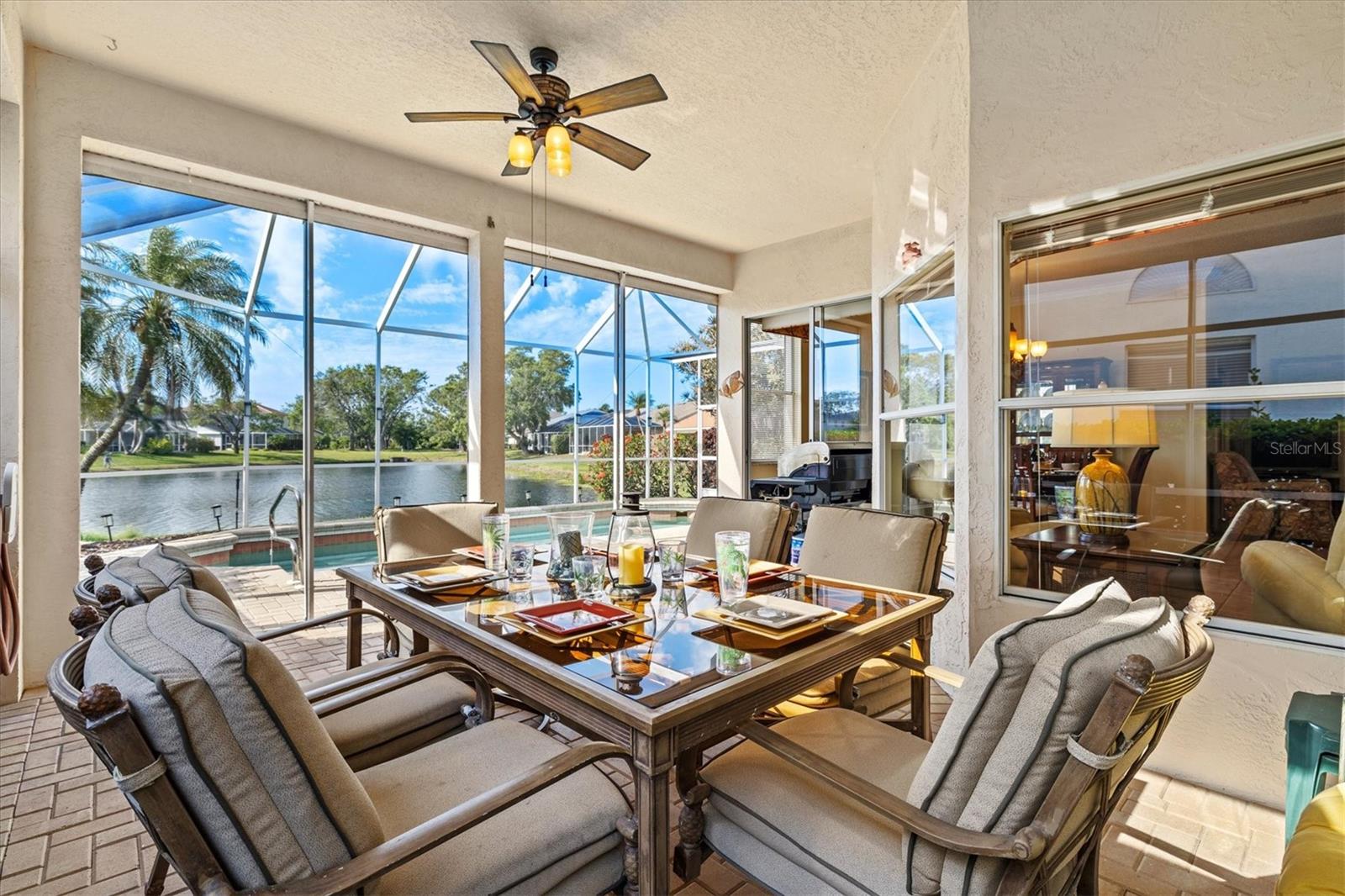 Nestled in the highly sought-after GATED COMMUNITY of Stoneybrook Estates in the heart of Palmer Ranch, this stunning FURNISHED WATERFRONT HOME includes a PRIVATE POOL and NO FLOOD ZONE. Boasting over 2,100 square feet of BEAUTIFULLY DESIGNED living space, this residence is situated on a PREMIUM LOT, providing tranquil water views right from your own backyard. Step inside and be greeted by the GRAND SPLIT FLOOR PLAN, featuring a soaring FOYER that sets the tone for the elegance within. The open-concept kitchen is ready for you to unleash your inner chef, adorned with ample GRANITE COUNTERTOPS, spacious WOOD CABINETRY, and a seamless flow into the cozy nook and FORMAL DINING area. Entertaining is effortless with the expansive formal living room, which includes an ADDITIONAL FLEX SPACE ideal for a den, library, or even a fourth bedroom. The Owner's Suite is a private retreat, bathed in NATURAL LIGHT streaming through the glass sliders that lead directly to the pool and lanai. The Ensuite is your own haven, featuring a dual-sink vanity, a relaxing garden tub, a generous walk-in shower, and a spacious walk-in closet. Each additional bedroom is thoughtfully designed with comfort in mind, while both bathrooms have been tastefully updated to reflect modern elegance. Outdoors, the home continues to impress with a large screened-in lanai that provides a peaceful setting to enjoy your private pool and the tranquil water views beyond. The entire home and lanai are equipped with both electric and manual roll-up hurricane shutters for added peace of mind. Best of all, this property is located in a no-flood zone. Residents of Stoneybrook Estates enjoy the benefits of a low HOA with no mandatory golf club membership. The Estates boasts a private 50' x 30' heated swimming pool, perfect for year-round relaxation. While golf membership is not included with the home, the Stoneybrook Golf and Country Club restaurant is open to the public, and the golf course operates as a semi-private facility for those who wish to play. This prime location places you just minutes from world-class beaches, including the renowned Siesta Key Beach, ranked among the top ten beaches in the world. Convenient access to the Legacy Trail, Oscar Scherer Park, and a variety of shopping and dining destinations; such as Costco, Target, Publix, and well-known restaurants ensures that everything you need is right at your fingertips. Families will appreciate the proximity to highly rated schools, with school bus stops conveniently located at the McIntosh entrance. This move-in-ready home is an extraordinary opportunity to experience luxury living in one of Sarasota's premier communities.