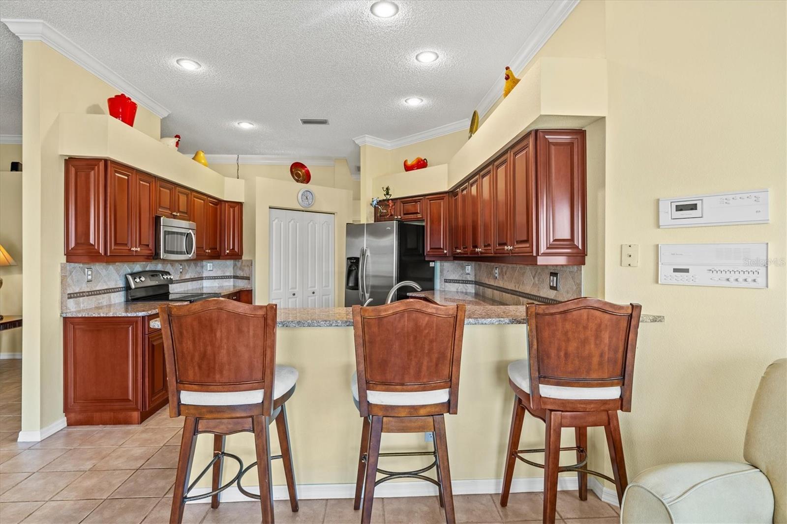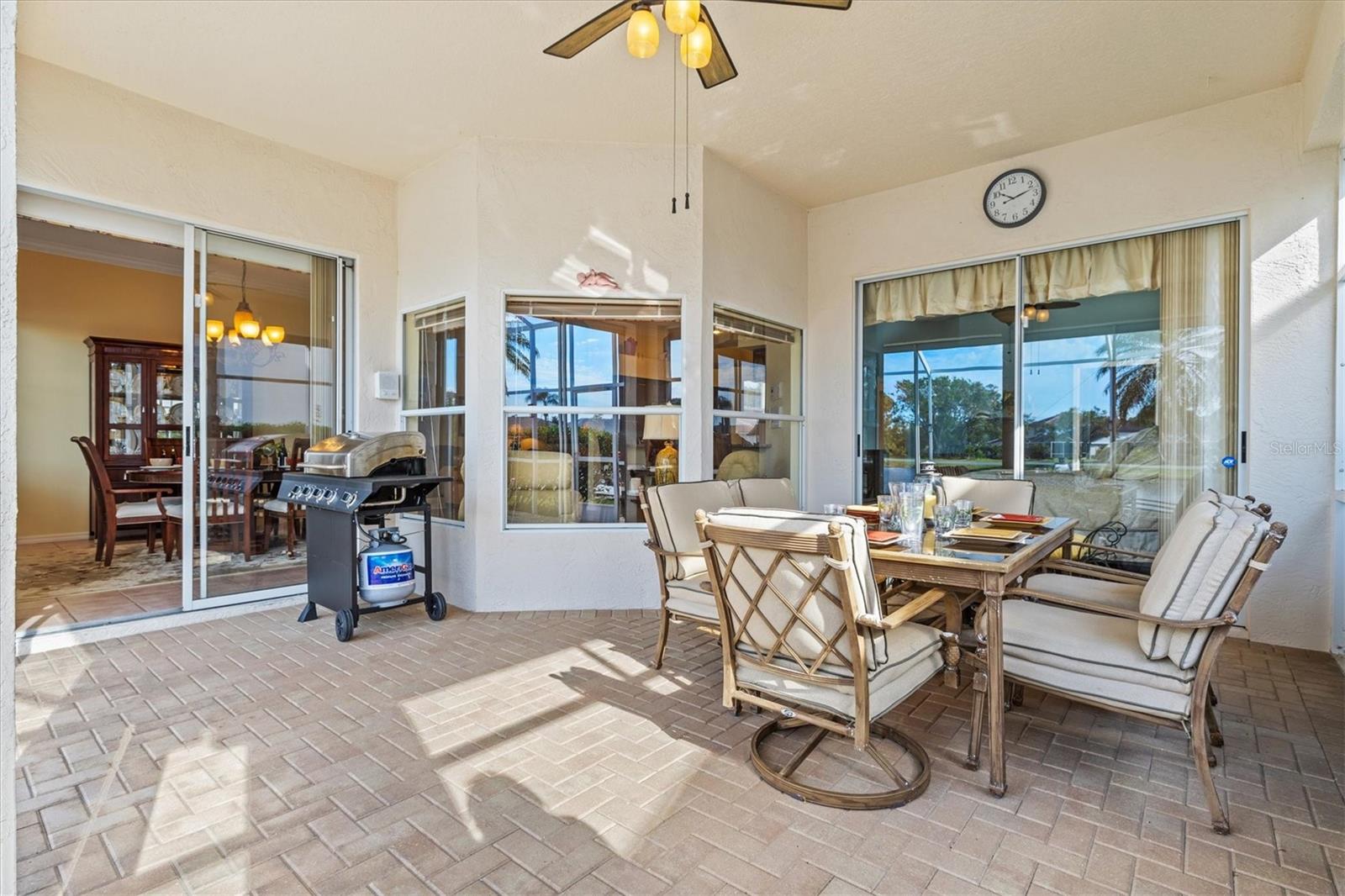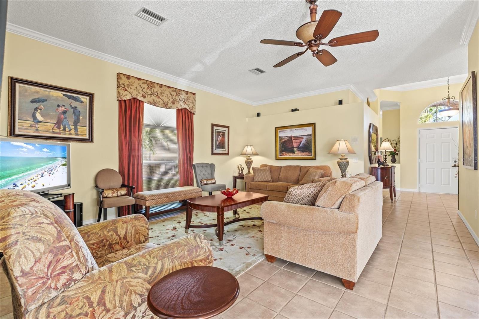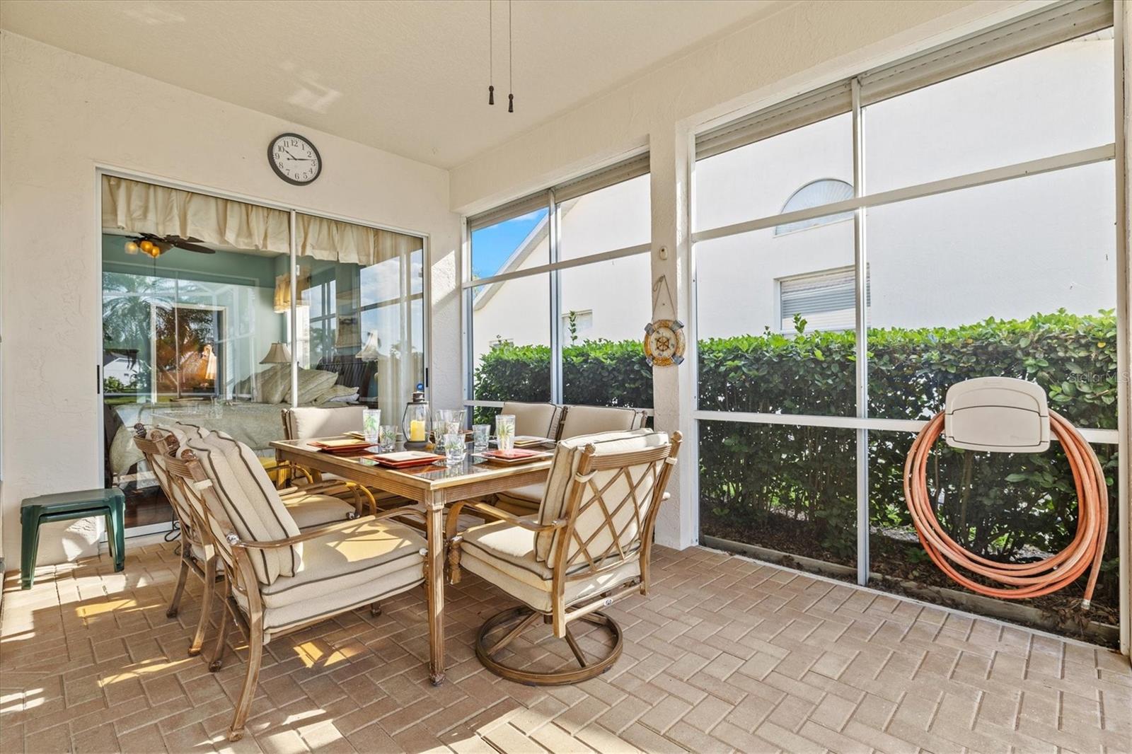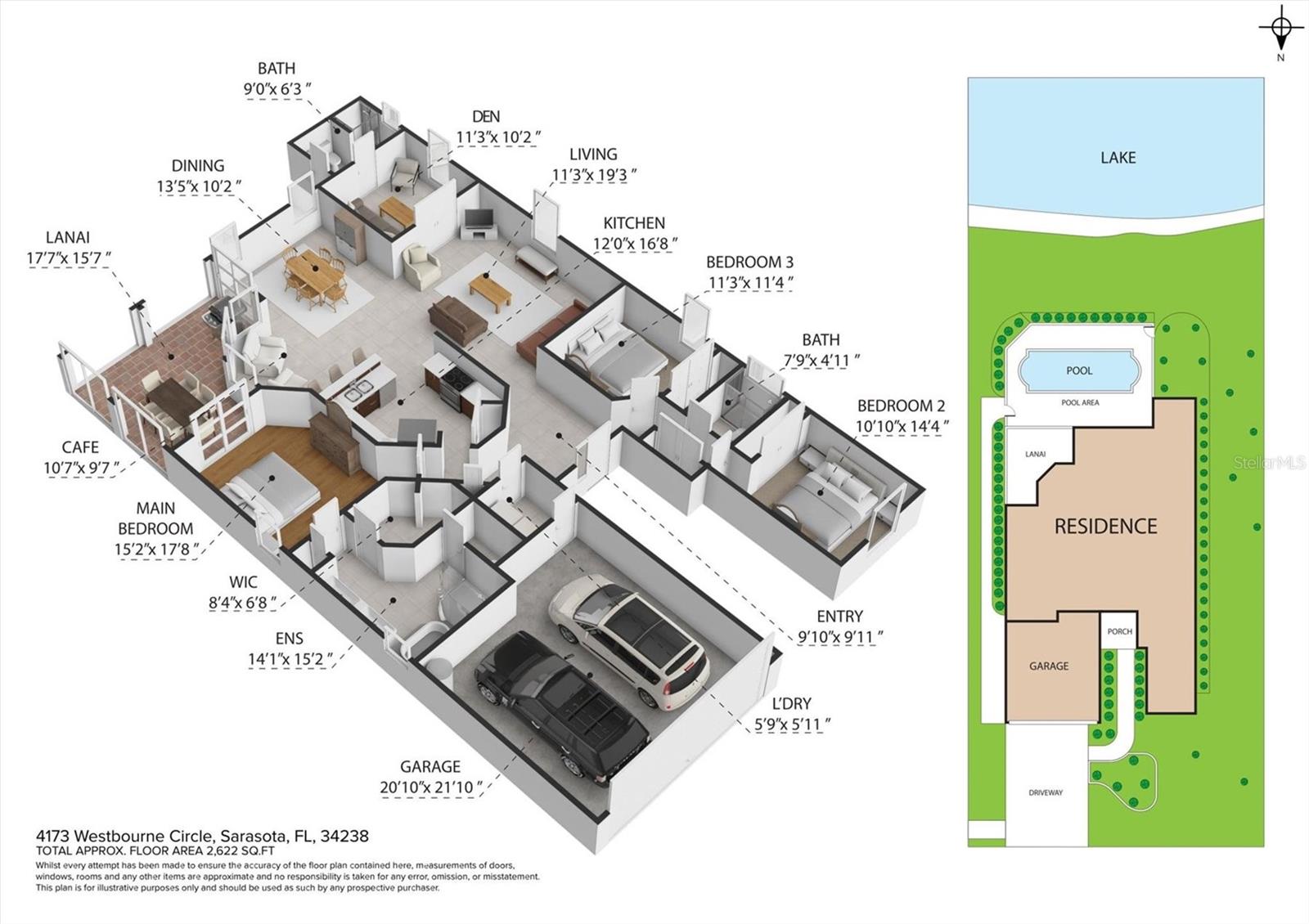 Nestled in the highly sought-after GATED COMMUNITY of Stoneybrook Estates in the heart of Palmer Ranch, this stunning FURNISHED WATERFRONT HOME includes a PRIVATE POOL and NO FLOOD ZONE. Boasting over 2,100 square feet of BEAUTIFULLY DESIGNED living space, this residence is situated on a PREMIUM LOT, providing tranquil water views right from your own backyard. Step inside and be greeted by the GRAND SPLIT FLOOR PLAN, featuring a soaring FOYER that sets the tone for the elegance within. The open-concept kitchen is ready for you to unleash your inner chef, adorned with ample GRANITE COUNTERTOPS, spacious WOOD CABINETRY, and a seamless flow into the cozy nook and FORMAL DINING area. Entertaining is effortless with the expansive formal living room, which includes an ADDITIONAL FLEX SPACE ideal for a den, library, or even a fourth bedroom. The Owner's Suite is a private retreat, bathed in NATURAL LIGHT streaming through the glass sliders that lead directly to the pool and lanai. The Ensuite is your own haven, featuring a dual-sink vanity, a relaxing garden tub, a generous walk-in shower, and a spacious walk-in closet. Each additional bedroom is thoughtfully designed with comfort in mind, while both bathrooms have been tastefully updated to reflect modern elegance. Outdoors, the home continues to impress with a large screened-in lanai that provides a peaceful setting to enjoy your private pool and the tranquil water views beyond. The entire home and lanai are equipped with both electric and manual roll-up hurricane shutters for added peace of mind. Best of all, this property is located in a no-flood zone. Residents of Stoneybrook Estates enjoy the benefits of a low HOA with no mandatory golf club membership. The Estates boasts a private 50' x 30' heated swimming pool, perfect for year-round relaxation. While golf membership is not included with the home, the Stoneybrook Golf and Country Club restaurant is open to the public, and the golf course operates as a semi-private facility for those who wish to play. This prime location places you just minutes from world-class beaches, including the renowned Siesta Key Beach, ranked among the top ten beaches in the world. Convenient access to the Legacy Trail, Oscar Scherer Park, and a variety of shopping and dining destinations; such as Costco, Target, Publix, and well-known restaurants ensures that everything you need is right at your fingertips. Families will appreciate the proximity to highly rated schools, with school bus stops conveniently located at the McIntosh entrance. This move-in-ready home is an extraordinary opportunity to experience luxury living in one of Sarasota's premier communities.