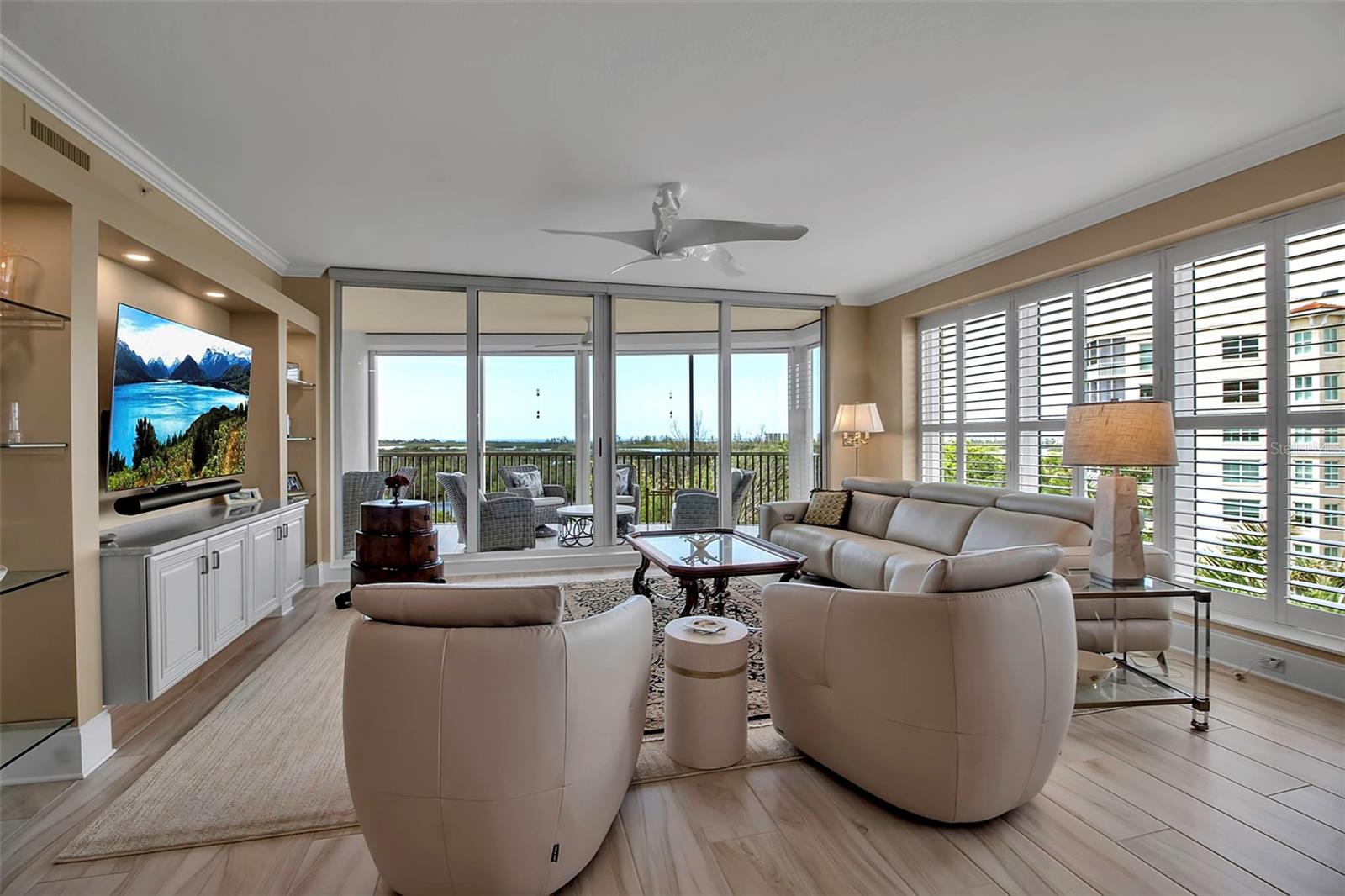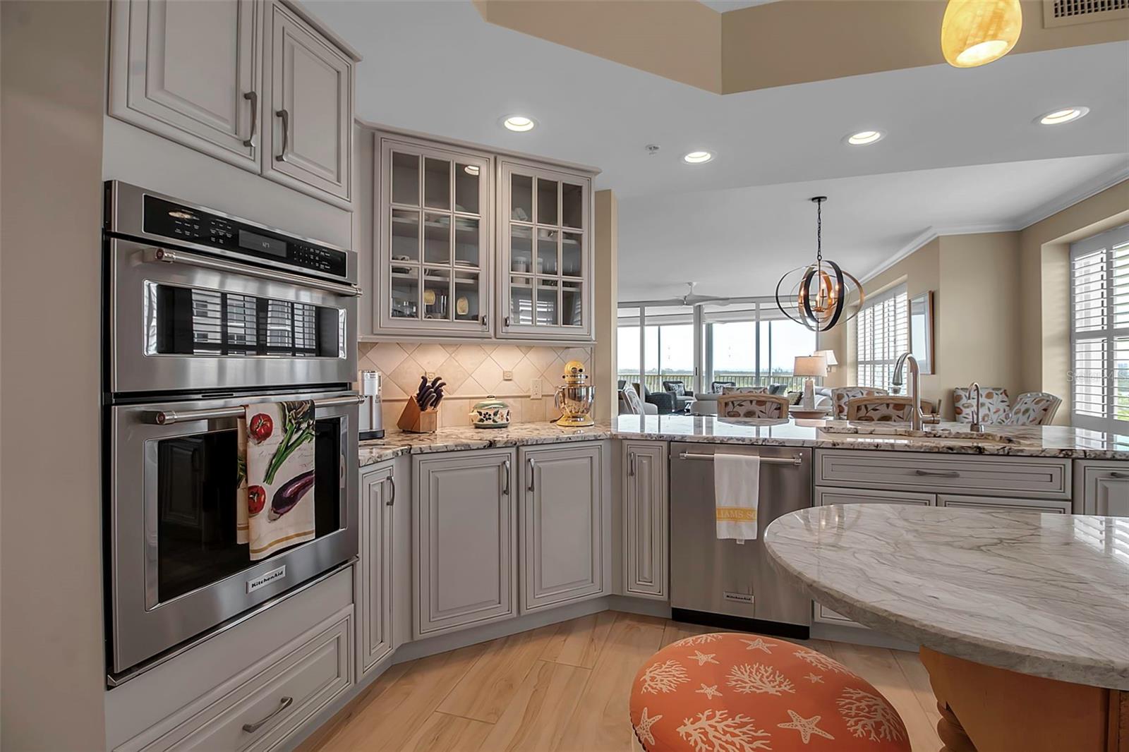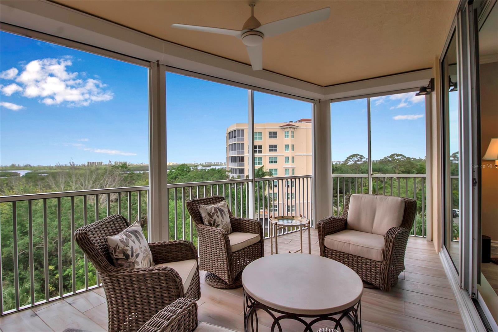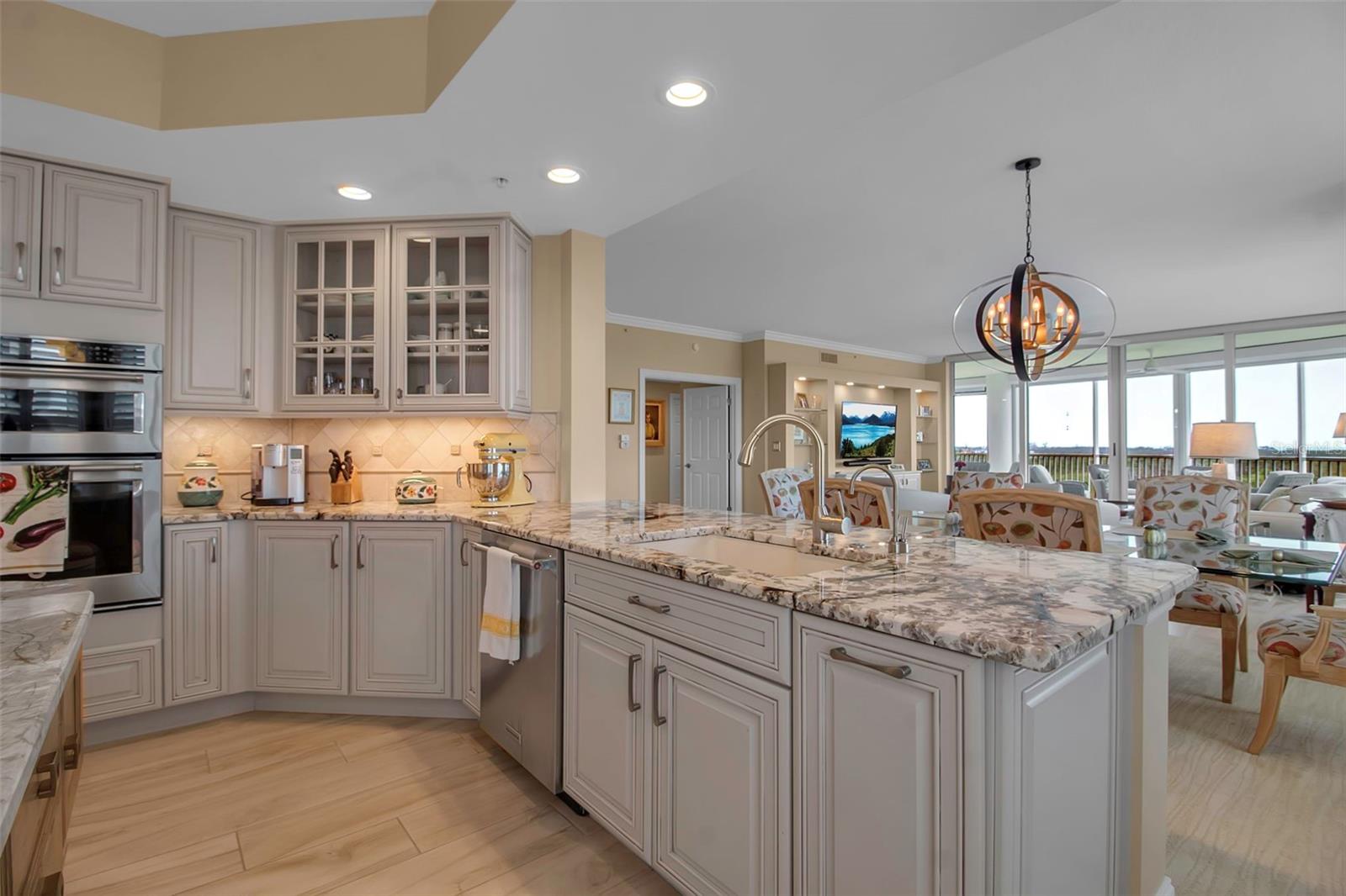 Prepare to be captivated by this COMPLETELY UPDATED, meticulously maintained, and thoughtfully appointed 3 bedroom, 3 bath condo located in Meridian at The Oaks Preserve. This spacious residence has everything you need to embrace a carefree, luxury lifestyle. As you step off your private elevator, you'll be greeted by an inviting, open layout that radiates brightness and elegance. The great room seamlessly integrates the dining and living areas, offering stunning views of the serene water and lush preserve from your privately screened balcony. The scene is nothing short of breathtaking! The kitchen is a dream come true for any culinary enthusiast, boasting an abundance of counter space, gleaming KitchenAid stainless steel appliances (including an induction cooktop and micro convection oven), and pristine white cabinetry. Retreat to the master suite, a sanctuary of comfort and sophistication. This spacious bedroom opens directly to the balcony and features two large custom closets with built-ins. The adjoining bathroom is a masterpiece of refinement, complete with a luxurious soaking tub, a large walk-in shower, dual vanities, and elegant mirrors. The additional bedrooms are generously sized, with one currently serving as an office/den. Every detail has been thoughtfully considered, including IMPACT GLASS throughout the unit--exclusive to this and two other buildings. The KEVLAR windows, doors, and balcony screening offer enhanced protection and eliminate the need to stow patio furniture during storms. This condo has it all: incredible guest baths, window seats with storage, a dry bar with built-in wine refrigerator and glass fronted cabinet for your stemware, crown molding, custom lighting fixtures, ceiling fans, plantation shutters, a Maytag washer & dryer in the large, recently renovated laundry room. With two designated parking spaces and countless other perks, this property is a gem. You truly must see it to appreciate all it has to offer! Living in Meridian means enjoying exclusive access to a private pool, spa, and workout room. And you can take advantage of everything else The Oaks, Sarasota's premier golf and country club, has to offer: two championship 18-hole golf courses, 12 HAR-TRU tennis courts (4 lighted), 4 pickleball courts, a state-of-the-art WellFit Center, an award-winning culinary team, and a wide variety of social and recreational offerings. Club membership is required with homeownership.