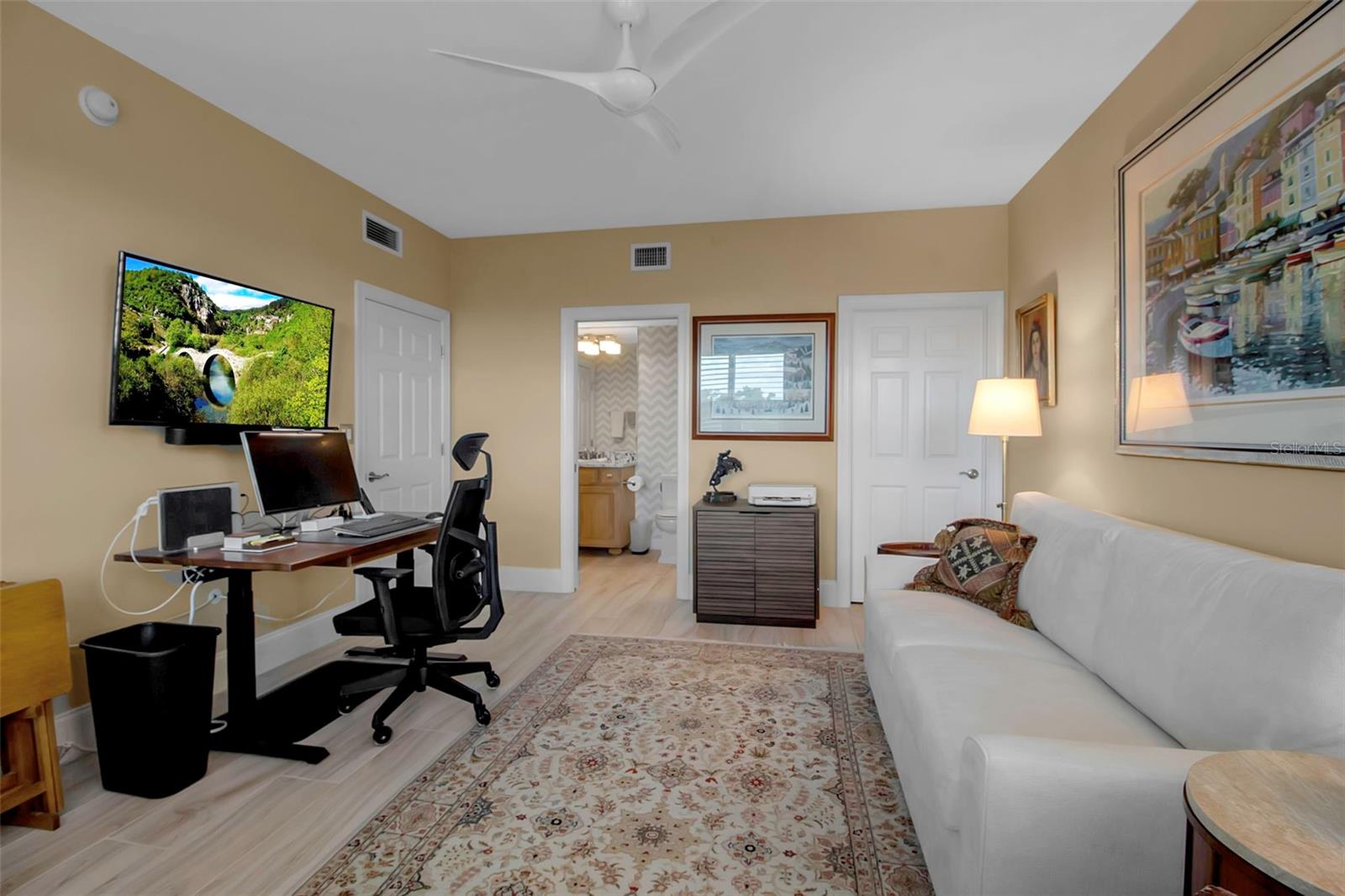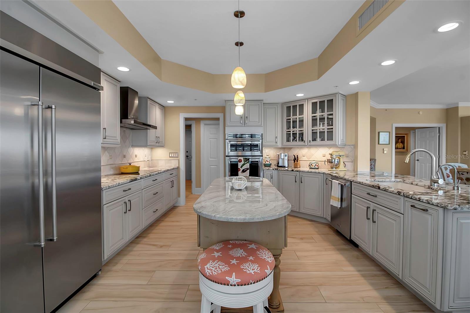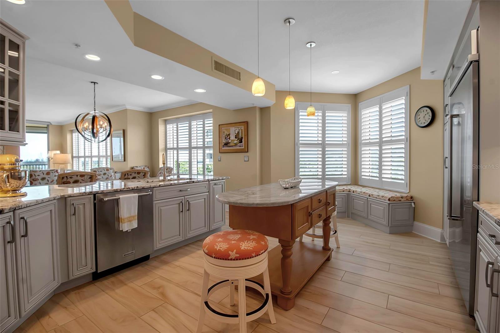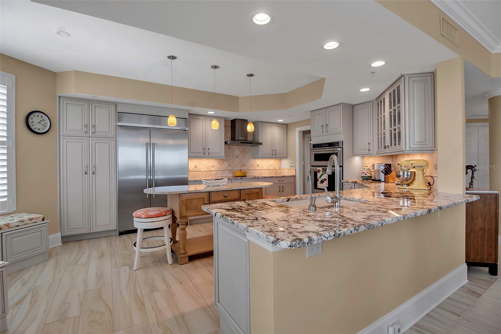 Prepare to be captivated by this COMPLETELY UPDATED, meticulously maintained, and thoughtfully appointed 3 bedroom, 3 bath condo located in Meridian at The Oaks Preserve. This spacious residence has everything you need to embrace a carefree, luxury lifestyle. As you step off your private elevator, you'll be greeted by an inviting, open layout that radiates brightness and elegance. The great room seamlessly integrates the dining and living areas, offering stunning views of the serene water and lush preserve from your privately screened balcony. The scene is nothing short of breathtaking! The kitchen is a dream come true for any culinary enthusiast, boasting an abundance of counter space, gleaming KitchenAid stainless steel appliances (including an induction cooktop and micro convection oven), and pristine white cabinetry. Retreat to the master suite, a sanctuary of comfort and sophistication. This spacious bedroom opens directly to the balcony and features two large custom closets with built-ins. The adjoining bathroom is a masterpiece of refinement, complete with a luxurious soaking tub, a large walk-in shower, dual vanities, and elegant mirrors. The additional bedrooms are generously sized, with one currently serving as an office/den. Every detail has been thoughtfully considered, including IMPACT GLASS throughout the unit--exclusive to this and two other buildings. The KEVLAR windows, doors, and balcony screening offer enhanced protection and eliminate the need to stow patio furniture during storms. This condo has it all: incredible guest baths, window seats with storage, a dry bar with built-in wine refrigerator and glass fronted cabinet for your stemware, crown molding, custom lighting fixtures, ceiling fans, plantation shutters, a Maytag washer & dryer in the large, recently renovated laundry room. With two designated parking spaces and countless other perks, this property is a gem. You truly must see it to appreciate all it has to offer! Living in Meridian means enjoying exclusive access to a private pool, spa, and workout room. And you can take advantage of everything else The Oaks, Sarasota's premier golf and country club, has to offer: two championship 18-hole golf courses, 12 HAR-TRU tennis courts (4 lighted), 4 pickleball courts, a state-of-the-art WellFit Center, an award-winning culinary team, and a wide variety of social and recreational offerings. Club membership is required with homeownership.