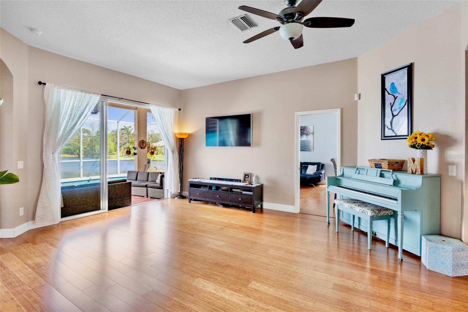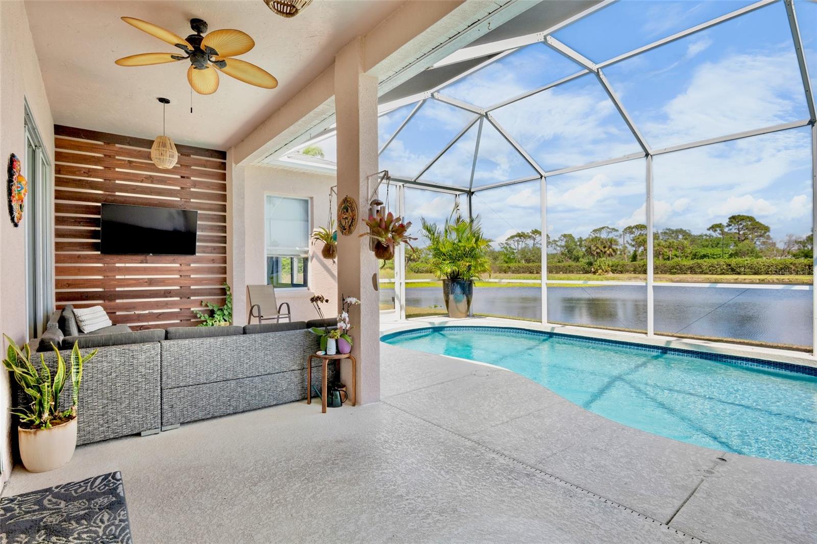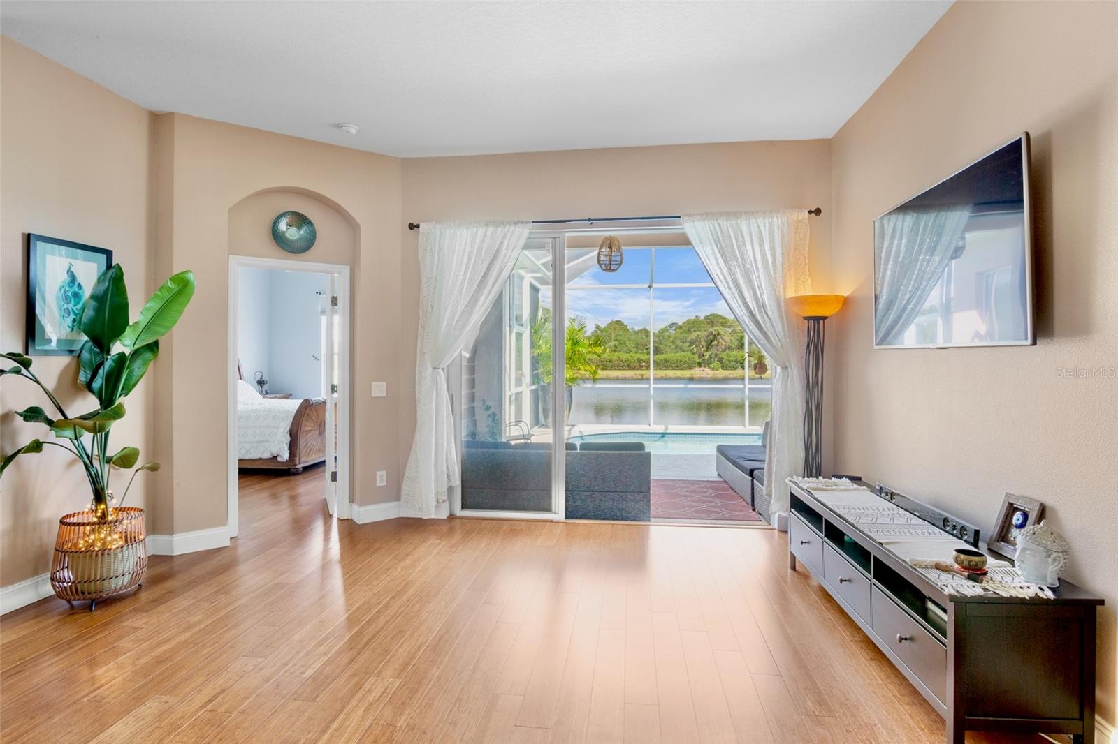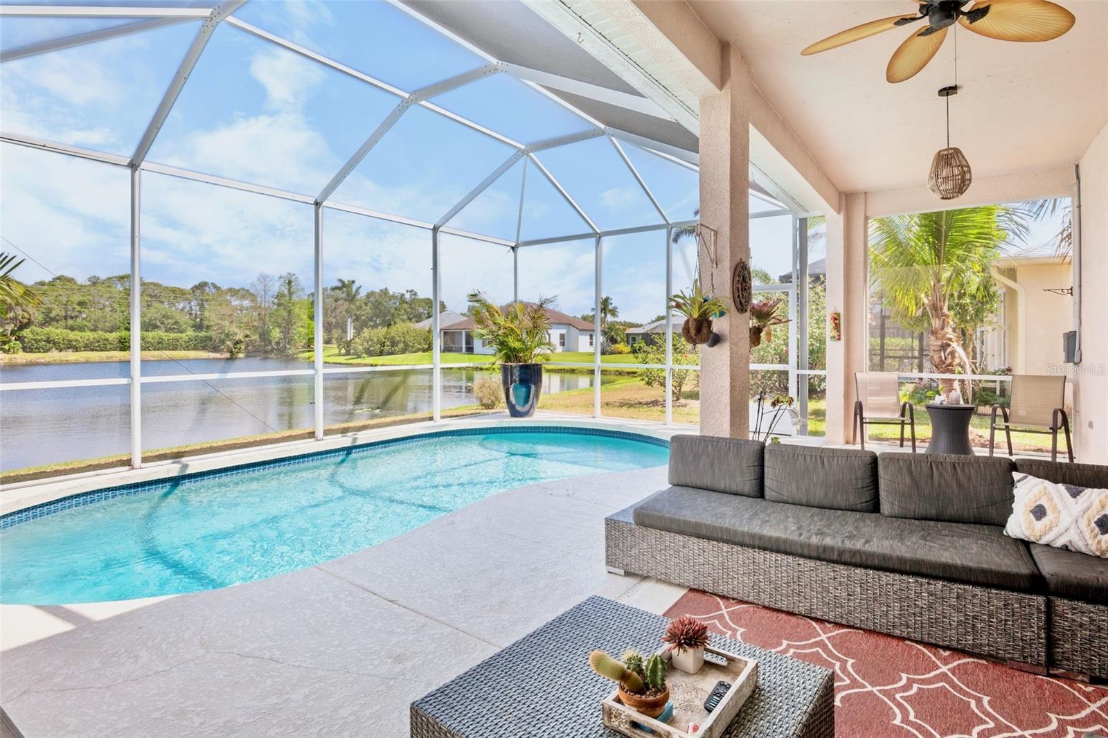 Some homes just feel different the moment you walk in--and this is one of them. With 2,369 square feet on over a quarter-acre lot, privacy and space greet you at every turn. Expansive lake views pull your eye from both living rooms, the master bedroom, and your poolside lanai, making the outdoors feel like an extension of your home. Sunrises provide a beautiful golden light across the lake, while shaded sunsets and magnificent moonrises over the water bring a calm to the end of the day. The split-bedroom floor plan offers privacy between the master suite and guest rooms, and with four bedrooms--or an easy conversion to three plus a den--you'll have flexibility to fit your lifestyle. High ceilings, arched windows, and architectural details like plant shelves add light and character, while the newly rescreened lanai offers plenty of space around the pool for gatherings and weekend cookouts. The kitchen offers an eat-in layout plus a separate formal dining area, and the master suite delivers lake views, a walk-in closet, dual sinks, a garden tub, and a separate walk-in shower. Recent Upgrades--include a brand new roof this year, 2019 A/C system, whole-home repipe, and bamboo flooring throughout. All of this adds to the peace-of-mind you'll have living in FEMA Zone X (Zero history of flooding & no flood insurance required). A+ school district. Only 15 minutes to Siesta Key Beach and just a few minutes to I-75 and the Legacy Trail make commuting around Sarasota as easy as it gets. Seller is motivated and ready to make a deal.BONUS: HOA Fees only $900/year