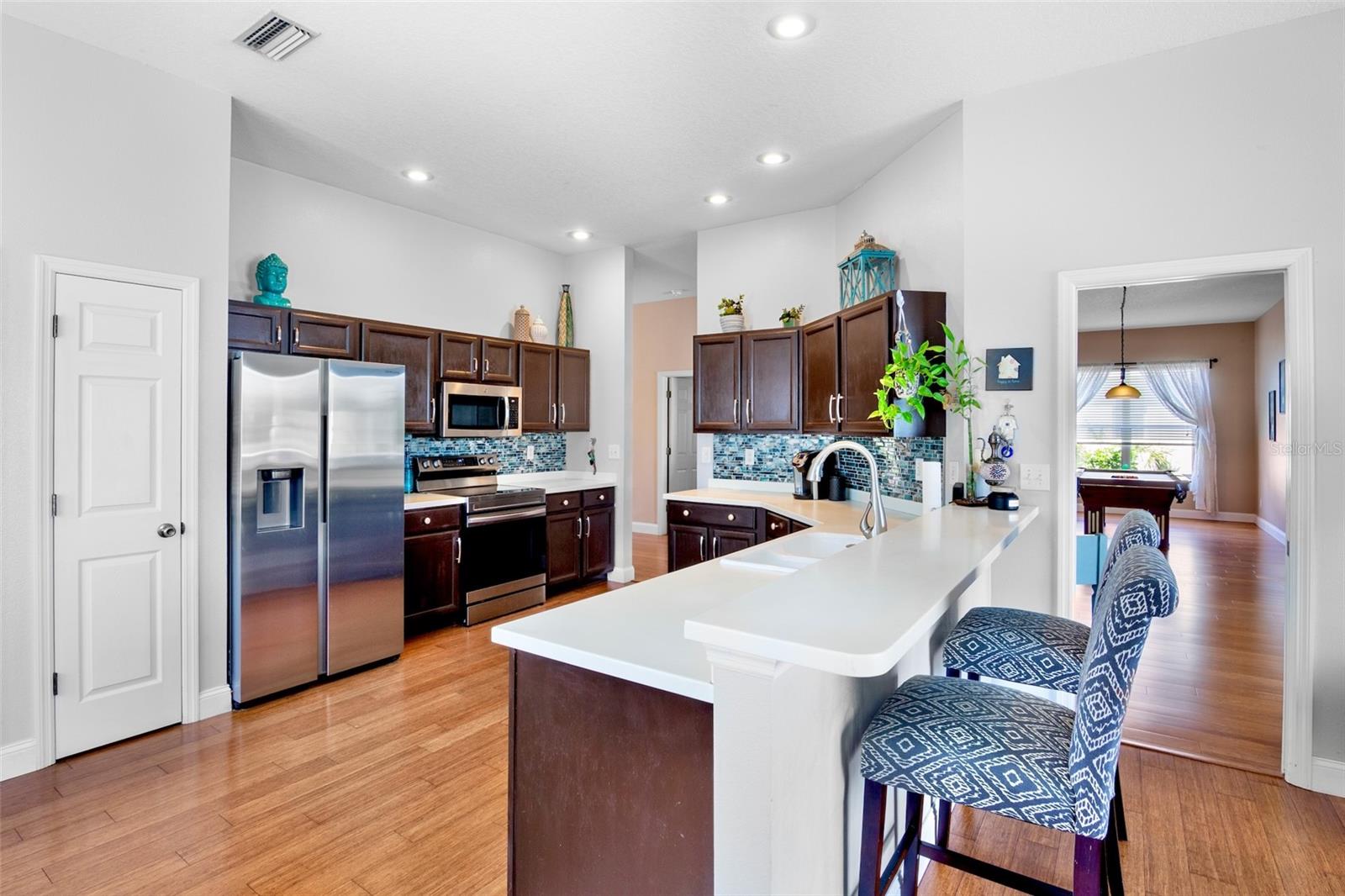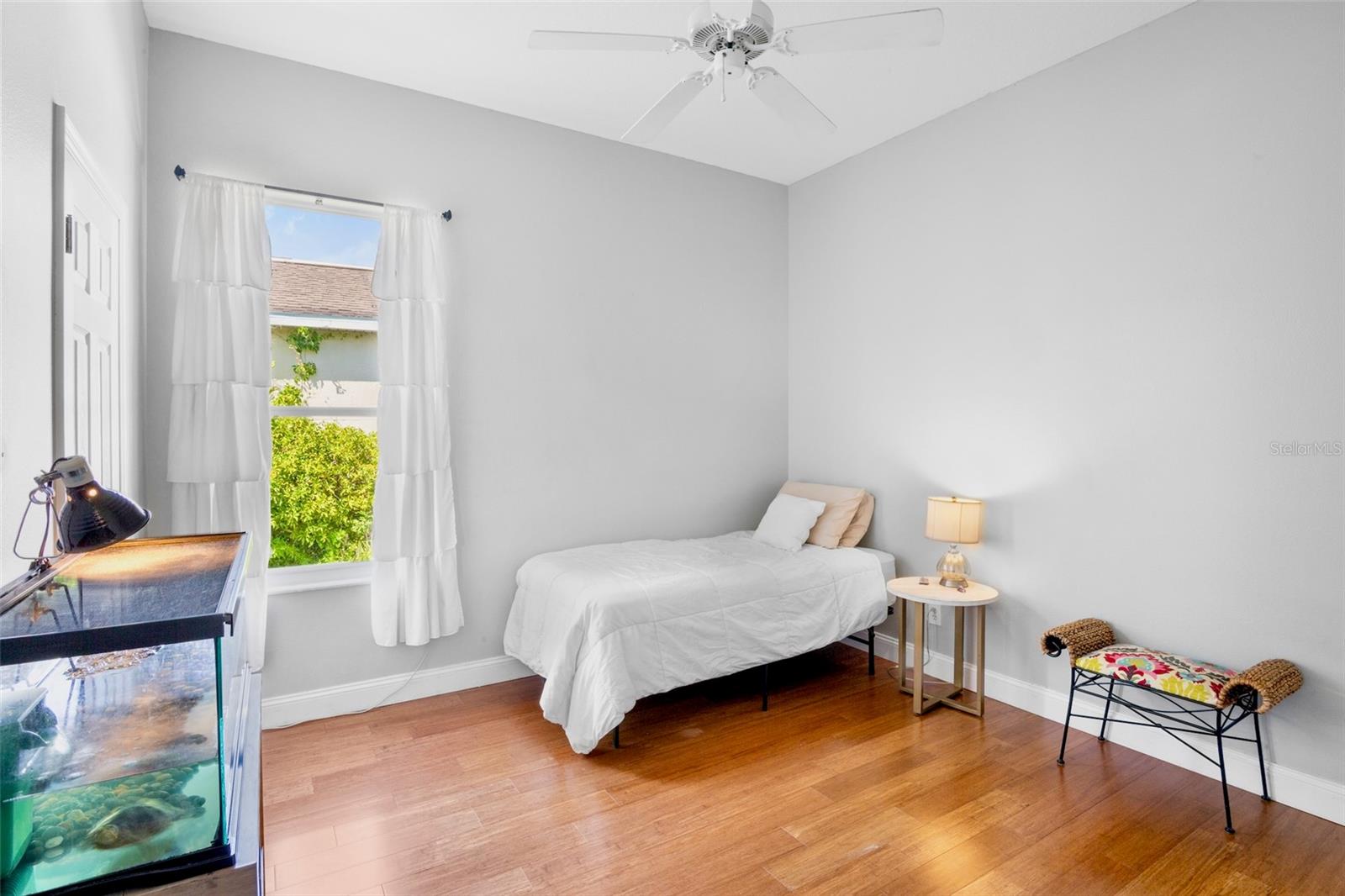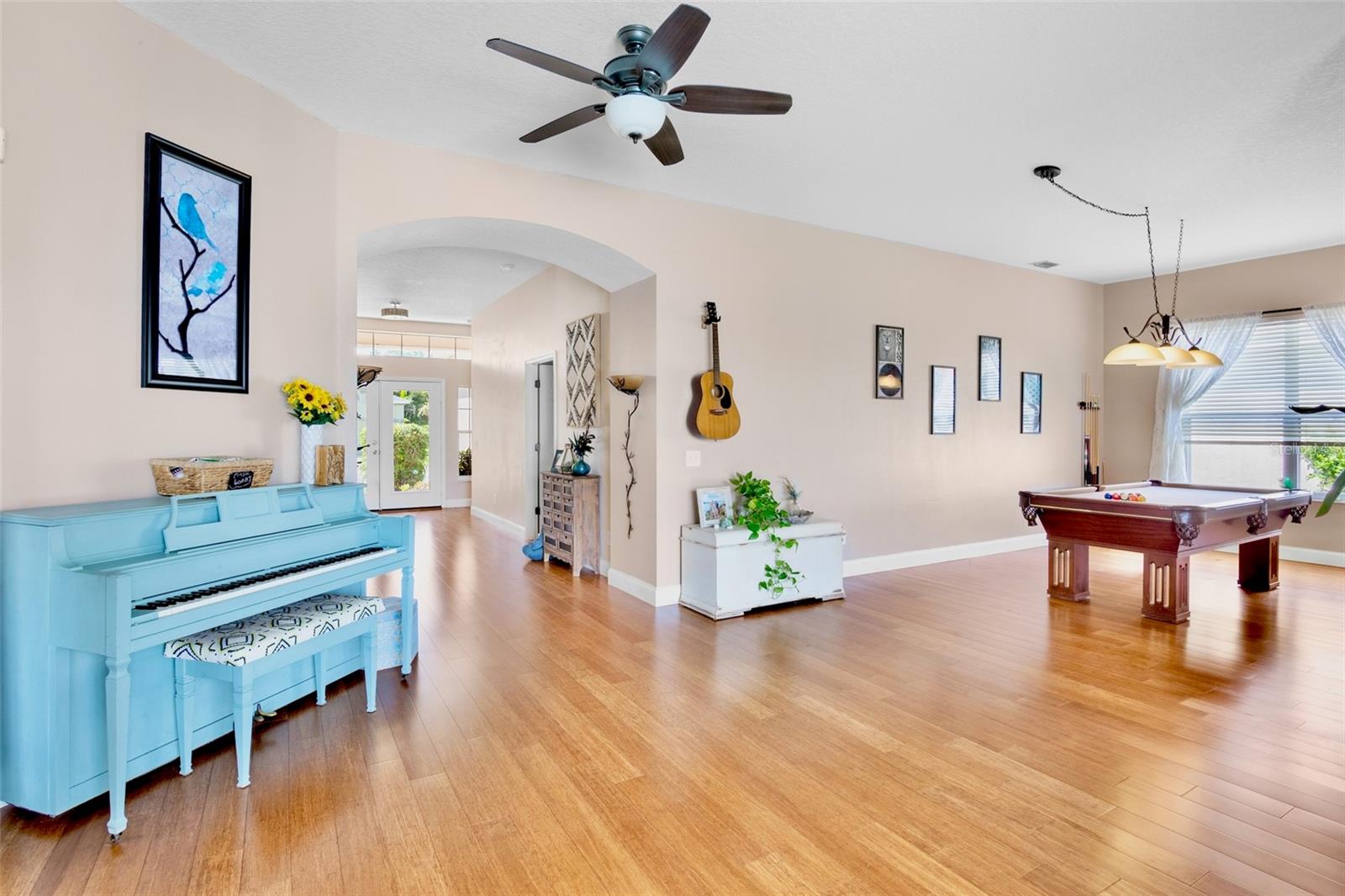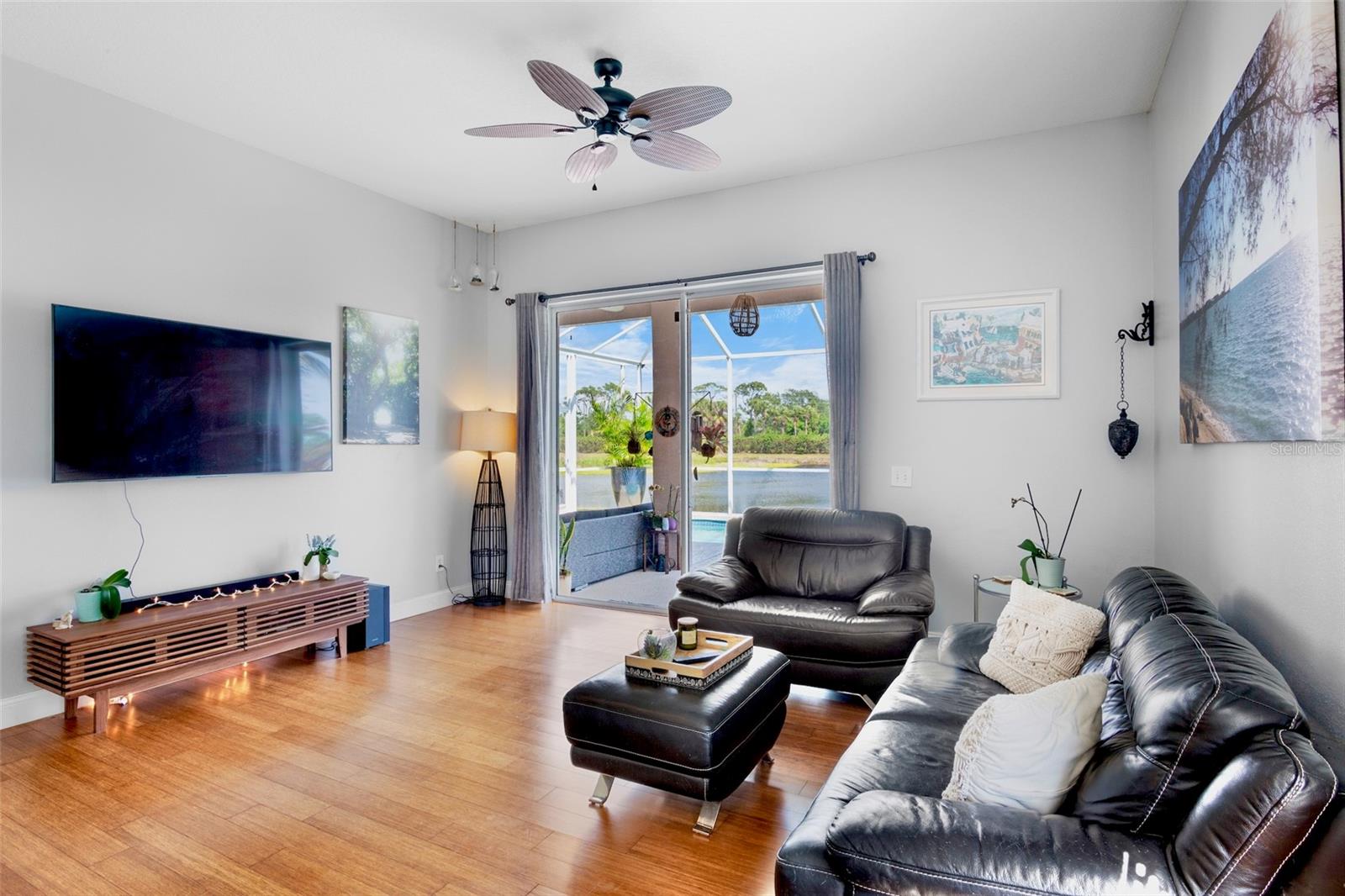 Some homes just feel different the moment you walk in--and this is one of them. With 2,369 square feet on over a quarter-acre lot, privacy and space greet you at every turn. Expansive lake views pull your eye from both living rooms, the master bedroom, and your poolside lanai, making the outdoors feel like an extension of your home. Sunrises provide a beautiful golden light across the lake, while shaded sunsets and magnificent moonrises over the water bring a calm to the end of the day. The split-bedroom floor plan offers privacy between the master suite and guest rooms, and with four bedrooms--or an easy conversion to three plus a den--you'll have flexibility to fit your lifestyle. High ceilings, arched windows, and architectural details like plant shelves add light and character, while the newly rescreened lanai offers plenty of space around the pool for gatherings and weekend cookouts. The kitchen offers an eat-in layout plus a separate formal dining area, and the master suite delivers lake views, a walk-in closet, dual sinks, a garden tub, and a separate walk-in shower. Recent Upgrades--include a brand new roof this year, 2019 A/C system, whole-home repipe, and bamboo flooring throughout. All of this adds to the peace-of-mind you'll have living in FEMA Zone X (Zero history of flooding & no flood insurance required). A+ school district. Only 15 minutes to Siesta Key Beach and just a few minutes to I-75 and the Legacy Trail make commuting around Sarasota as easy as it gets. Seller is motivated and ready to make a deal.BONUS: HOA Fees only $900/year