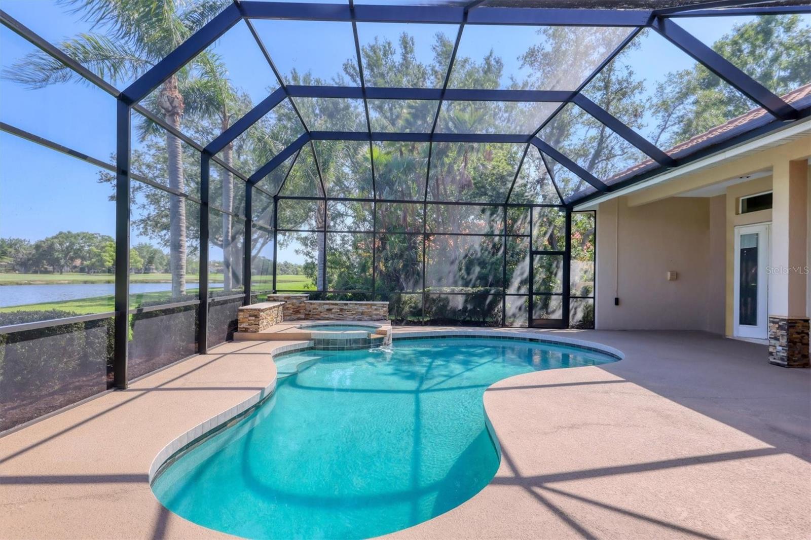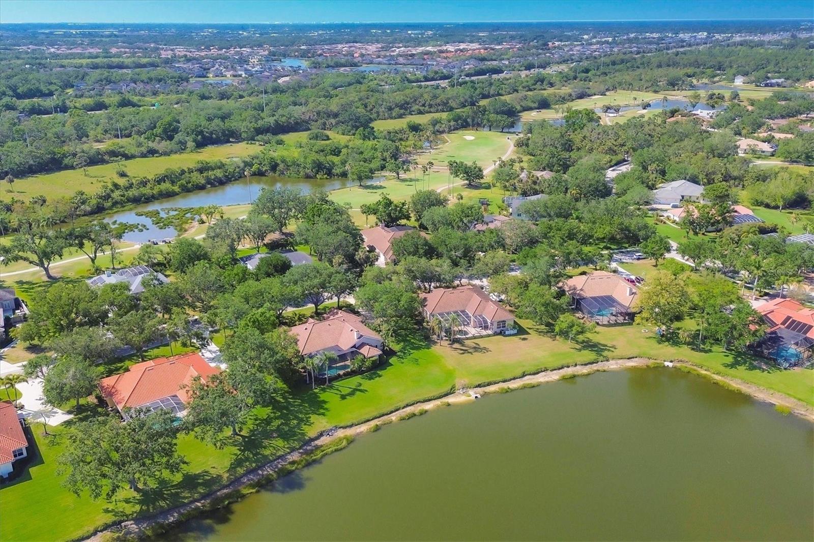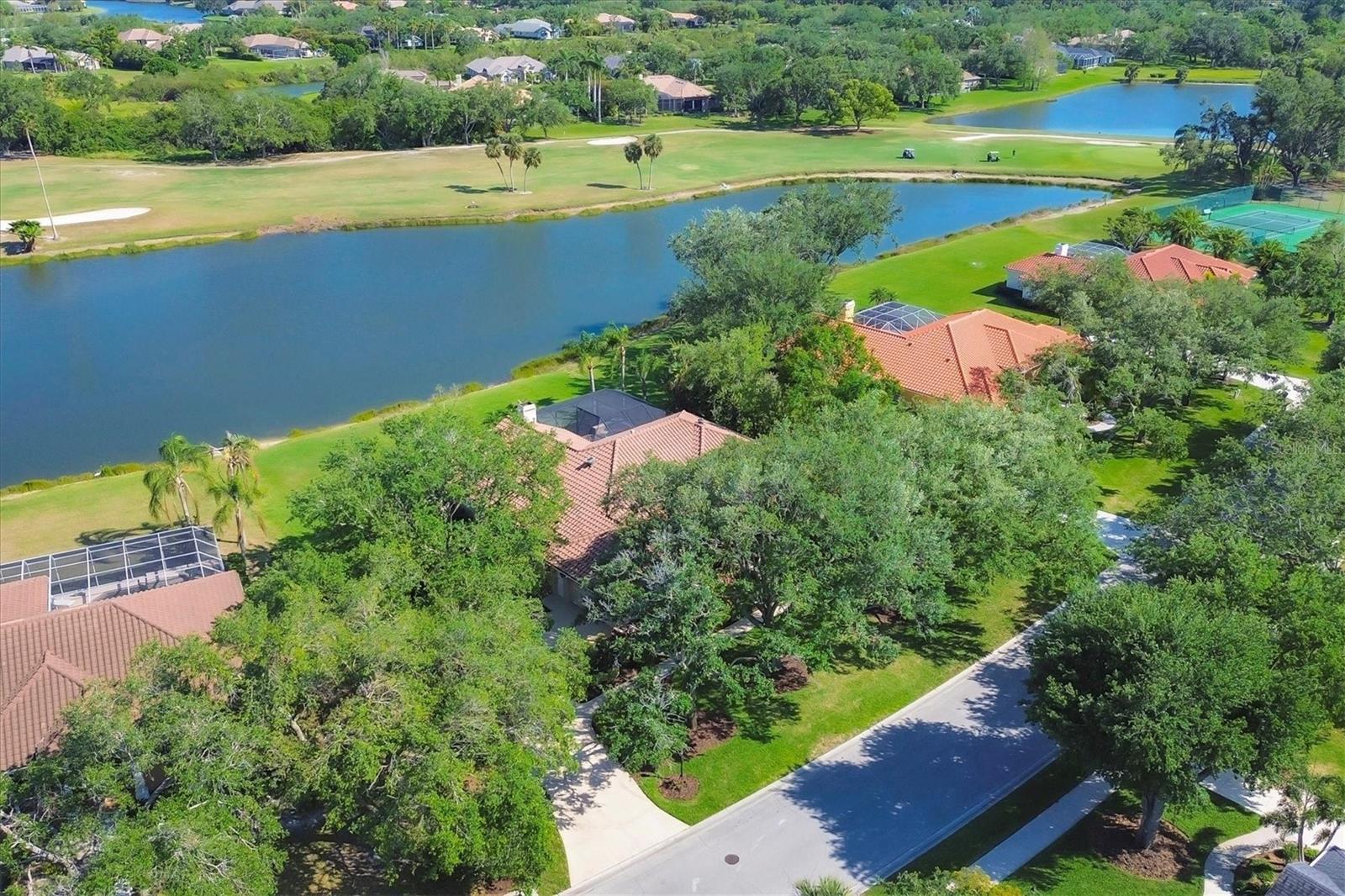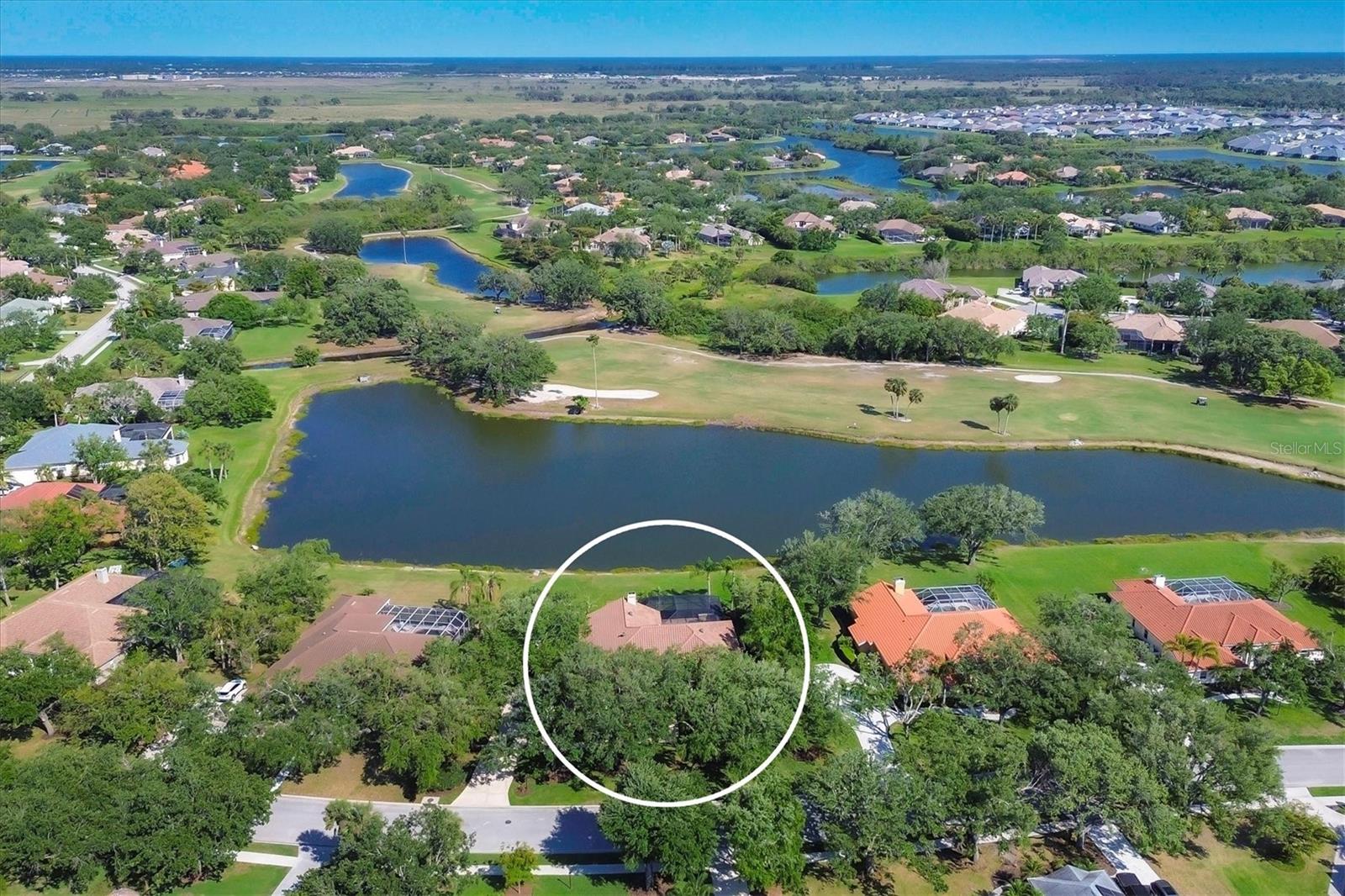 One or more photo(s) has been virtually staged. Nestled on slightly over 1/2 an acre in a picturesque setting of majestic oak canopies, and lush tropical foliage a custom-built home awaits. This property combines comfort, privacy, and breathtaking views offering a true Florida lifestyle in one of Sarasota's most desired gated golf communities, Serenoa. This beautifully designed residence features a spacious 2,848sq split floor plan offering, three bedrooms, three full bathrooms a formal living room, a family room, and a private office. The property has sliders throughout providing expansive views of the lake & 5th fairway filling each room with natural light. The primary suite is a peaceful retreat with french doors that open to the patio, while the en-suit bath provides two generous walk- in closets with a soaking tub and walk in- shower. The open concept living and dining areas provide the perfect setting for entertaining, while the breakfast nook with its large aquarium window offers a tranquil start to your day. A cozy fireplace in the family room adds warmth and charm, creating an inviting space to relax. Step outside to a must-see patio, where the saltwater pool and spa provide year-round enjoyment under the Florida sun. The outdoor kitchen is fully equipped with built-in grill, mini fridge, bar seating, and a true pool bath with shower-perfect for entertaining guest in style. The garage provides ample space to park two vehicles, along with built-in cabinets for additional storage. The property is also equipped with a well for the irrigation system, helping to ensure the landscape remains lush and beautiful. Serenoa is truly a one-of-a-kind community, each property situated on at least a half acre surrounding a beautifully maintained golf course nestled among mature oak trees, lush foliage, wildlife and multiple lakes, creating a picturesque and serene environment. Tennis and pickleball courts are available to all residents. ** Golf course membership is optional * Whitetails bar & Grill located at the club house provides on-site casual dining a perfect spot for socializing or grabbing a bite close to home. Conveniently located near, Publix, Twin lakes park, shopping, and just a short drive away from award winning Siesta Key beach, and UTC town center. *** EXTREMELY LOW HOA Fees** Improvements include**2015 Tile Roof **2018 NEW AC **2021 WATER HEATER ***2022 PROPERTY RE-PIPED***2025 NEW POOL CAGE***2025 New carpet***