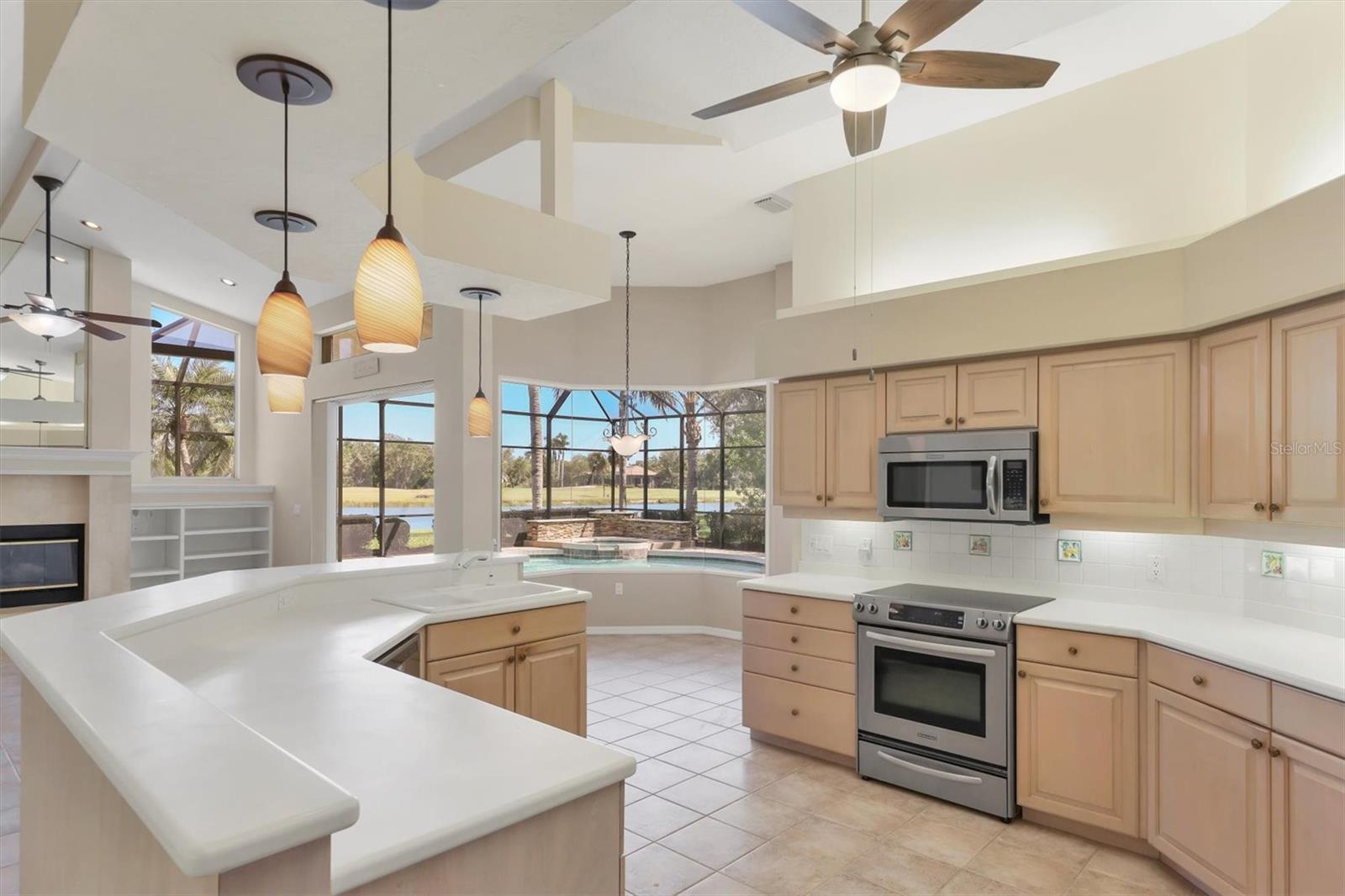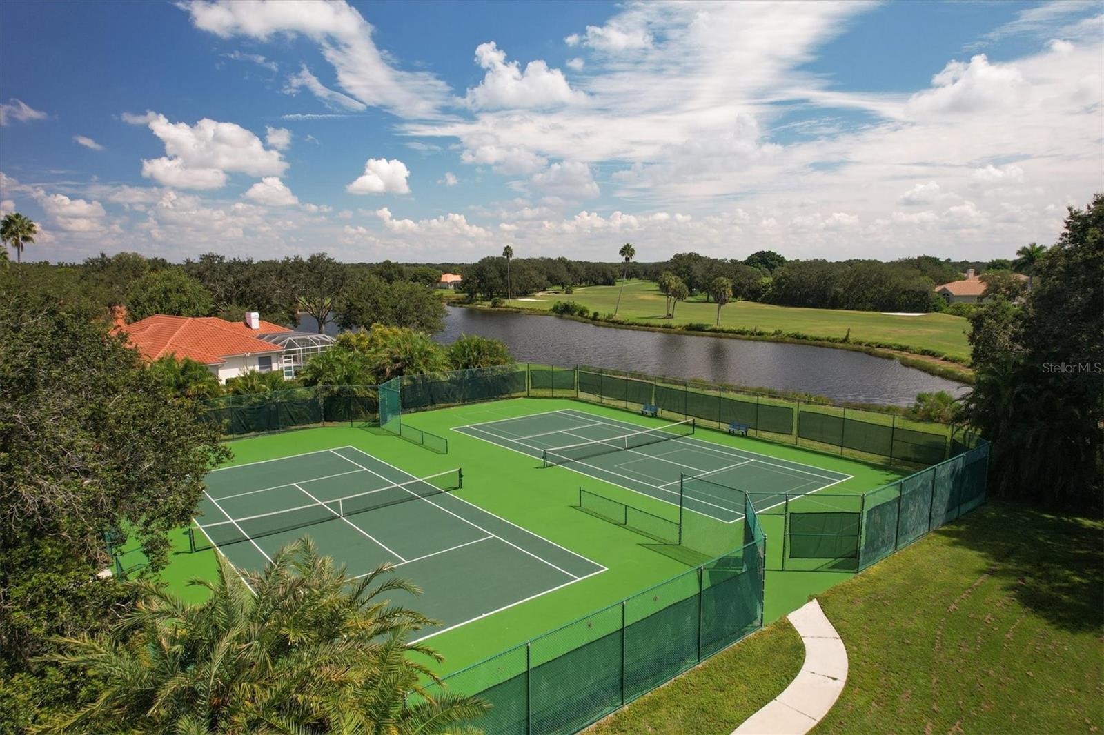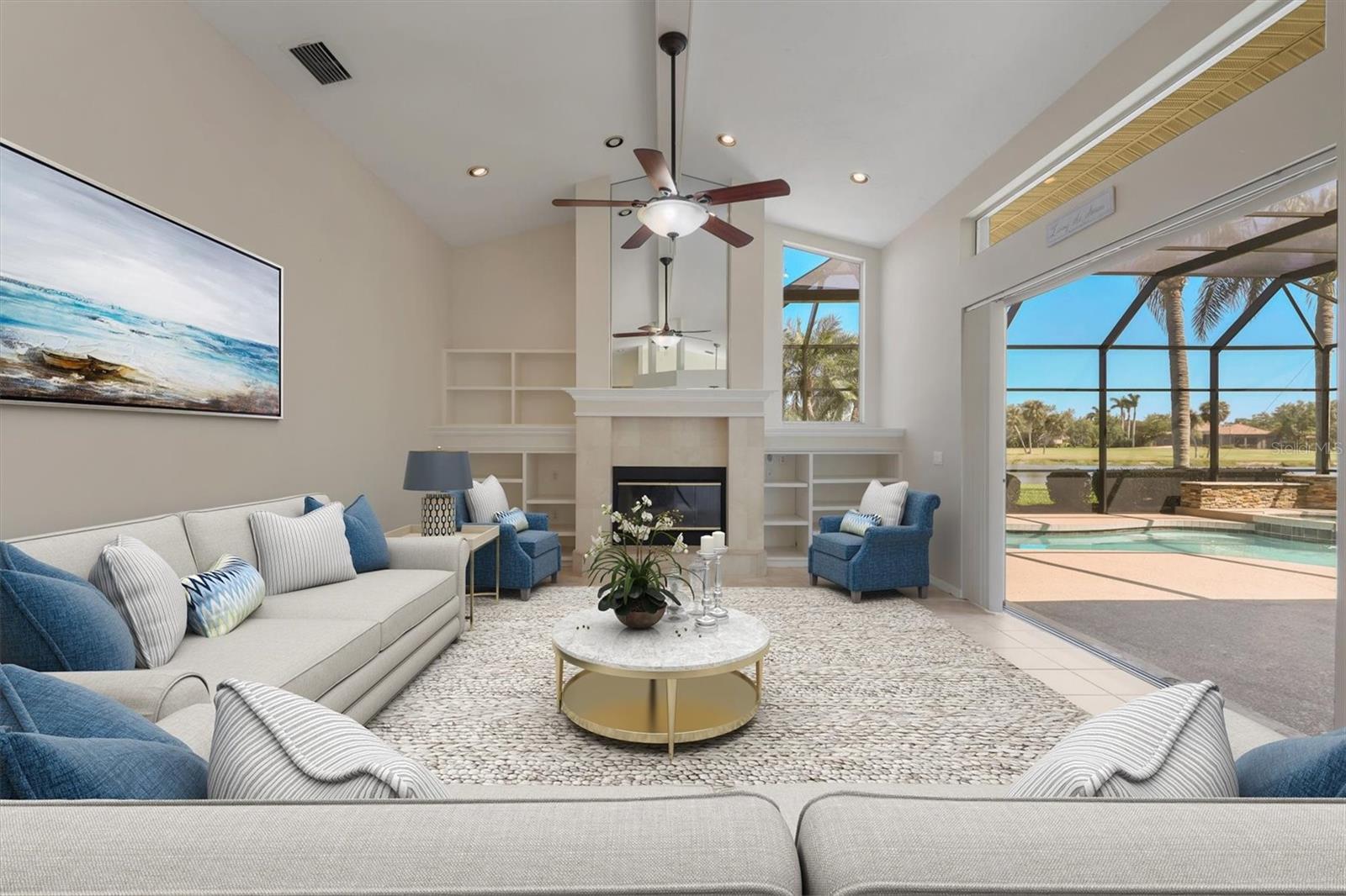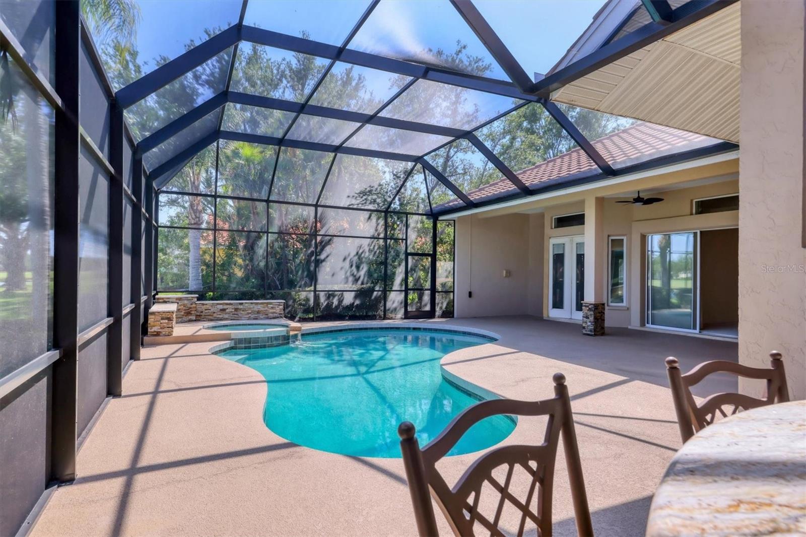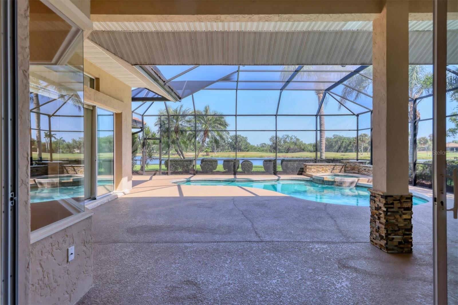 One or more photo(s) has been virtually staged. Nestled on slightly over 1/2 an acre in a picturesque setting of majestic oak canopies, and lush tropical foliage a custom-built home awaits. This property combines comfort, privacy, and breathtaking views offering a true Florida lifestyle in one of Sarasota's most desired gated golf communities, Serenoa. This beautifully designed residence features a spacious 2,848sq split floor plan offering, three bedrooms, three full bathrooms a formal living room, a family room, and a private office. The property has sliders throughout providing expansive views of the lake & 5th fairway filling each room with natural light. The primary suite is a peaceful retreat with french doors that open to the patio, while the en-suit bath provides two generous walk- in closets with a soaking tub and walk in- shower. The open concept living and dining areas provide the perfect setting for entertaining, while the breakfast nook with its large aquarium window offers a tranquil start to your day. A cozy fireplace in the family room adds warmth and charm, creating an inviting space to relax. Step outside to a must-see patio, where the saltwater pool and spa provide year-round enjoyment under the Florida sun. The outdoor kitchen is fully equipped with built-in grill, mini fridge, bar seating, and a true pool bath with shower-perfect for entertaining guest in style. The garage provides ample space to park two vehicles, along with built-in cabinets for additional storage. The property is also equipped with a well for the irrigation system, helping to ensure the landscape remains lush and beautiful. Serenoa is truly a one-of-a-kind community, each property situated on at least a half acre surrounding a beautifully maintained golf course nestled among mature oak trees, lush foliage, wildlife and multiple lakes, creating a picturesque and serene environment. Tennis and pickleball courts are available to all residents. ** Golf course membership is optional * Whitetails bar & Grill located at the club house provides on-site casual dining a perfect spot for socializing or grabbing a bite close to home. Conveniently located near, Publix, Twin lakes park, shopping, and just a short drive away from award winning Siesta Key beach, and UTC town center. *** EXTREMELY LOW HOA Fees** Improvements include**2015 Tile Roof **2018 NEW AC **2021 WATER HEATER ***2022 PROPERTY RE-PIPED***2025 NEW POOL CAGE***2025 New carpet***
