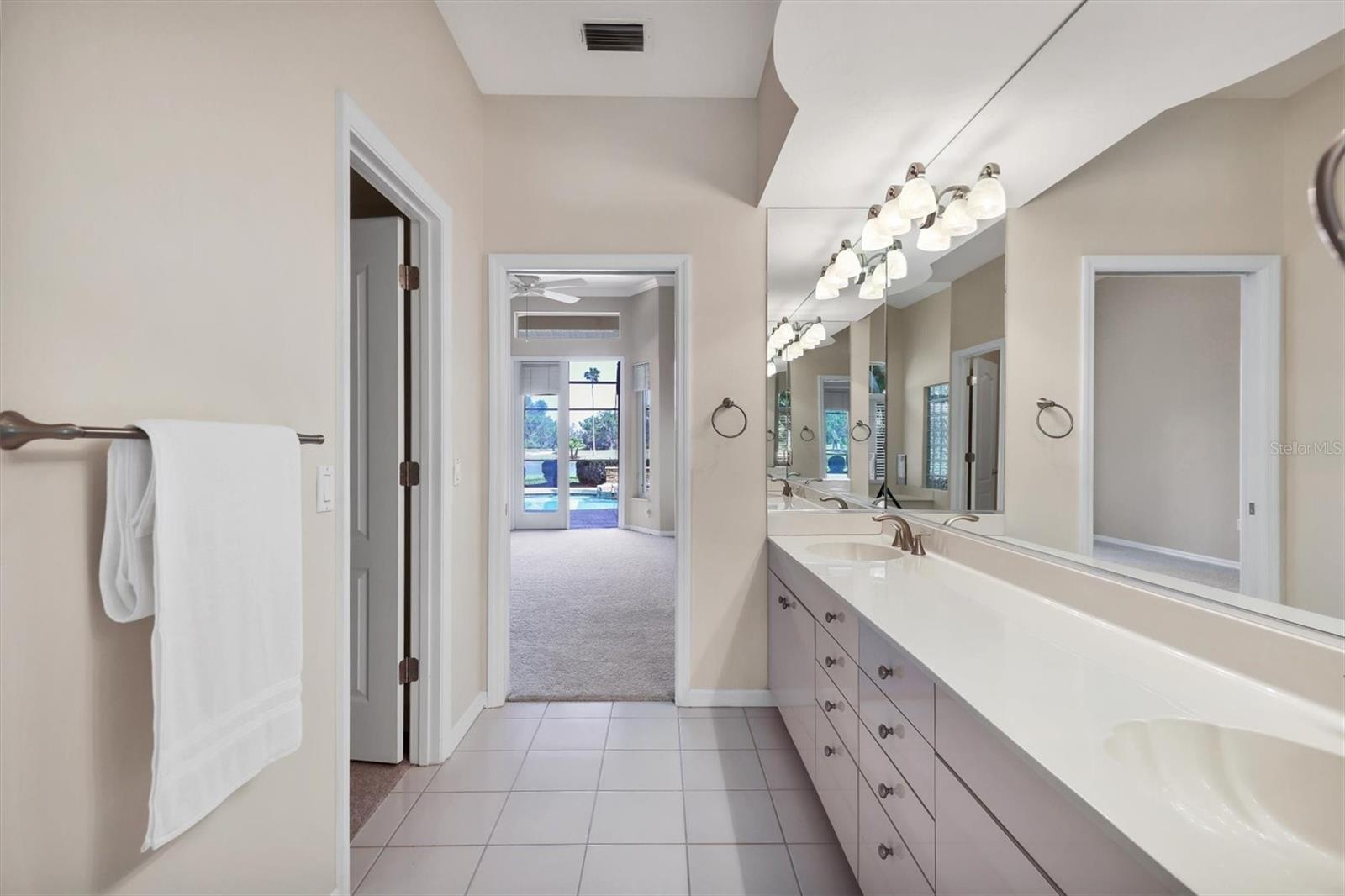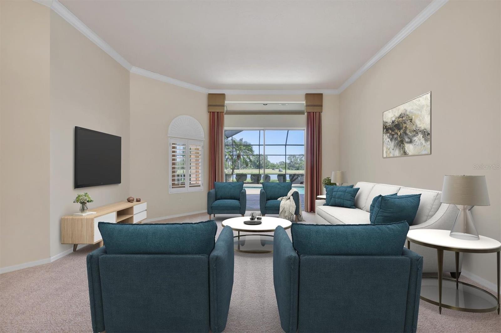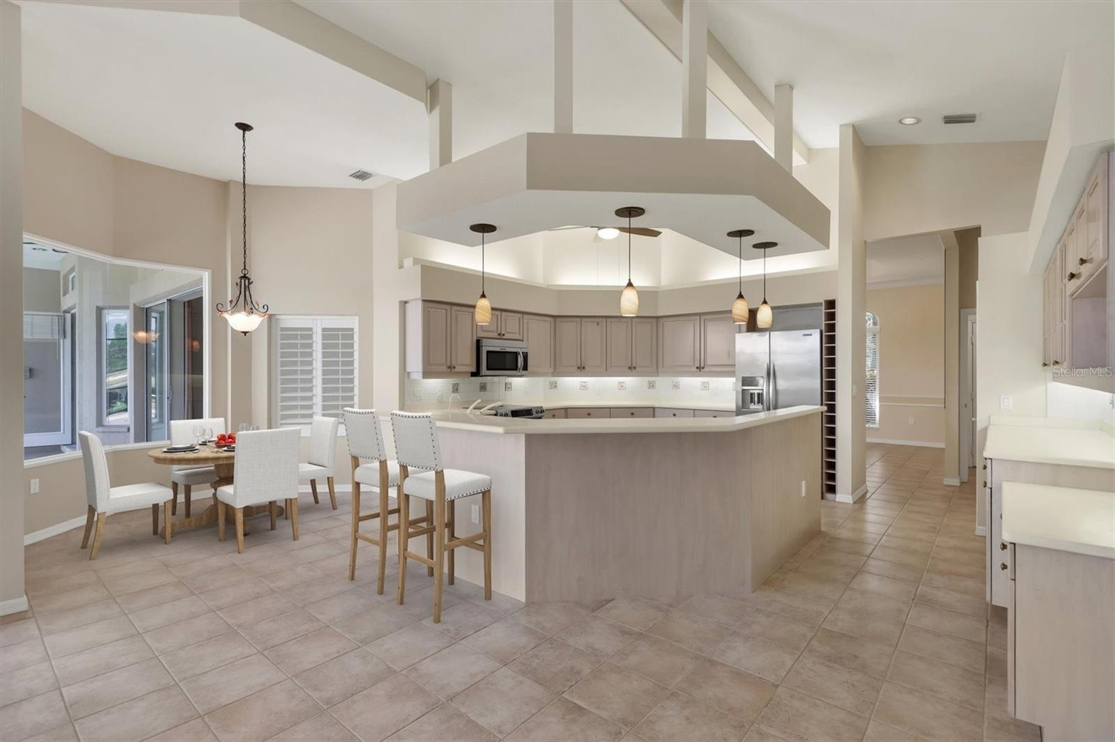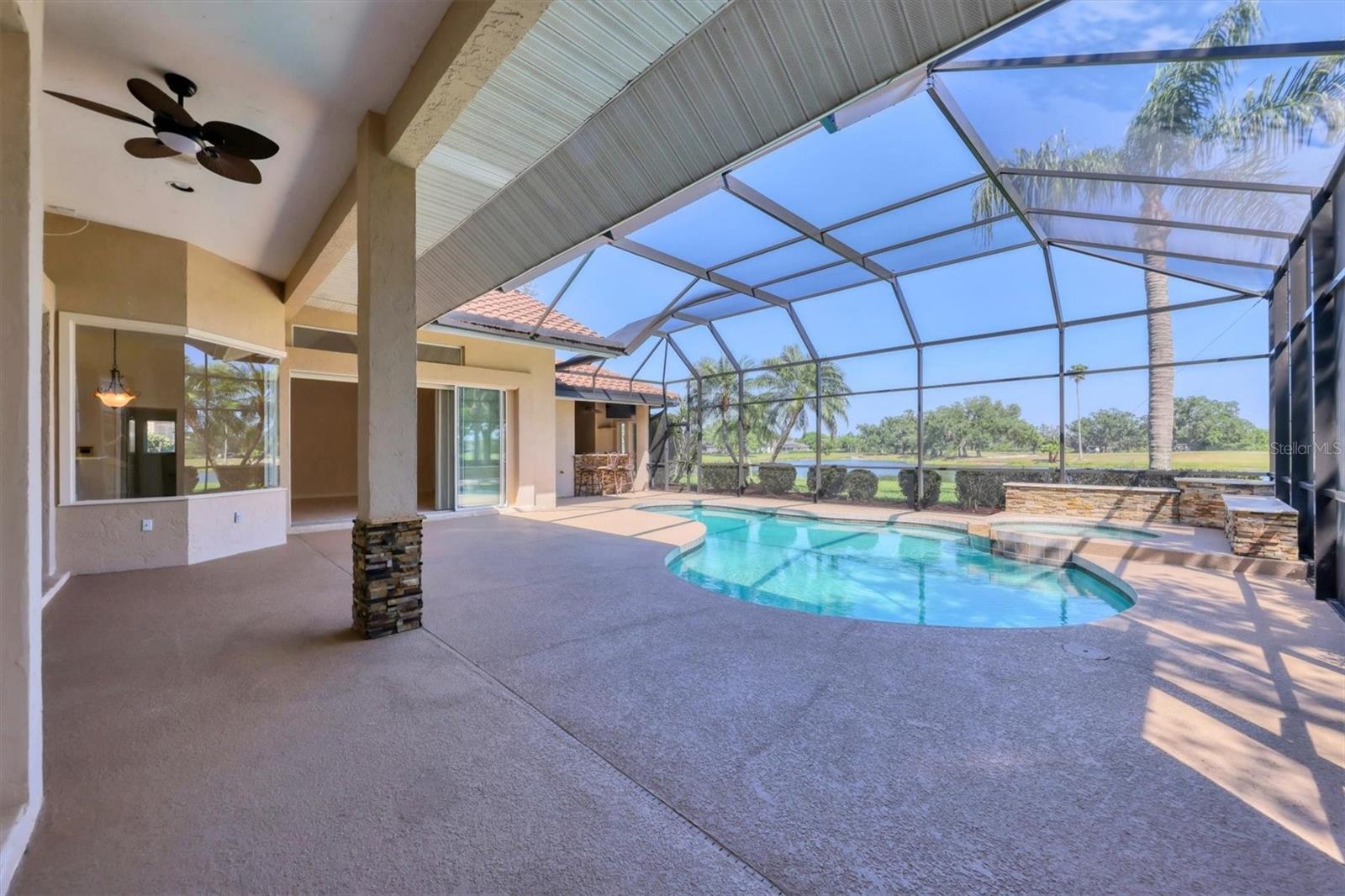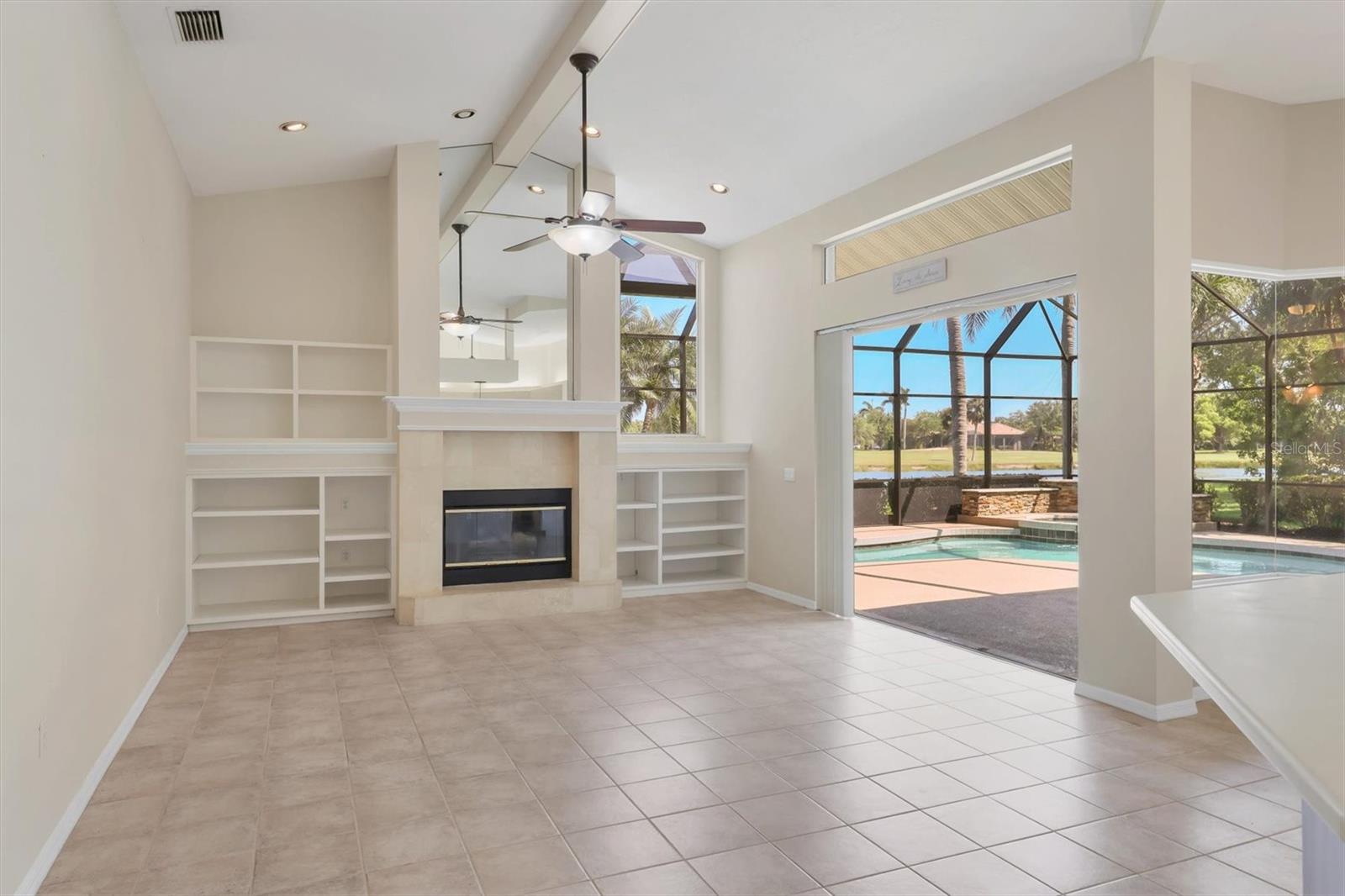 One or more photo(s) has been virtually staged. Nestled on slightly over 1/2 an acre in a picturesque setting of majestic oak canopies, and lush tropical foliage a custom-built home awaits. This property combines comfort, privacy, and breathtaking views offering a true Florida lifestyle in one of Sarasota's most desired gated golf communities, Serenoa. This beautifully designed residence features a spacious 2,848sq split floor plan offering, three bedrooms, three full bathrooms a formal living room, a family room, and a private office. The property has sliders throughout providing expansive views of the lake & 5th fairway filling each room with natural light. The primary suite is a peaceful retreat with french doors that open to the patio, while the en-suit bath provides two generous walk- in closets with a soaking tub and walk in- shower. The open concept living and dining areas provide the perfect setting for entertaining, while the breakfast nook with its large aquarium window offers a tranquil start to your day. A cozy fireplace in the family room adds warmth and charm, creating an inviting space to relax. Step outside to a must-see patio, where the saltwater pool and spa provide year-round enjoyment under the Florida sun. The outdoor kitchen is fully equipped with built-in grill, mini fridge, bar seating, and a true pool bath with shower-perfect for entertaining guest in style. The garage provides ample space to park two vehicles, along with built-in cabinets for additional storage. The property is also equipped with a well for the irrigation system, helping to ensure the landscape remains lush and beautiful. Serenoa is truly a one-of-a-kind community, each property situated on at least a half acre surrounding a beautifully maintained golf course nestled among mature oak trees, lush foliage, wildlife and multiple lakes, creating a picturesque and serene environment. Tennis and pickleball courts are available to all residents. ** Golf course membership is optional * Whitetails bar & Grill located at the club house provides on-site casual dining a perfect spot for socializing or grabbing a bite close to home. Conveniently located near, Publix, Twin lakes park, shopping, and just a short drive away from award winning Siesta Key beach, and UTC town center. *** EXTREMELY LOW HOA Fees** Improvements include**2015 Tile Roof **2018 NEW AC **2021 WATER HEATER ***2022 PROPERTY RE-PIPED***2025 NEW POOL CAGE***2025 New carpet***