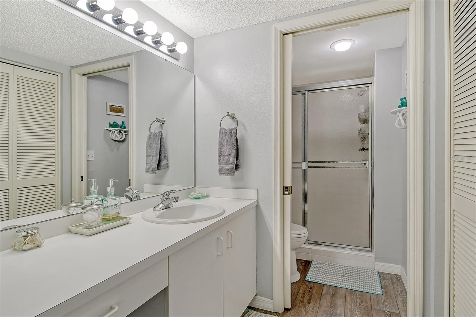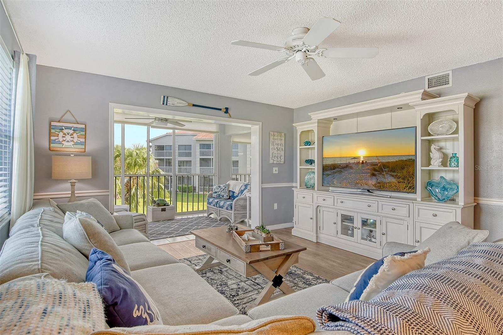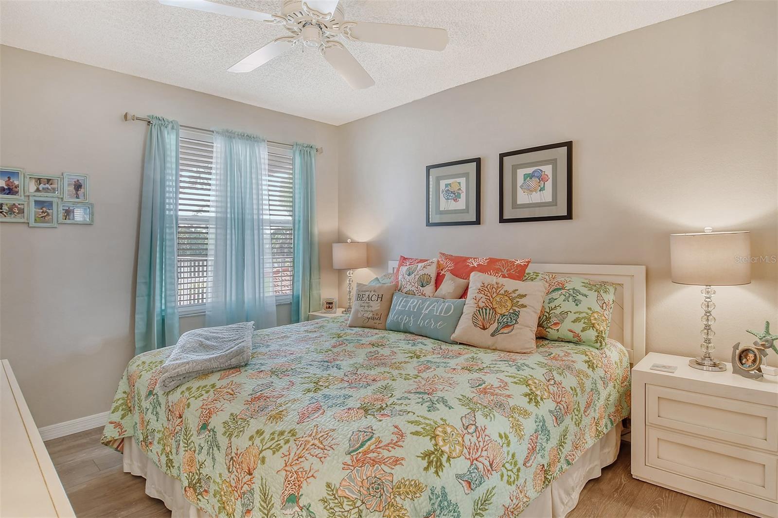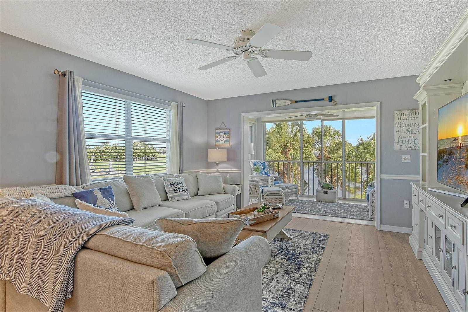 Corner Unit with Glassed-in Lanai overlooking the big lake and new First Hole Green complex with views of the clubhouse in the distance! The Well-appointed Turnkey Furnished Condo has Luxury Vinyl Flooring throughout the living room and bedrooms. Primary bedroom with slider out to the lanai, walk-in closet. Guest Quarters down from a private hallway in the unit with guest bath and laundry closet. Community pool, tennis/pickle ball court and community grills nearby plus one car carport. A premier member-owned country club, Stoneybrook of Sarasota, is only a short distance from Siesta Key and offers easy access to shopping and borders the Legacy Trail. Ownership in Stoneybrook Golf and Country Club includes an updated clubhouse and restaurant, Har-Tru tennis facility, well-equipped fitness center and additional club pool and spa. Nestled between Downtown Sarasota and Downtown Venice. In 2024, the Golf Course went through a complete redesign, new greens, sand traps, fairways and rough and tee boxes.