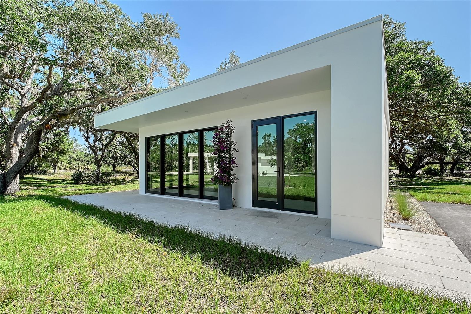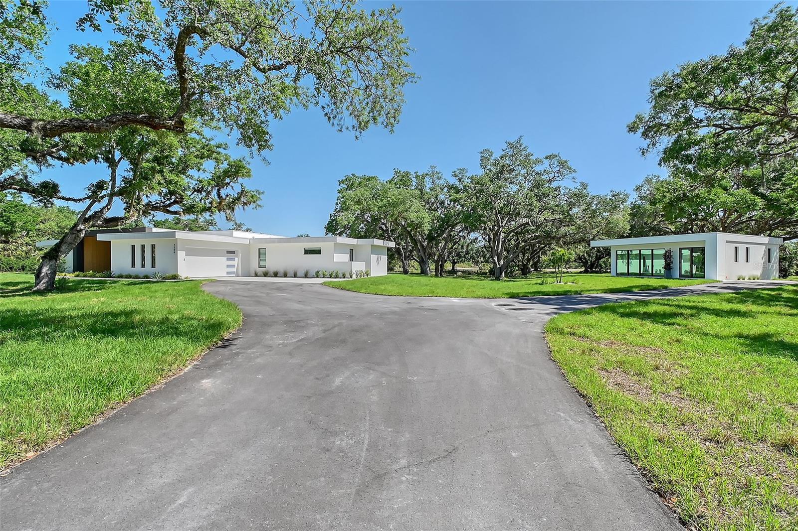 One or more photo(s) has been virtually staged. Experience unparalleled luxury and privacy with this brand new modern masterpiece custom-built by Jonas Yoder Homes. Nestled on 6.7 lush acres with mature trees, this exclusive estate features a stunning 4-bedroom, 4-bath main residence plus a fully equipped 1-bedroom guest house with living room, kitchen, and full bath--ideal for extended family or guests.Crafted with meticulous attention to detail, the home boasts sleek Thermador appliances, induction cooking, a spacious butler's pantry, and Lutron smart shades throughout. The expansive master suite offers a serene retreat with spa-like finishes, while each additional bedroom enjoys its own en-suite bath.A rare find, the property also includes a private airplane hangar, a cooled garage, brand new septic system, and a new well--delivering both modern convenience and future-ready infrastructure. Uniquely, this property is the only one in the community confirmed by the HOA to have the potential for a private runway for small aircraft, offering a truly unmatched aviation lifestyle opportunity.Designed for those who value privacy, luxury, and exceptional quality--all in a prime location.