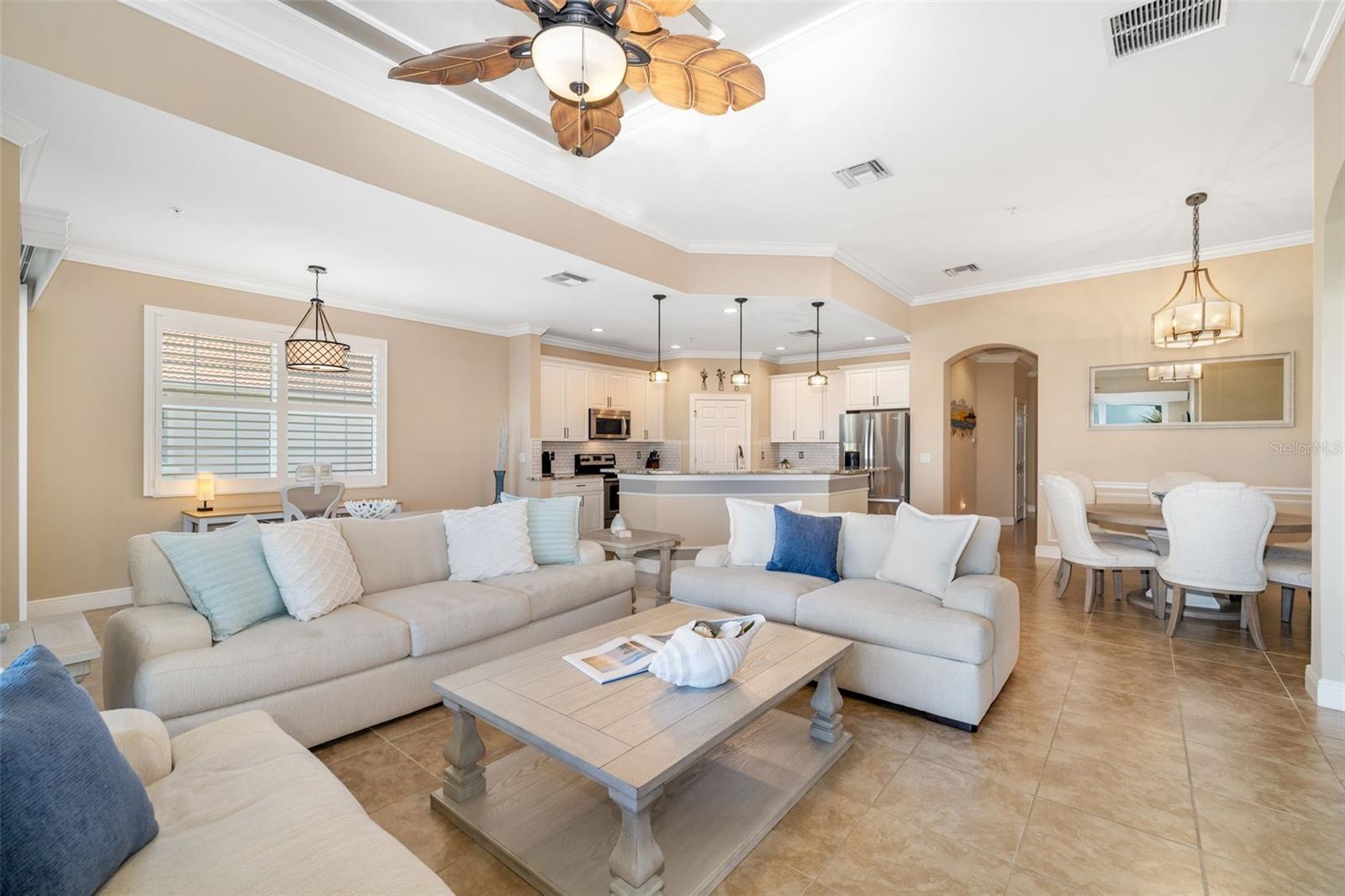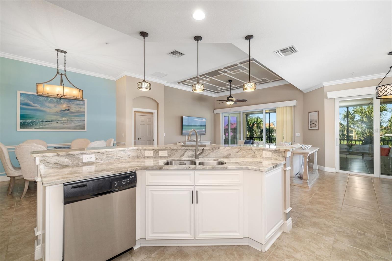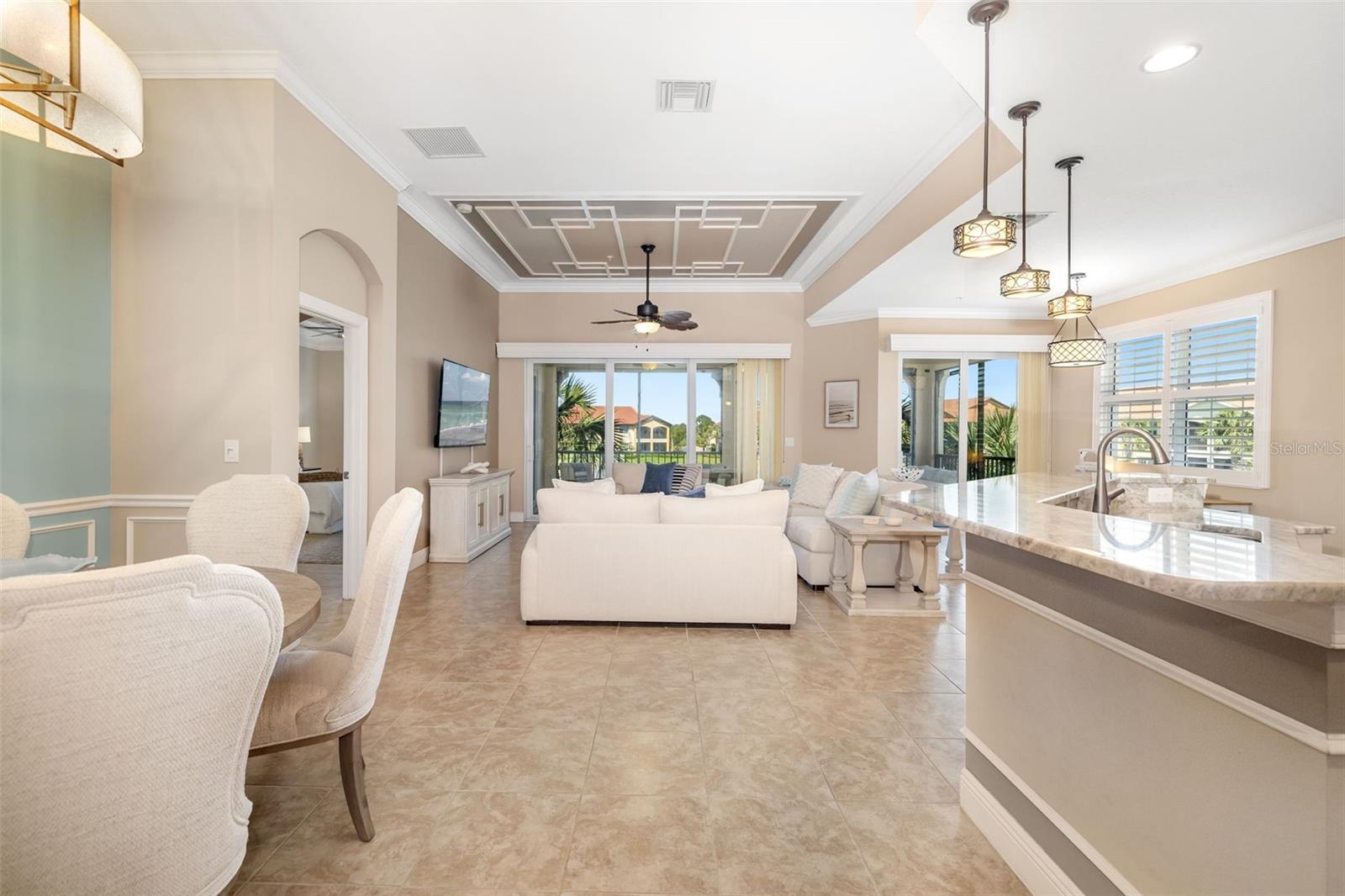 NEW PRICE! Sellers want to negotiate, BRING BEST OFFER AND TERMS! This outstanding carriage condo has over 2,400 square feet of living space and is a true lock-and-go. Access your lovely second-floor unit using your private elevator or beautiful wooden staircase. This property is equipped with natural gas and offers 3 spacious bedrooms, two full baths, a flex space that can be an office or den, laundry room with cabinets and an open floor plan connecting the beautifully updated kitchen, dining, and living room allowing optimum flow and comfort. There is also an option to buy turnkey furnished, making this transition smoother and instant! The expansive west-facing screened balcony/lanai will allow you to enjoy magnificent sunsets and peaceful mornings overlooking your pond and water fountain. Located in the coveted Venetian Golf & River Club, this home is nestled within a community renowned for its outstanding amenities: 70-acre nature preserve that backs to the Myakka River, two inviting pools - a lap pool and resort style pool - on-site dining for lunches and dinners and poolside service that makes every day feel like a resort vacation. For those who love social activities, the club hosts a never-ending calendar of events, ensuring there's always something exciting to do. Sports enthusiasts will delight in the eight Tru-Har tennis courts with both competitive leagues and beginner classes, as well as pickleball courts for every skill level. There is also optional golf membership for the prestigious 18-hole championship Chip Powell course owned by Heritage Golf. This gated community, which is golf-cart friendly, is a fit for every lifestyle from working families, retirees, and second home lovers. It also features comprehensive safety and security measures, including 24-hour security at the gate and 24-hour patrol. Additionally, this property is in the preferred FEMA X zone and Evacuation D area. You'll have access to the best healthcare anywhere in the world with state-of-the-art facilities. And you will be conveniently located near shopping, dining, historic downtown Venice, and pristine beaches - Nokomis Beach is just 6.5 miles away. This property and community offer it all so act now to make this remarkable residence yours today!