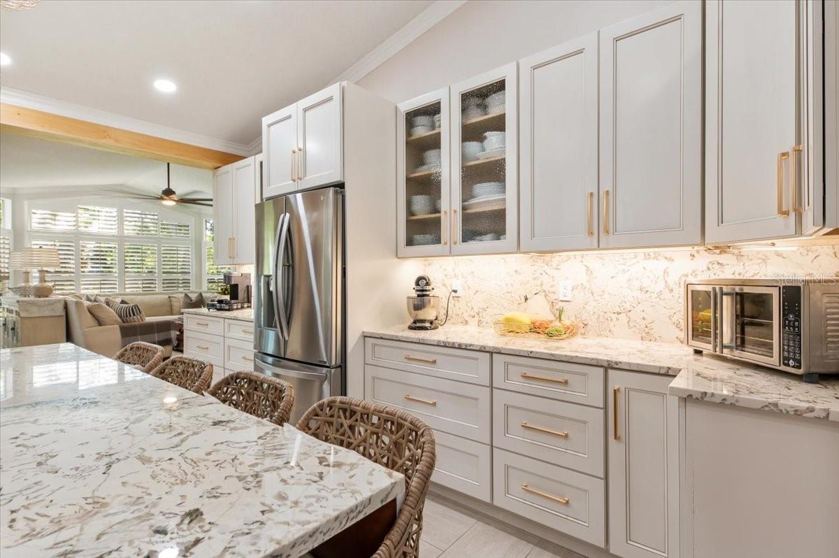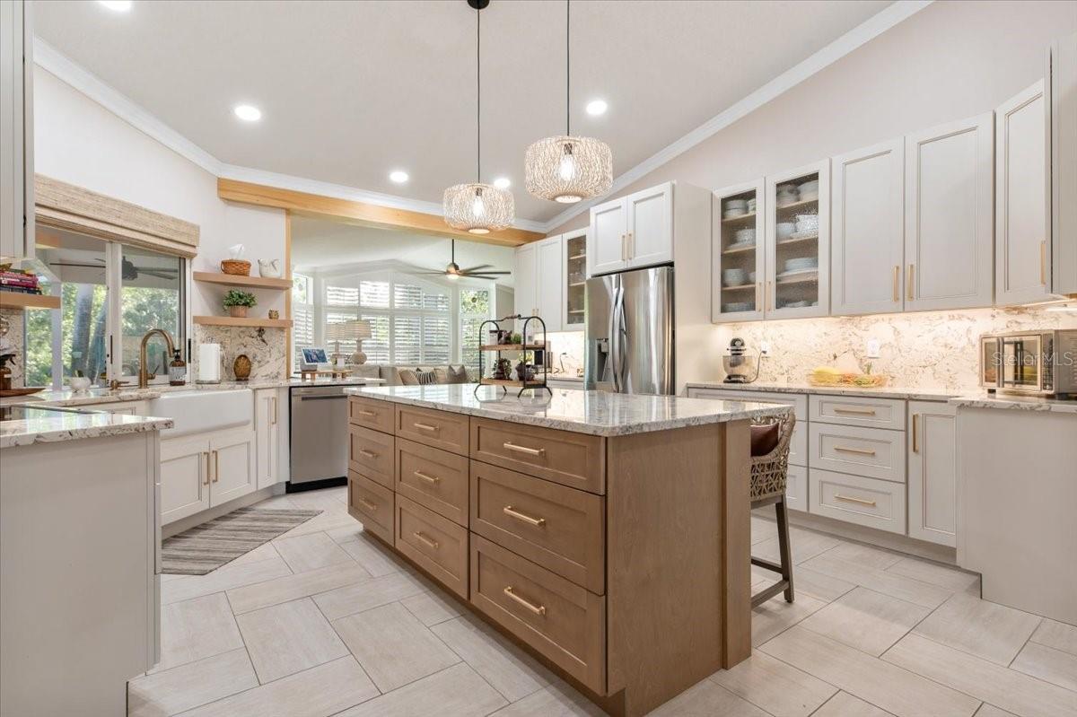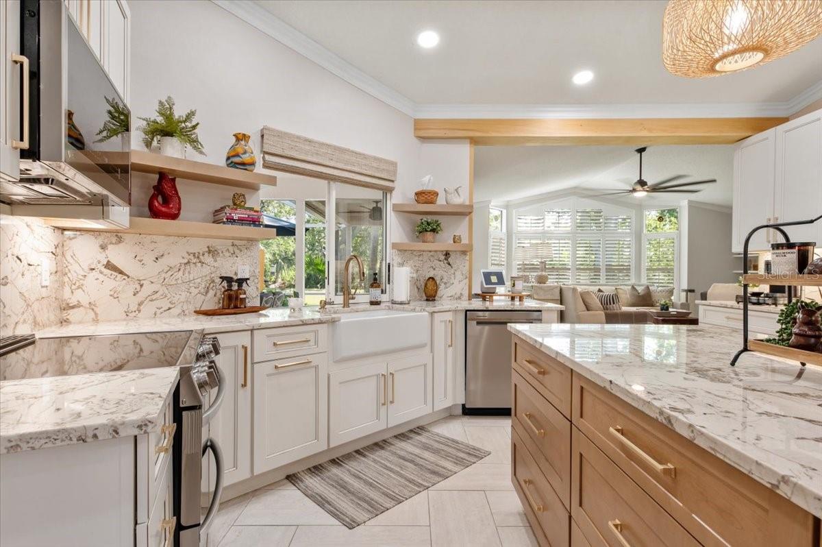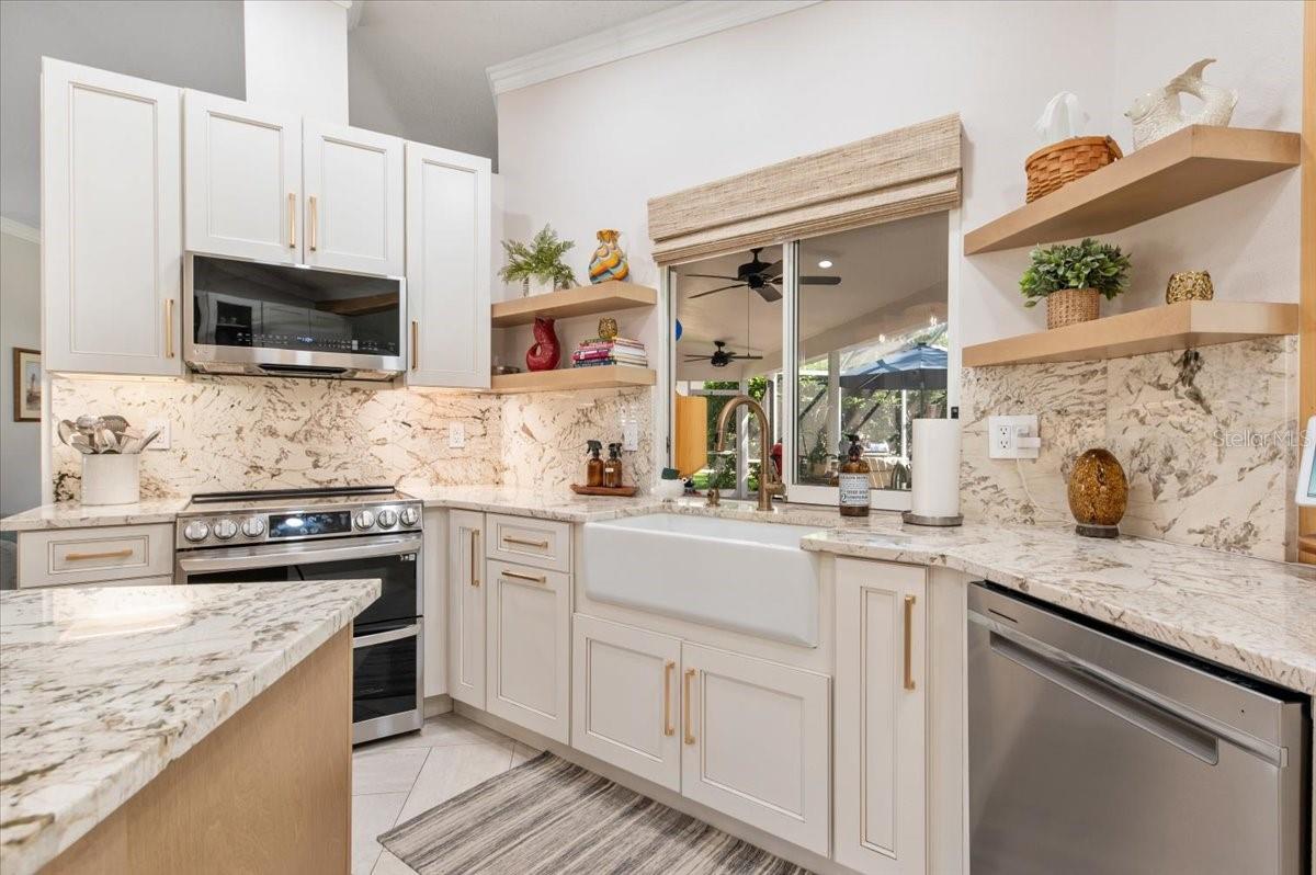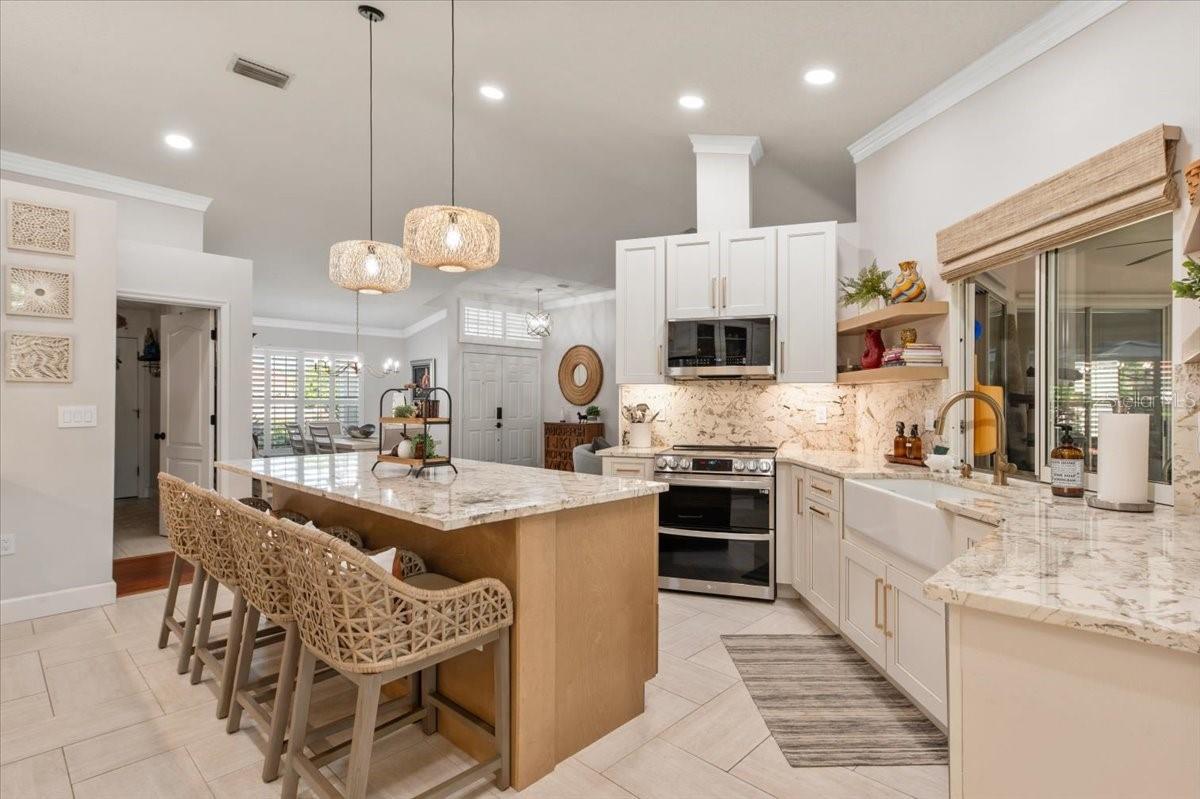 9422 Hawksmoor Lane is nestled in the heart of Stoneybrook Estates, this charming and meticulously maintained residence awaits you. The appealing split plan design boasts tasteful updated features including oak flooring, crown molding and plantation shutters throughout. The completely remodeled kitchen features stainless steel appliances, granite counter tops, farmhouse sink, undercabinet lighting, all new recessed lighting & lights. The family room with a cathedral ceiling and plenty of natural light, sets the perfect stage for entertaining, with a pocketing sliding glass door that opens to spacious, oversized lanai with a private greenbelt view to bring the outdoors in--a wonderful space in which to enjoy your morning coffee or evening cocktails. When you feel like going for a swim, the large, heated community pool is just a short walk away. Membership in the semi-private Stoneybrook Golf and Country Club is not required or offered in this section of the community. However, non-members may dine at the clubhouse and have limited golf access. Stoneybrook at Palmer Ranch is a gated community with mature landscaping and well-kept homes, superbly located and proximate to schools, shopping, entertainment, casual and fine dining, medical facilities, the Legacy Trail and the world-renowned Siesta Key Beach.