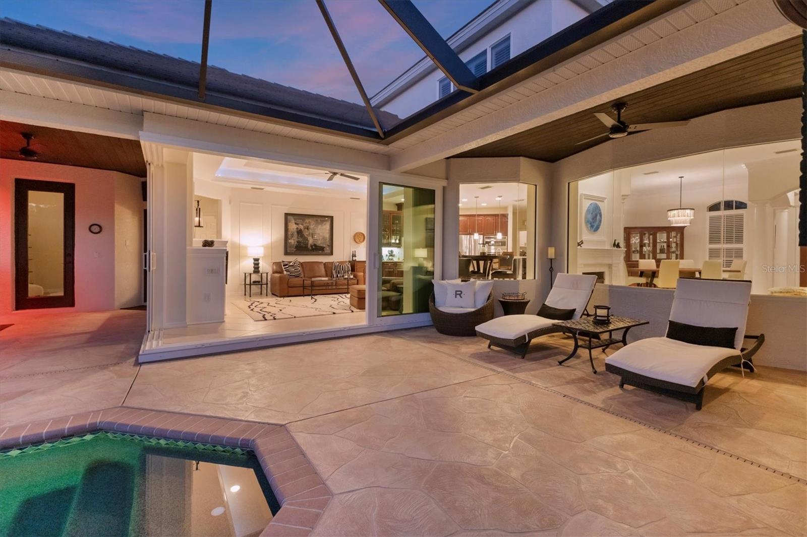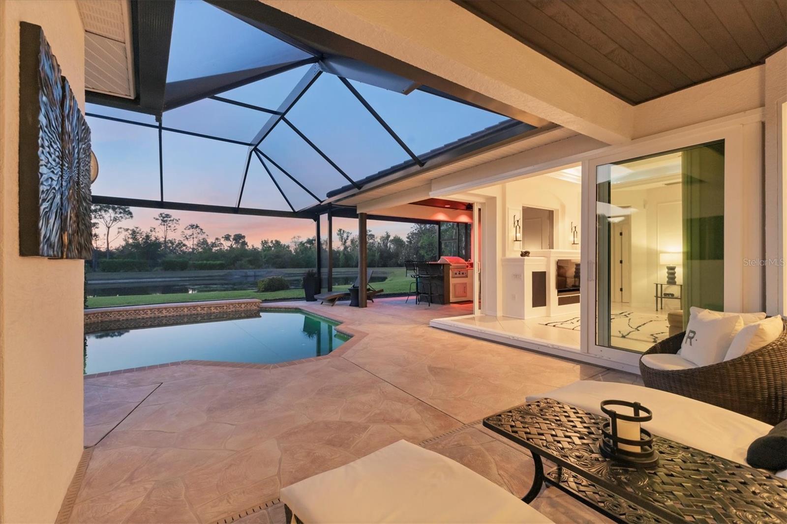 - Exterior: Outdoor Kitchen, Rain Gutters, Sidewalk, Sliding Doors