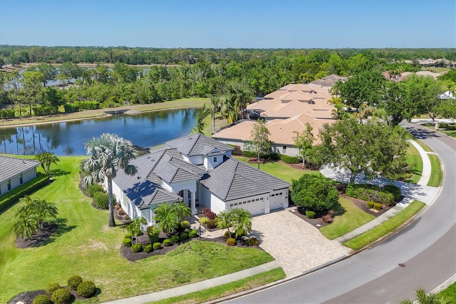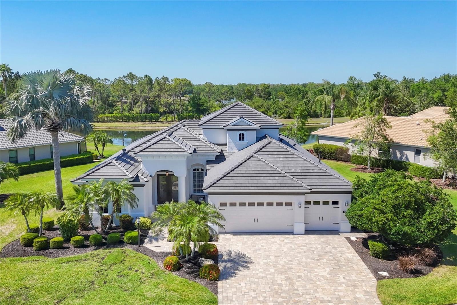 If there was one word to describe this home, it's PRISTINE! Updates and upgrades galore including a BRAND-NEW TILE ROOF in 2025!!! Welcome to this refreshed and remodeled, fabulous home in the heart of Lakewood Ranch. Perfectly situated on a premier homesite offering gorgeous views of the lake and preserve! The Paloma floor plan by custom builder, Lee Wetherington, includes 4 bedrooms, 3 baths, great room with a built-in entertainment center, spacious dining room, living room with aquarium window, and an executive office complete with a custom all wood built in desk, cabinetry and shelving. On the second floor, retire to the spacious bonus room perfect for family movie and game nights equipped with a dry bar with granite countertops, beverage refrigerator and all wood cabinetries. The gourmet kitchen has been updated with new light and bright quartz countertops, stylish subway tile backsplash, stainless steel appliances and includes a large walk-in pantry with a custom glass door and upgraded wood shelving. Unwind and enjoy on the resurfaced, extended lanai with panoramic screening enhancing the gorgeous and expansive views of the lake and preserve offering a very private and serene setting. The custom wood ceiling treatments on the lanai provide the finishing touch and add to the picturesque setting with unspoiled nature preserve views. Relax in the spa-like remodeled master bath with exquisite new granite countertops, custom shower and floor tiling, his and her vanities, and a jetted soaking tub that completes the statement. Other recent upgrades include remodeled secondary baths, a newer and rebuilt 5 Ton AC Unit in 2024, newer classic and timeless interior and exterior paint, central vacuum system, tray ceilings and plantation shutters and tons of storage and a built-in work bench in the 3-car garage. Riverwalk Ridge is known as the "hidden gem" of Lakewood Ranch because it is centrally located close to everything the Nation's Top Master Planned Community offers. Lakewood Ranch Country Club is nearby with amazing amenities and membership is optional. The home's ideal location is in an A-rated school district, just minutes to the Lakewood Ranch Main Street, offering fabulous restaurants, shops and entertainment, Waterside Place, UTC Mall (including Tiger Woods' new Pop Stroke and the new Mote Aquarium!), downtown Sarasota, three airports, and of course the world-renowned beaches of Siesta Key, Lido Key, Longboat Key and Anna Maria Island. Call for your private showing today, this exceptional and unique property will not last long.