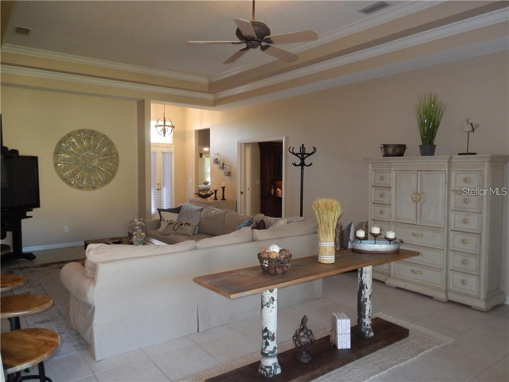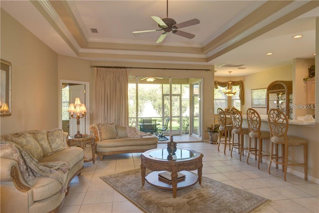Welcome to The Woodlands At Rivendell! This beautiful home is on a large corner lot in the Patio Section of the Woodlands. It has TWO Bedrooms + a DEN, Great Room, double tray ceilings w/ crown molding. The den has double pocket doors! The kitchen is central in the house for entertaining, with plenty of storage, pull-out shelves, and 2 pantries! The Lanai has glimmering water views! Some nice features of the home: New Interior Paint! New Carpet! New Microwave! Irrigation System! Don't worry about maintaining the lawn/landscaping, that is included! Enjoy everything that surrounds you outside as well, such as the Legacy Trail just east of this home for walking, jogging, biking, rollerblading, strolling with your pets or whatever your outdoor activity of choice is. Just south of you is Oscar Scherer State Park for even more outdoor adventures. Just west of you is the beautiful Intracoastal Waterway & Gulf of Mexico with super soft white sandy beaches! You're also in the company of the best schools around such as Pineview, next door to this neighborhood. Rivendell, a picturesque community known for its extensive green spaces, parks and 24 serene lakes!