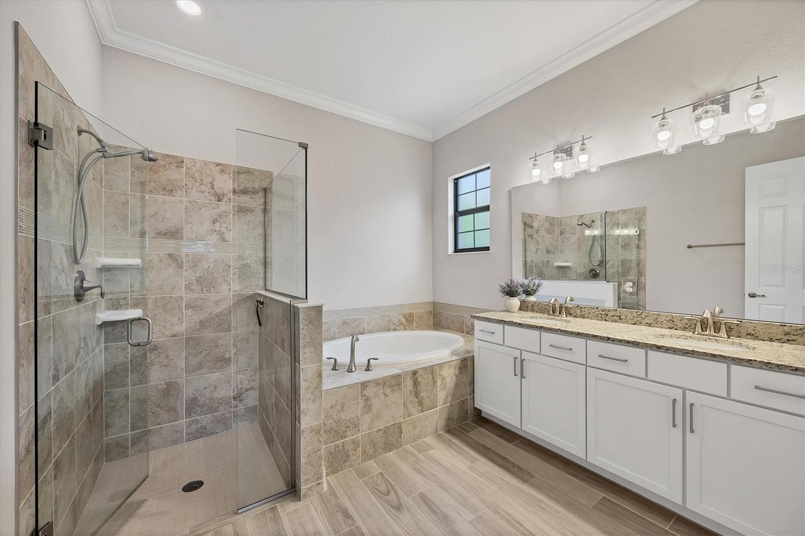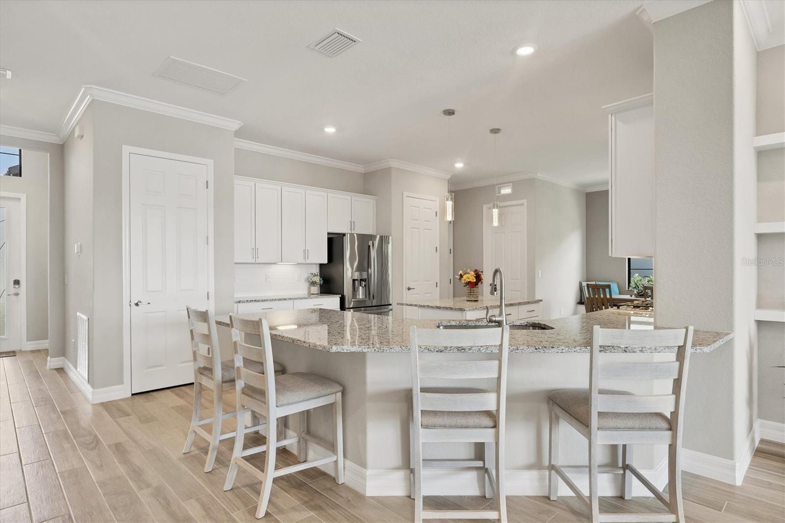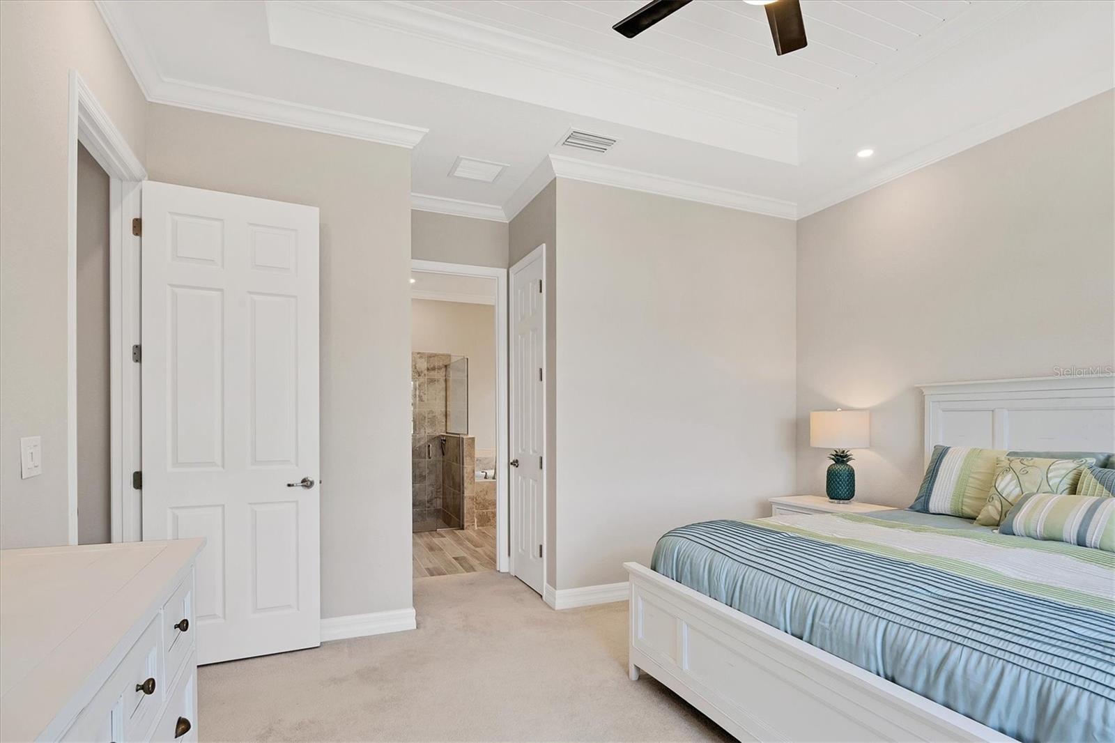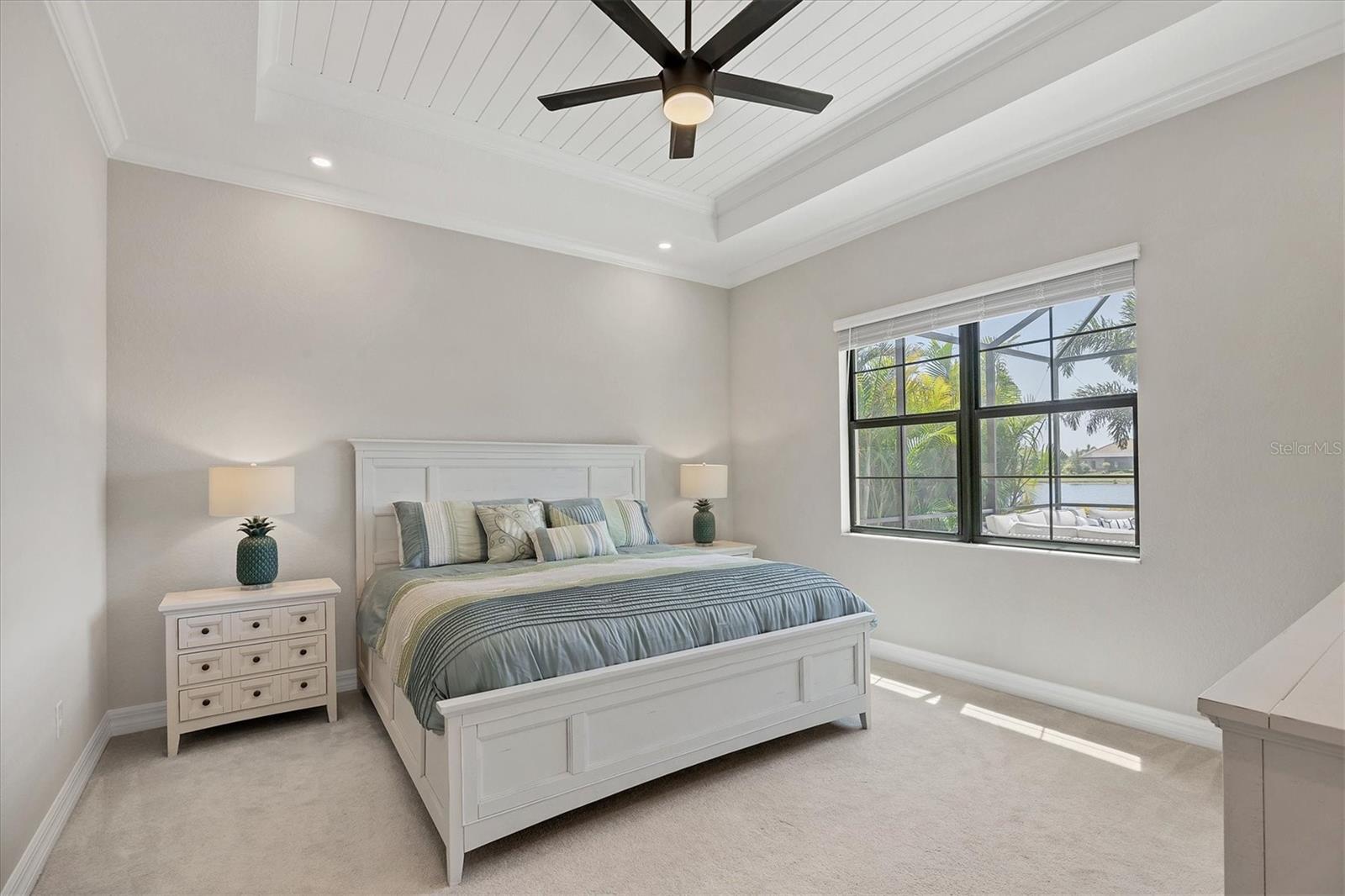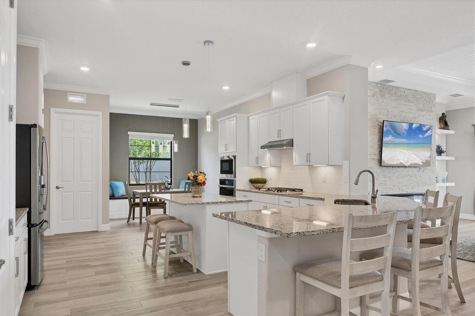 Nestled in the prestigious Country Club East of Lakewood Ranch, this stunning home, crafted by WCI in 2020, embodies modern elegance and comfort. The Stanford model offers four spacious bedrooms and three beautifully appointed bathrooms, perfect for both relaxation and entertaining.As you approach, a new glass front door invites you into a sunlit foyer, setting a welcoming tone. Inside, the living area is enhanced with an updated stacked stone wall, featuring an integrated fireplace and sleek shelving, creating a cozy yet sophisticated ambiance.Five rooms have been updated with recessed LED lighting, brightening the interior and enhancing the home's contemporary charm. The master suite serves as a tranquil retreat with its luxurious tub, while the secondary bathrooms boast chic shower doors.Step outside to the heart of this property--an entertainer's paradise. The outdoor kitchen, heated pool, and spa are set against the backdrop of a breathtaking lake view, offering stunning sunsets that paint the sky with vibrant hues.With a three-car garage providing ample storage, this home is as practical as it is beautiful. Discover the perfect blend of luxury and lifestyle in this Lakewood Ranch masterpiece. Your dream home awaits!