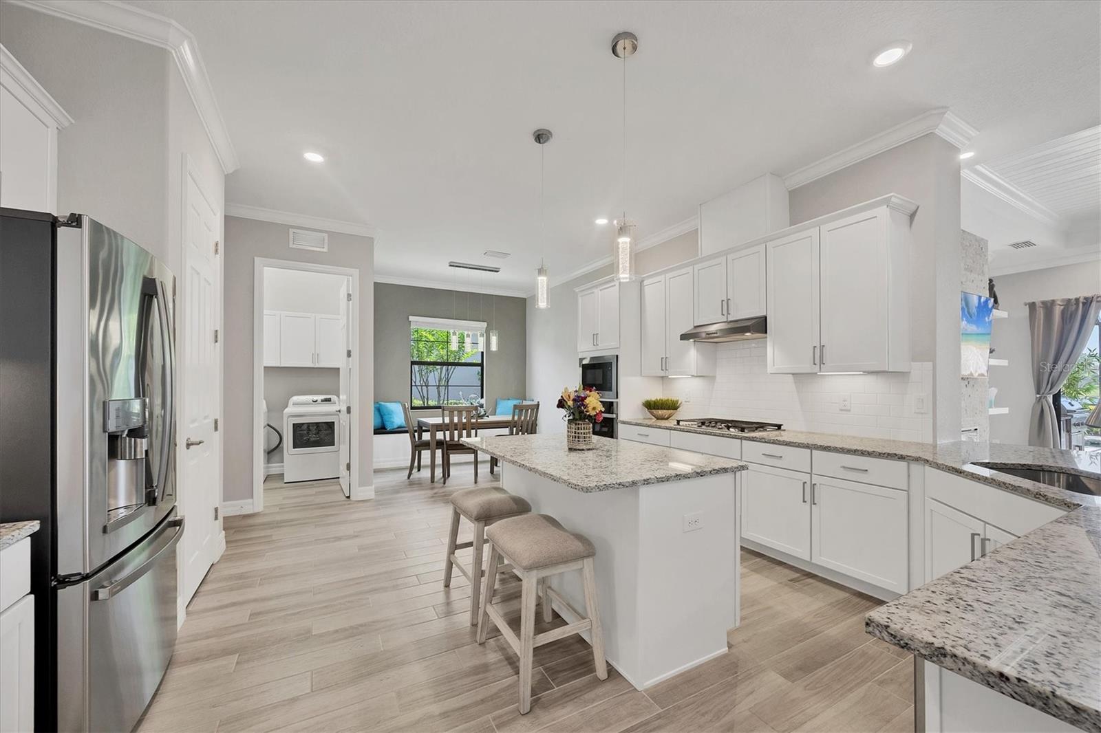 - Appliances: Built-In Oven, Cooktop, Dishwasher, Disposal, Dryer, Gas Water Heater, Microwave, Range Hood, Refrigerator, Washer