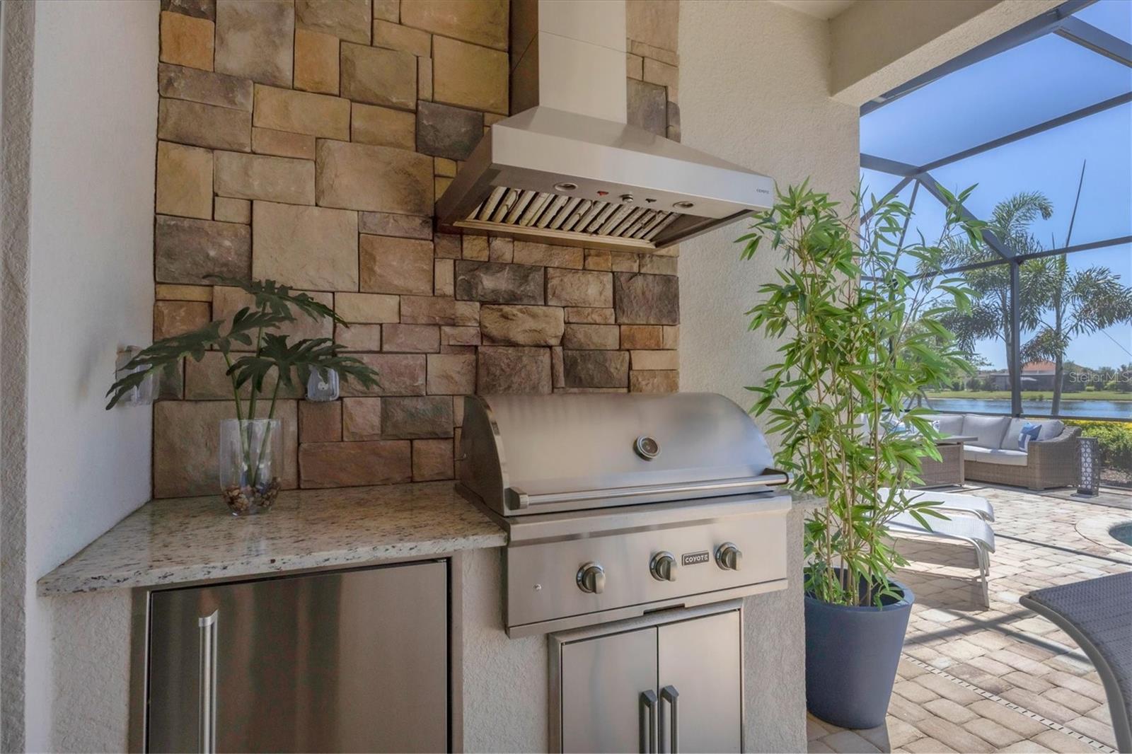 - Exterior: Hurricane Shutters, Outdoor Kitchen, Rain Gutters, Sprinkler Metered