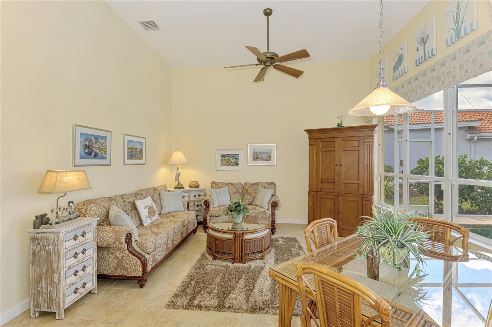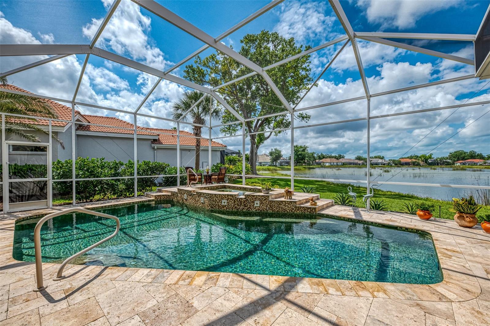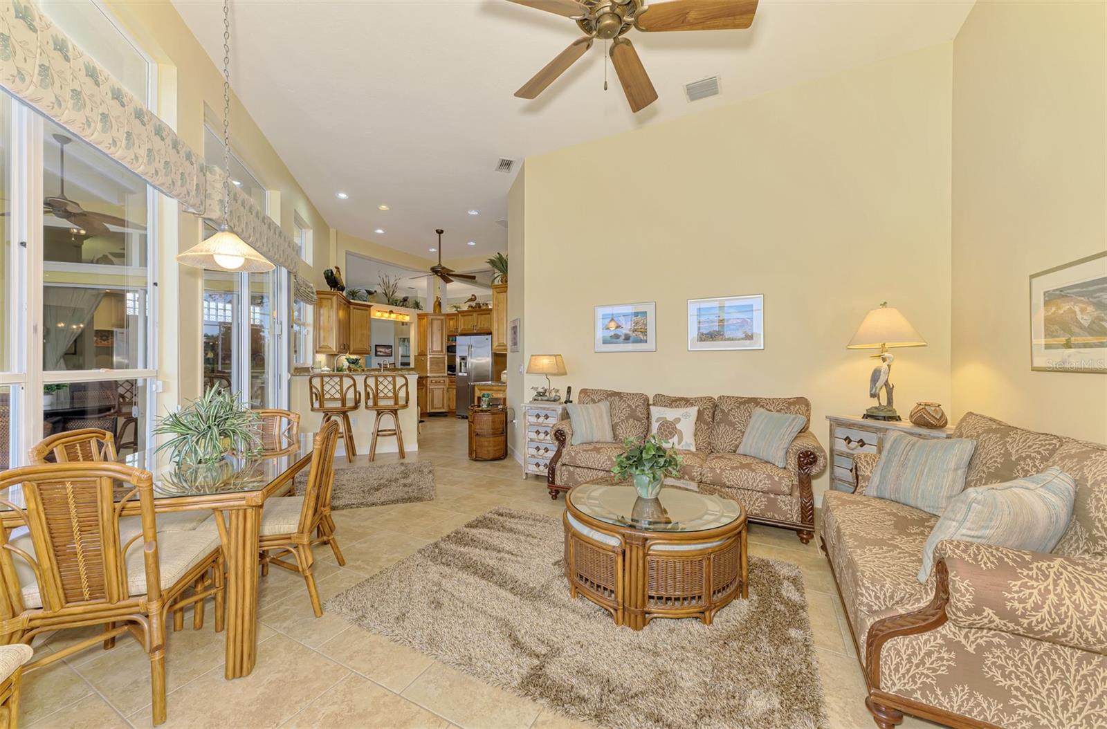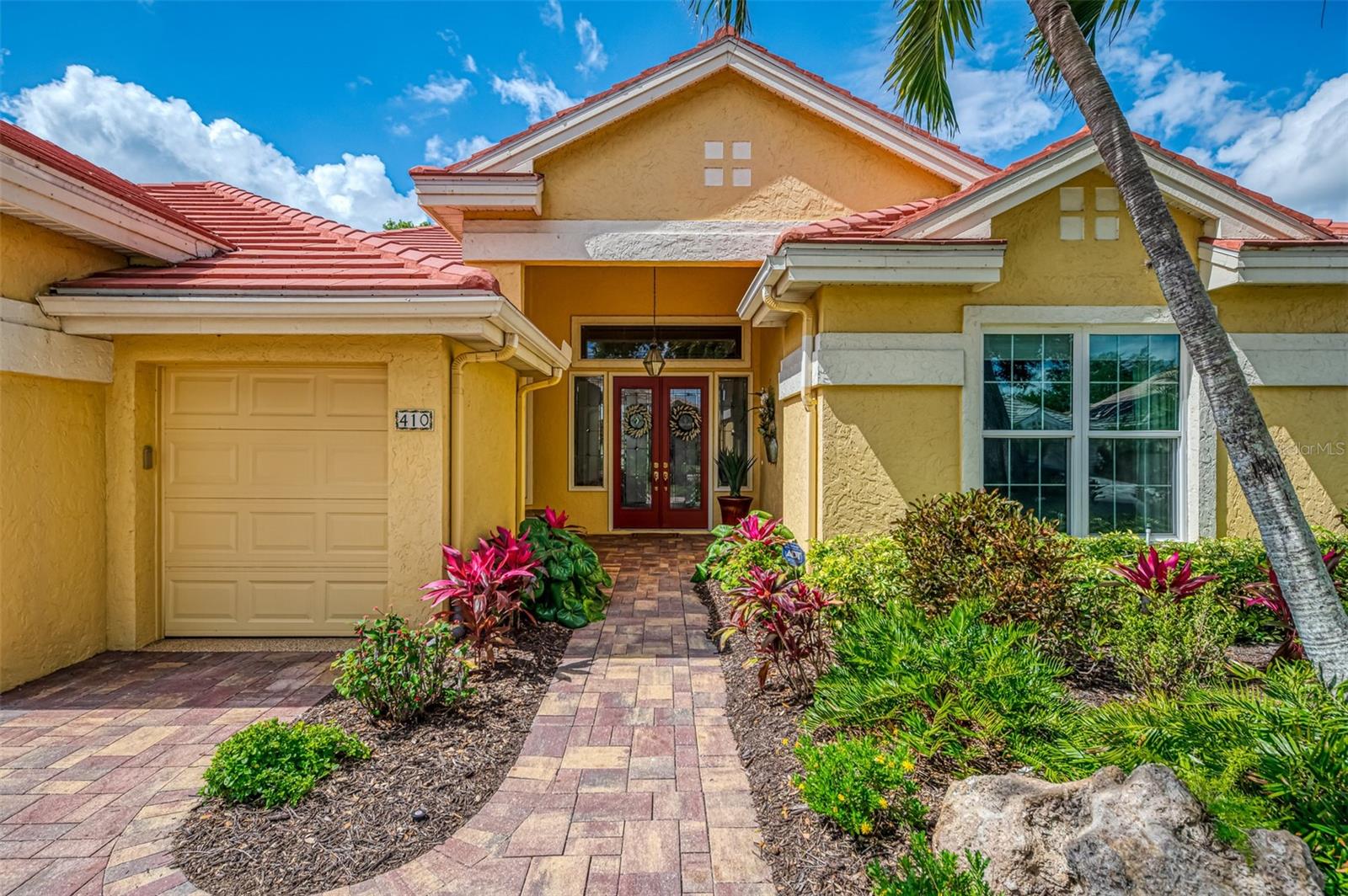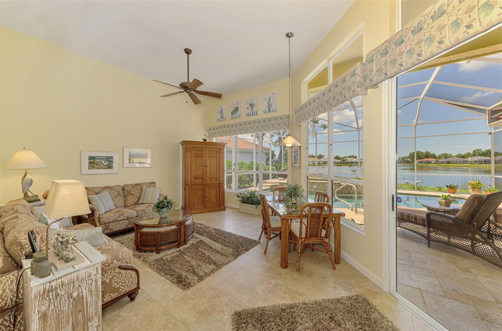 Rarely available, this updated home in a maintained neighborhood has 3 bedrooms, 3 baths,pool, spa, and PHENOMENAL south-facing water view. The floor plan is perfect for entertainingfamily and friends with its centrally located kitchen or if you choose a quiet evening viewing thewildlife at VGCC and soak in the uninterrupted water view on the raised platform of the spa. Theentire home is bathed in natural light throughout the day accentuating the beautiful architectureand crown molding shows off the phenomenal 12 FOOT CEILINGS making this home feel spacious and luxurious. THIS HOME OFFERS AN IMMEDIATE OPPORTUNITY FOR A GOLFMEMBERSHIP. The Primary bedroom and bath will spoil the homeowner w/blackout shades,privacy sheers, built-in cherry bookshelves and cabinets with a desk area and marble countertop.The primary bathroom includes matching cherry cabinets, a newly tiled walk-in shower with a bench,overhead and handheld shower, dressing table and double sinks. CUSTOM WALK-IN CLOSETWILL WOW EVEN THE PICKIEST! The centrally located kitchen was redesigned with a view ofthe living room, has stainless steel appliances, a breakfast bar, hardwood cabinets with pantry,spice drawer, fan/light over stove, roll down corner cupboard, soft close drawers and doors, twosinks, under-counter lights (3-25), granite countertops and push button garbage disposal. A cooksdelight! Both guest bedrooms have their own UPDATED guest baths for privacy. One guestbath could be used as a pool bath and is accessible from the same side of home as the lanai.Many windows have been replaced to code. The roof was replaced in 2013 and has beeninspected every year.. The pool cage was replaced w/spa addition in 2011. HVAC wasreplaced in 2019 (is under a 2 visits/year service contract) and garage door in 2021, pool pumpin 4/2025 and electric panel in 4/2025. VGCC is a member-owned PRIVATE COUNTRY CLUBWITH 589 homes. Membership IS MANDATORY. Meet and make new friends for dining orafter golf in the renovated clubhouse that offers both casual and formal dining. There is acasual bar for meeting with friends or an exclusive bar for higher-end wines and bourbon. Oncooler evenings, gather around the fire pit with friends, enjoying the views across water to the18th green. Work out in the newly enlarged Wellness Center with state-of-the-art equipmentand on-site physical therapist, massage therapist, personal trainers and a wide variety of fitnessclasses. The club has a unique "U" program that offers cultural and learning events and there ismahjong, bridge, bocce, book club, wine club, in addition to golf, tennis and pickleball leagues..With easy access from I-75, and centrally located between Tampa/Sarasota and Punta Gorda/Ft. Myers airports, this mature community is only 5 miles from charming downtown Venice and20 miles from culturally-rich Sarasota. Venice Golf and Country Club is an award-winningCertified Audubon Geo Cooperative Sanctuary with 26 lakes/ponds and 13 natural preserves.VGCC is truly a unique community in Southwest Florida, as illustrated by the number ofmembers who have made it their year-round home. This is a must-see property. Click on thelink for more photos and information:https://portfolio.precision360 photography.com/property/410-wellington-ct