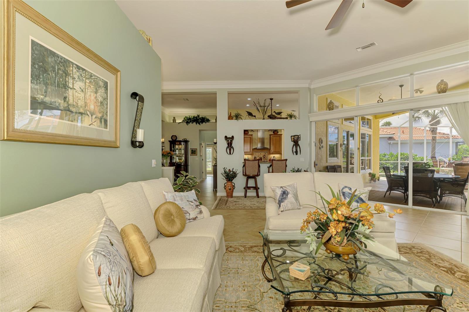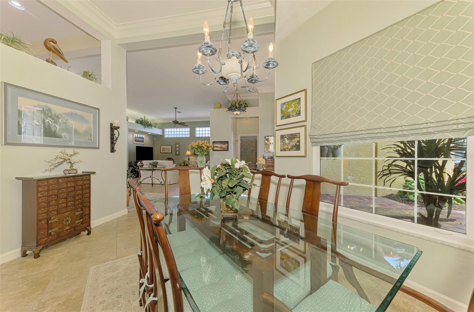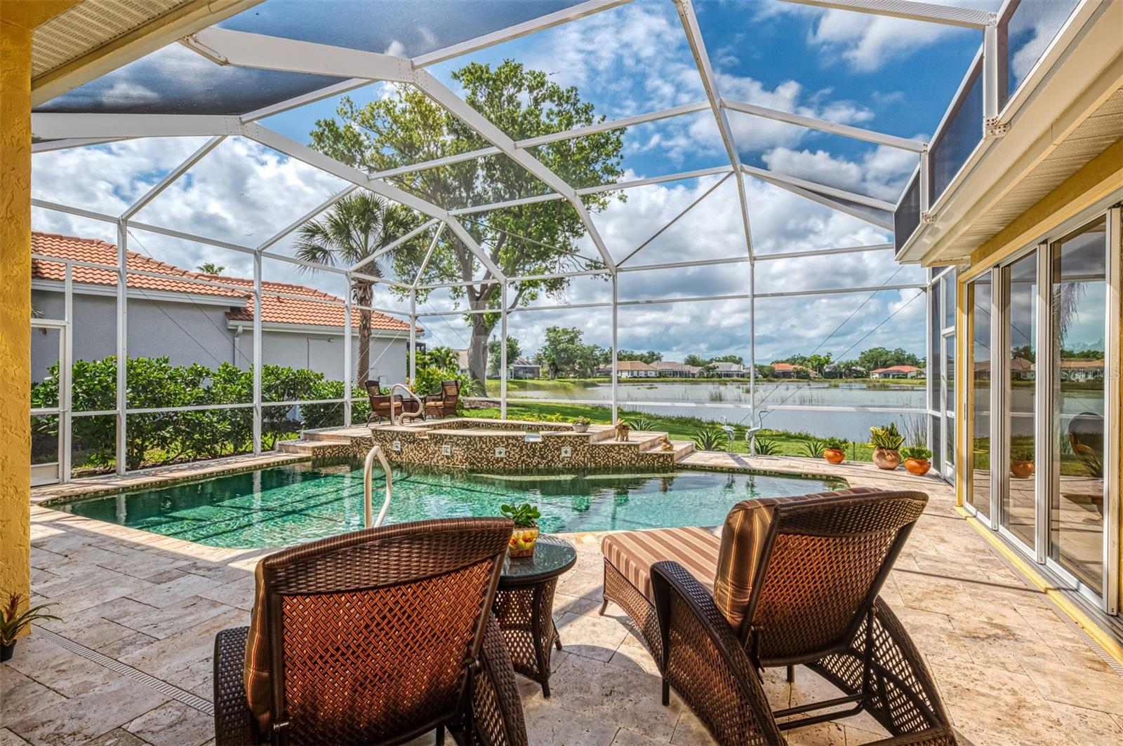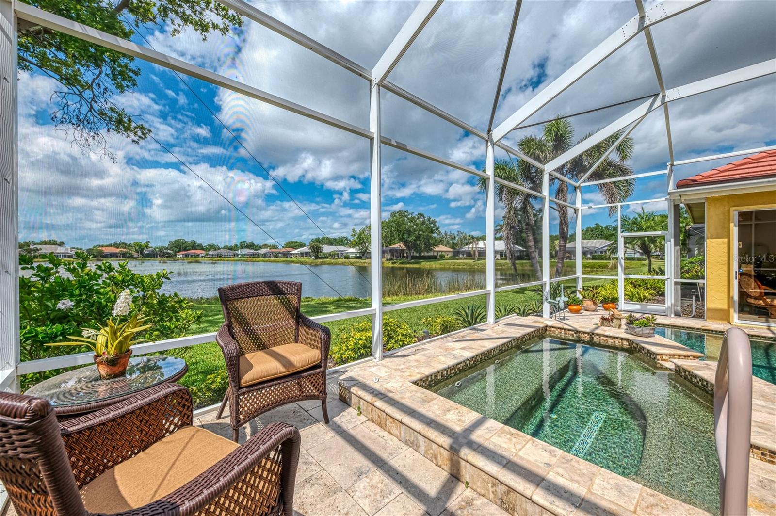 Rarely available, this updated home in a maintained neighborhood has 3 bedrooms, 3 baths,pool, spa, and PHENOMENAL south-facing water view. The floor plan is perfect for entertainingfamily and friends with its centrally located kitchen or if you choose a quiet evening viewing thewildlife at VGCC and soak in the uninterrupted water view on the raised platform of the spa. Theentire home is bathed in natural light throughout the day accentuating the beautiful architectureand crown molding shows off the phenomenal 12 FOOT CEILINGS making this home feel spacious and luxurious. THIS HOME OFFERS AN IMMEDIATE OPPORTUNITY FOR A GOLFMEMBERSHIP. The Primary bedroom and bath will spoil the homeowner w/blackout shades,privacy sheers, built-in cherry bookshelves and cabinets with a desk area and marble countertop.The primary bathroom includes matching cherry cabinets, a newly tiled walk-in shower with a bench,overhead and handheld shower, dressing table and double sinks. CUSTOM WALK-IN CLOSETWILL WOW EVEN THE PICKIEST! The centrally located kitchen was redesigned with a view ofthe living room, has stainless steel appliances, a breakfast bar, hardwood cabinets with pantry,spice drawer, fan/light over stove, roll down corner cupboard, soft close drawers and doors, twosinks, under-counter lights (3-25), granite countertops and push button garbage disposal. A cooksdelight! Both guest bedrooms have their own UPDATED guest baths for privacy. One guestbath could be used as a pool bath and is accessible from the same side of home as the lanai.Many windows have been replaced to code. The roof was replaced in 2013 and has beeninspected every year.. The pool cage was replaced w/spa addition in 2011. HVAC wasreplaced in 2019 (is under a 2 visits/year service contract) and garage door in 2021, pool pumpin 4/2025 and electric panel in 4/2025. VGCC is a member-owned PRIVATE COUNTRY CLUBWITH 589 homes. Membership IS MANDATORY. Meet and make new friends for dining orafter golf in the renovated clubhouse that offers both casual and formal dining. There is acasual bar for meeting with friends or an exclusive bar for higher-end wines and bourbon. Oncooler evenings, gather around the fire pit with friends, enjoying the views across water to the18th green. Work out in the newly enlarged Wellness Center with state-of-the-art equipmentand on-site physical therapist, massage therapist, personal trainers and a wide variety of fitnessclasses. The club has a unique "U" program that offers cultural and learning events and there ismahjong, bridge, bocce, book club, wine club, in addition to golf, tennis and pickleball leagues..With easy access from I-75, and centrally located between Tampa/Sarasota and Punta Gorda/Ft. Myers airports, this mature community is only 5 miles from charming downtown Venice and20 miles from culturally-rich Sarasota. Venice Golf and Country Club is an award-winningCertified Audubon Geo Cooperative Sanctuary with 26 lakes/ponds and 13 natural preserves.VGCC is truly a unique community in Southwest Florida, as illustrated by the number ofmembers who have made it their year-round home. This is a must-see property. Click on thelink for more photos and information:https://portfolio.precision360 photography.com/property/410-wellington-ct