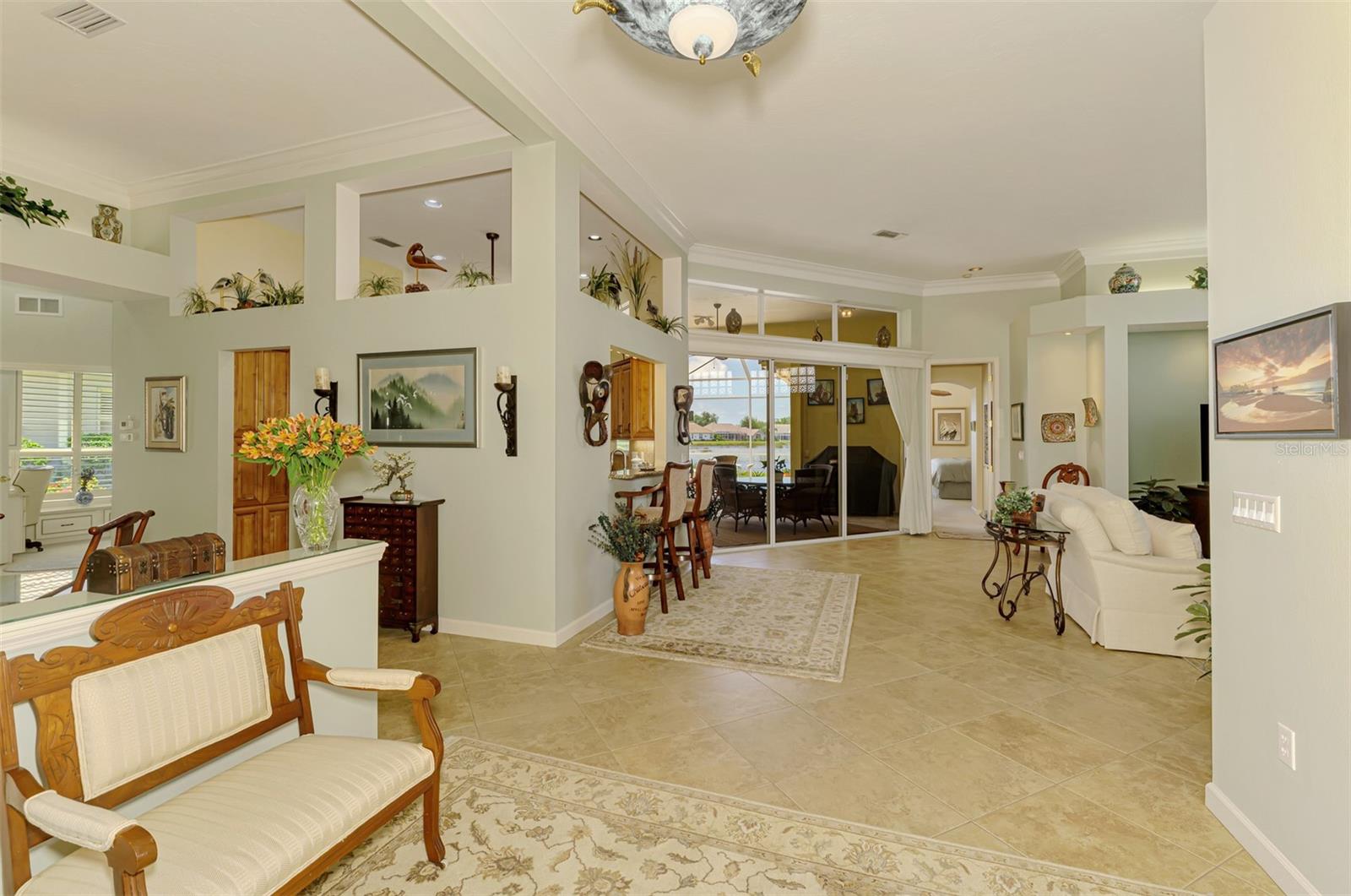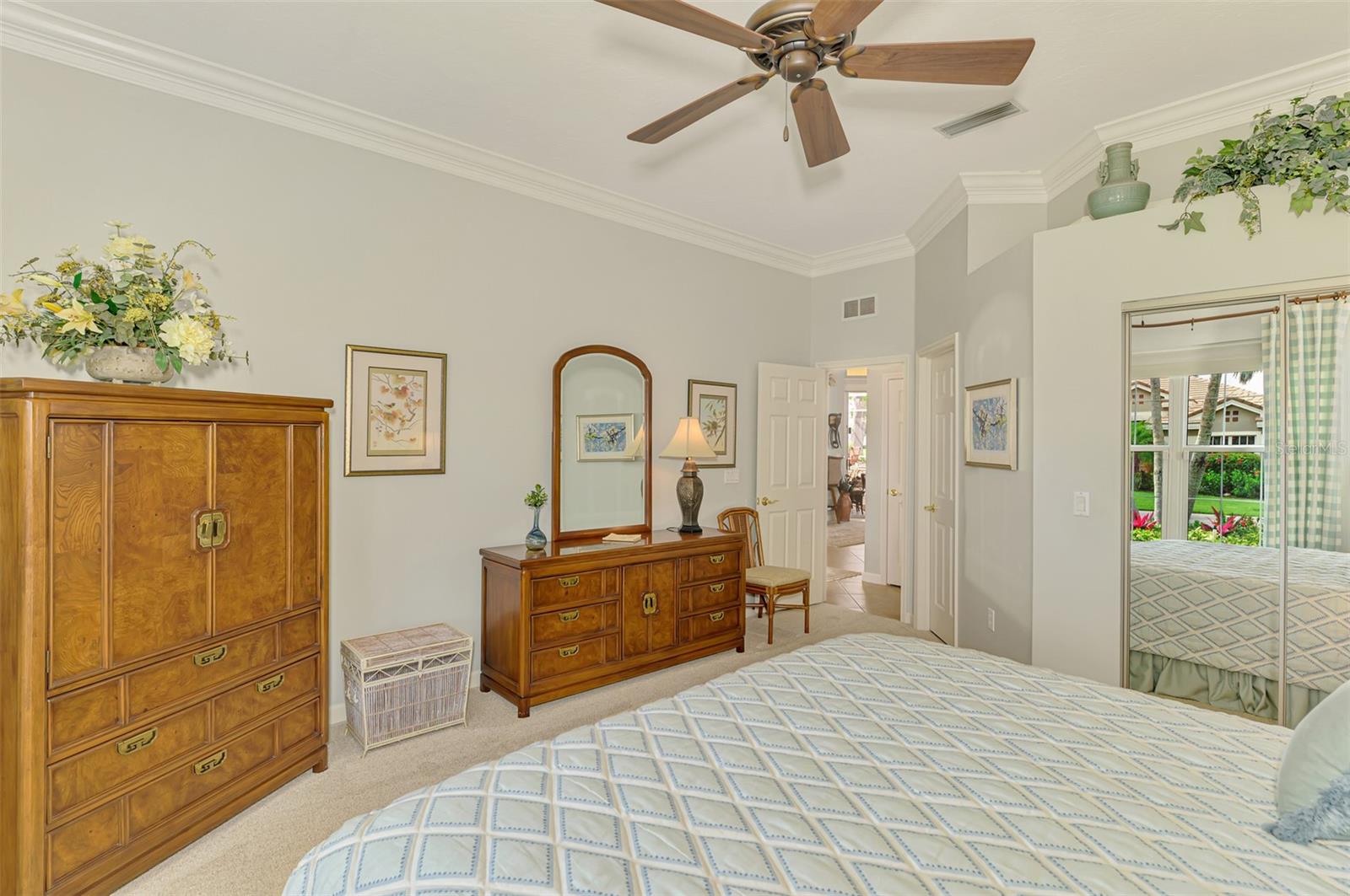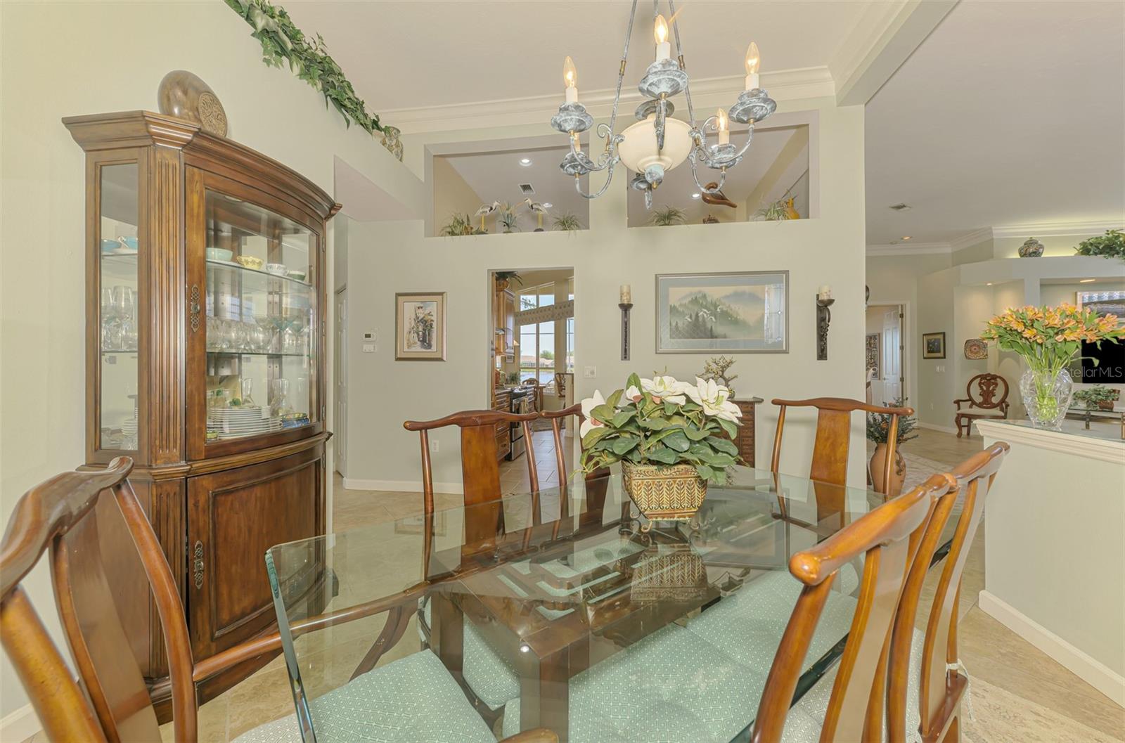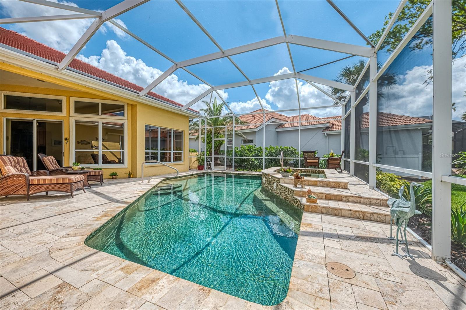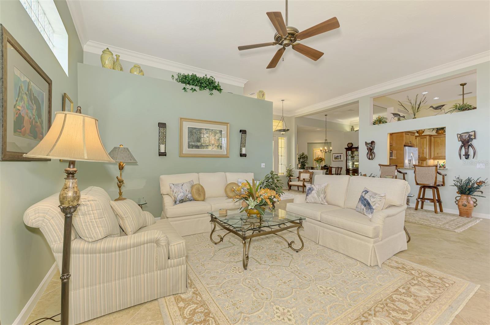 Rarely available, this updated home in a maintained neighborhood has 3 bedrooms, 3 baths,pool, spa, and PHENOMENAL south-facing water view. The floor plan is perfect for entertainingfamily and friends with its centrally located kitchen or if you choose a quiet evening viewing thewildlife at VGCC and soak in the uninterrupted water view on the raised platform of the spa. Theentire home is bathed in natural light throughout the day accentuating the beautiful architectureand crown molding shows off the phenomenal 12 FOOT CEILINGS making this home feel spacious and luxurious. THIS HOME OFFERS AN IMMEDIATE OPPORTUNITY FOR A GOLFMEMBERSHIP. The Primary bedroom and bath will spoil the homeowner w/blackout shades,privacy sheers, built-in cherry bookshelves and cabinets with a desk area and marble countertop.The primary bathroom includes matching cherry cabinets, a newly tiled walk-in shower with a bench,overhead and handheld shower, dressing table and double sinks. CUSTOM WALK-IN CLOSETWILL WOW EVEN THE PICKIEST! The centrally located kitchen was redesigned with a view ofthe living room, has stainless steel appliances, a breakfast bar, hardwood cabinets with pantry,spice drawer, fan/light over stove, roll down corner cupboard, soft close drawers and doors, twosinks, under-counter lights (3-25), granite countertops and push button garbage disposal. A cooksdelight! Both guest bedrooms have their own UPDATED guest baths for privacy. One guestbath could be used as a pool bath and is accessible from the same side of home as the lanai.Many windows have been replaced to code. The roof was replaced in 2013 and has beeninspected every year.. The pool cage was replaced w/spa addition in 2011. HVAC wasreplaced in 2019 (is under a 2 visits/year service contract) and garage door in 2021, pool pumpin 4/2025 and electric panel in 4/2025. VGCC is a member-owned PRIVATE COUNTRY CLUBWITH 589 homes. Membership IS MANDATORY. Meet and make new friends for dining orafter golf in the renovated clubhouse that offers both casual and formal dining. There is acasual bar for meeting with friends or an exclusive bar for higher-end wines and bourbon. Oncooler evenings, gather around the fire pit with friends, enjoying the views across water to the18th green. Work out in the newly enlarged Wellness Center with state-of-the-art equipmentand on-site physical therapist, massage therapist, personal trainers and a wide variety of fitnessclasses. The club has a unique "U" program that offers cultural and learning events and there ismahjong, bridge, bocce, book club, wine club, in addition to golf, tennis and pickleball leagues..With easy access from I-75, and centrally located between Tampa/Sarasota and Punta Gorda/Ft. Myers airports, this mature community is only 5 miles from charming downtown Venice and20 miles from culturally-rich Sarasota. Venice Golf and Country Club is an award-winningCertified Audubon Geo Cooperative Sanctuary with 26 lakes/ponds and 13 natural preserves.VGCC is truly a unique community in Southwest Florida, as illustrated by the number ofmembers who have made it their year-round home. This is a must-see property. Click on thelink for more photos and information:https://portfolio.precision360 photography.com/property/410-wellington-ct