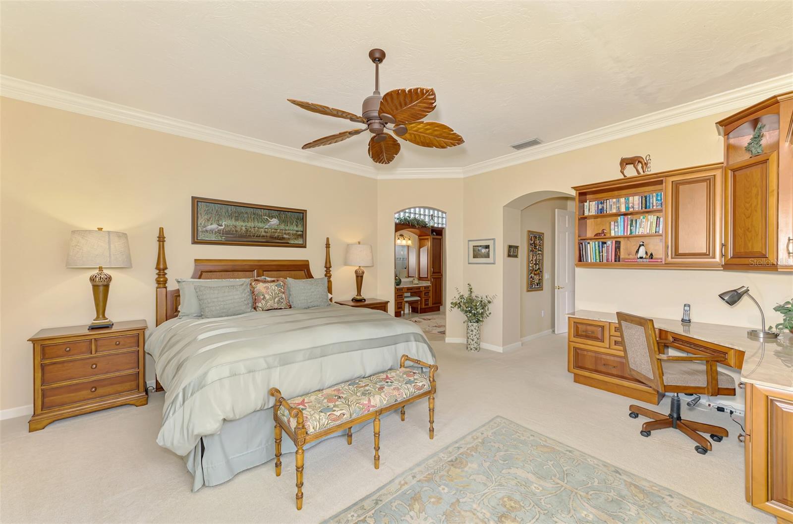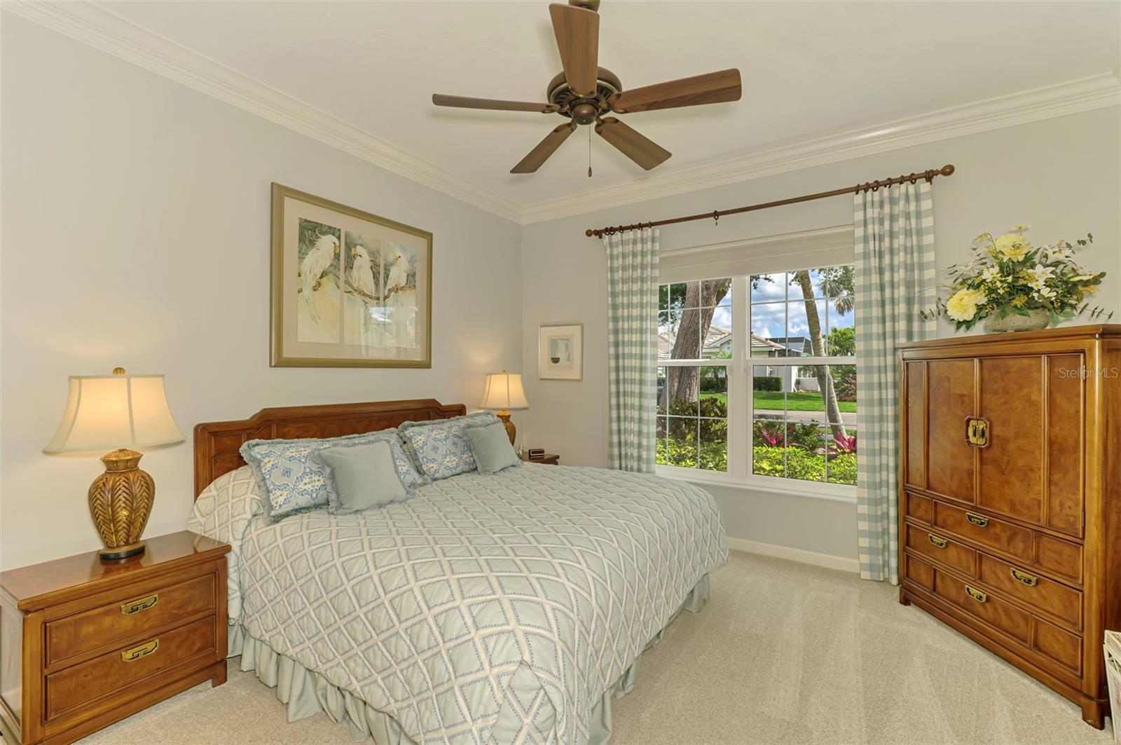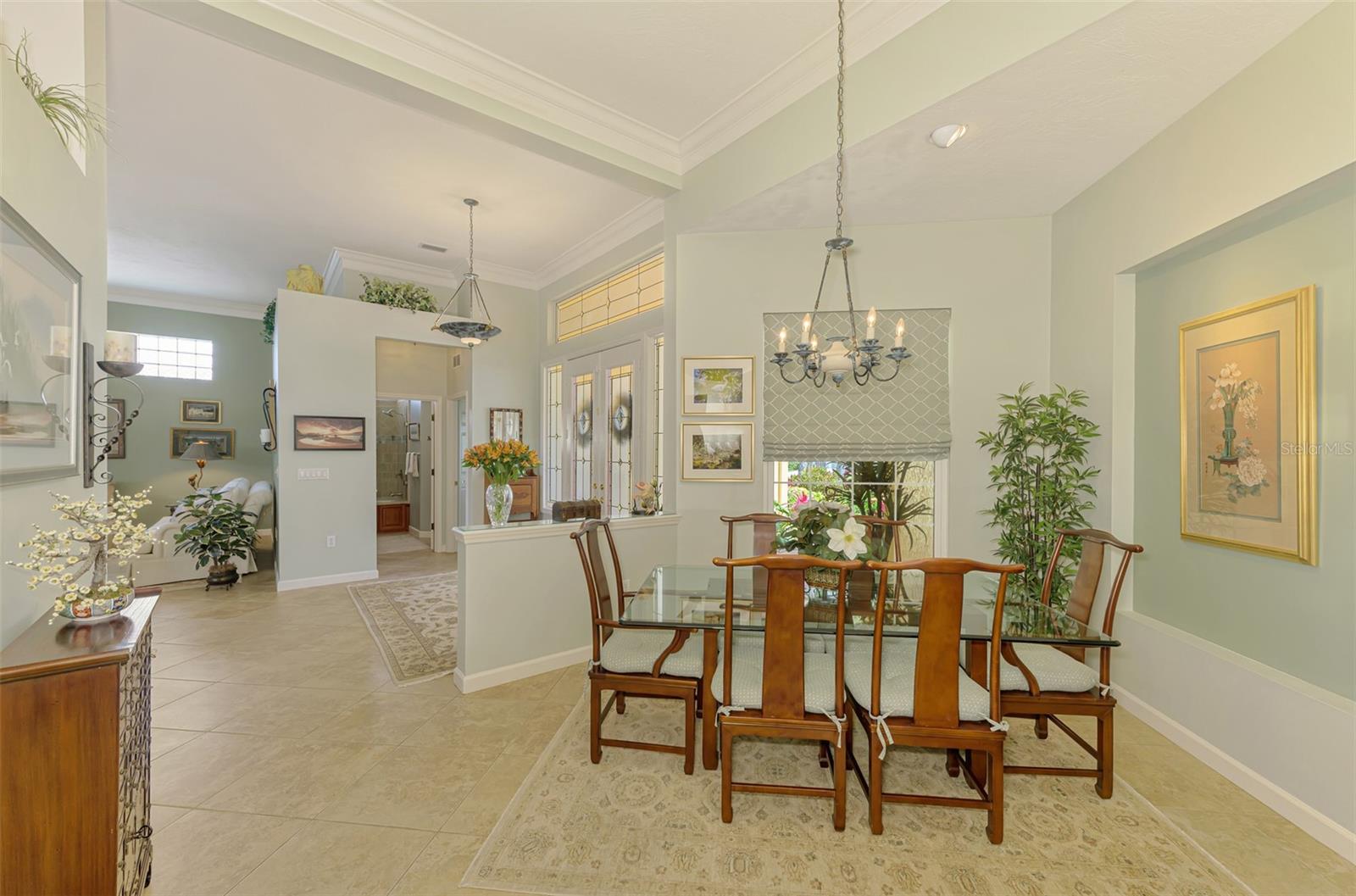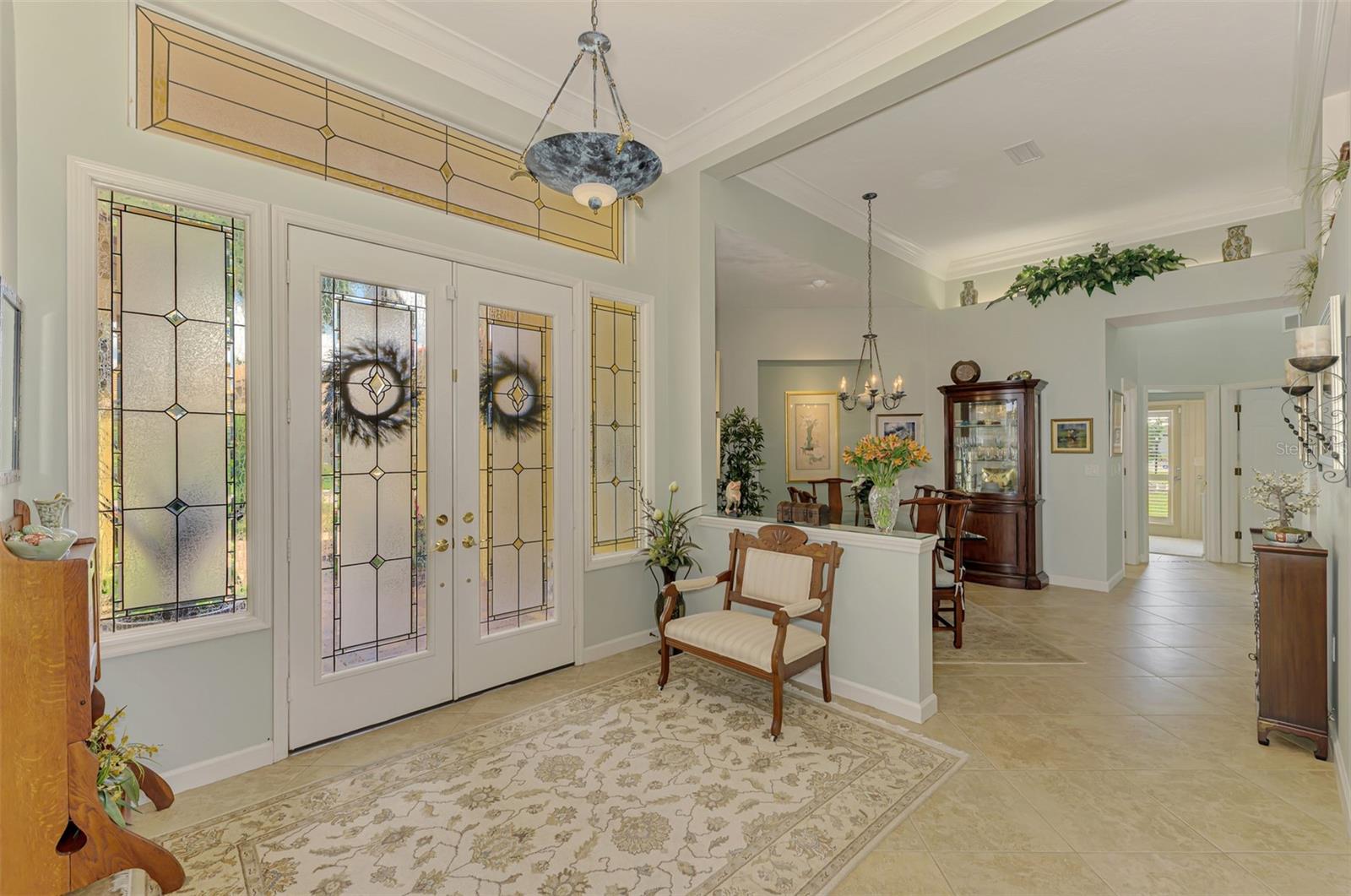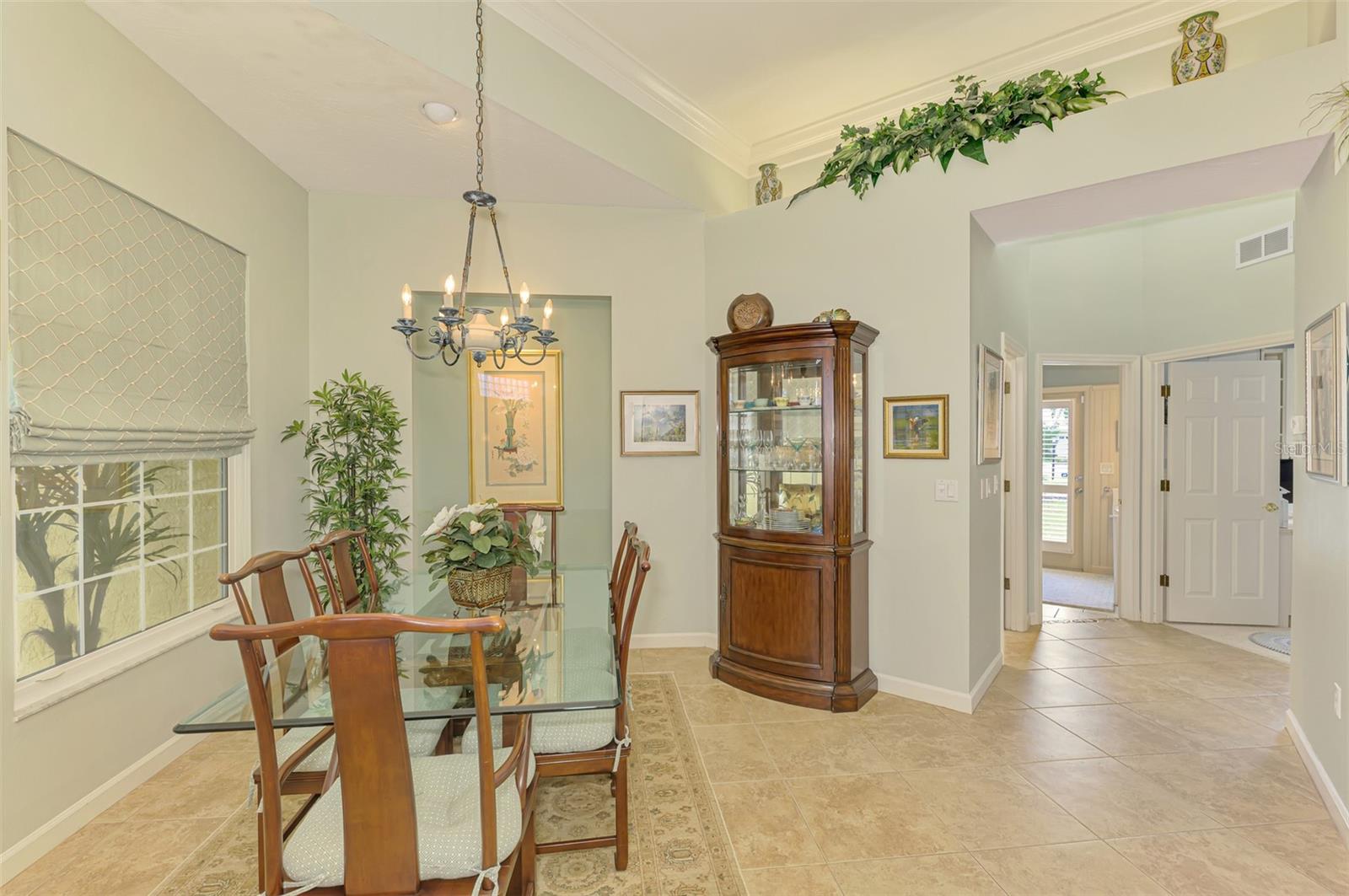 Rarely available, this updated home in a maintained neighborhood has 3 bedrooms, 3 baths,pool, spa, and PHENOMENAL south-facing water view. The floor plan is perfect for entertainingfamily and friends with its centrally located kitchen or if you choose a quiet evening viewing thewildlife at VGCC and soak in the uninterrupted water view on the raised platform of the spa. Theentire home is bathed in natural light throughout the day accentuating the beautiful architectureand crown molding shows off the phenomenal 12 FOOT CEILINGS making this home feel spacious and luxurious. THIS HOME OFFERS AN IMMEDIATE OPPORTUNITY FOR A GOLFMEMBERSHIP. The Primary bedroom and bath will spoil the homeowner w/blackout shades,privacy sheers, built-in cherry bookshelves and cabinets with a desk area and marble countertop.The primary bathroom includes matching cherry cabinets, a newly tiled walk-in shower with a bench,overhead and handheld shower, dressing table and double sinks. CUSTOM WALK-IN CLOSETWILL WOW EVEN THE PICKIEST! The centrally located kitchen was redesigned with a view ofthe living room, has stainless steel appliances, a breakfast bar, hardwood cabinets with pantry,spice drawer, fan/light over stove, roll down corner cupboard, soft close drawers and doors, twosinks, under-counter lights (3-25), granite countertops and push button garbage disposal. A cooksdelight! Both guest bedrooms have their own UPDATED guest baths for privacy. One guestbath could be used as a pool bath and is accessible from the same side of home as the lanai.Many windows have been replaced to code. The roof was replaced in 2013 and has beeninspected every year.. The pool cage was replaced w/spa addition in 2011. HVAC wasreplaced in 2019 (is under a 2 visits/year service contract) and garage door in 2021, pool pumpin 4/2025 and electric panel in 4/2025. VGCC is a member-owned PRIVATE COUNTRY CLUBWITH 589 homes. Membership IS MANDATORY. Meet and make new friends for dining orafter golf in the renovated clubhouse that offers both casual and formal dining. There is acasual bar for meeting with friends or an exclusive bar for higher-end wines and bourbon. Oncooler evenings, gather around the fire pit with friends, enjoying the views across water to the18th green. Work out in the newly enlarged Wellness Center with state-of-the-art equipmentand on-site physical therapist, massage therapist, personal trainers and a wide variety of fitnessclasses. The club has a unique "U" program that offers cultural and learning events and there ismahjong, bridge, bocce, book club, wine club, in addition to golf, tennis and pickleball leagues..With easy access from I-75, and centrally located between Tampa/Sarasota and Punta Gorda/Ft. Myers airports, this mature community is only 5 miles from charming downtown Venice and20 miles from culturally-rich Sarasota. Venice Golf and Country Club is an award-winningCertified Audubon Geo Cooperative Sanctuary with 26 lakes/ponds and 13 natural preserves.VGCC is truly a unique community in Southwest Florida, as illustrated by the number ofmembers who have made it their year-round home. This is a must-see property. Click on thelink for more photos and information:https://portfolio.precision360 photography.com/property/410-wellington-ct